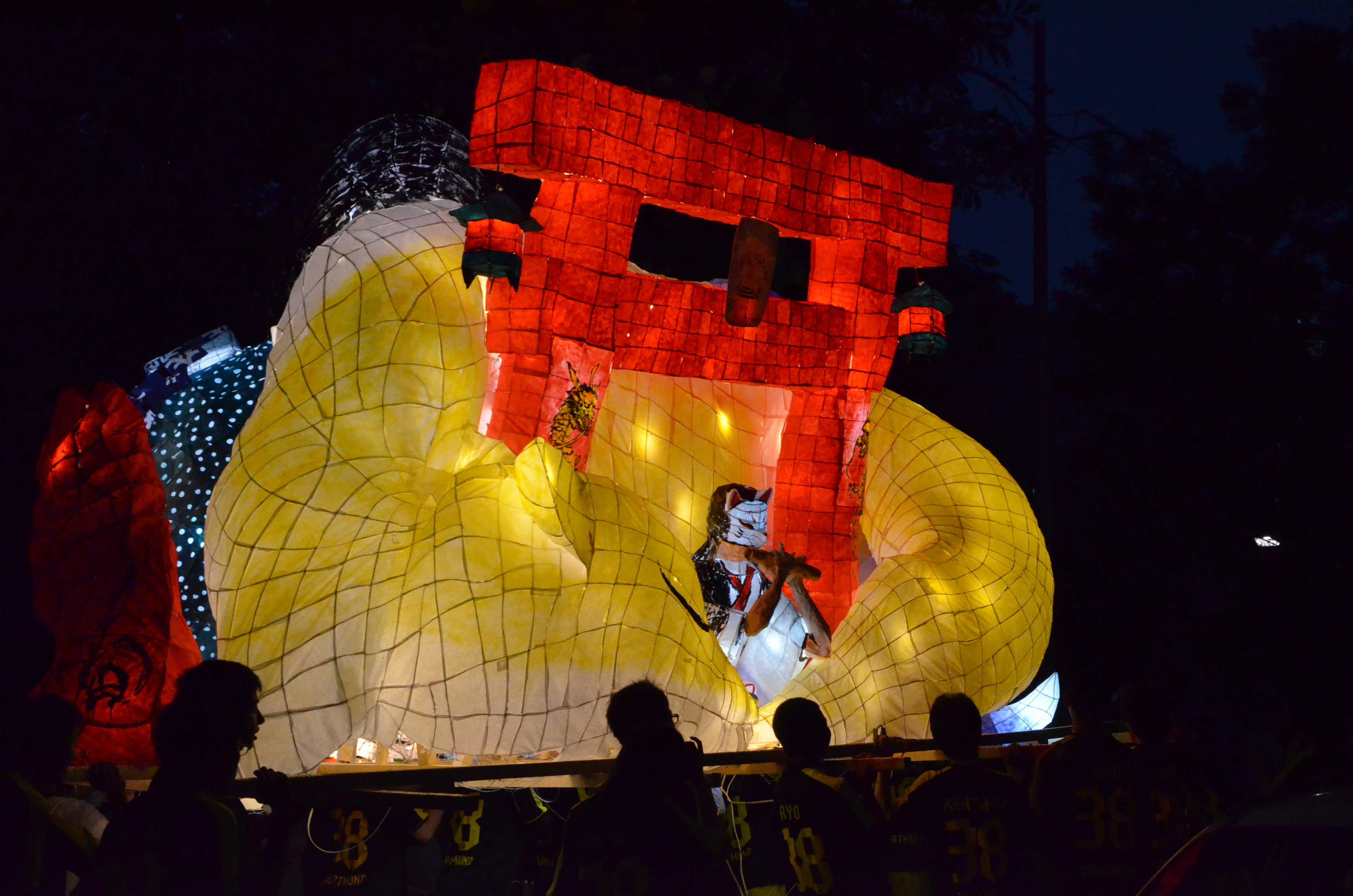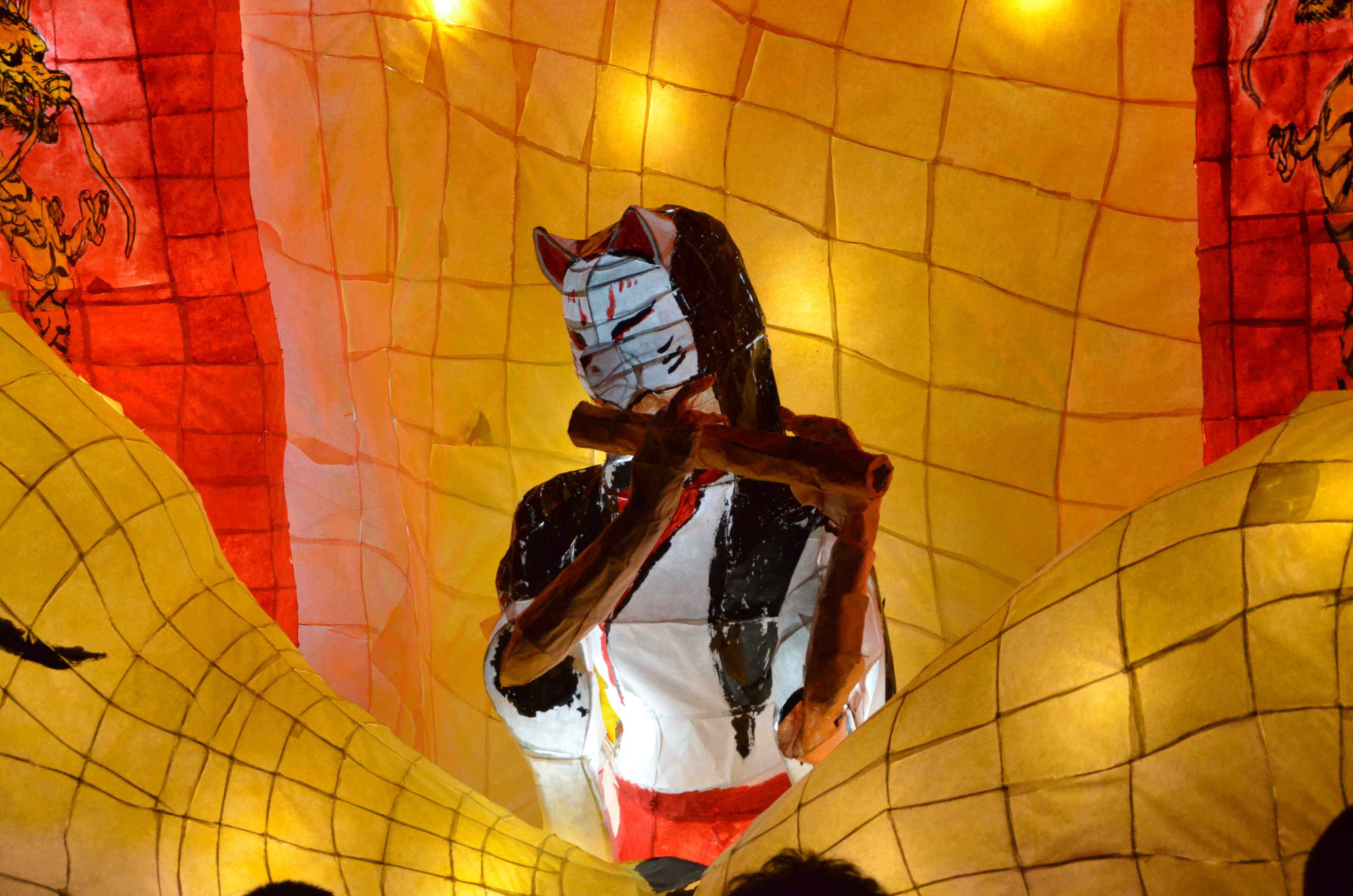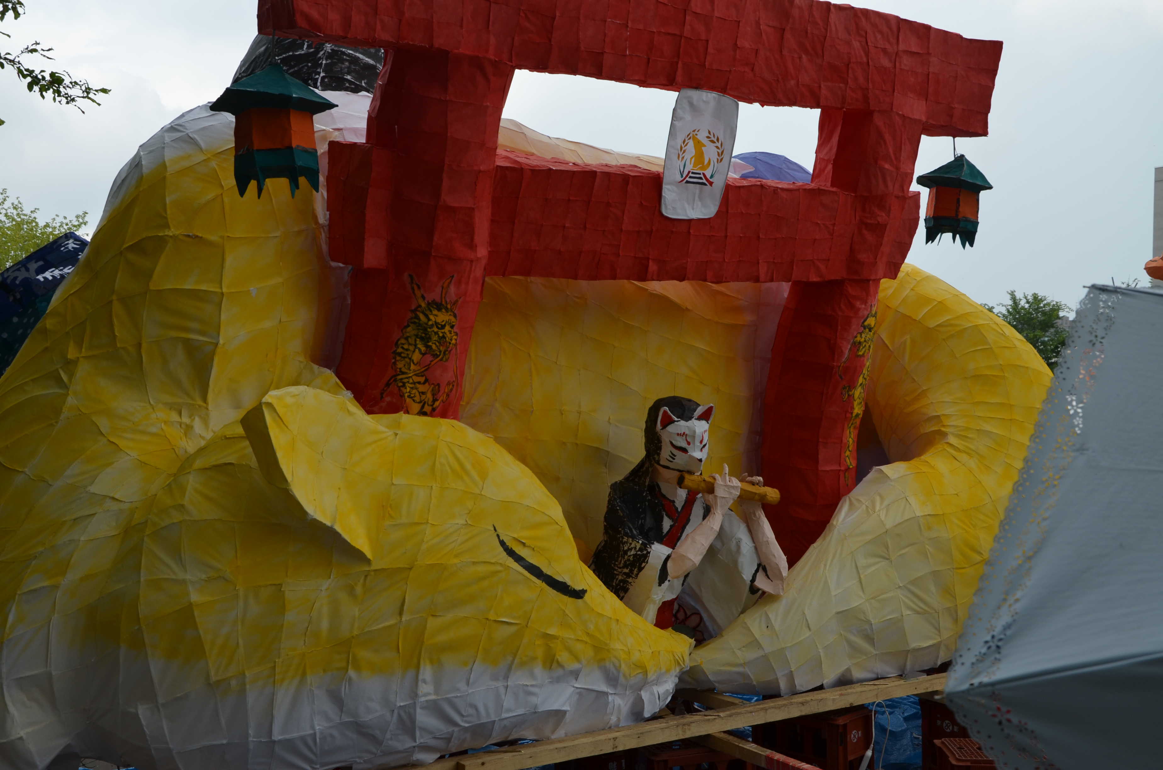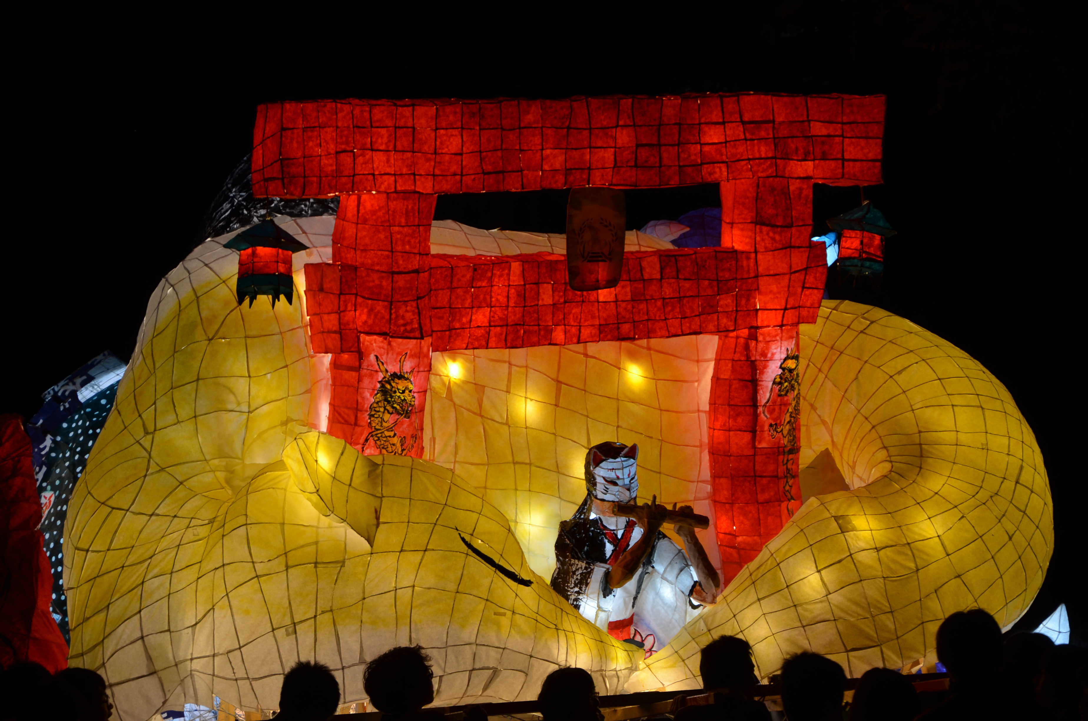 表側の狐の色と、顔をもうちょっと余裕を持ってつけることができたら、なんらかの賞は受賞していたんじゃないでしょうか。 でも記録ではなく記憶に残る行灯を作ってくれたと思います。ありがとうございました。