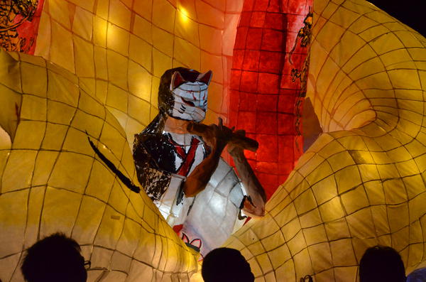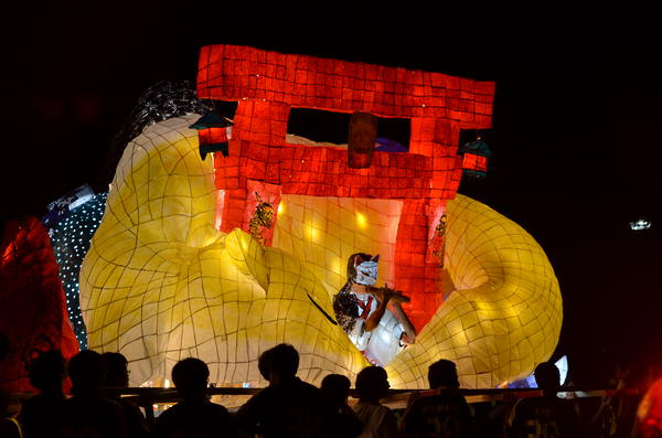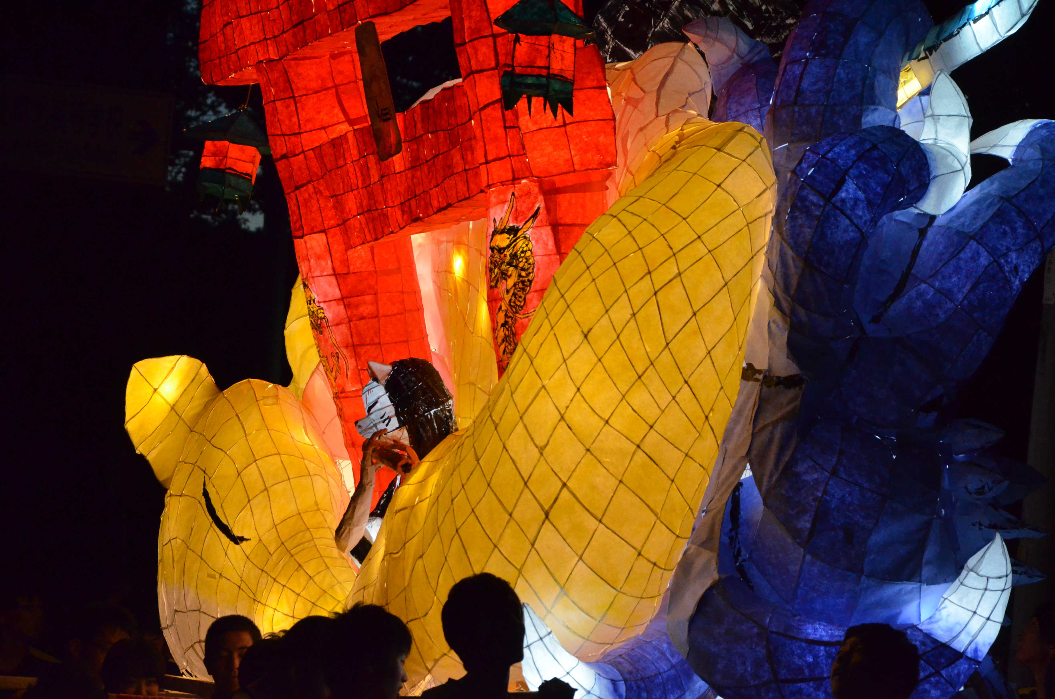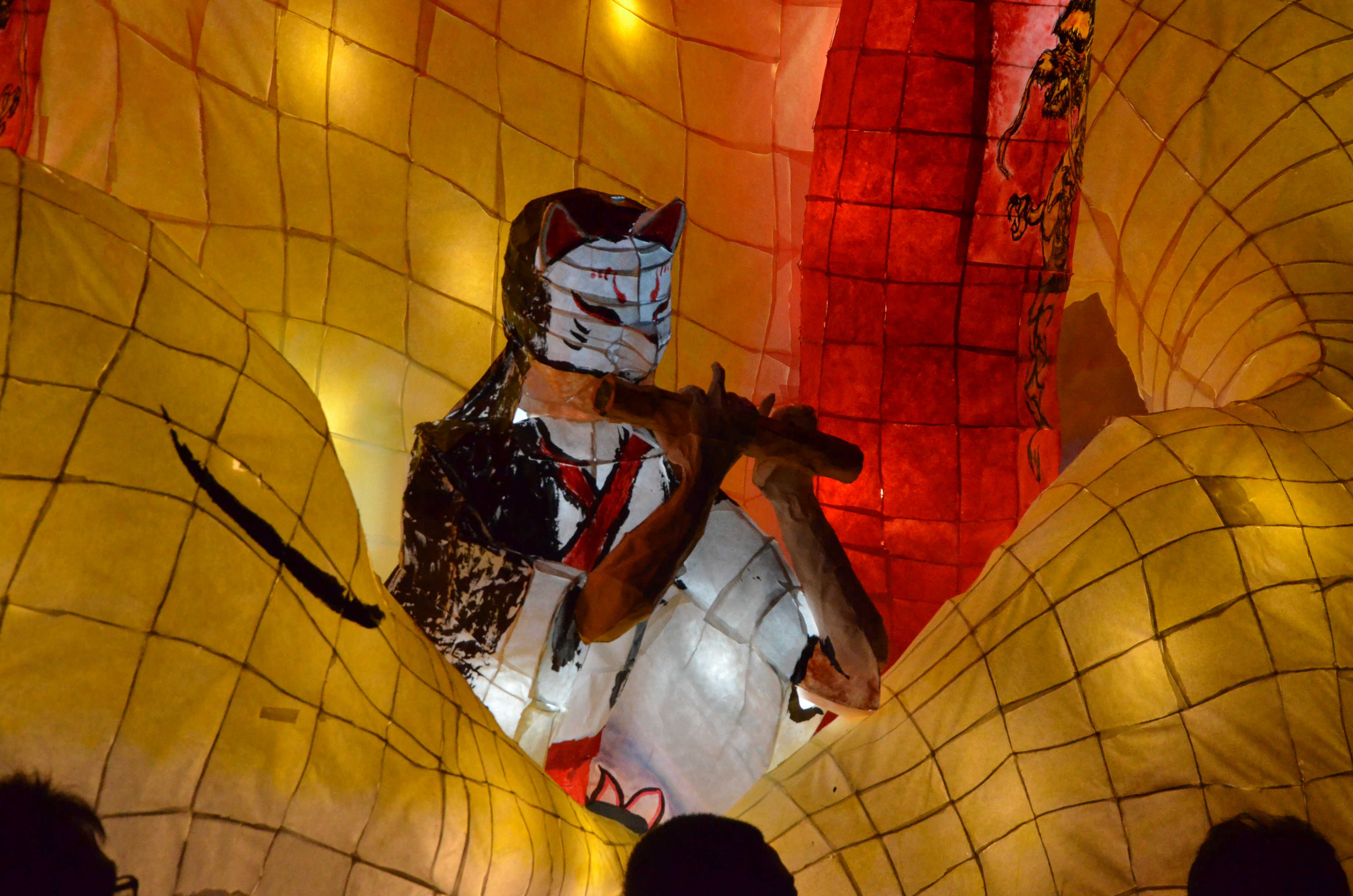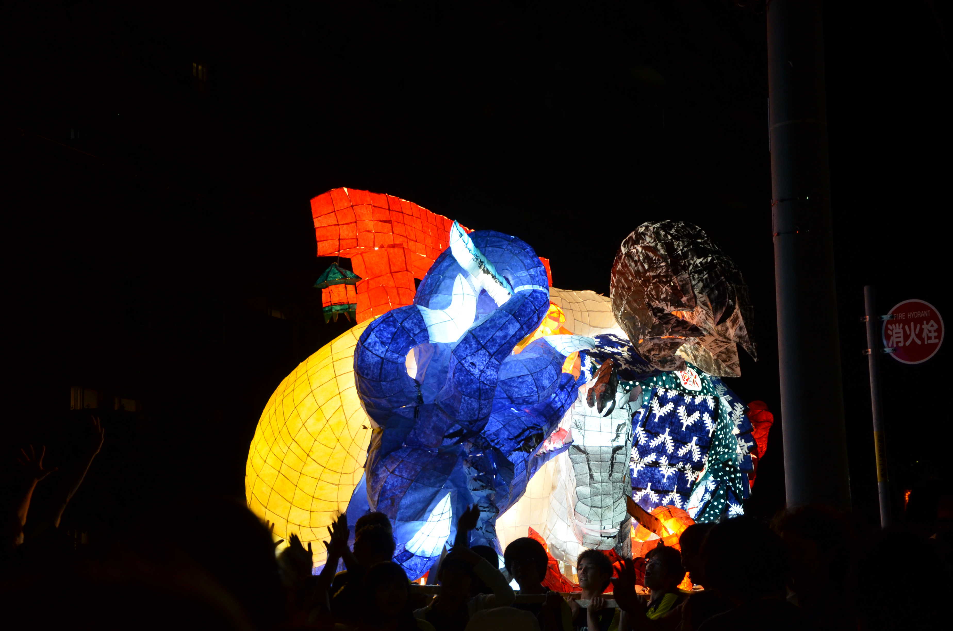 表側の狐の色と、顔をもうちょっと余裕を持ってつけることができたら、なんらかの賞は受賞していたんじゃないでしょうか。 でも記録ではなく記憶に残る行灯を作ってくれたと思います。ありがとうございました。