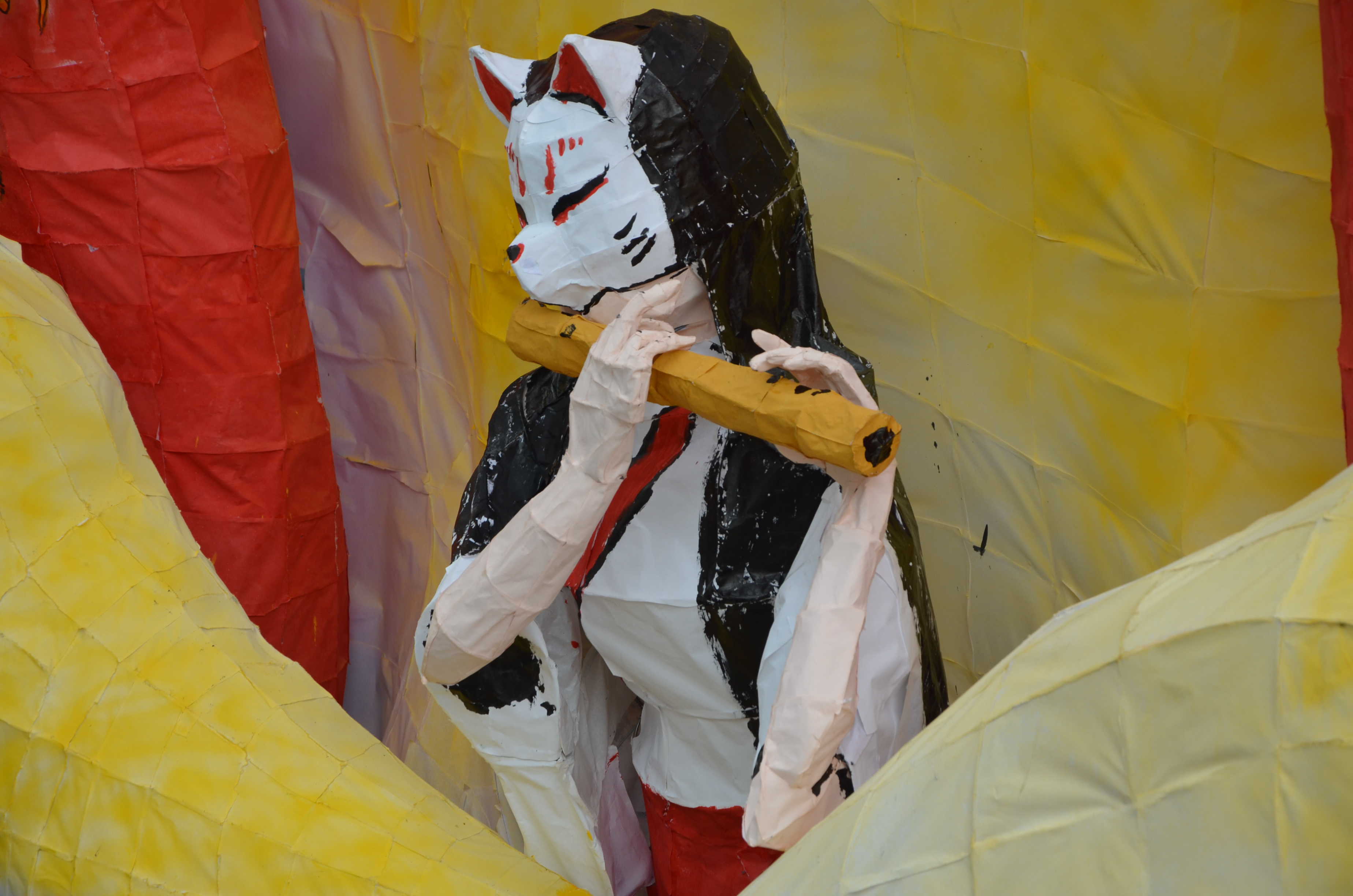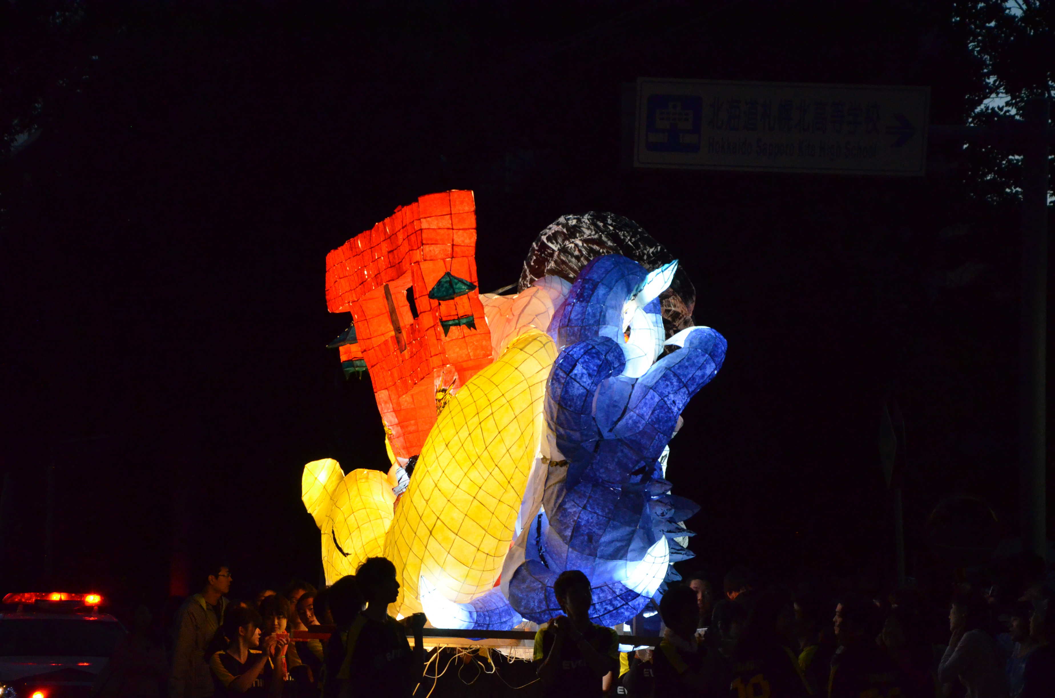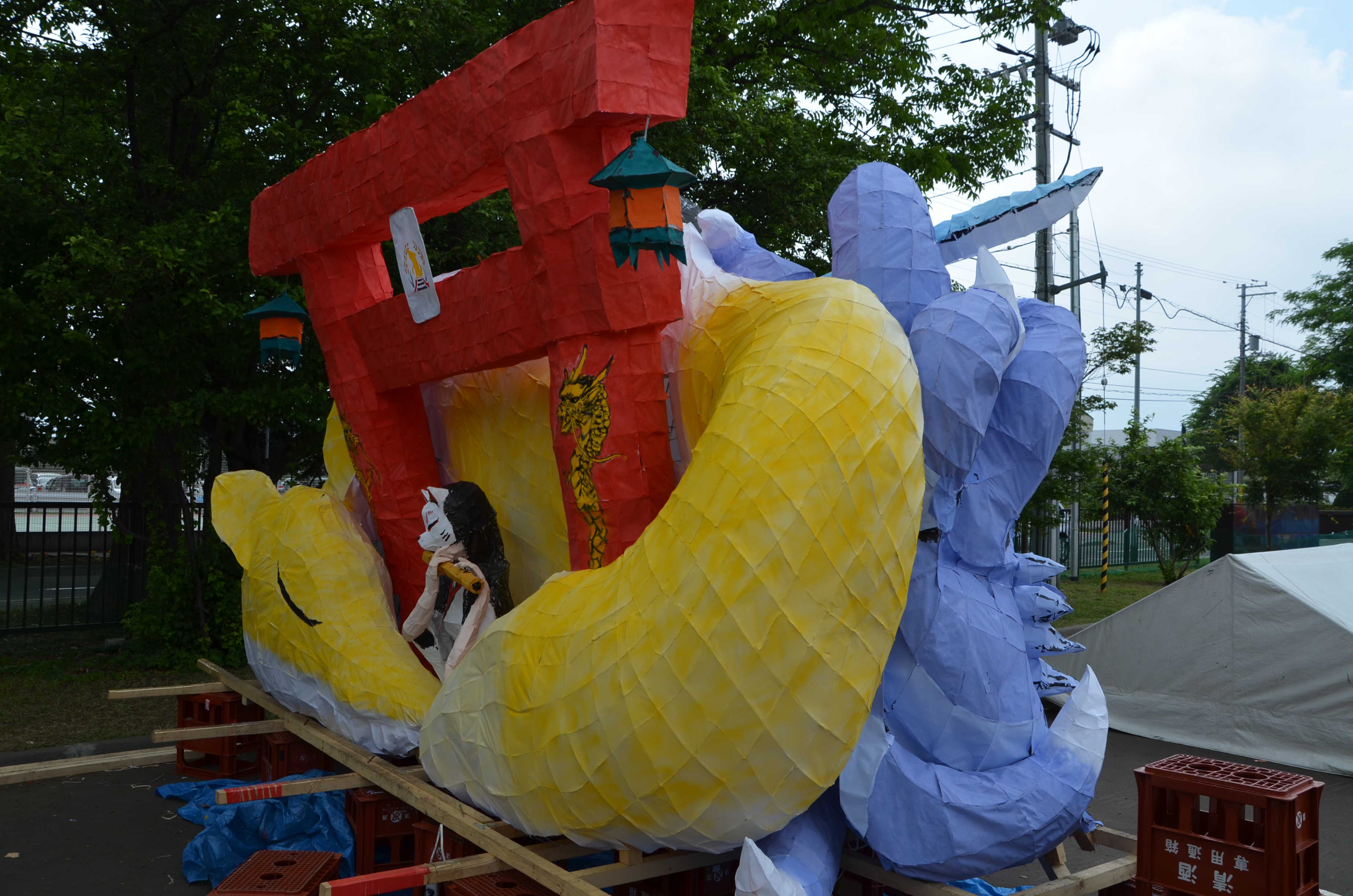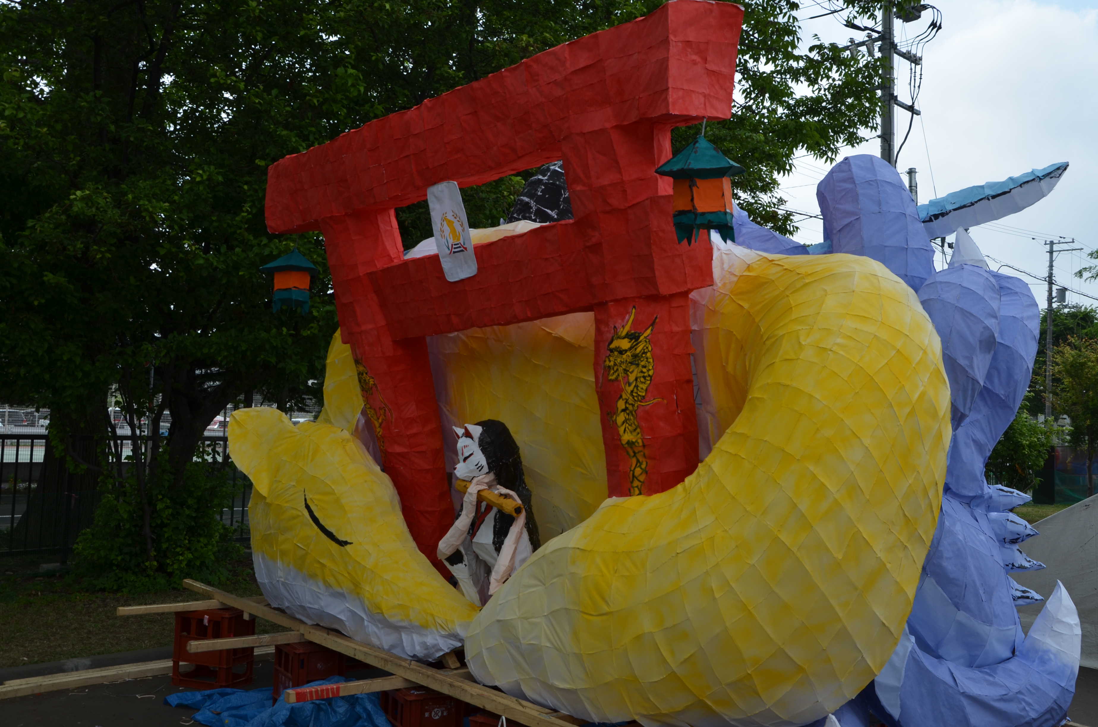 表側の狐の色と、顔をもうちょっと余裕を持ってつけることができたら、なんらかの賞は受賞していたんじゃないでしょうか。 でも記録ではなく記憶に残る行灯を作ってくれたと思います。ありがとうございました。