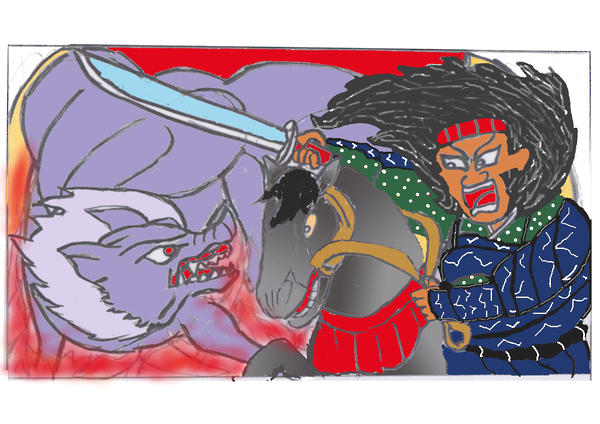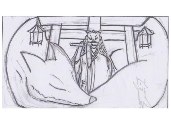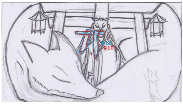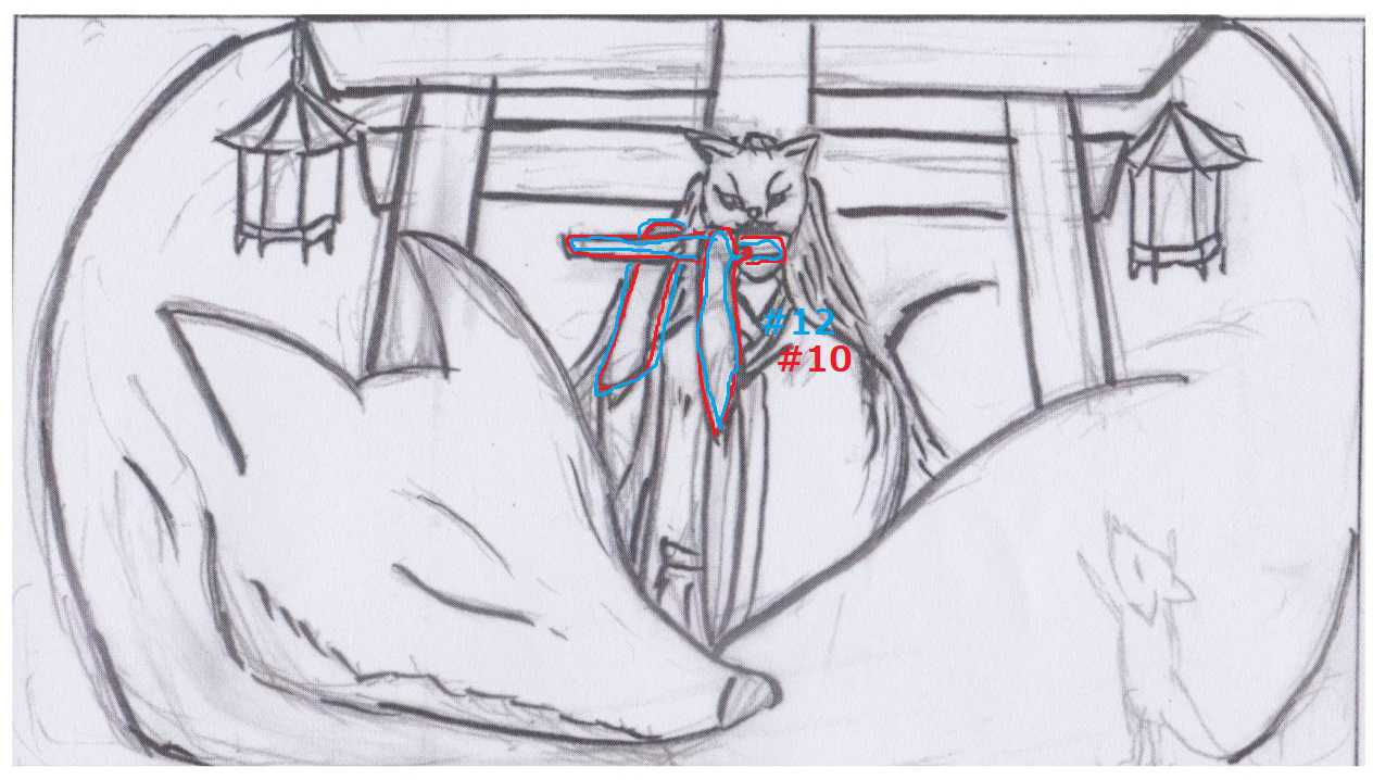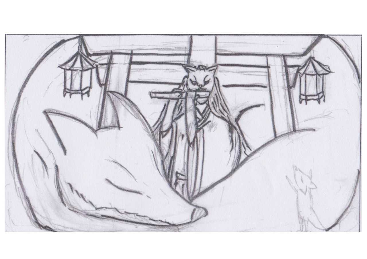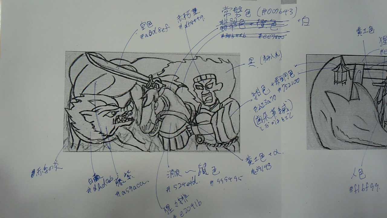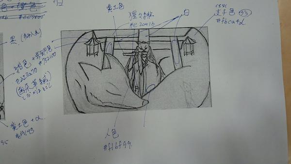 表側の青い狐について、昼に見ると綺麗でしたが、光ったところを見ると全体的に暗く、特に目の部分が真っ暗だったのがもったいなかったです。 人の方は、鎧の柄や着物のろう点が綺麗でした。