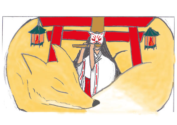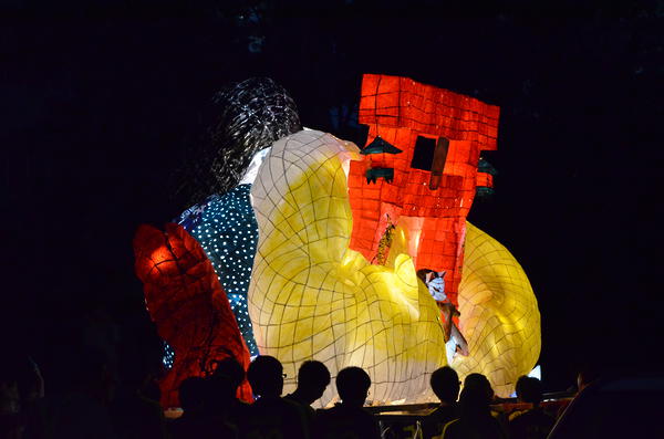 裏側の巫女がすごいです。生きているようでした。鳥肌が立ちました。指先までかなりリアルに作り込んでいて、素晴らしいです。巫女自体は流石にあまり光らせられなかったみたいですが、まわりの狐の黄色、鳥居の赤がよく光っているおかげで、逆に暗くてよかったように感じられました。
