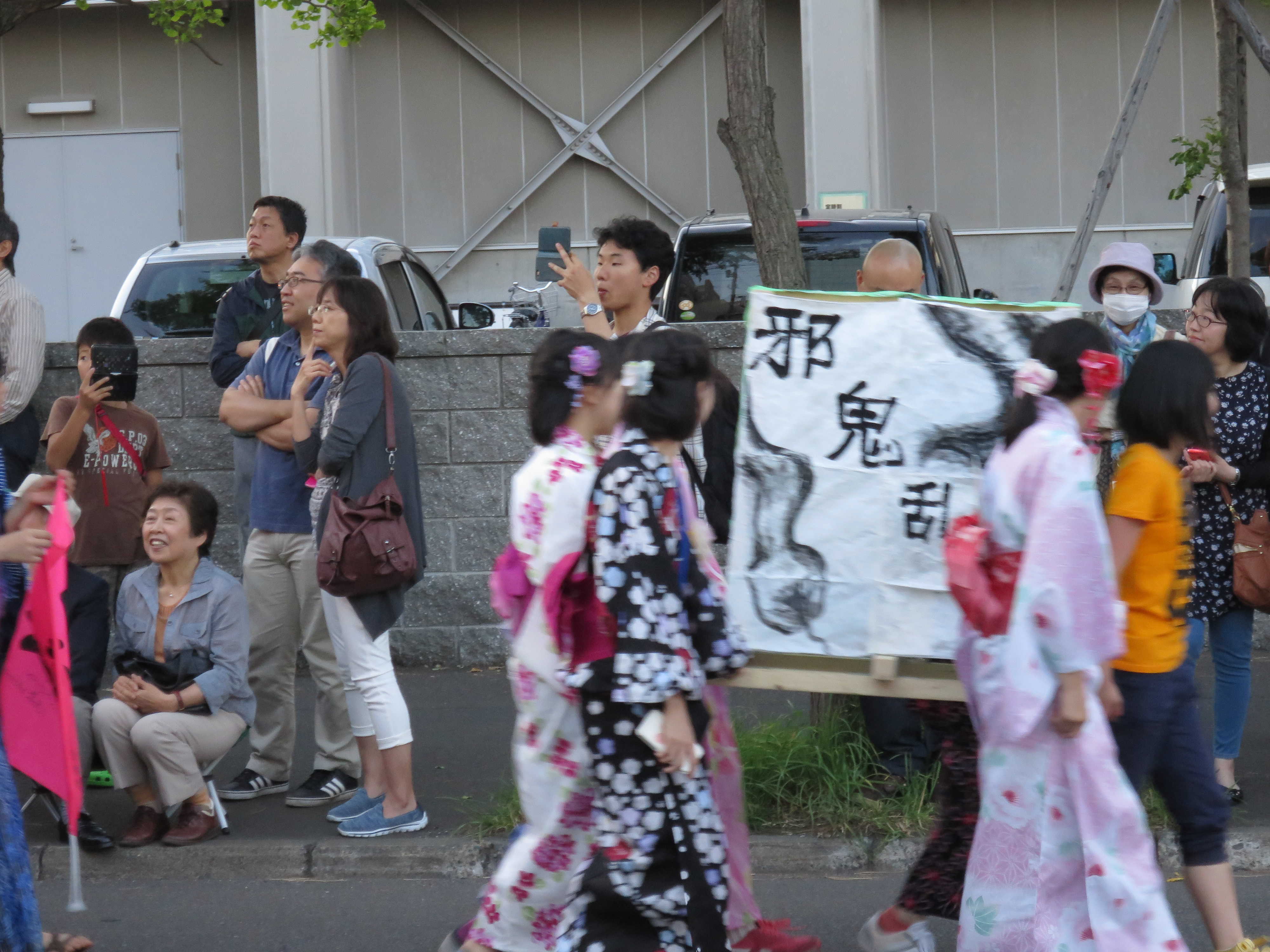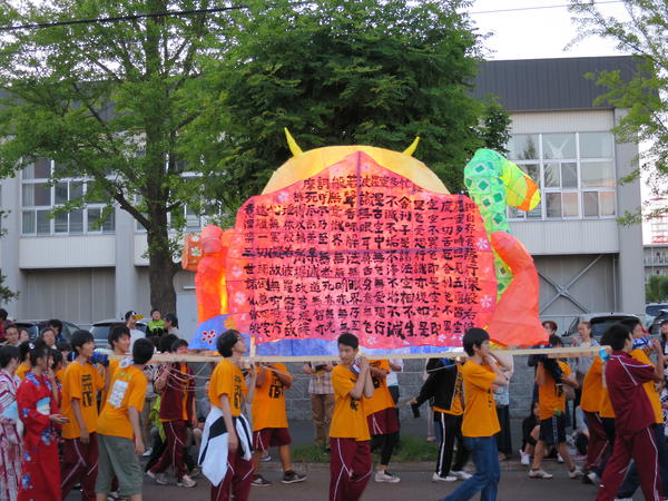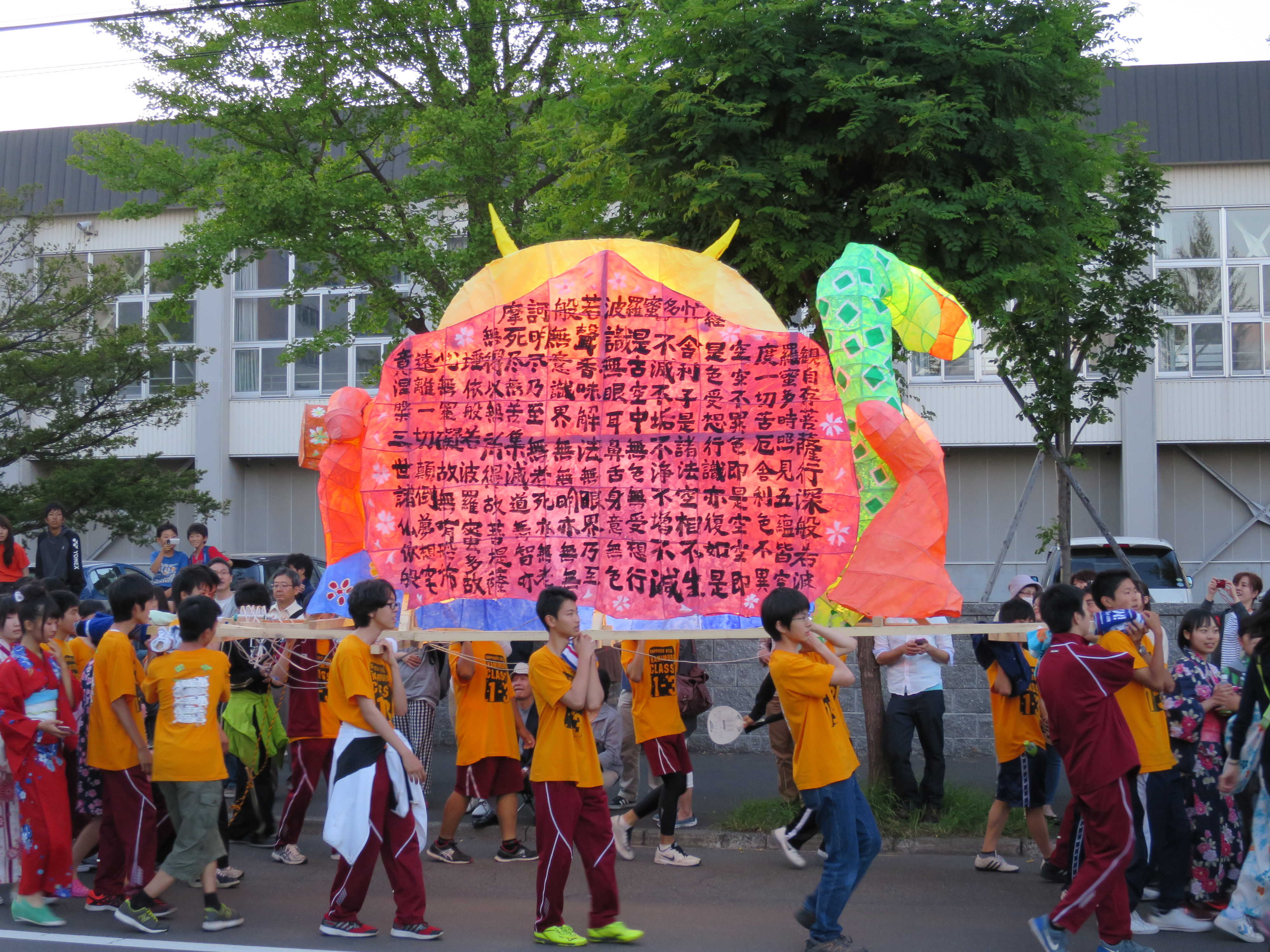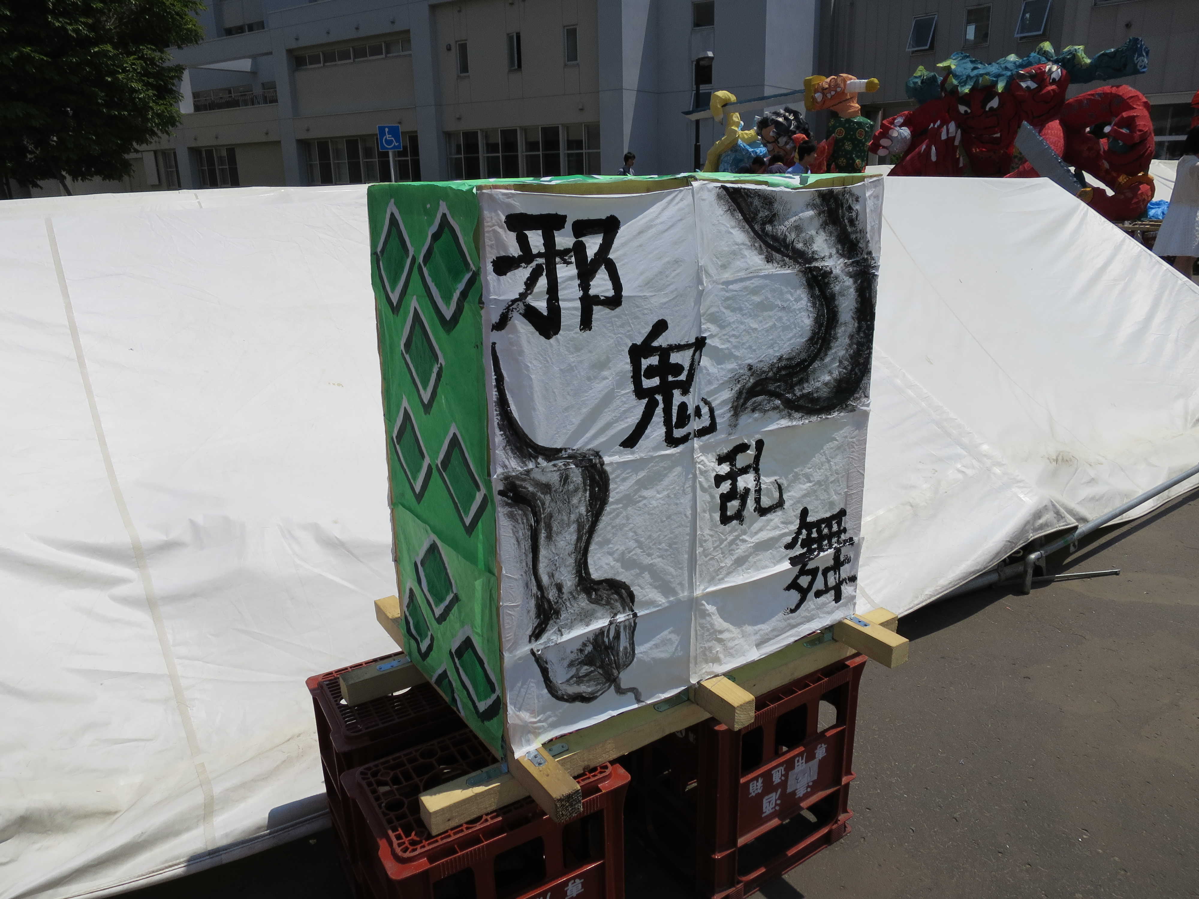 「般若」それは嫉妬と憎しみにまみれた女性の成れの果て。その嫉妬の象徴である「蛇」を背に一人の女が乱れ舞う。一年三組全員でつくりあげる狂気にみちあふれた般若の表情、そして迫力ある大蛇の姿を是非ご覧ください。