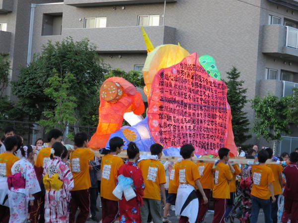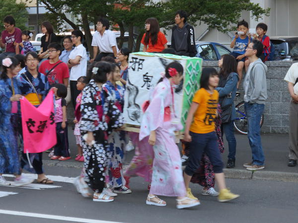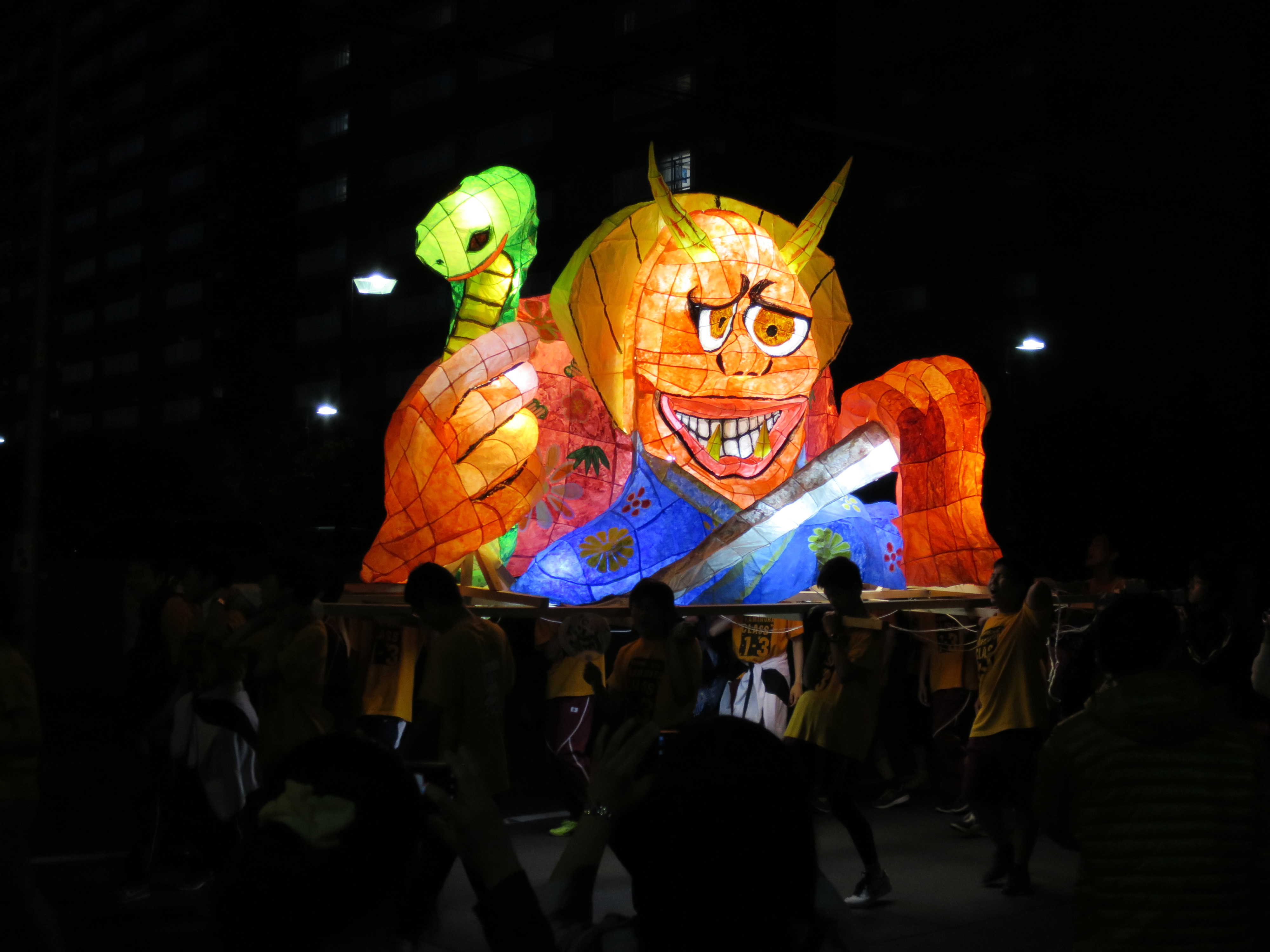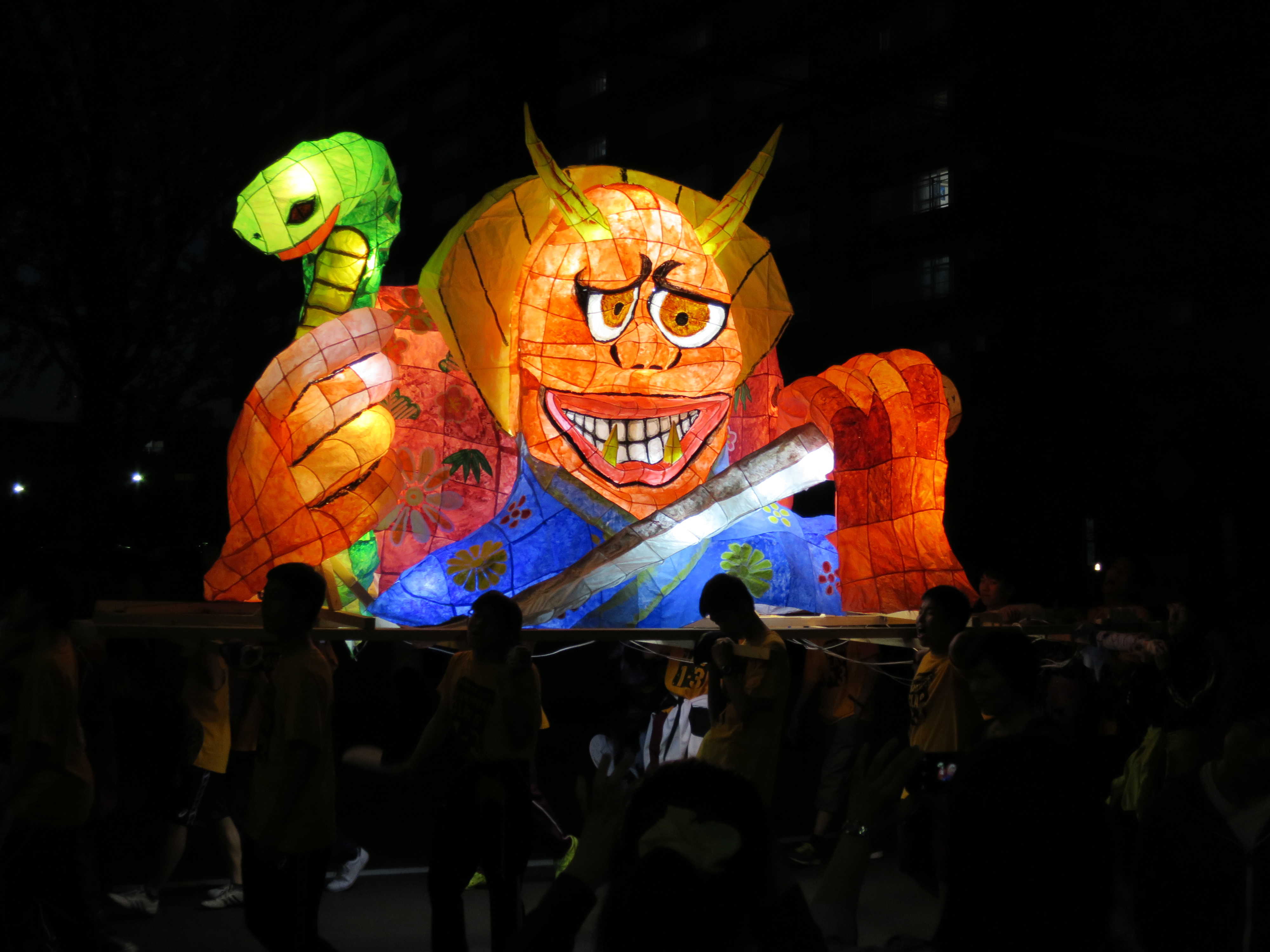 「般若」それは嫉妬と憎しみにまみれた女性の成れの果て。その嫉妬の象徴である「蛇」を背に一人の女が乱れ舞う。一年三組全員でつくりあげる狂気にみちあふれた般若の表情、そして迫力ある大蛇の姿を是非ご覧ください。