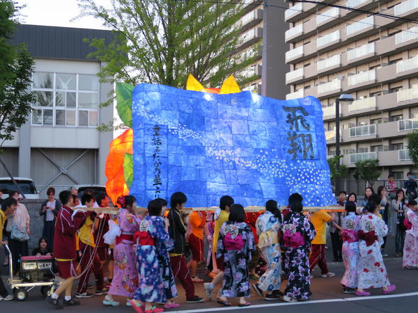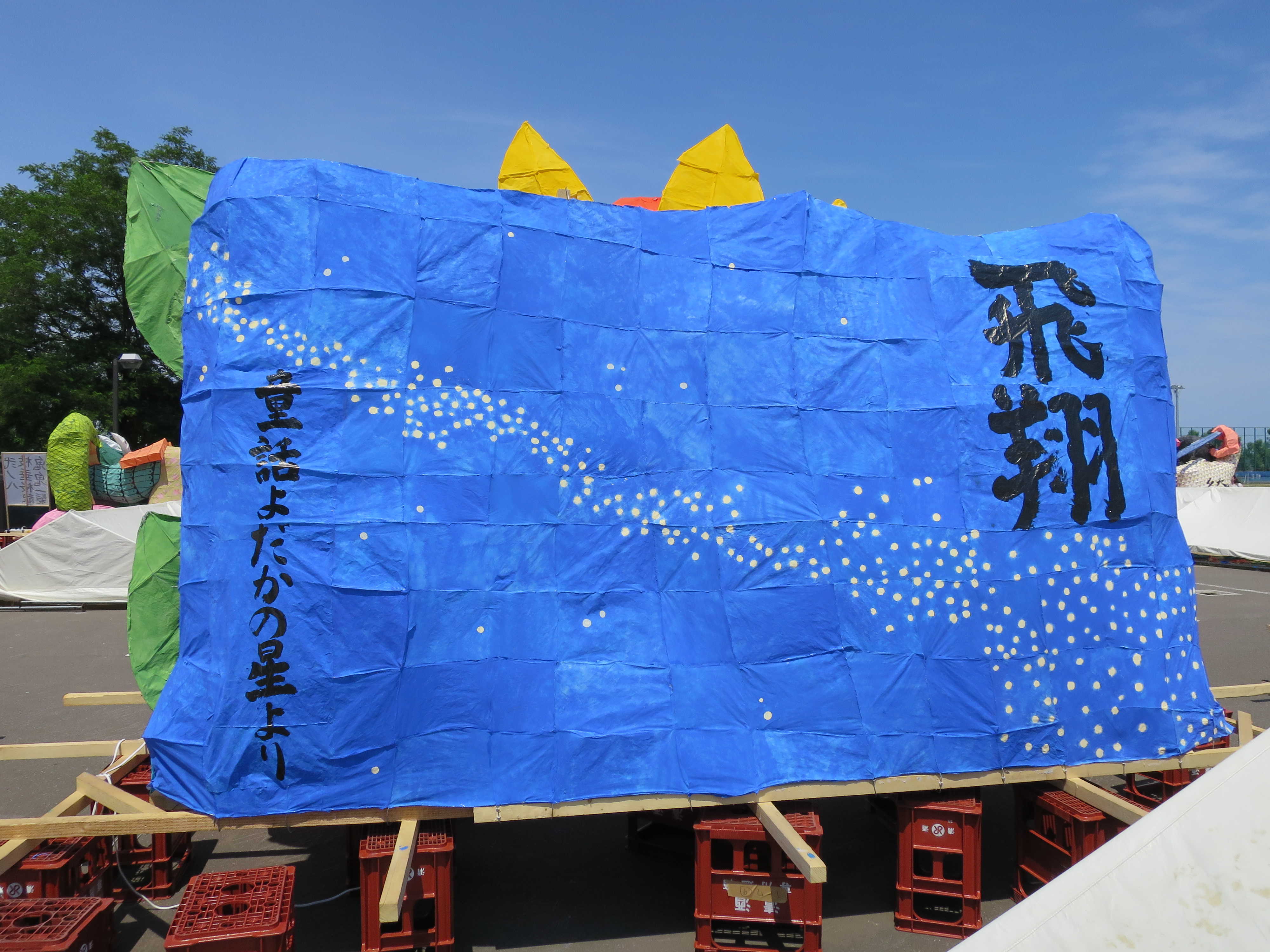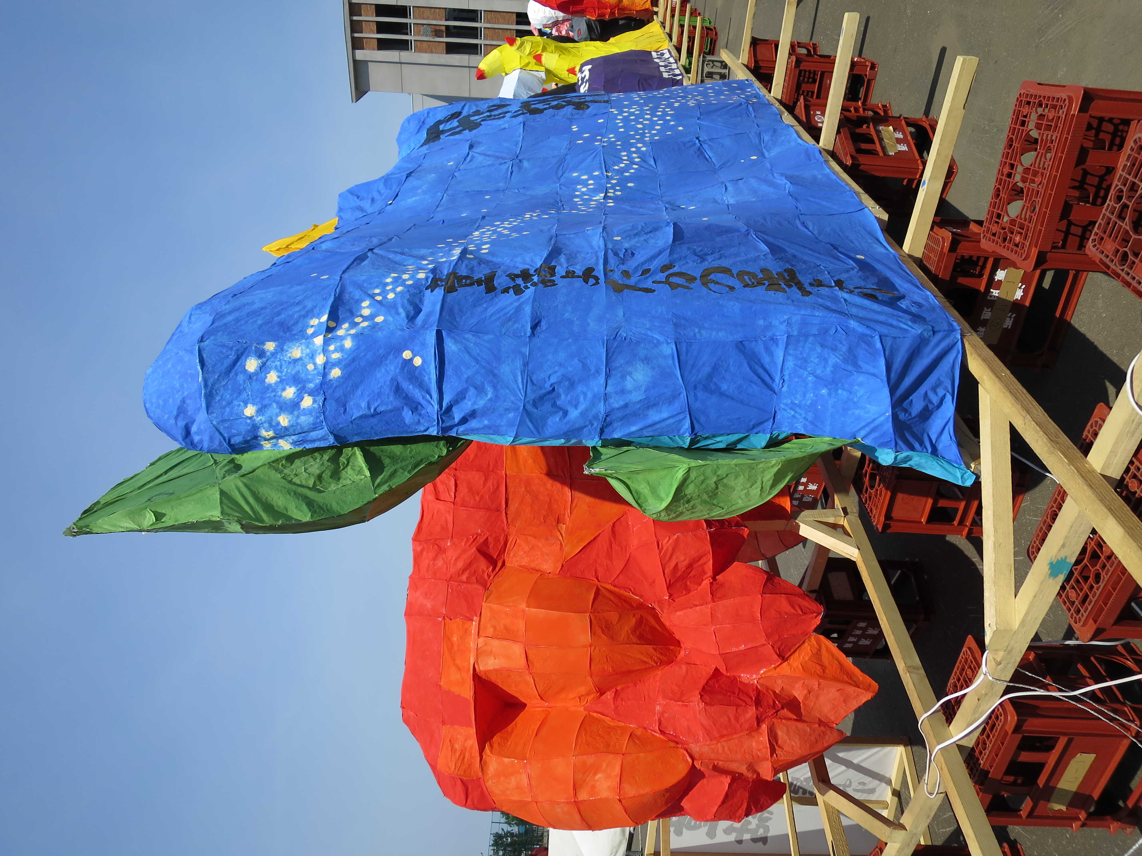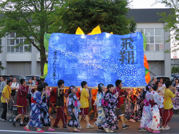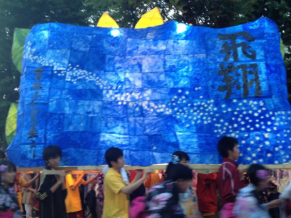 私たち1年7組は宮沢賢治さんの「よだかの星」をテーマに行灯を制作しました。醜いよだかが生まれ変わって、天の星を目指してどこまでもどこまでもまっすぐ飛び続ける美しさ、そして力強さを皆さんぜひご覧ください。
