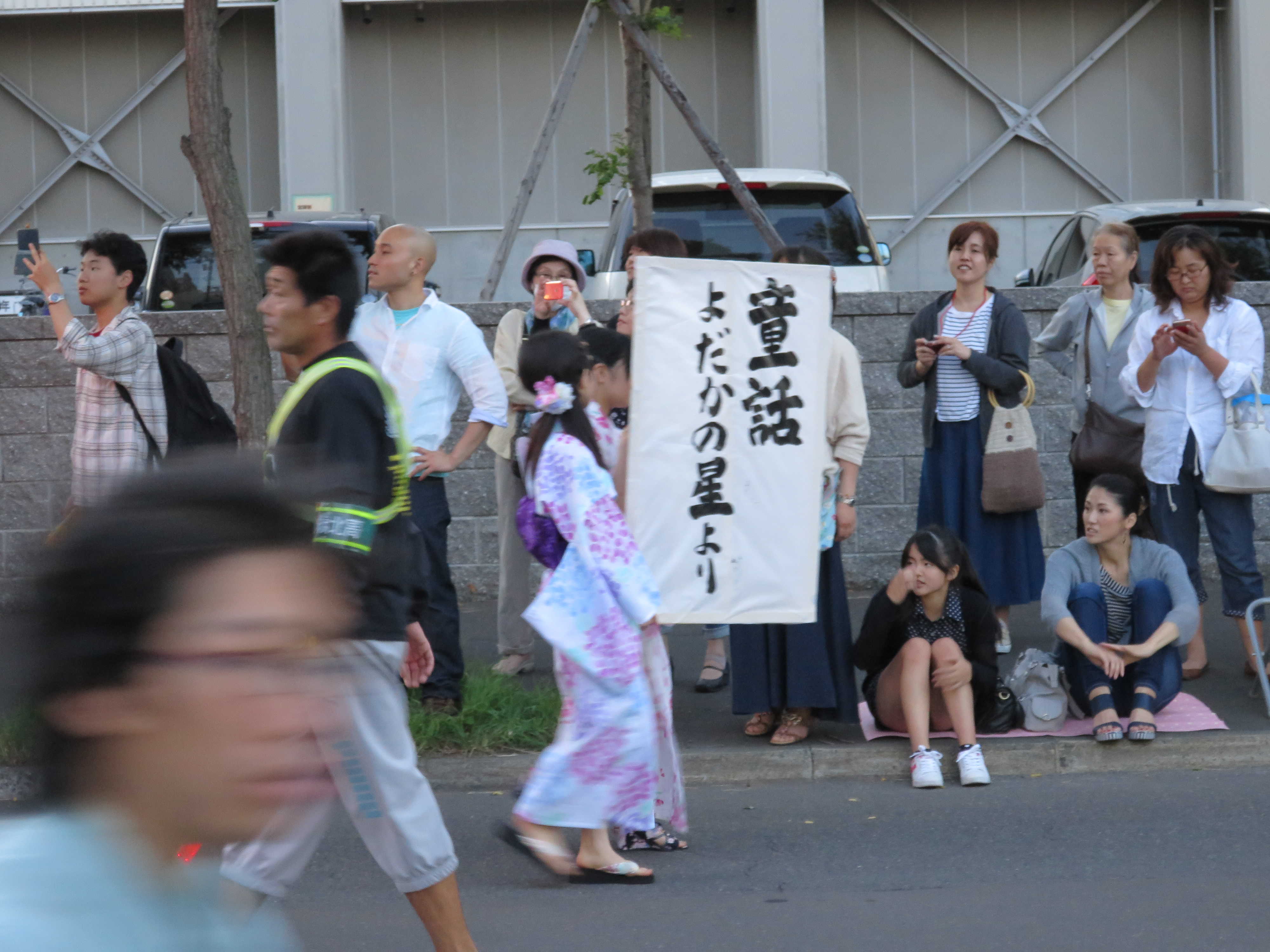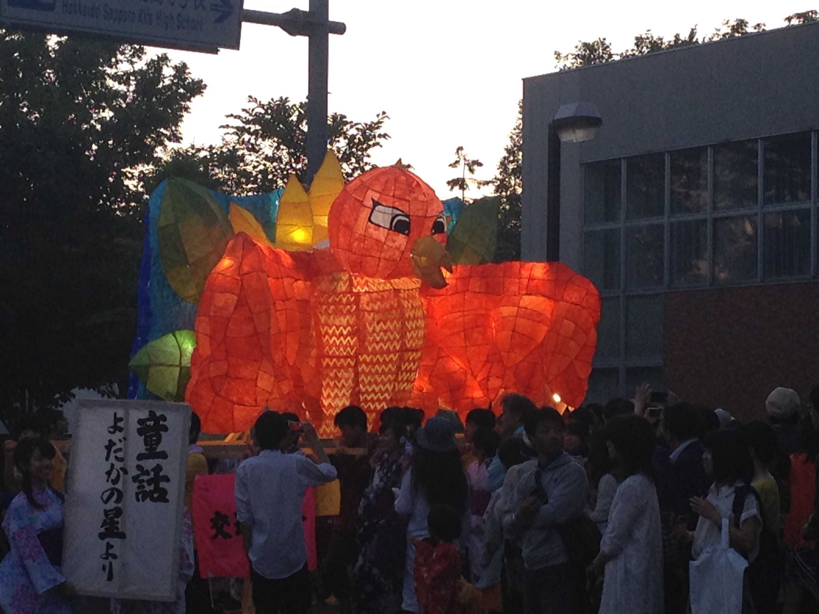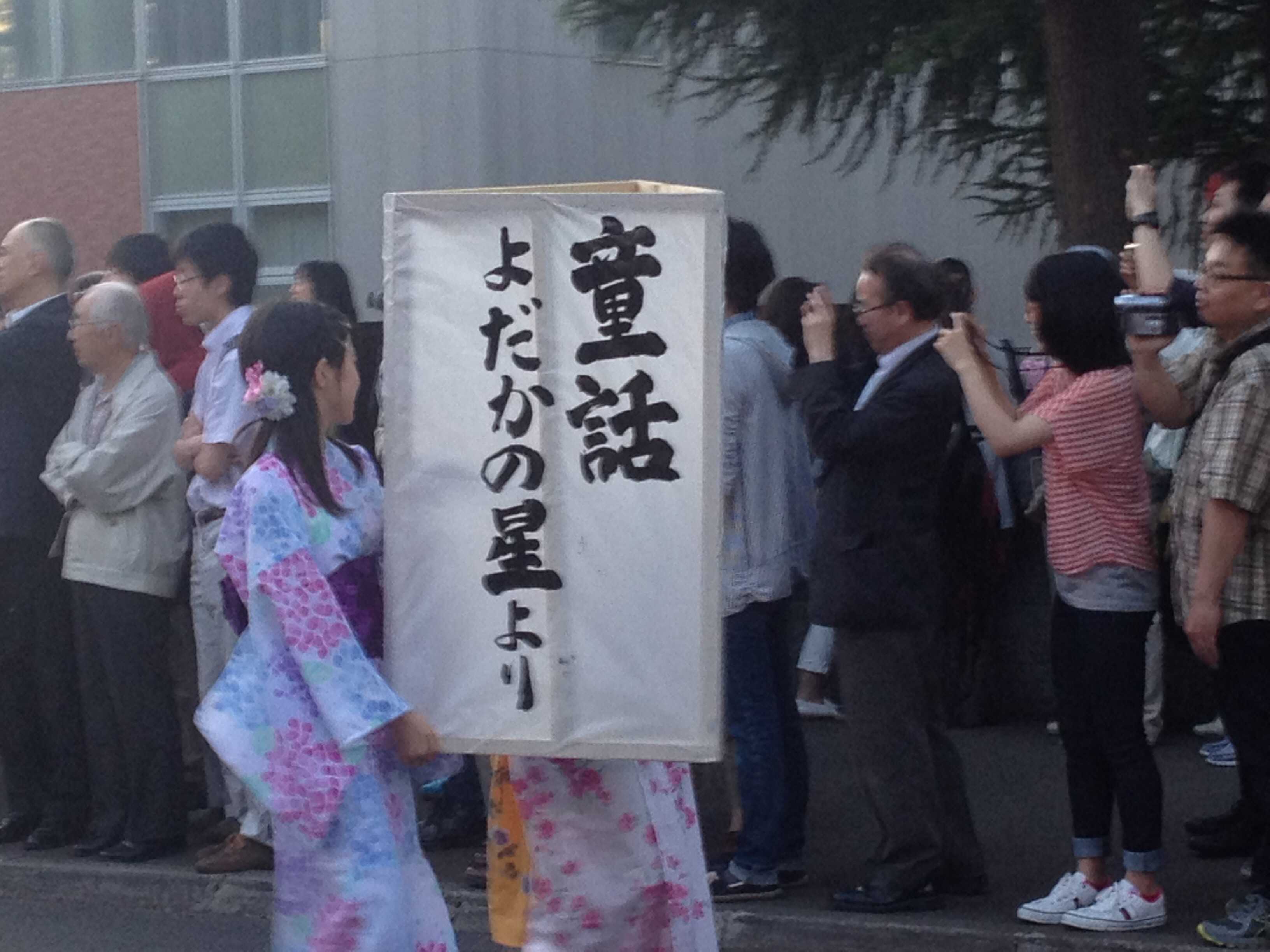 私たち1年7組は宮沢賢治さんの「よだかの星」をテーマに行灯を制作しました。醜いよだかが生まれ変わって、天の星を目指してどこまでもどこまでもまっすぐ飛び続ける美しさ、そして力強さを皆さんぜひご覧ください。