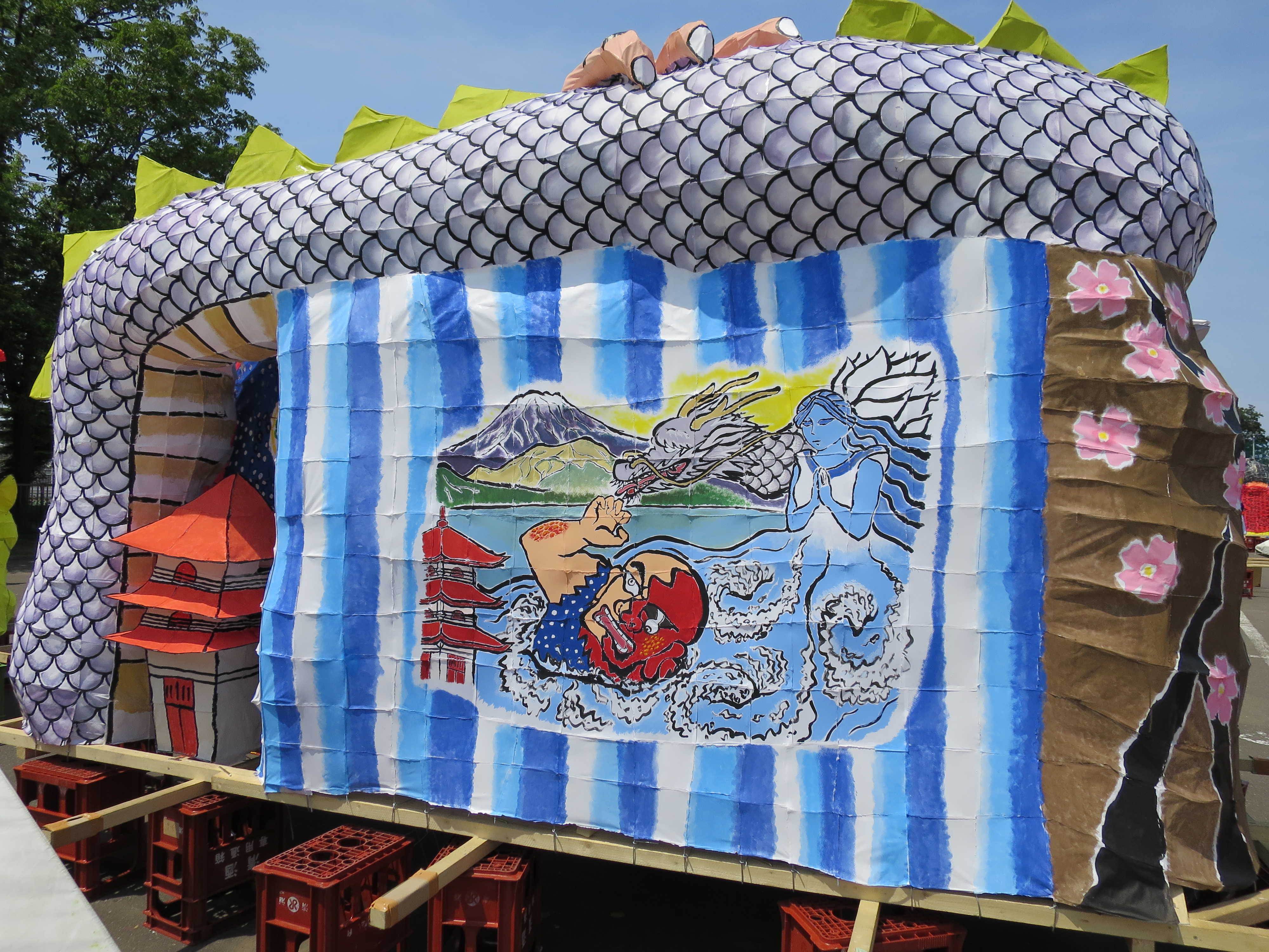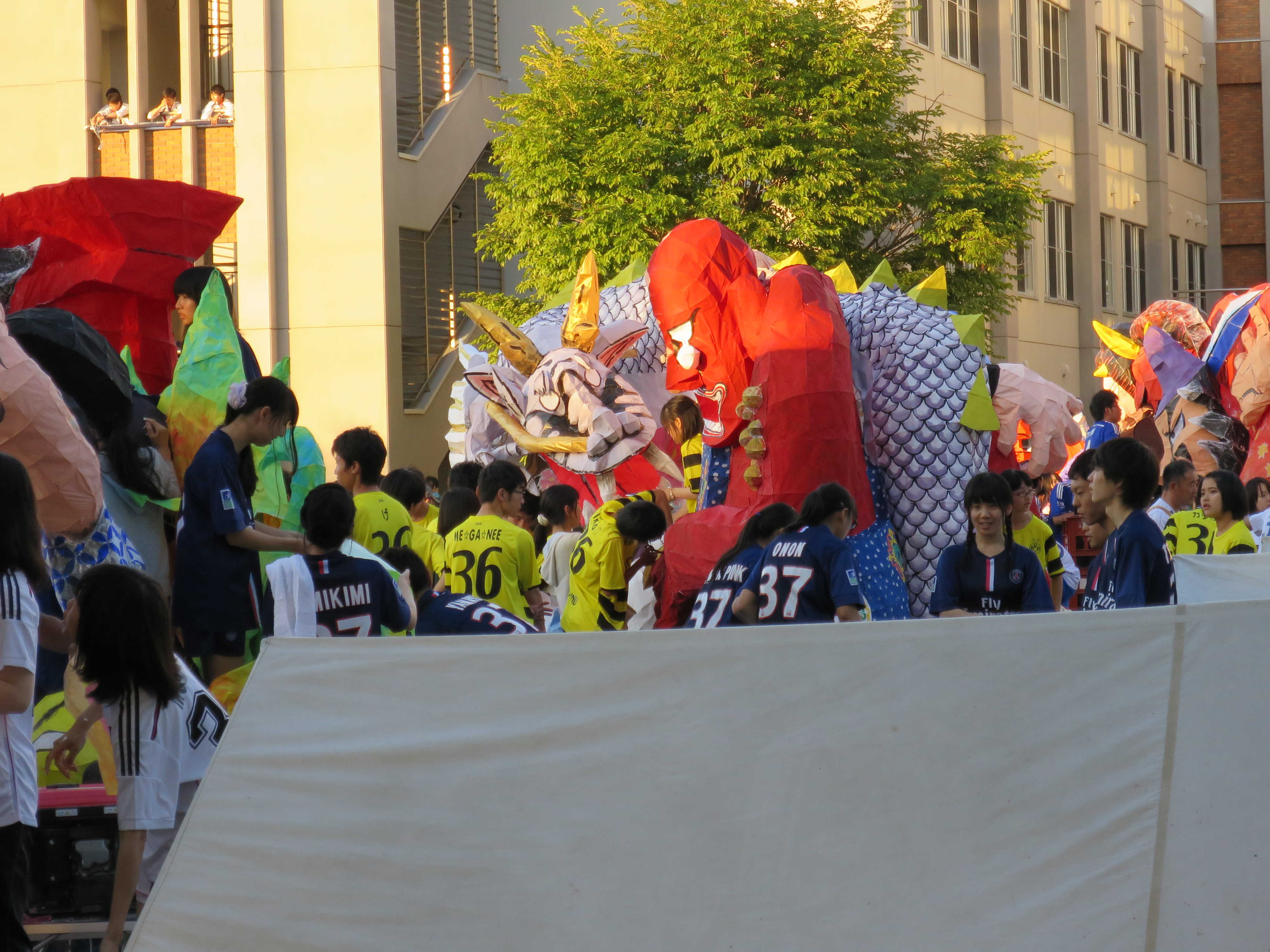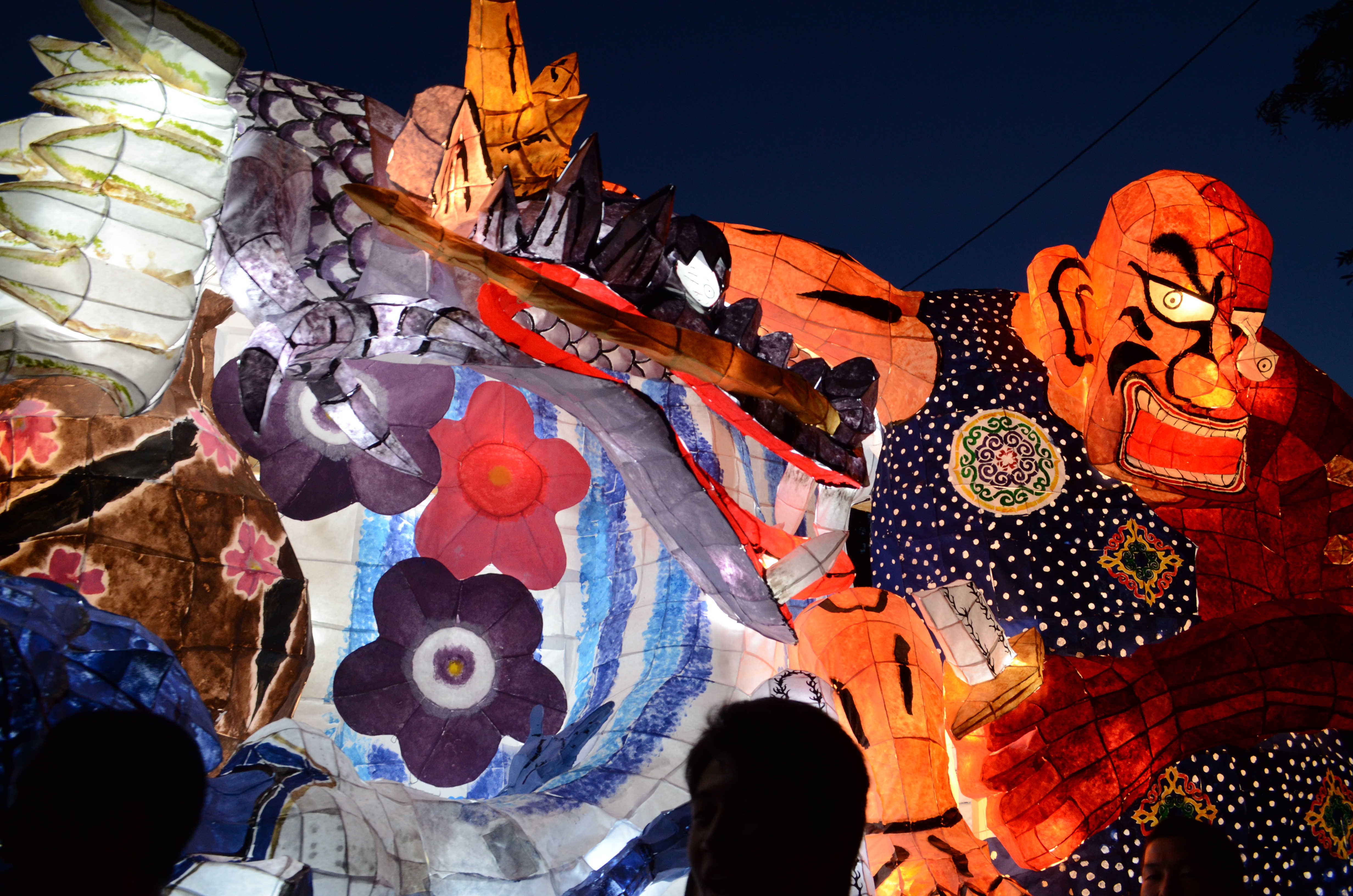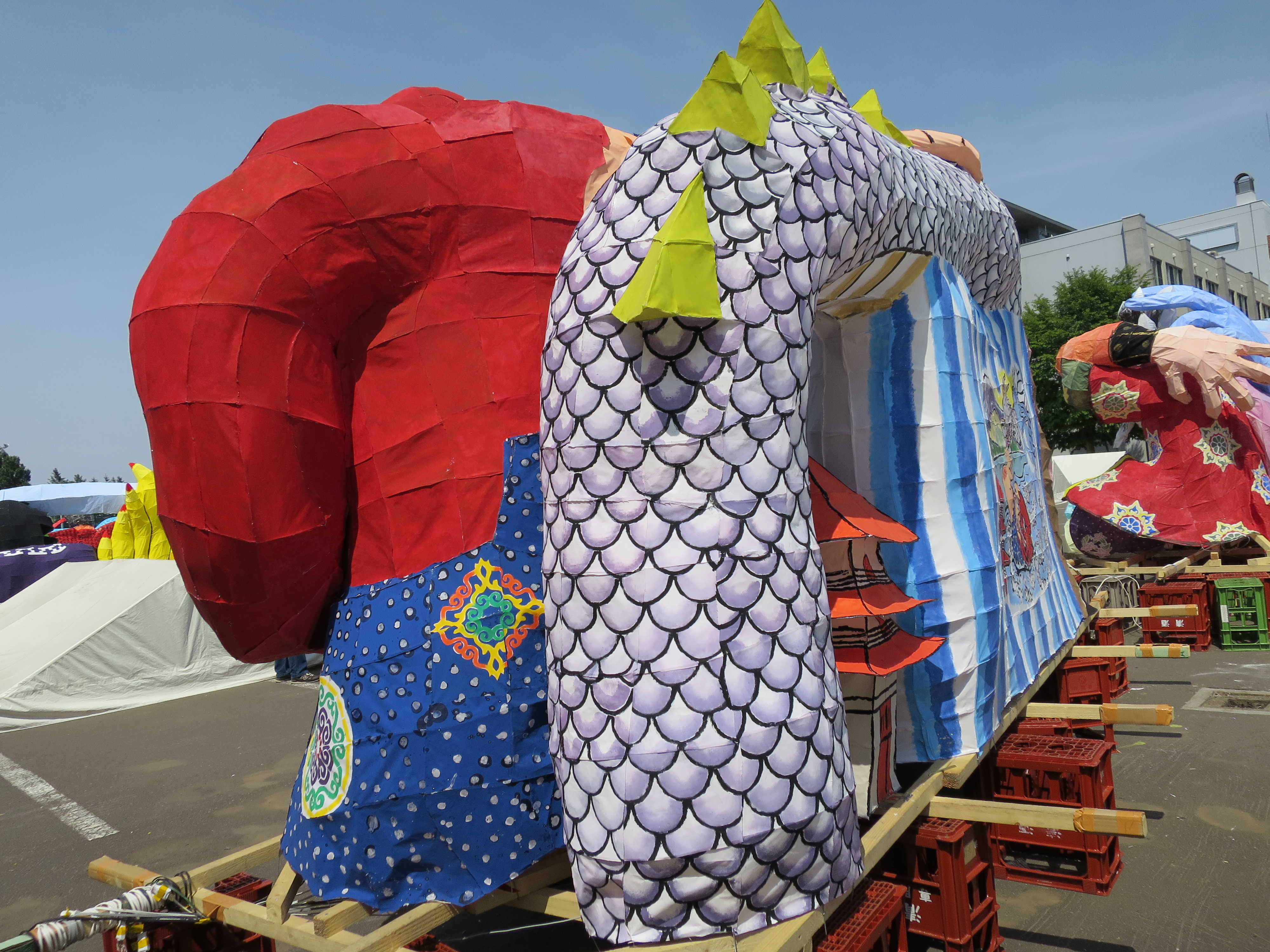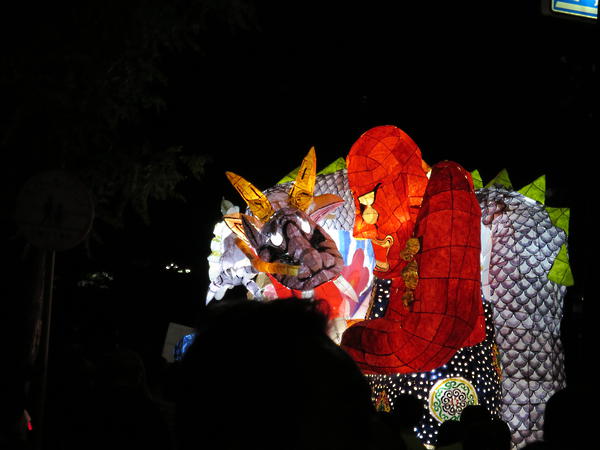 アイヌの伝説によると、洞爺湖に疱瘡を蔓延させて人々を苦しめた疱瘡神を、湖の守り神であり近寄ったものは焼け爛れるという龍神オヤウカムイが追い払ったという。迫力ある戦いの中にも自然の優美さがあり、表裏で時の経過を表現したこの行灯を是非ご覧あれ。