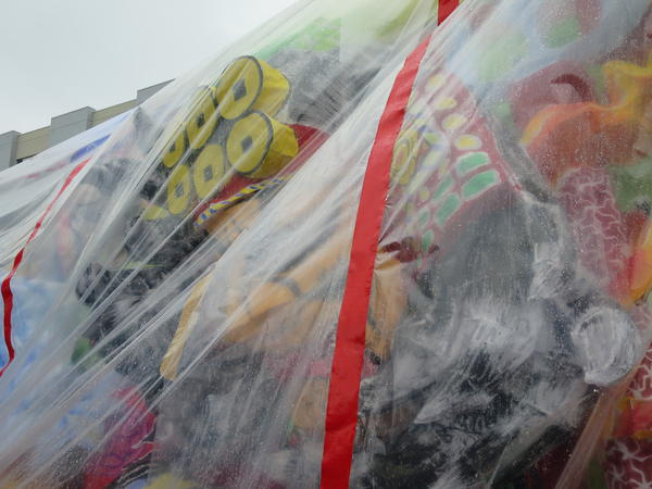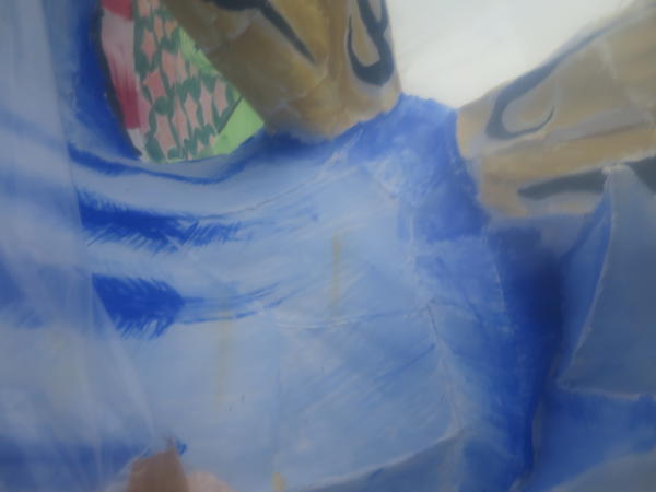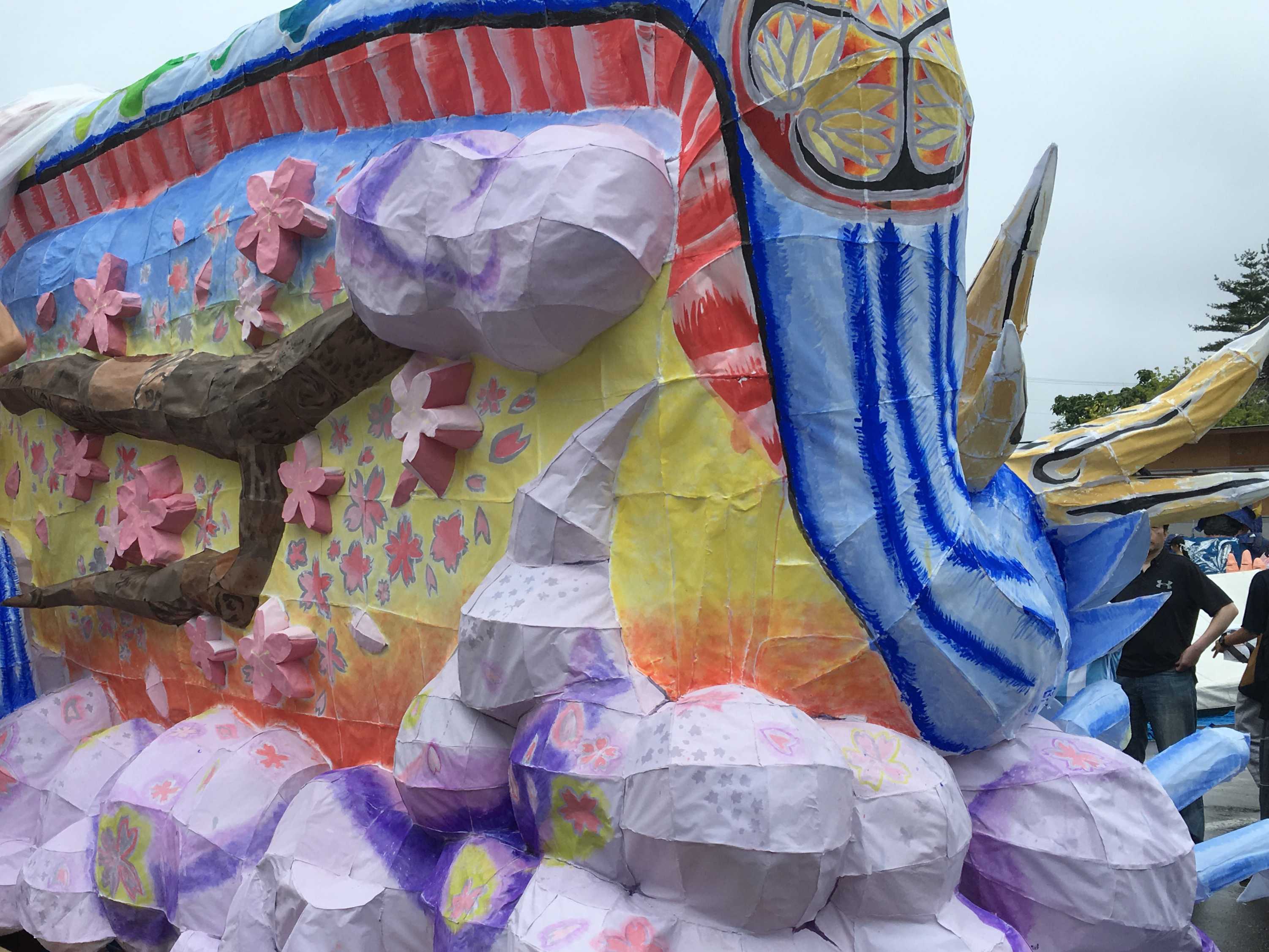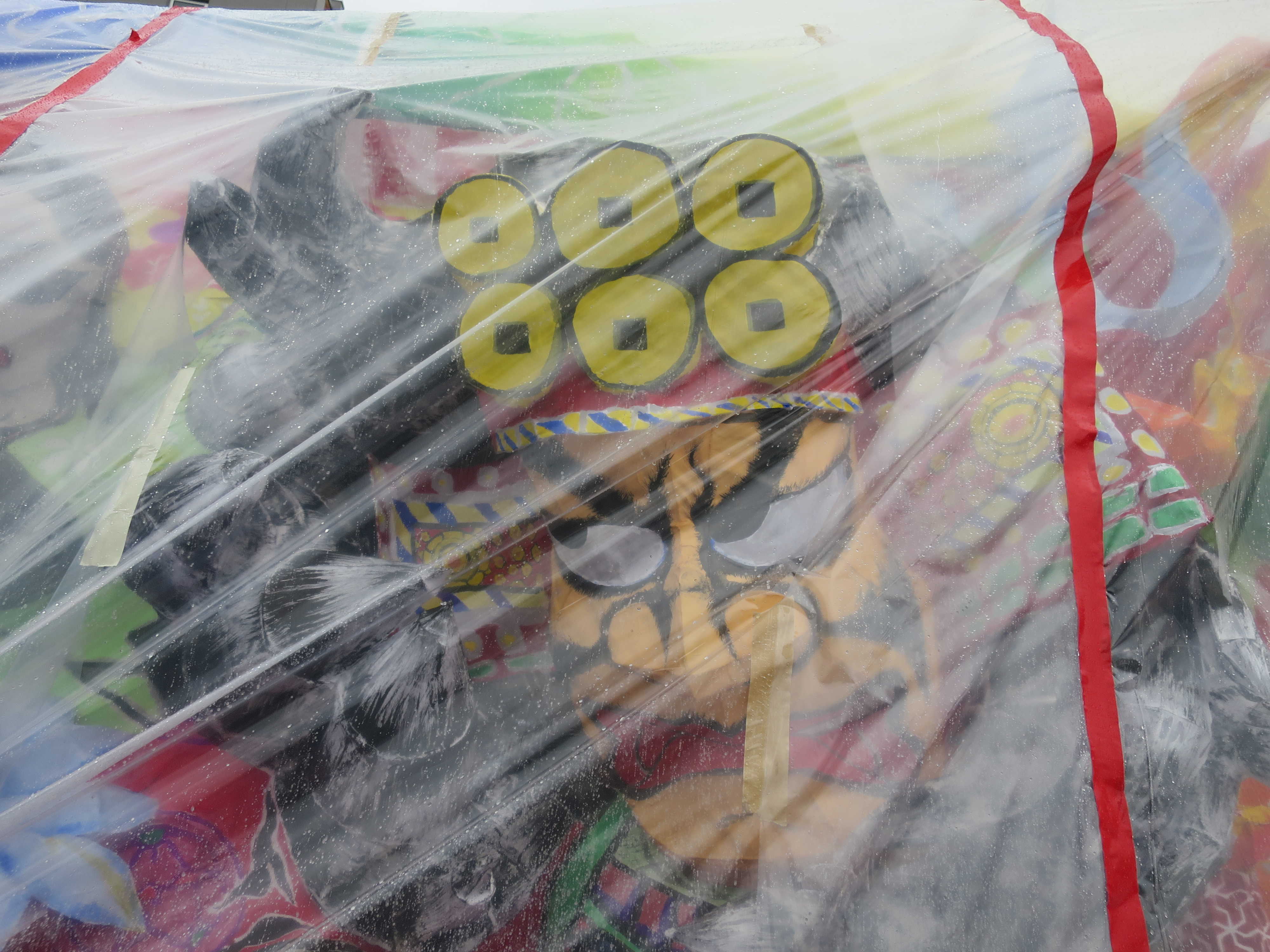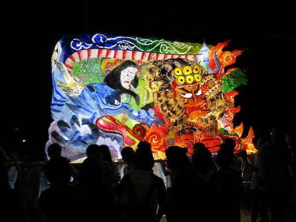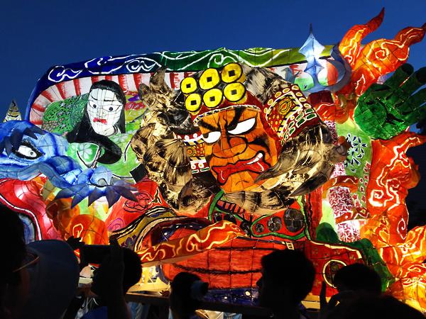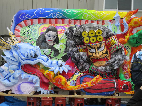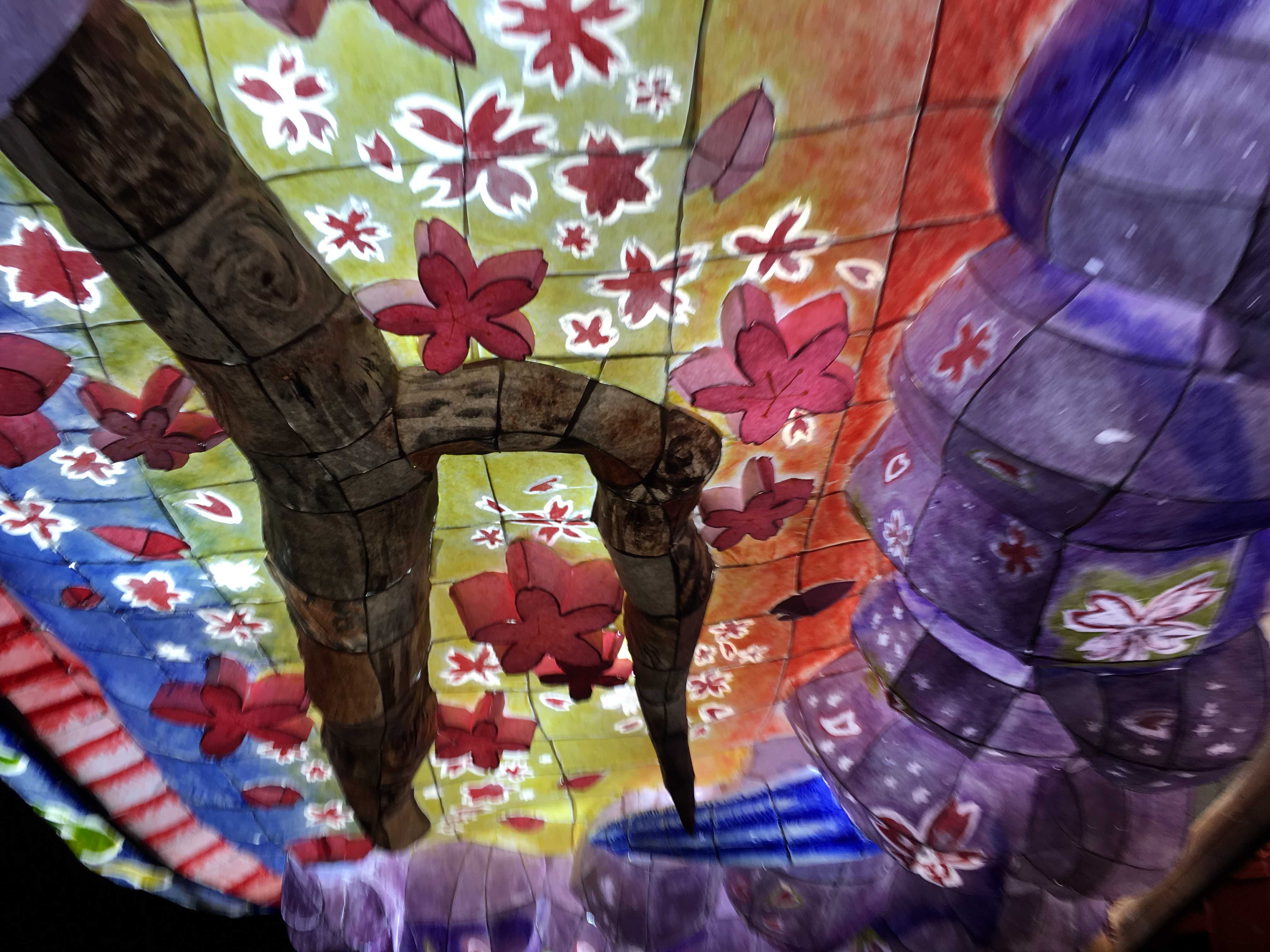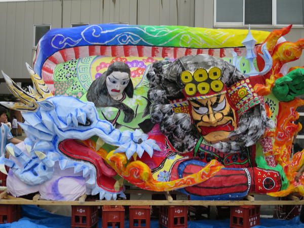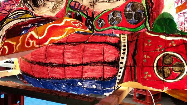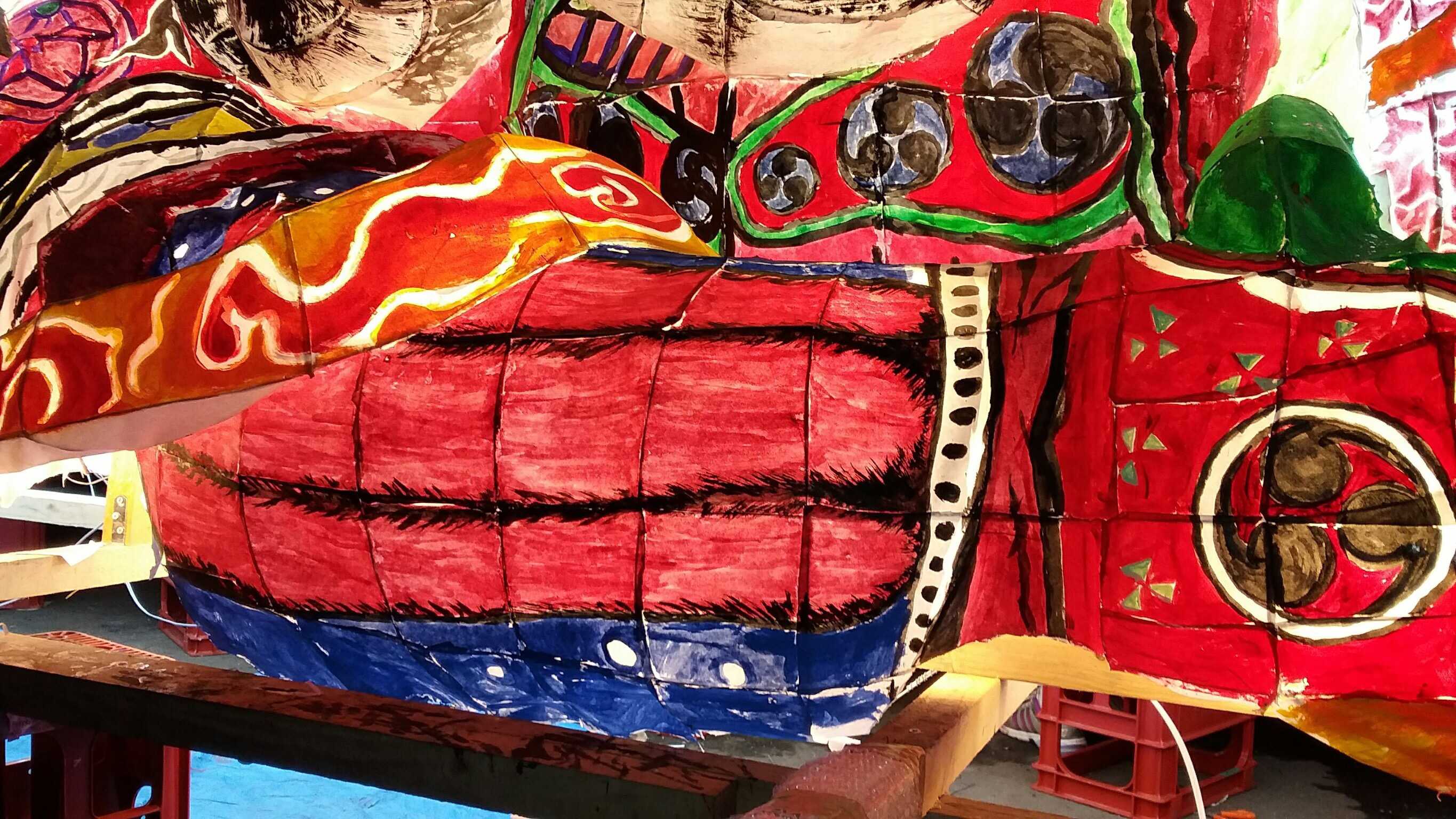 次に龍!北高行灯の中では最高の龍なのでは?という感想です。私のクラスの龍と作り方や塗り方など似ていますが (参考にしていただいたと聞きました)、こちらのほうが全然いいです笑 大きさのバランスもよく針金も丁寧ですし、色塗りもいい (随所にロウが引かれていてみずみずしさを感じます) し電飾もいいです。素晴らしい。