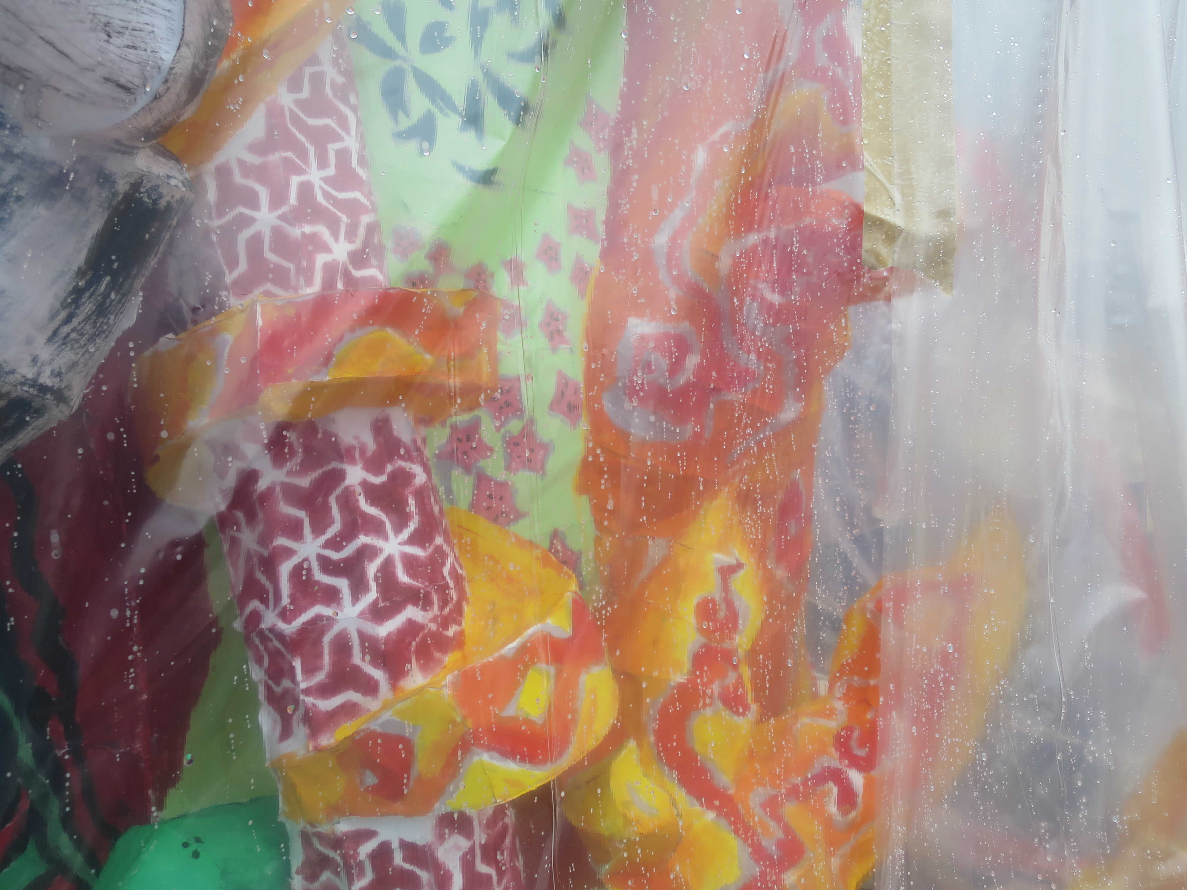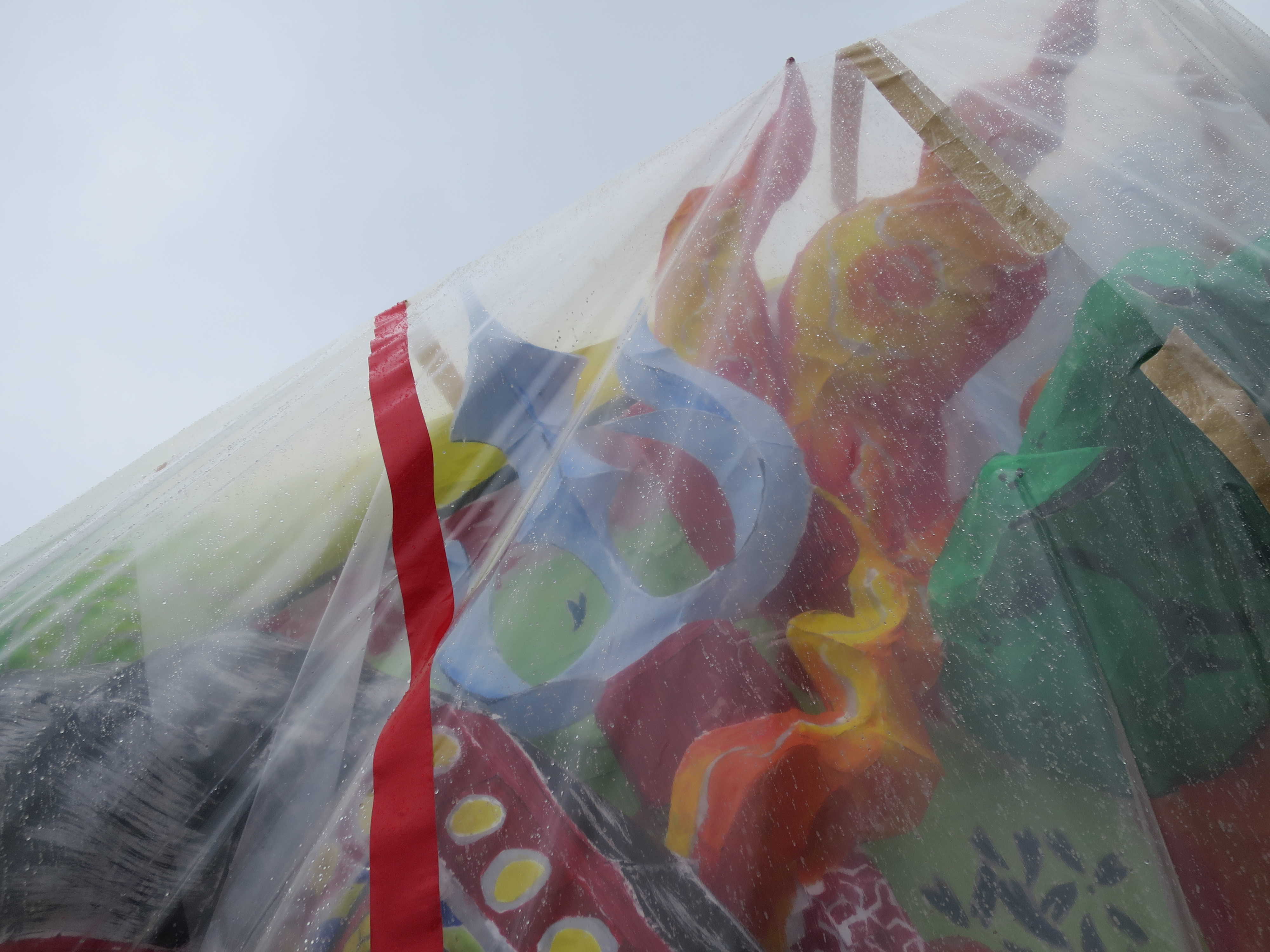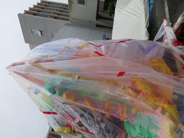 壁はメリット・デメリットが大きい手法だと思っています。 まずメリットとしてはコスパがいいことです。壁は針金も簡単 (一部立体になっているものもありますが、それでも表面積が小さいことや多少おかしくても気にならない) ですし、紙貼りについても基本平面なのでとても簡単です。後塗り多用の昨今からすると針金・紙貼りはスケジュール的に完全にボトルネックになるので、この時間を短縮できるのはかなりいいです。 次に北高行灯の規格の奥行きのなさをカバーできること。構図的にはこれがでかいです。北高行灯は奥行きが1.8mでかなり小さく、身体全部を出しているとどうしても窮屈になってしまいます。壁に身体を埋めて、本当に重要な部分だけを立体にすることで窮屈さは出なくなるように思います。