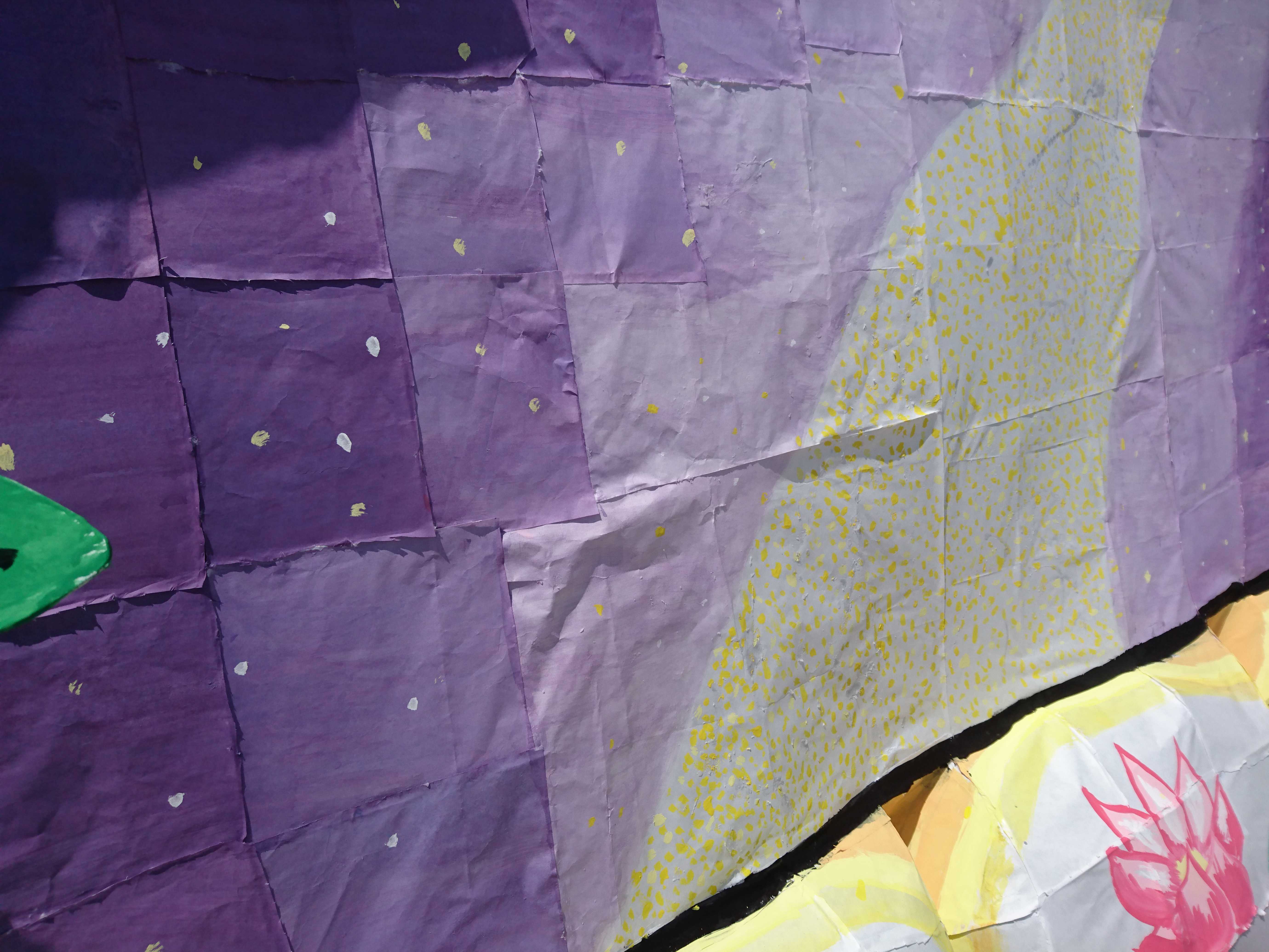 後塗りが多く、2年生ということで時間のない中よく挑戦したなと思いました。 あと、他クラスと比較すると、夜見たときに全体的にやや暗くなってしまっていたのがもったいなかったです。