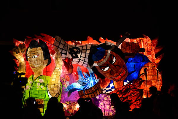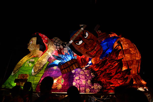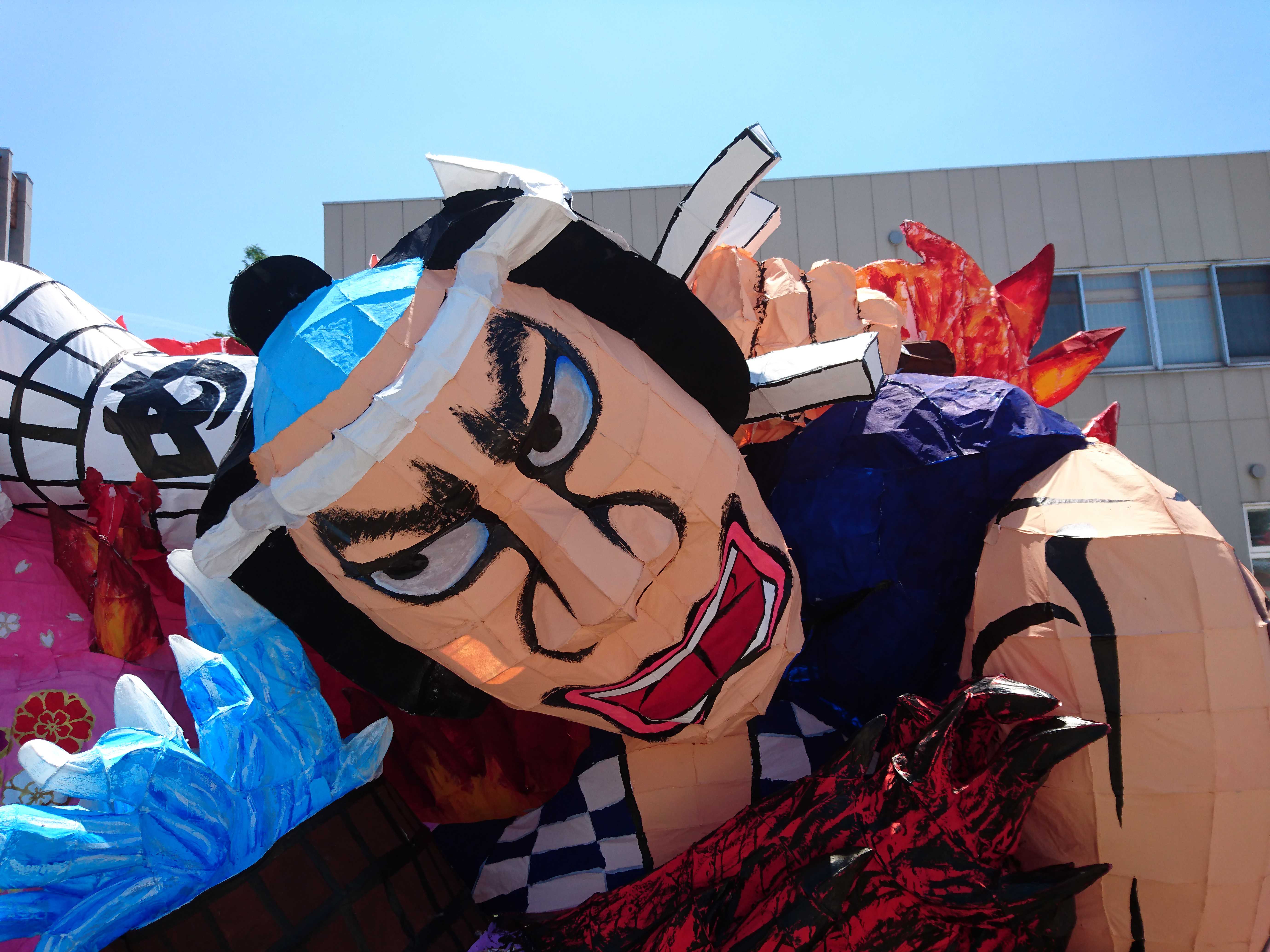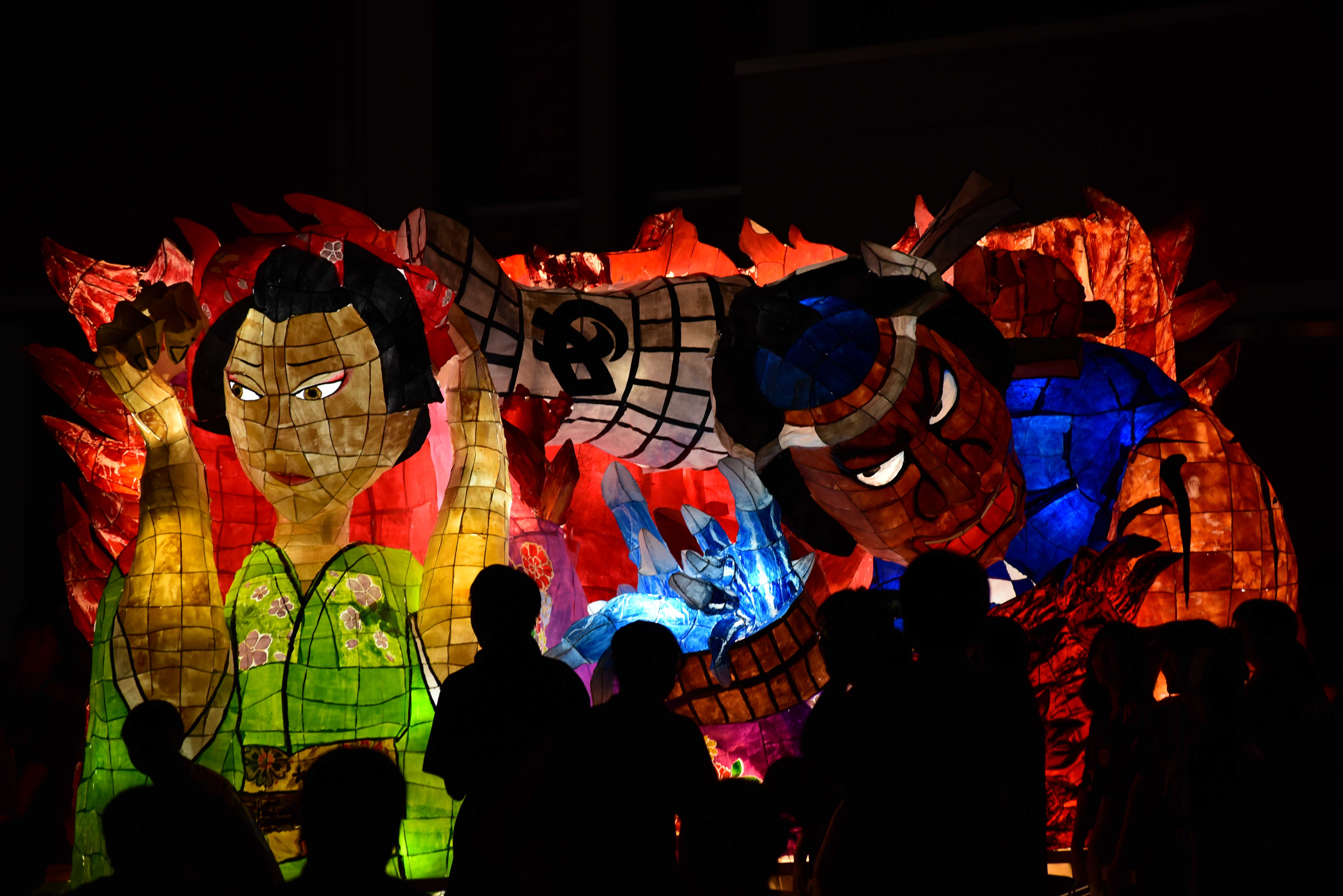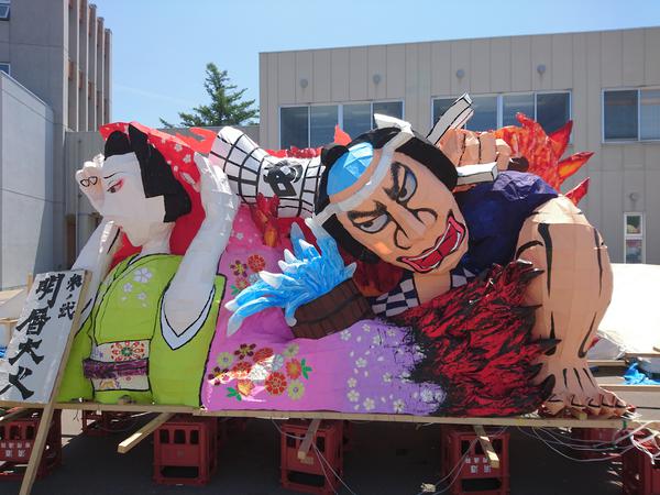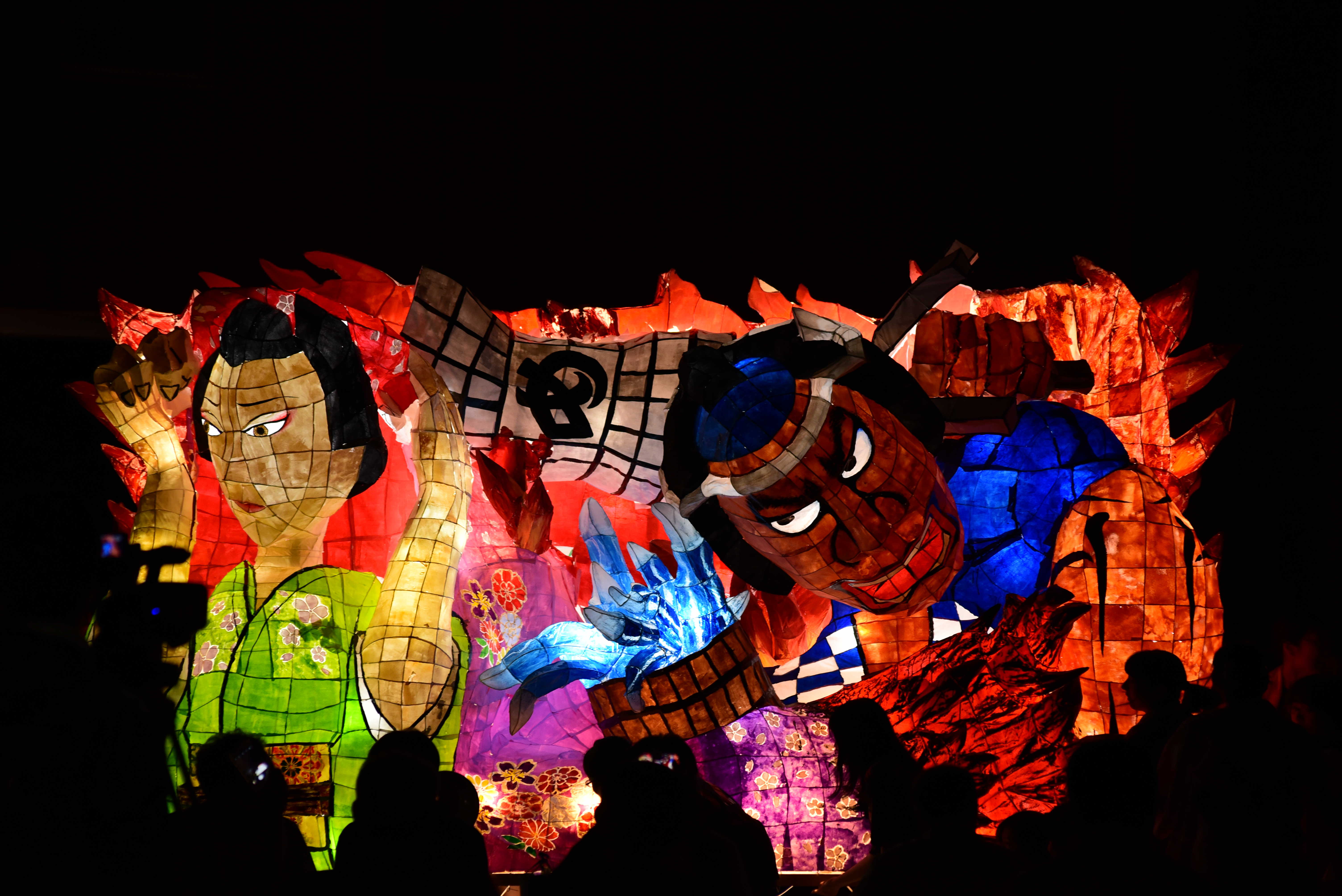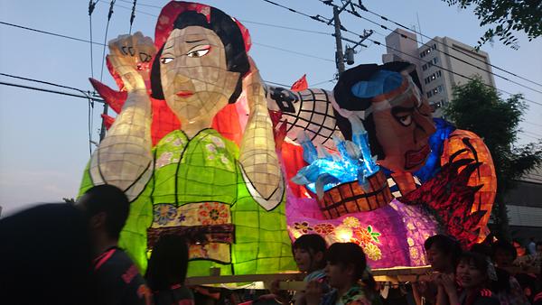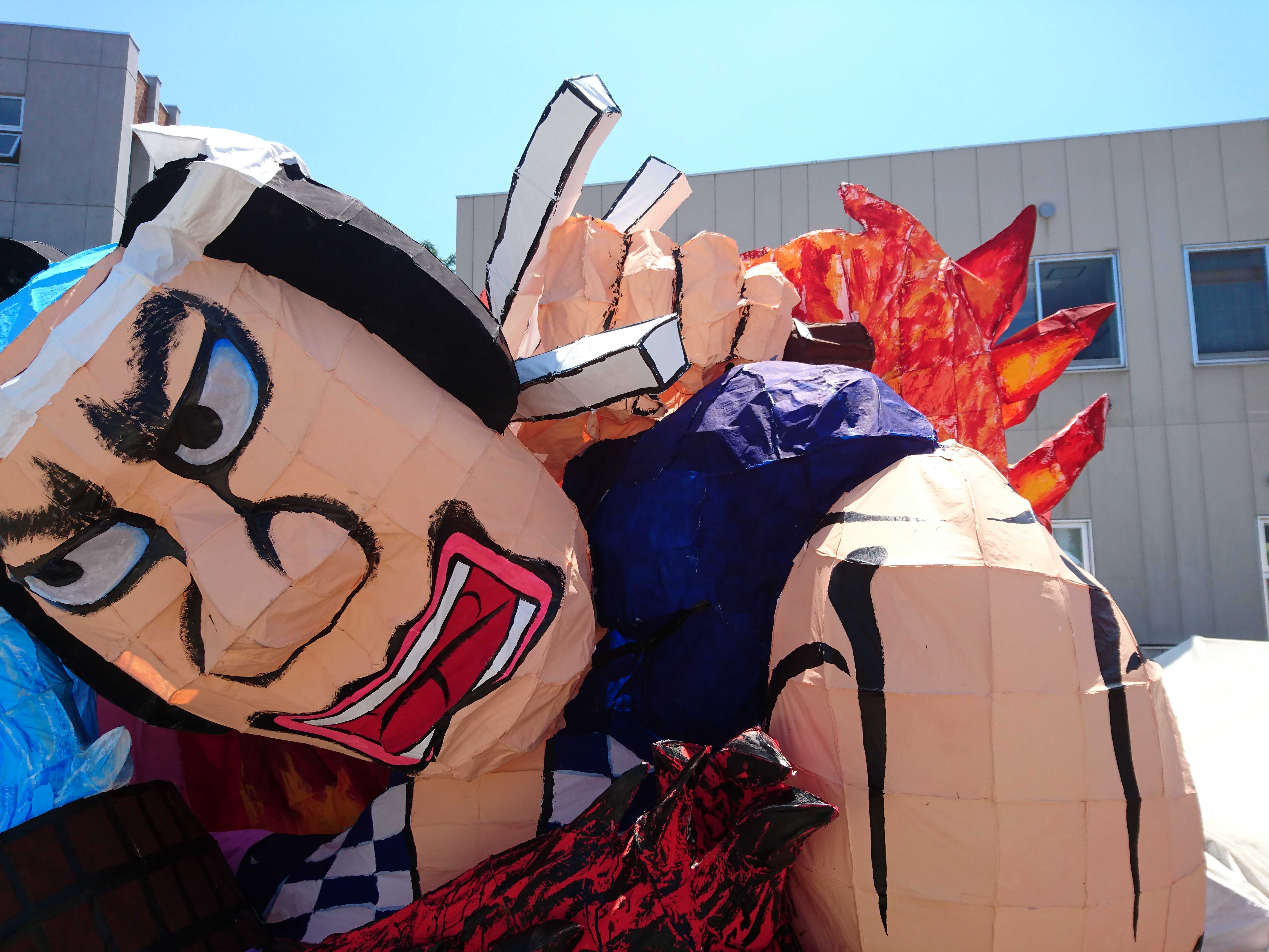 男性は顔・体が傾いていて、左足も作られているので、非常に躍動感が伝わってきました。 女性を男性と同じ大きさで作る行灯はあまりないように思いますが、特に違和感はないと思いました。逆に小さく作っていた方が変な感じになっていたのではないでしょうか。 ともに顔・胴体の針金が綺麗でした。