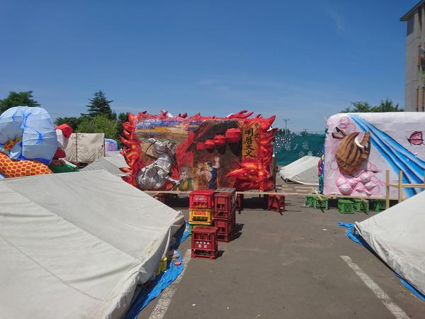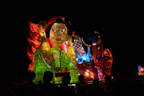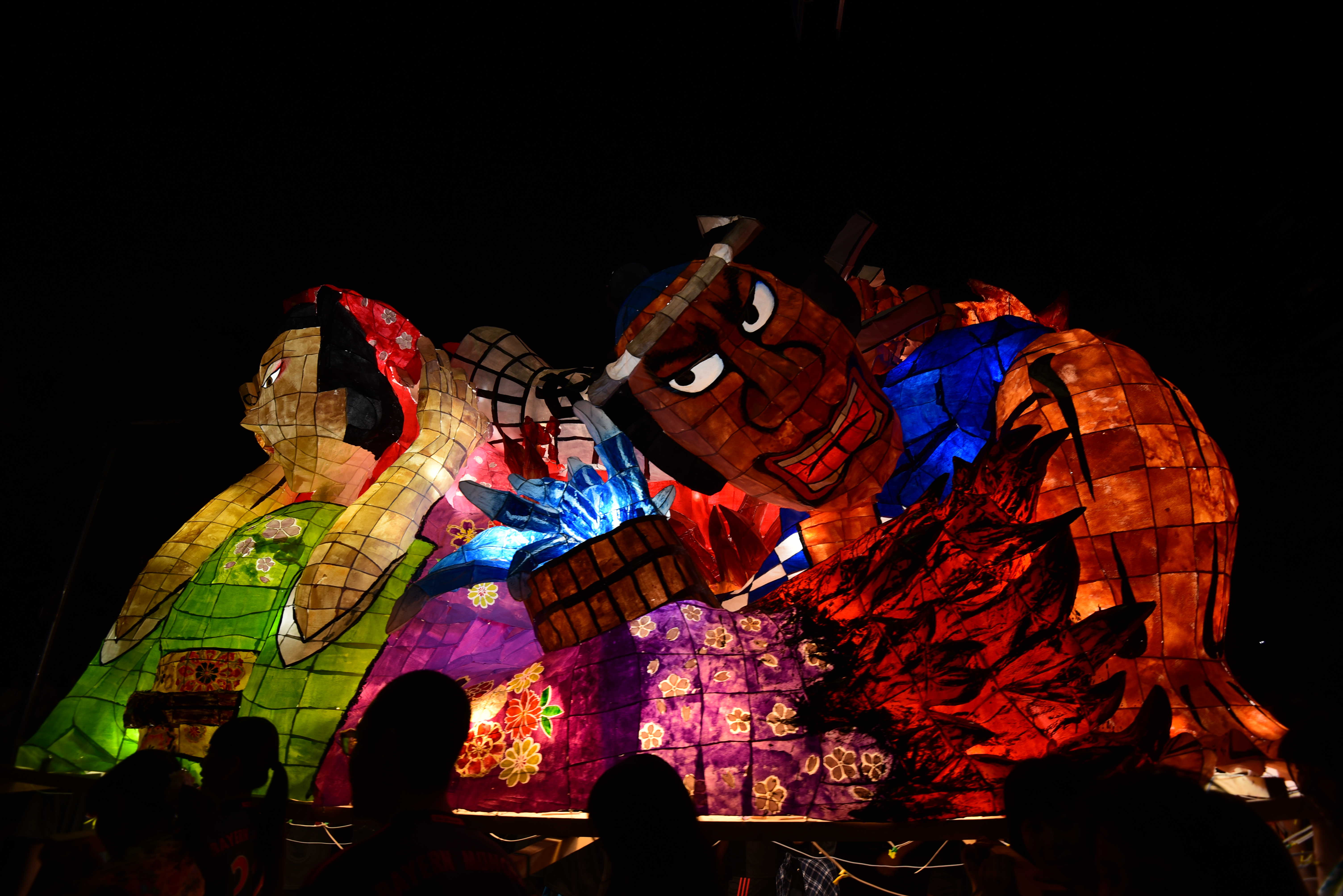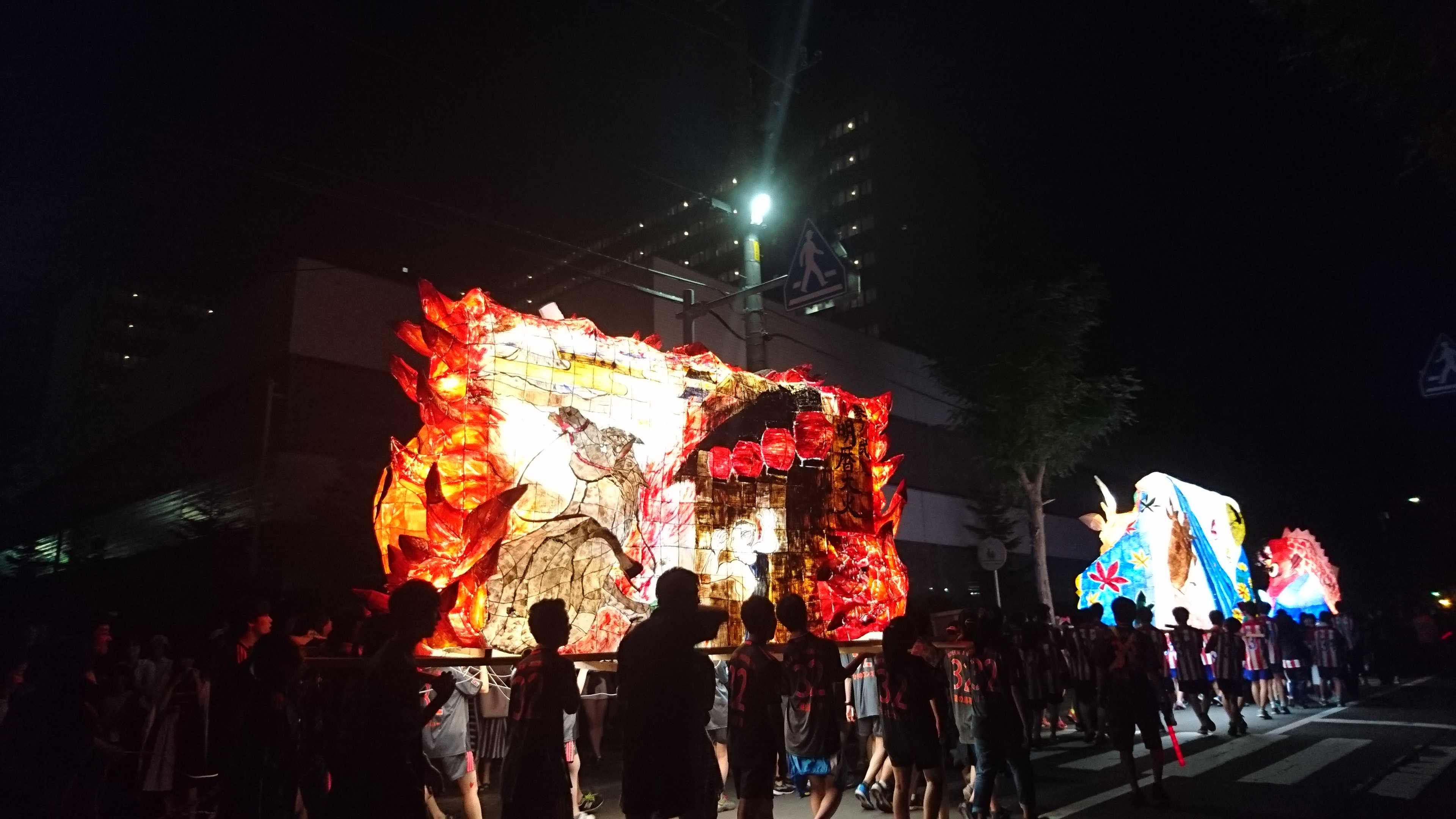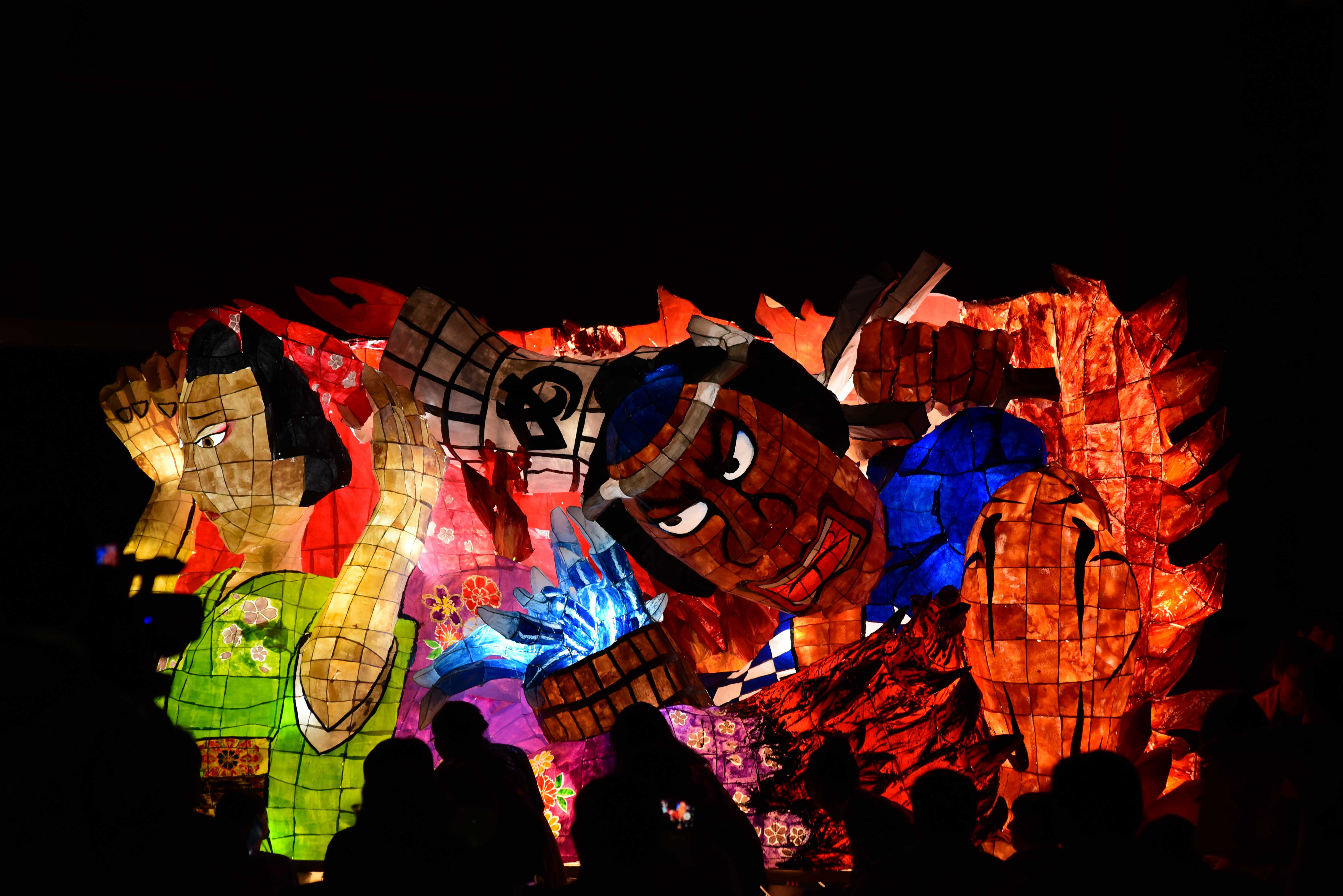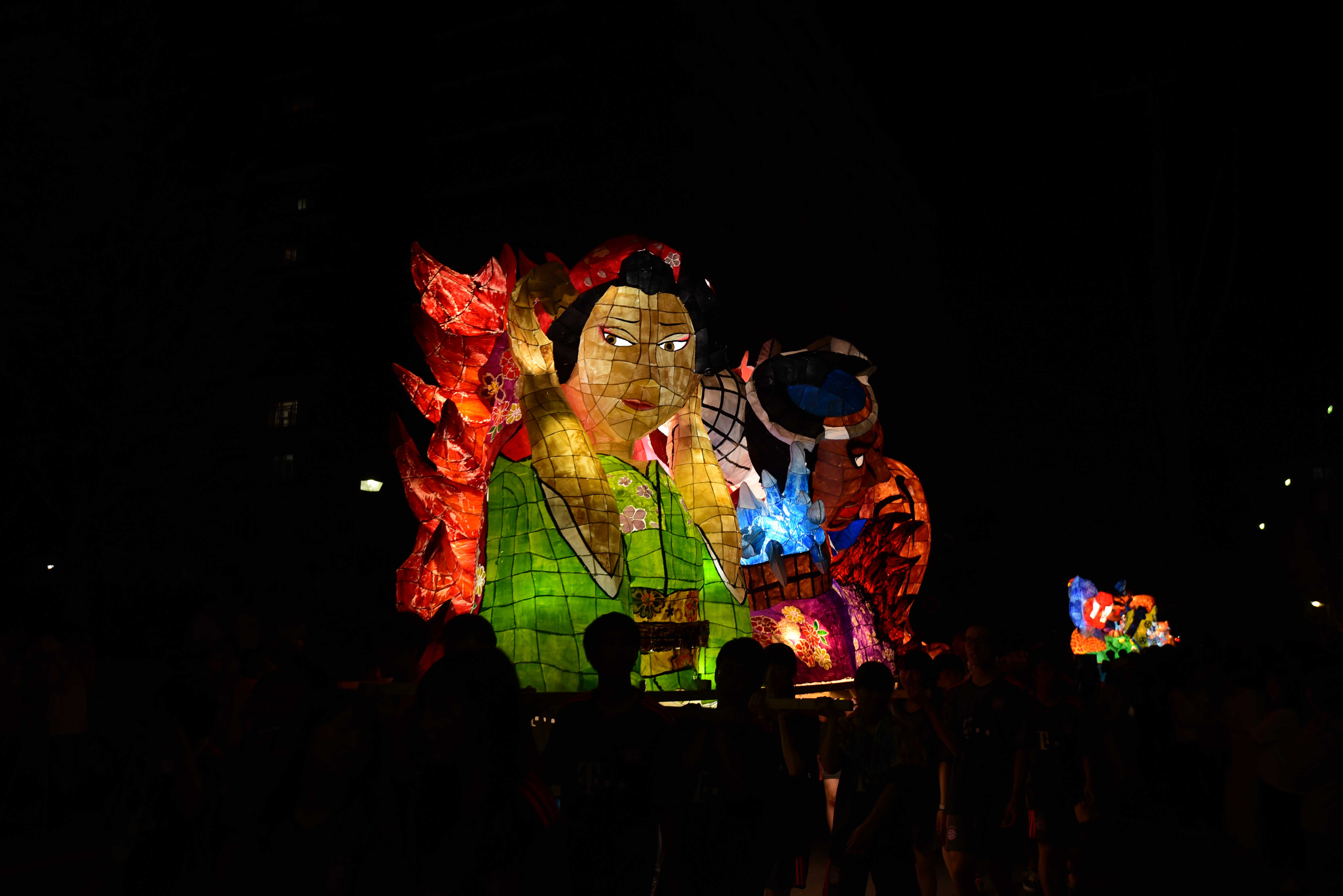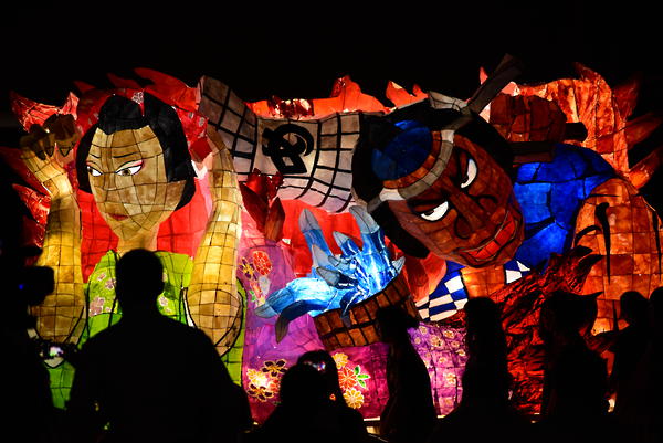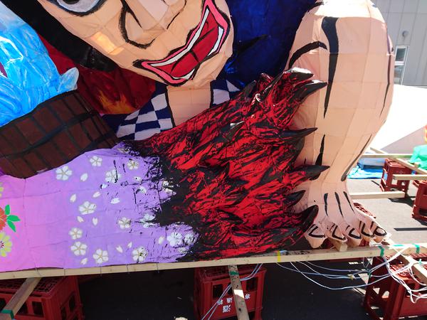 男性は顔・体が傾いていて、左足も作られているので、非常に躍動感が伝わってきました。 女性を男性と同じ大きさで作る行灯はあまりないように思いますが、特に違和感はないと思いました。逆に小さく作っていた方が変な感じになっていたのではないでしょうか。 ともに顔・胴体の針金が綺麗でした。