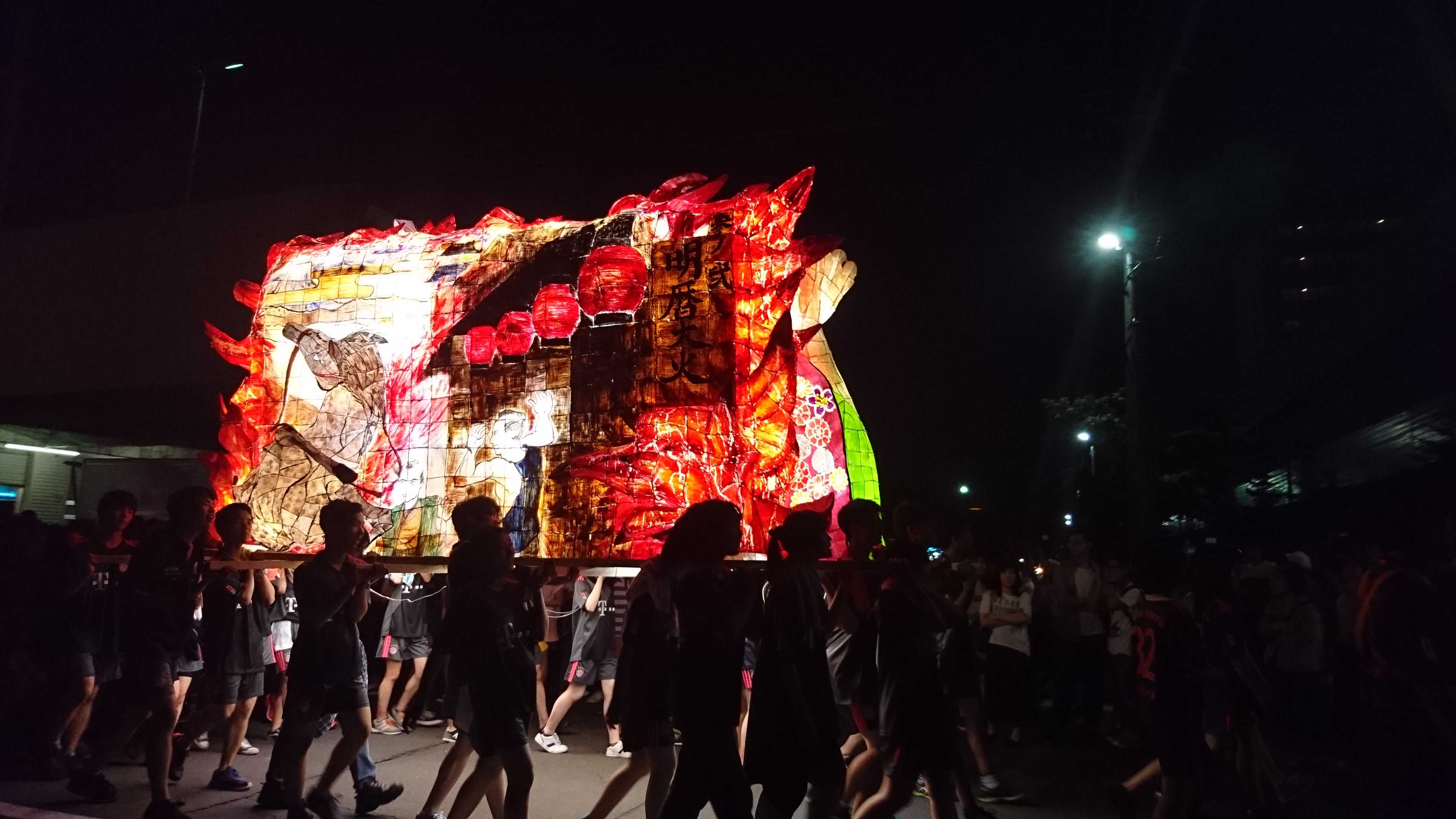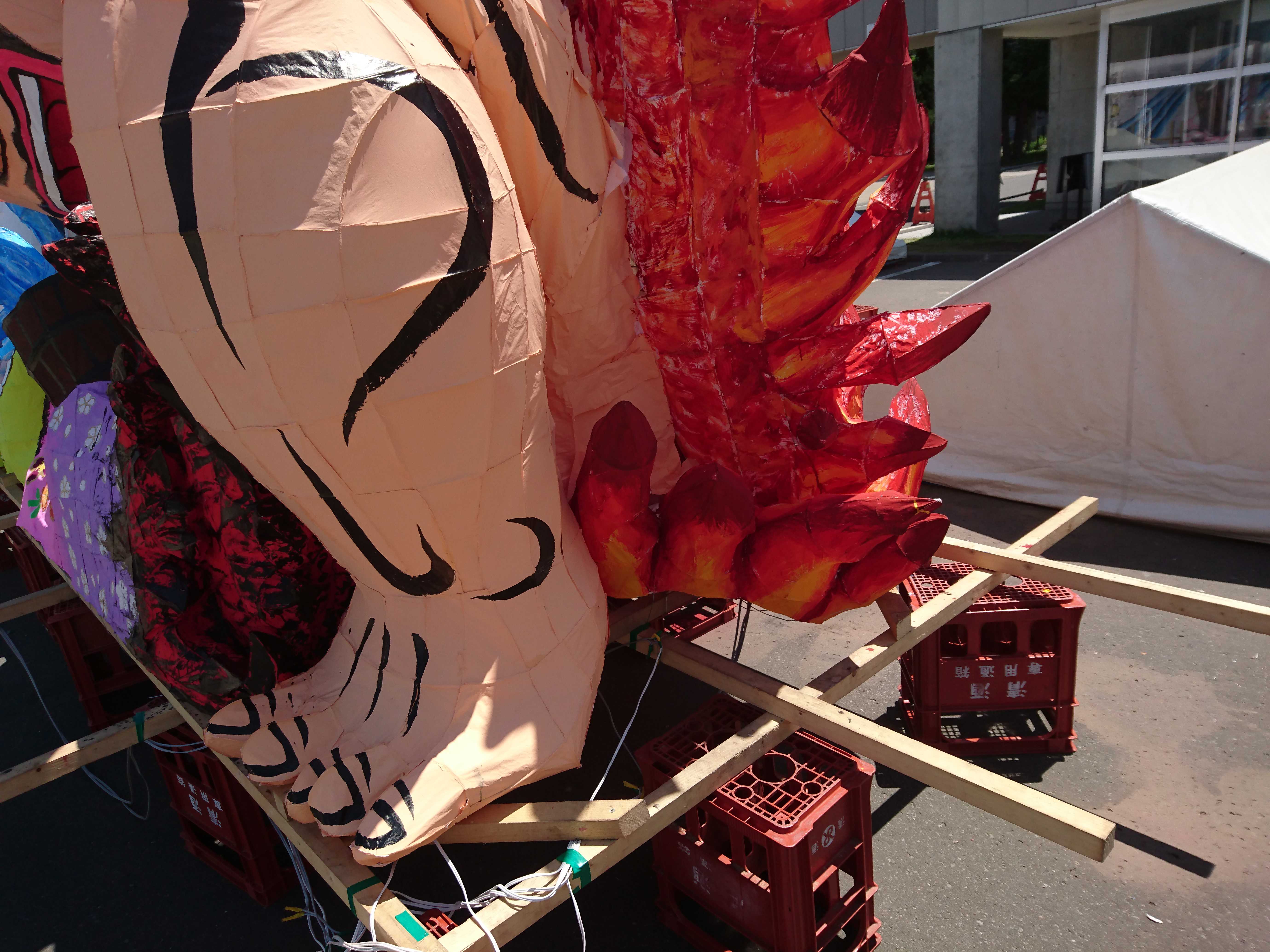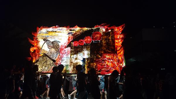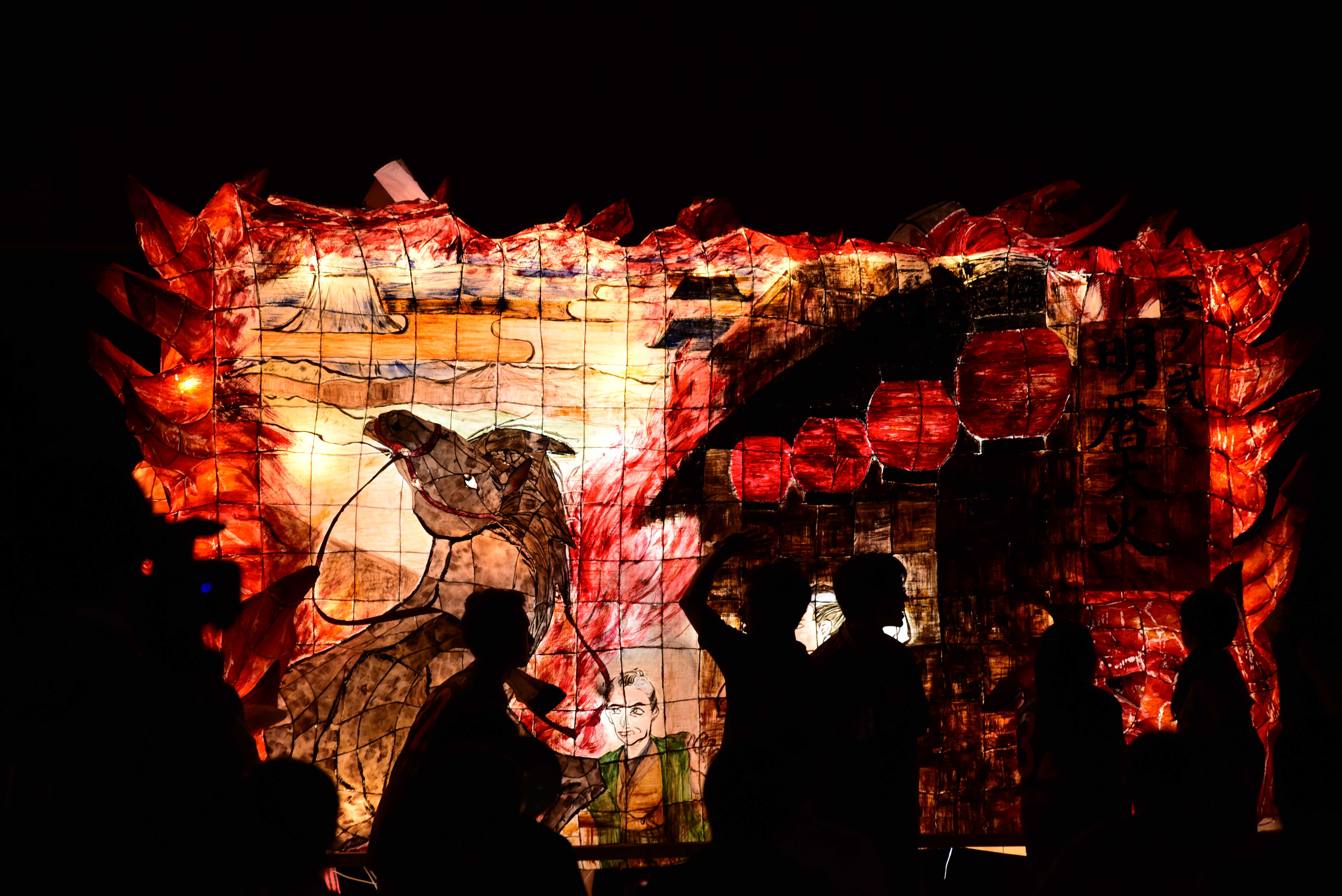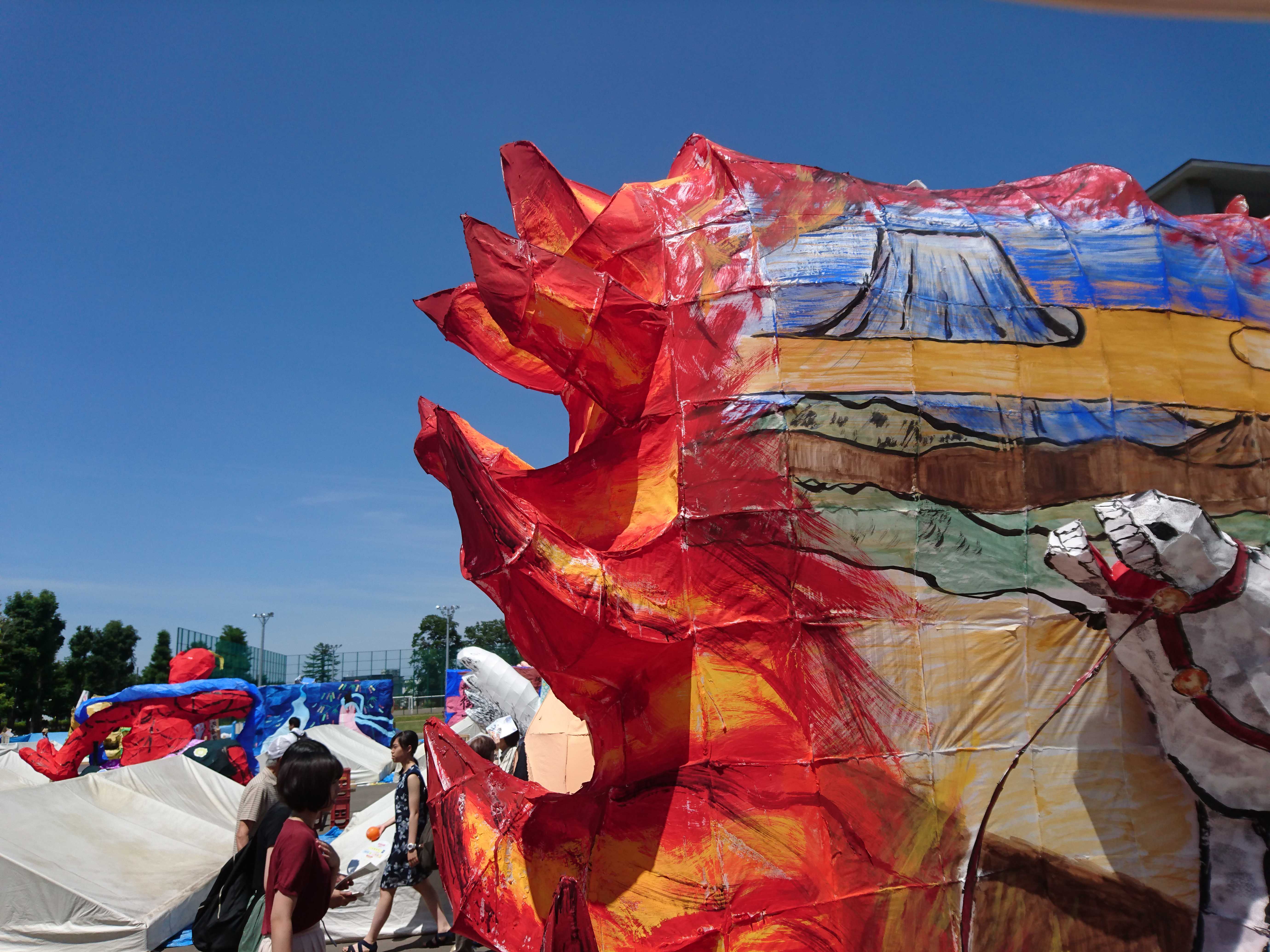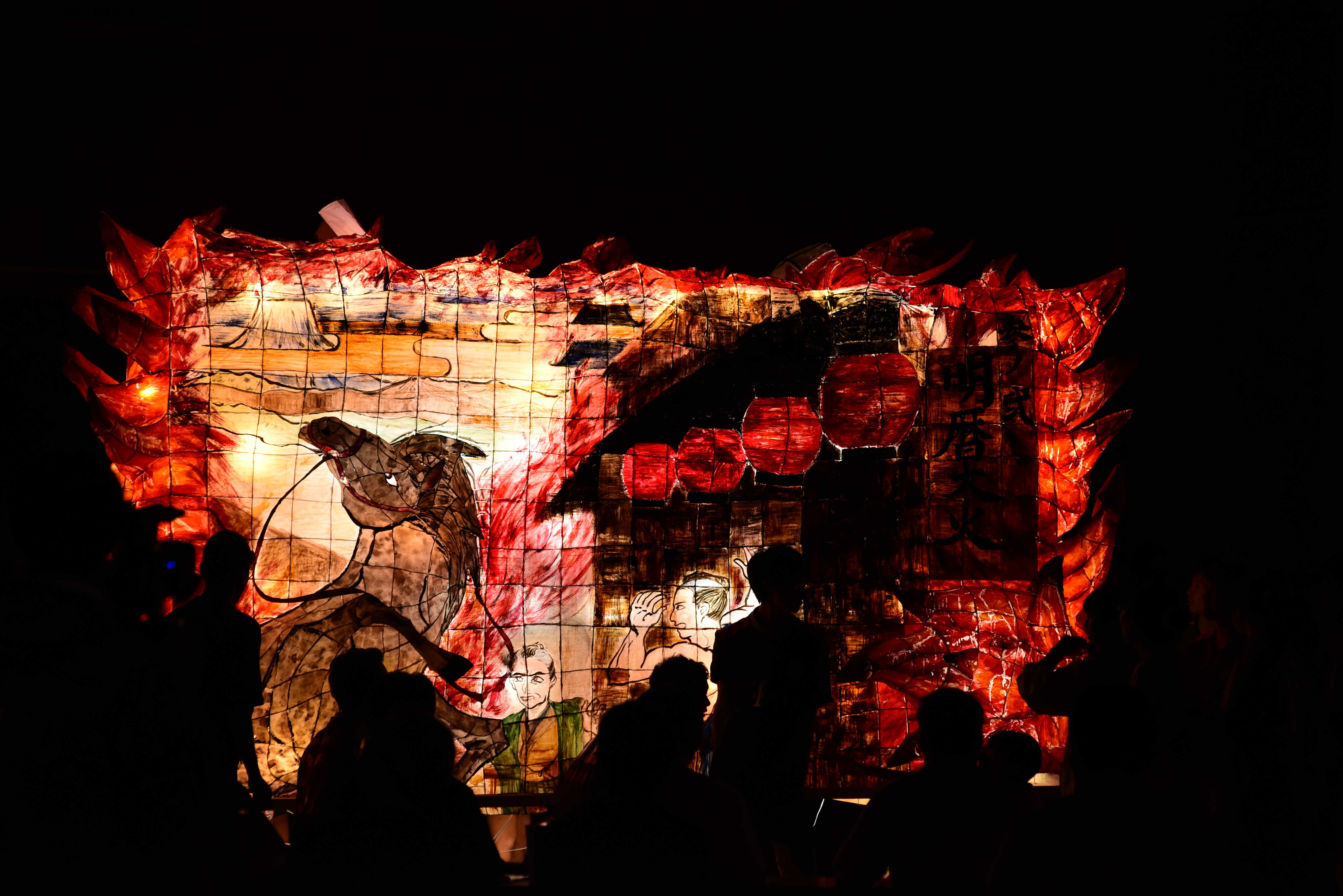 近くで見ると裏の立体になっている馬の針金の精度がすごかったです。 全体的に濃い色が多かったので、光らせたときに暗くなってしまったのがもったいなかったです。電球を増やして解決できればいいのですが、数にも制限があるので、事前にどのくらいの濃さだとどれくらい光を通すのかを実験する必要があるのかななんて思いました。
