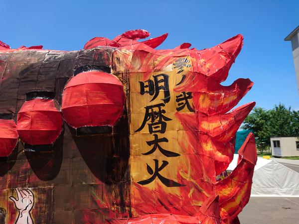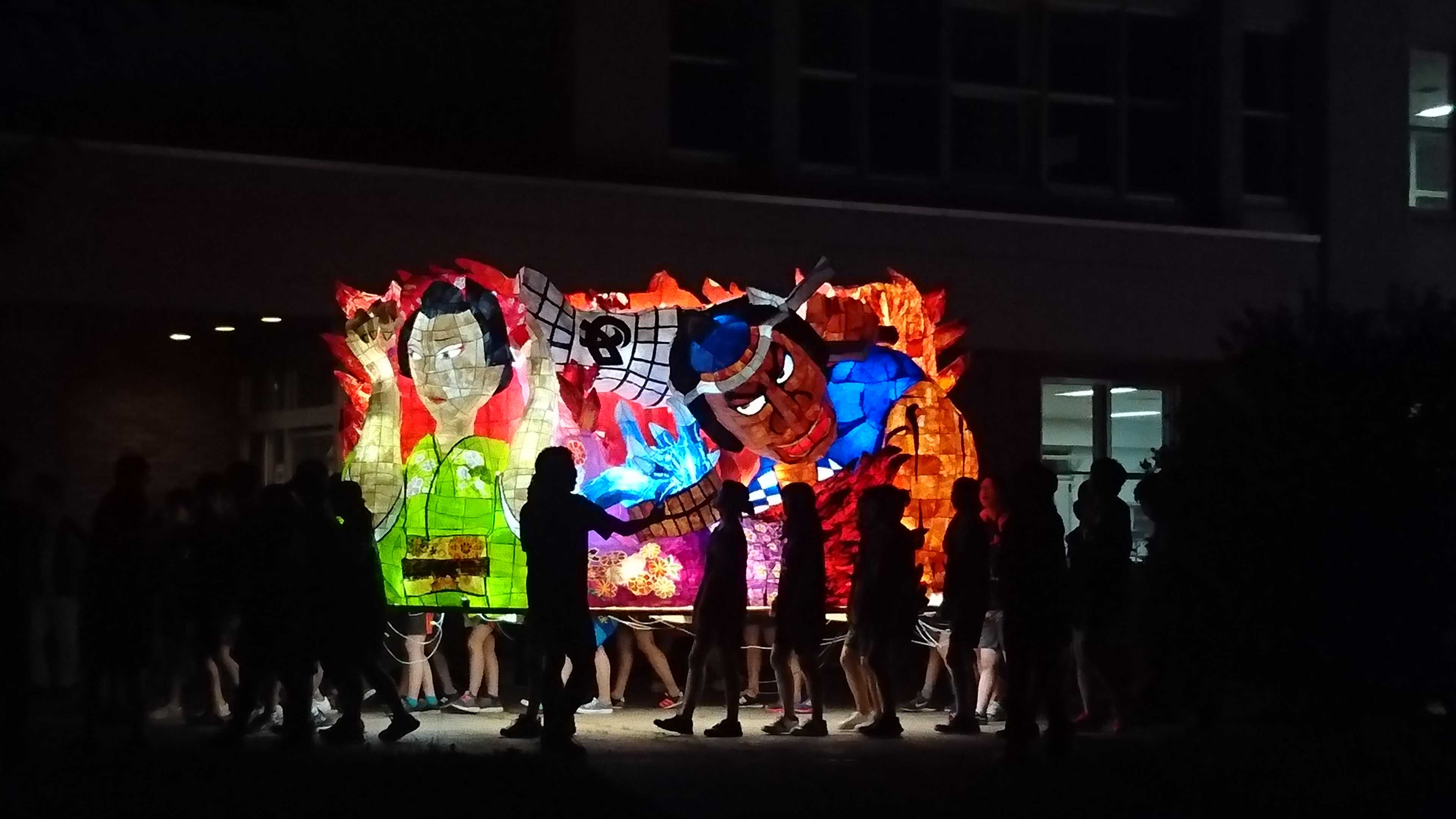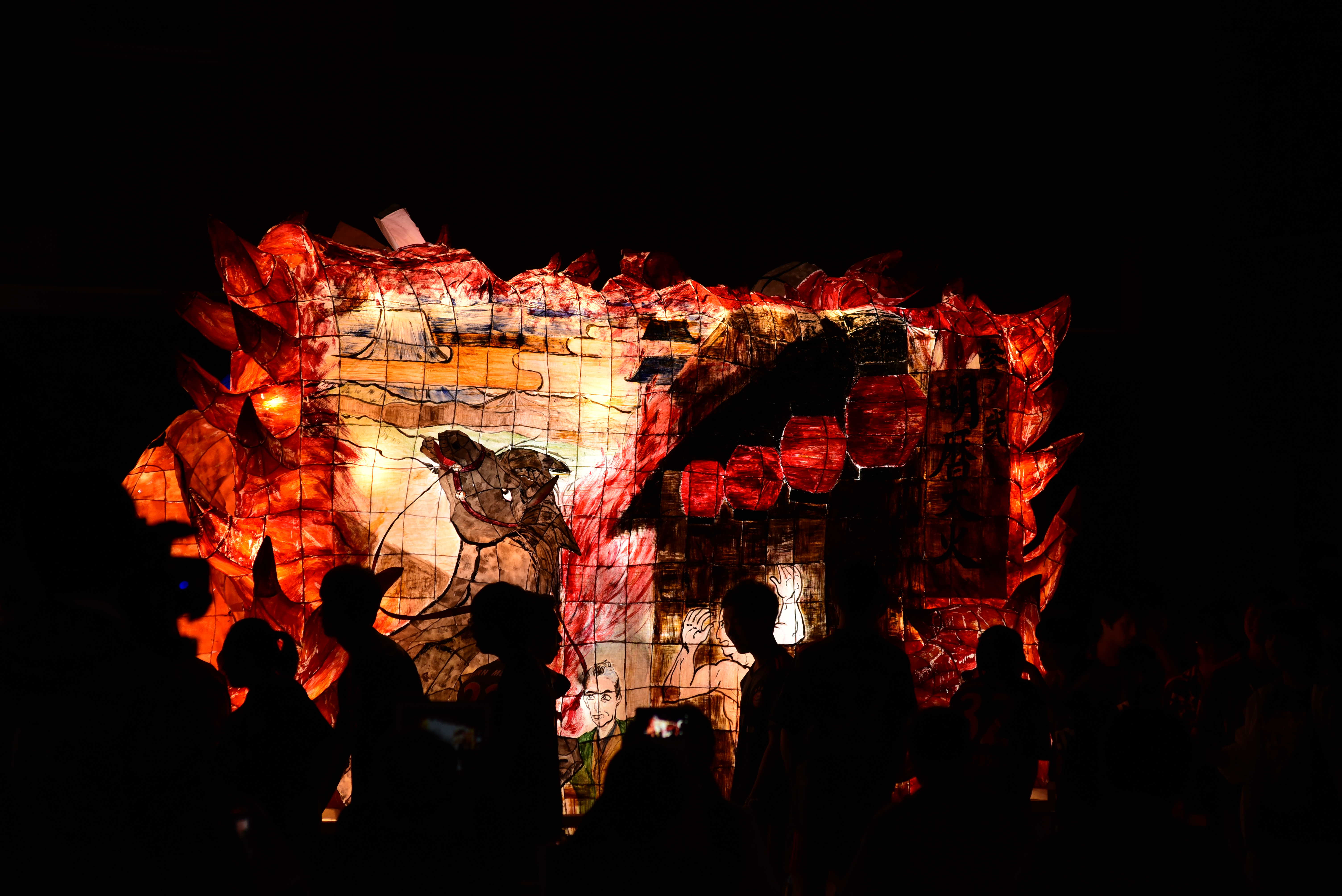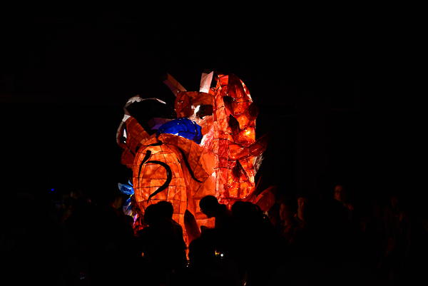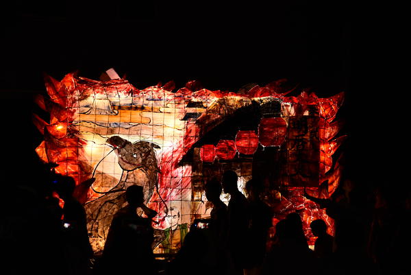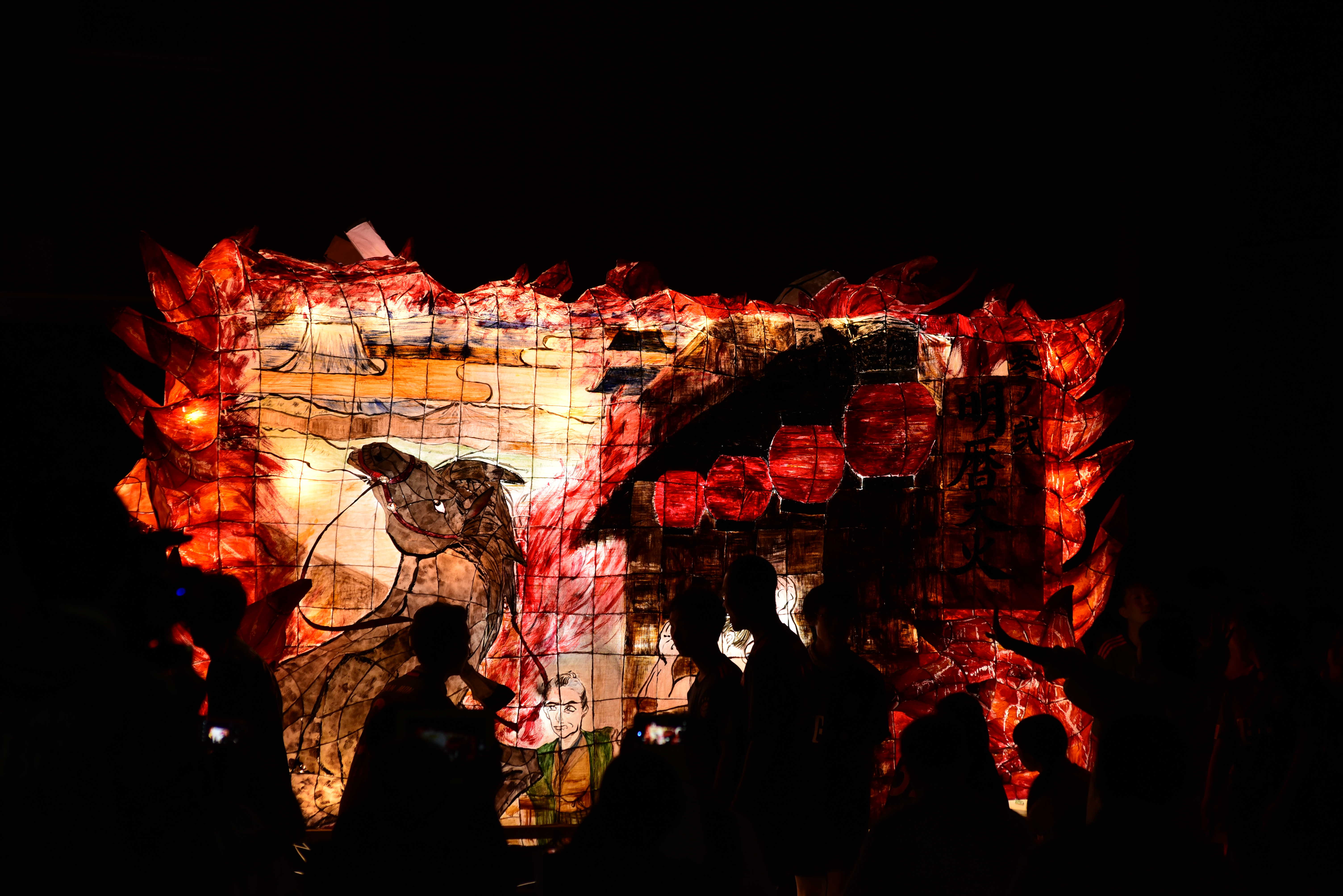 近くで見ると裏の立体になっている馬の針金の精度がすごかったです。 全体的に濃い色が多かったので、光らせたときに暗くなってしまったのがもったいなかったです。電球を増やして解決できればいいのですが、数にも制限があるので、事前にどのくらいの濃さだとどれくらい光を通すのかを実験する必要があるのかななんて思いました。