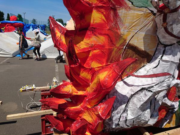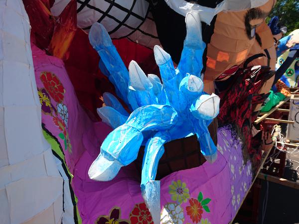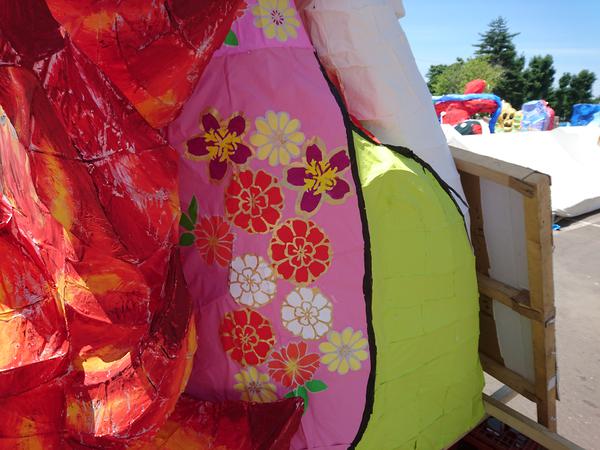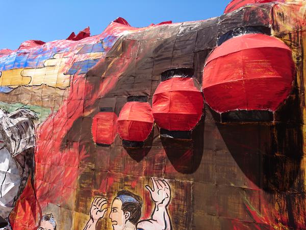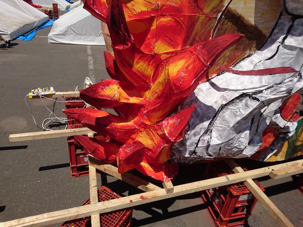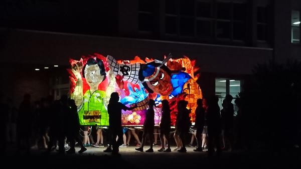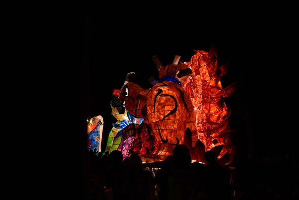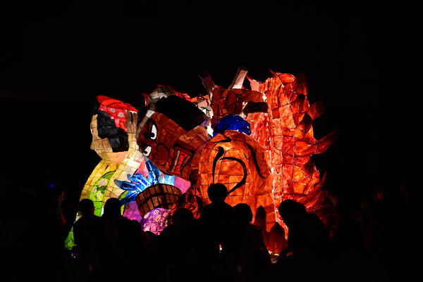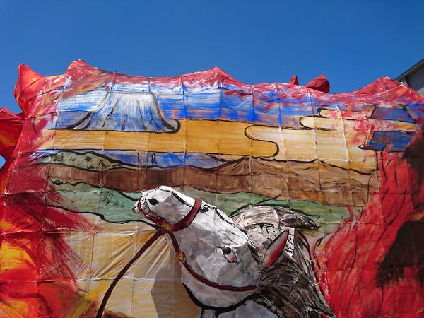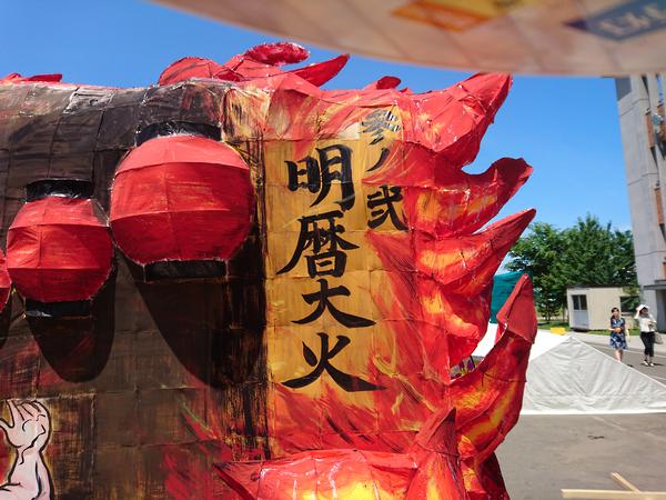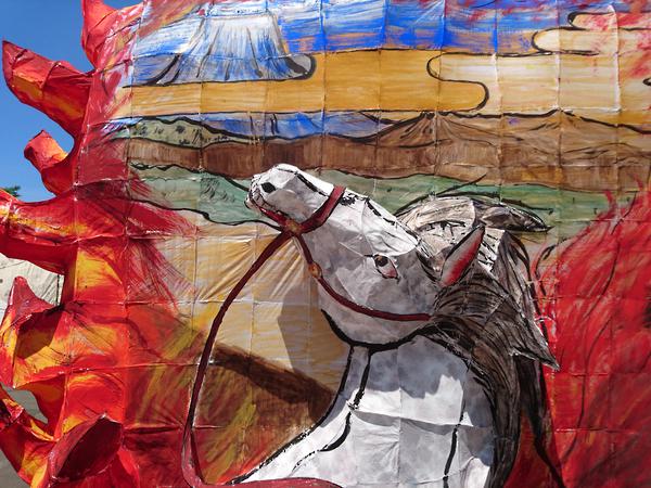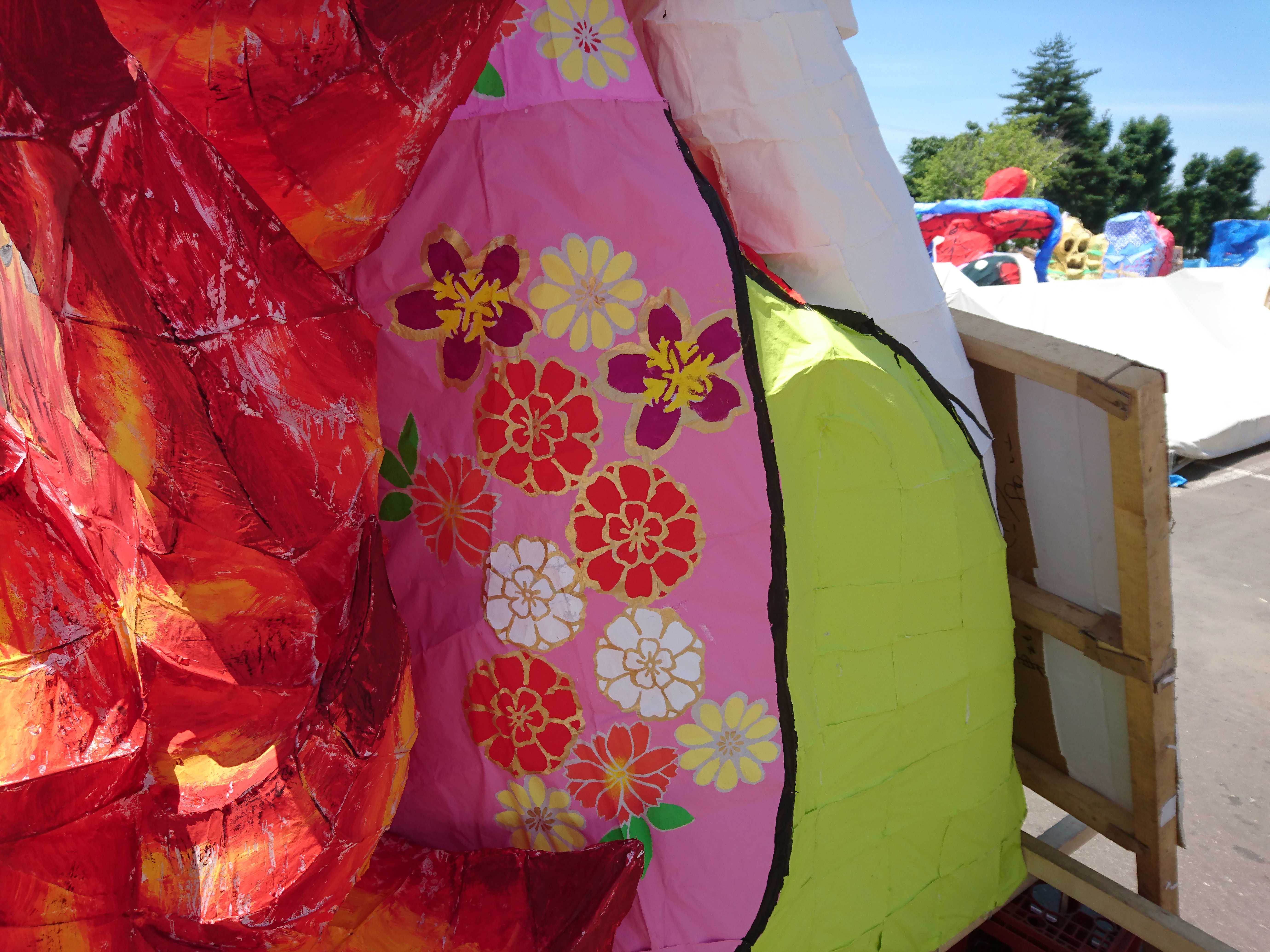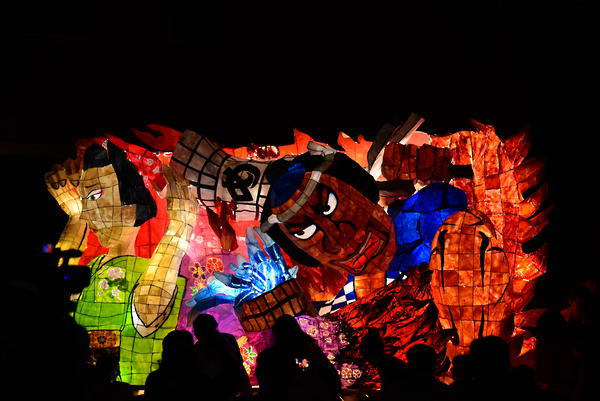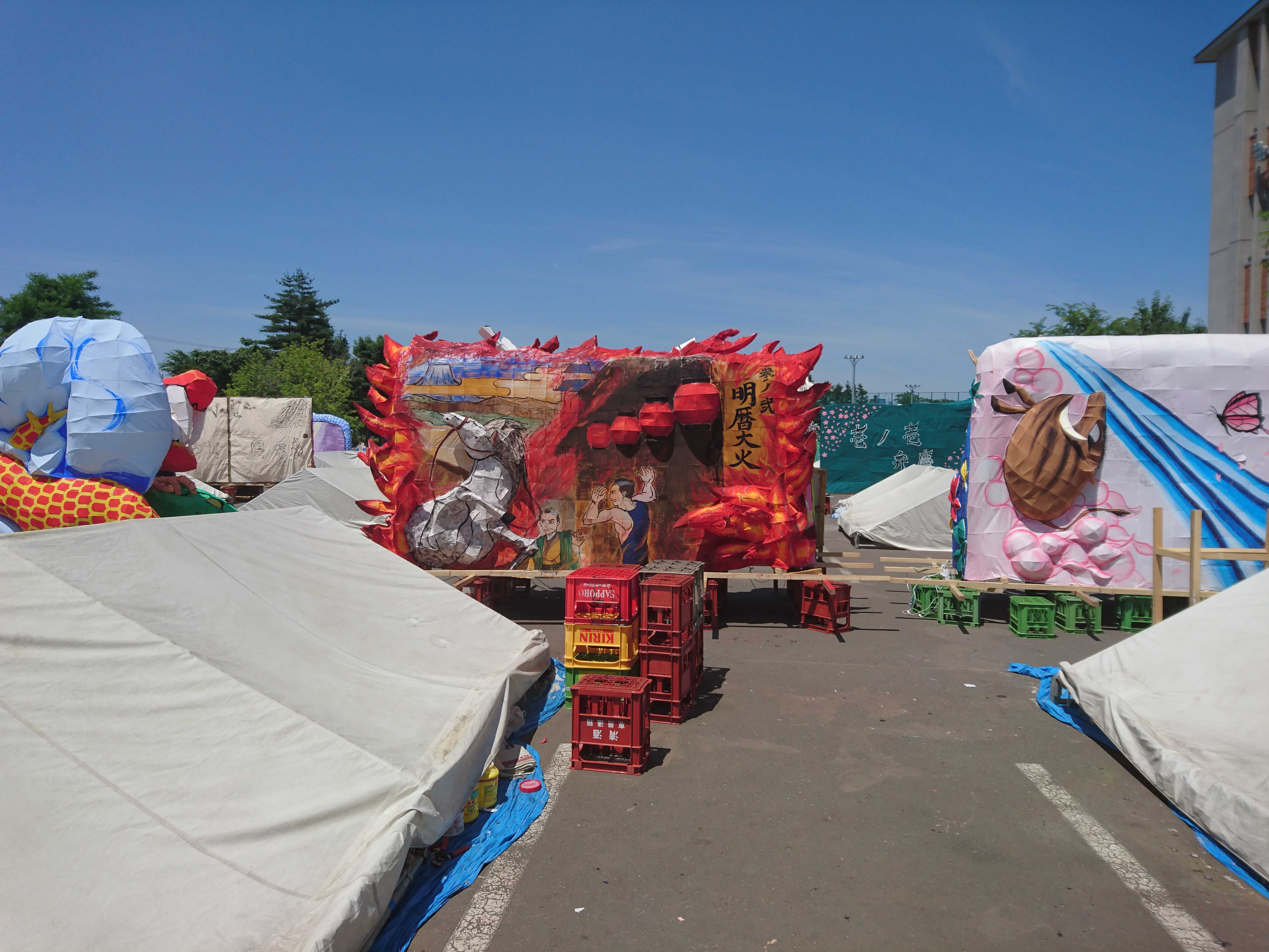 近くで見ると裏の立体になっている馬の針金の精度がすごかったです。 全体的に濃い色が多かったので、光らせたときに暗くなってしまったのがもったいなかったです。電球を増やして解決できればいいのですが、数にも制限があるので、事前にどのくらいの濃さだとどれくらい光を通すのかを実験する必要があるのかななんて思いました。