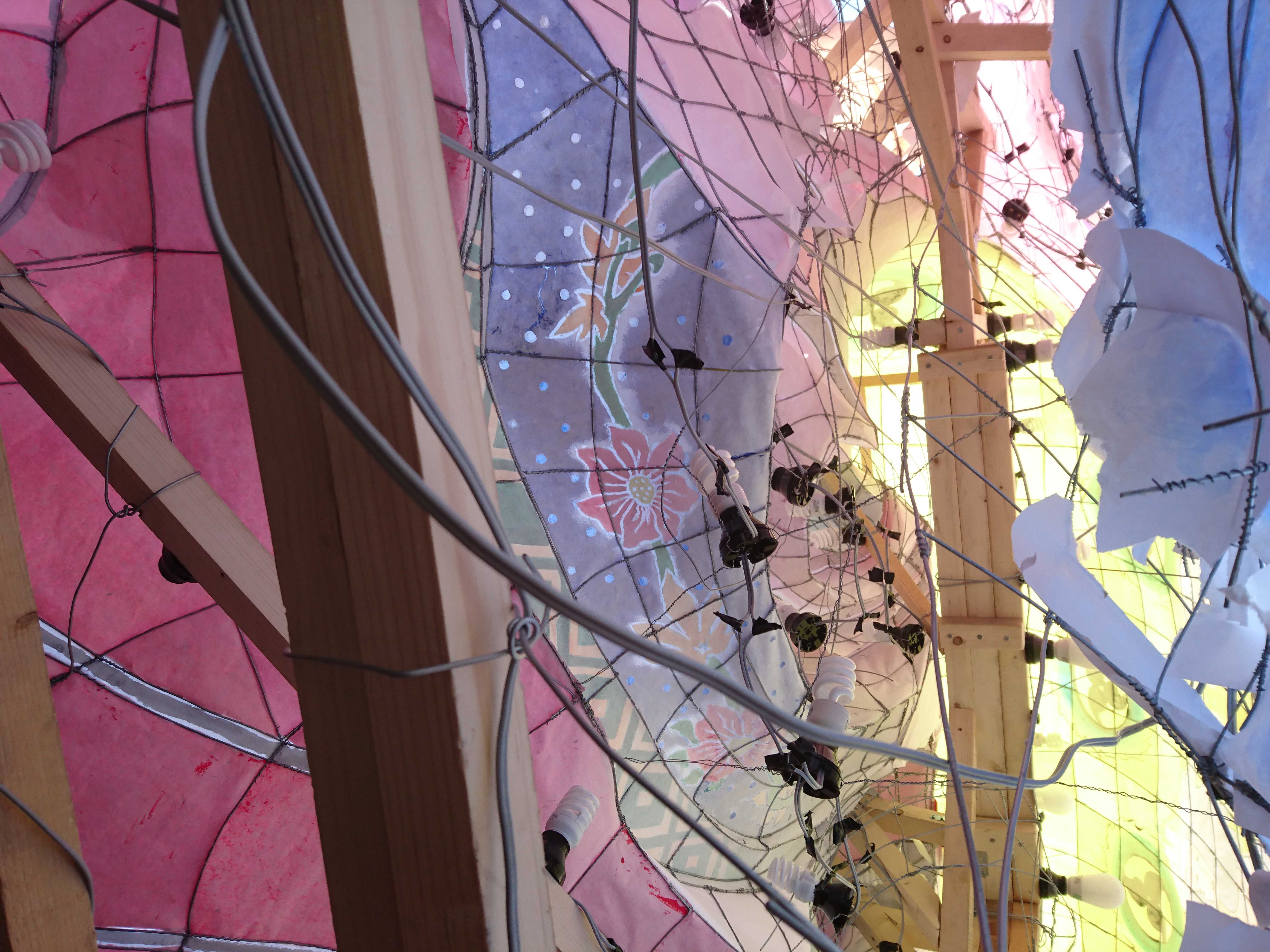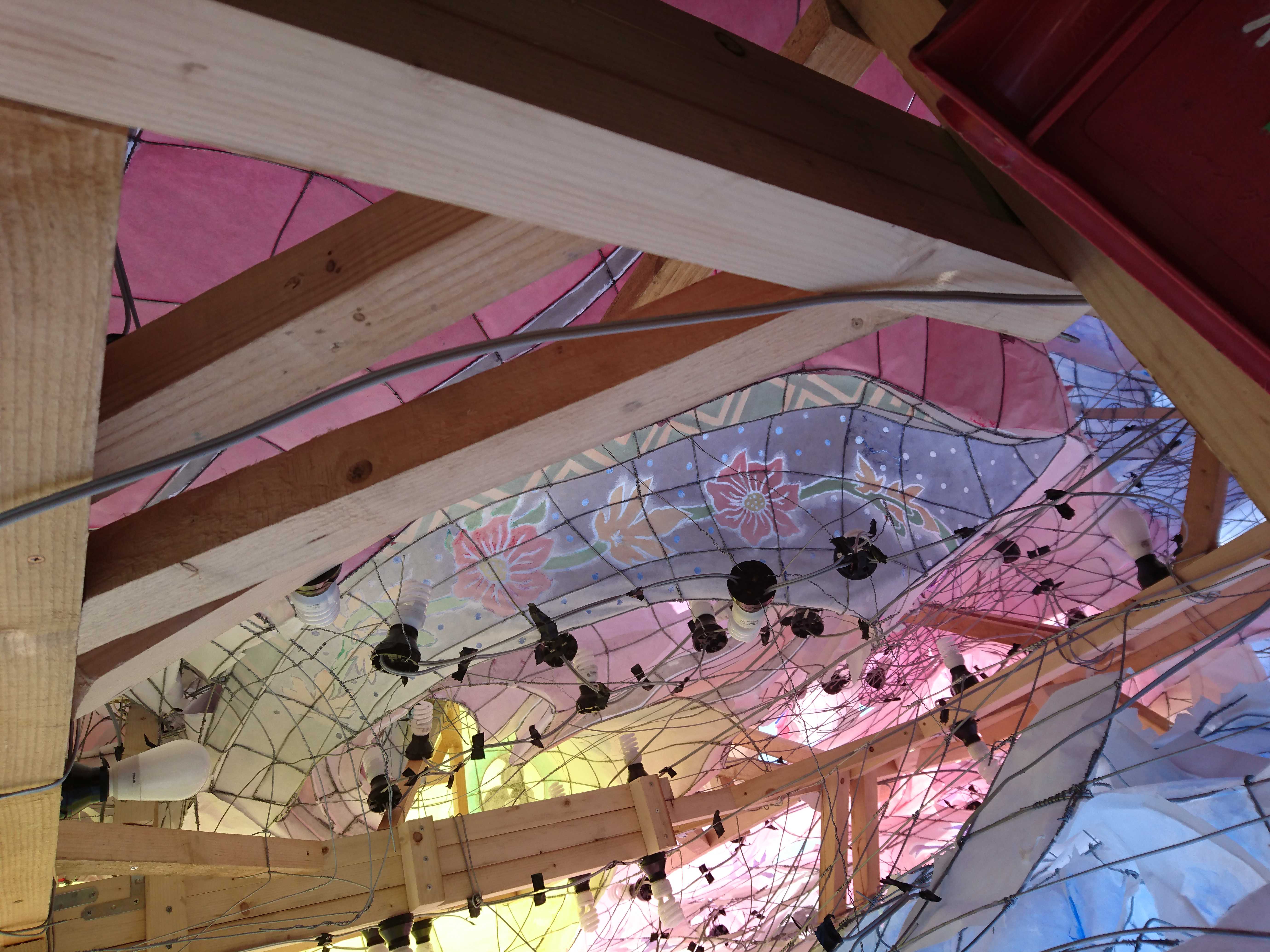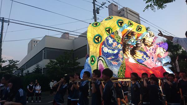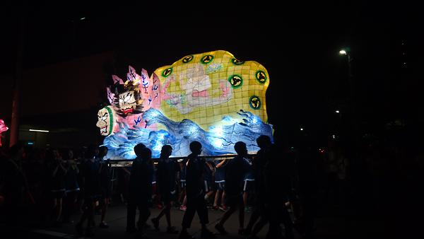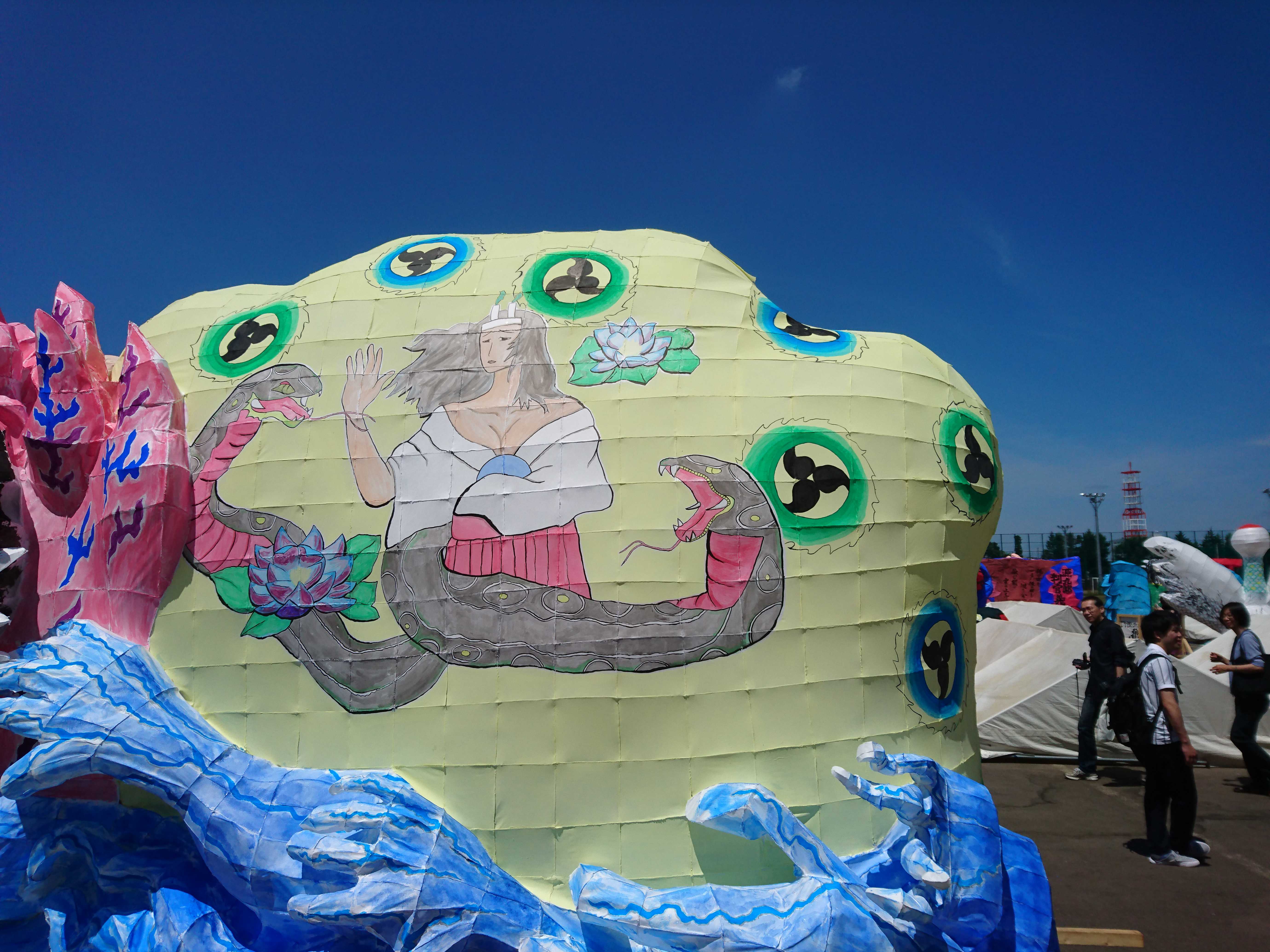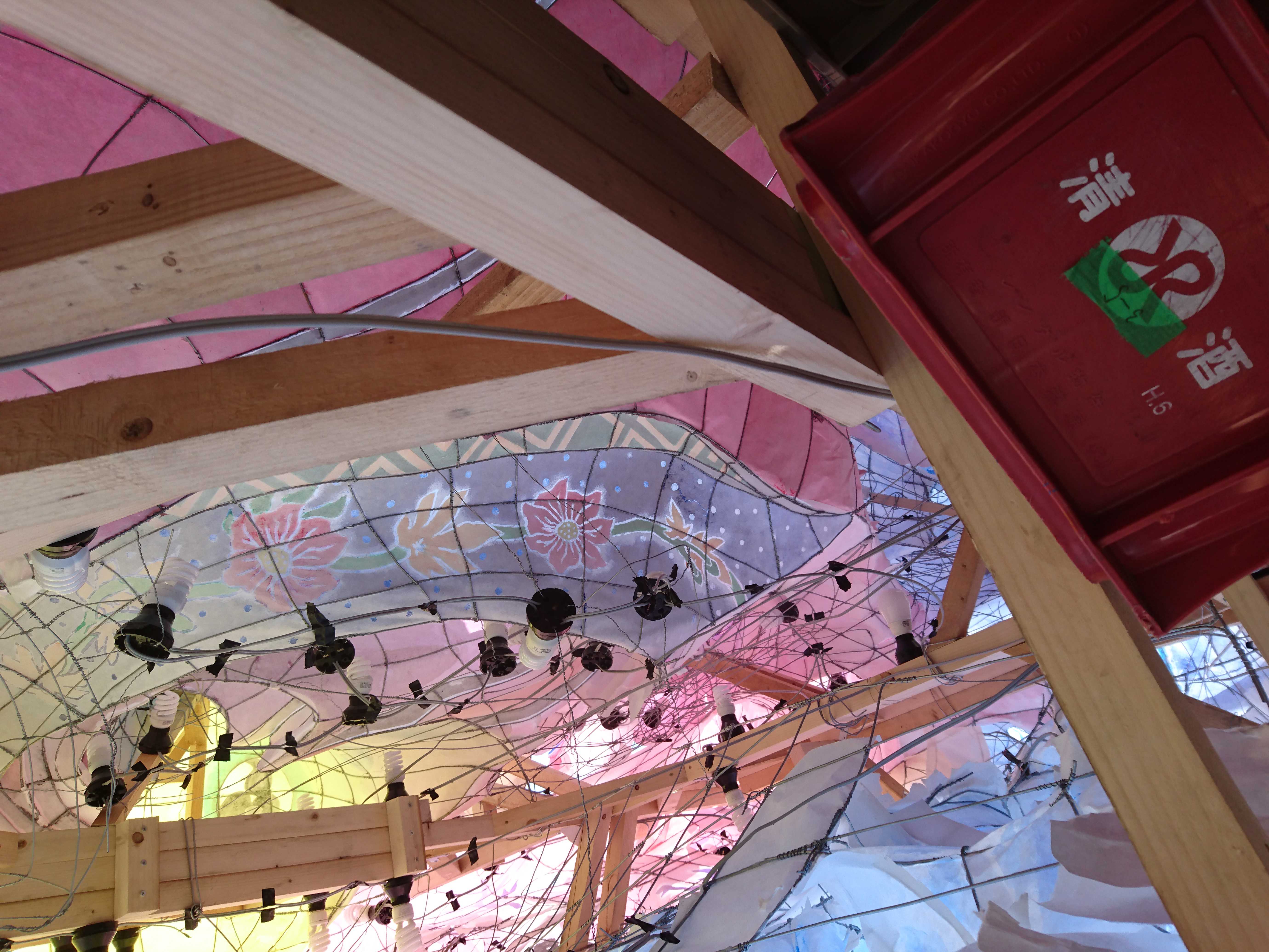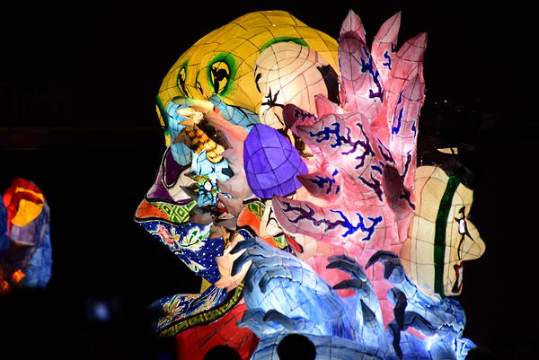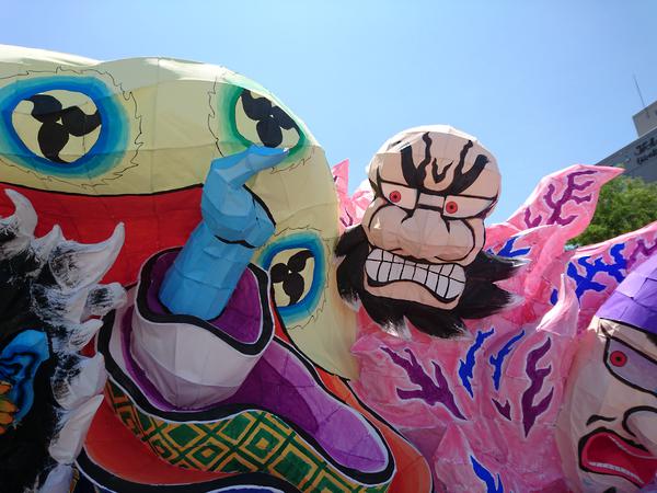 特筆すべきは鬼で、顔の針金はもちろん、色塗りや墨入れ技術が素晴らしかったです。髪の長さからしっかり女性らしさも感じられました。歯にロウを塗っていると思いますが(違ったらすみません)、これにより鬼の気迫ある表情がより表現できていてよかったです。 着物についてですが、ここまで立体感を表現できたもの(特に袖口)、そして紺といった暗い色に書き割り・ロウ書きをしっかり行なった行灯は過去にないと思います。ねぶたのようでした。