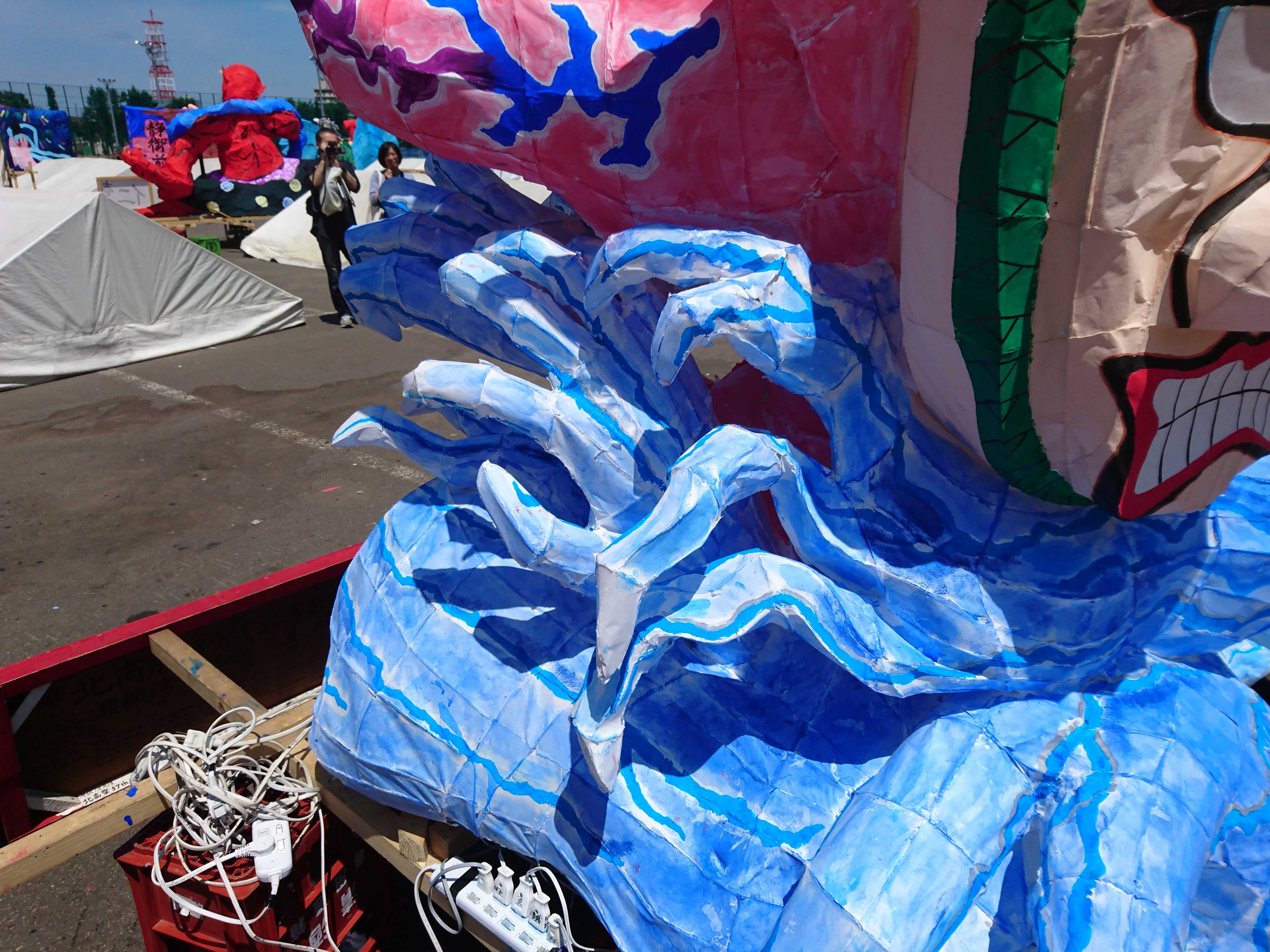 そして、鬼・人の顔合計5つに、大量の手(波)など、全体的に針金に正確さ・スピードがありました。 人の顔は、歴代の大賞の顔をモチーフにしているとのことですが、これを聞いたときは「その手があったか!」と思ってしまいました。また、波で手を表現するのは難しいことだと思いますが、しっかり表現できていてすごいです。
