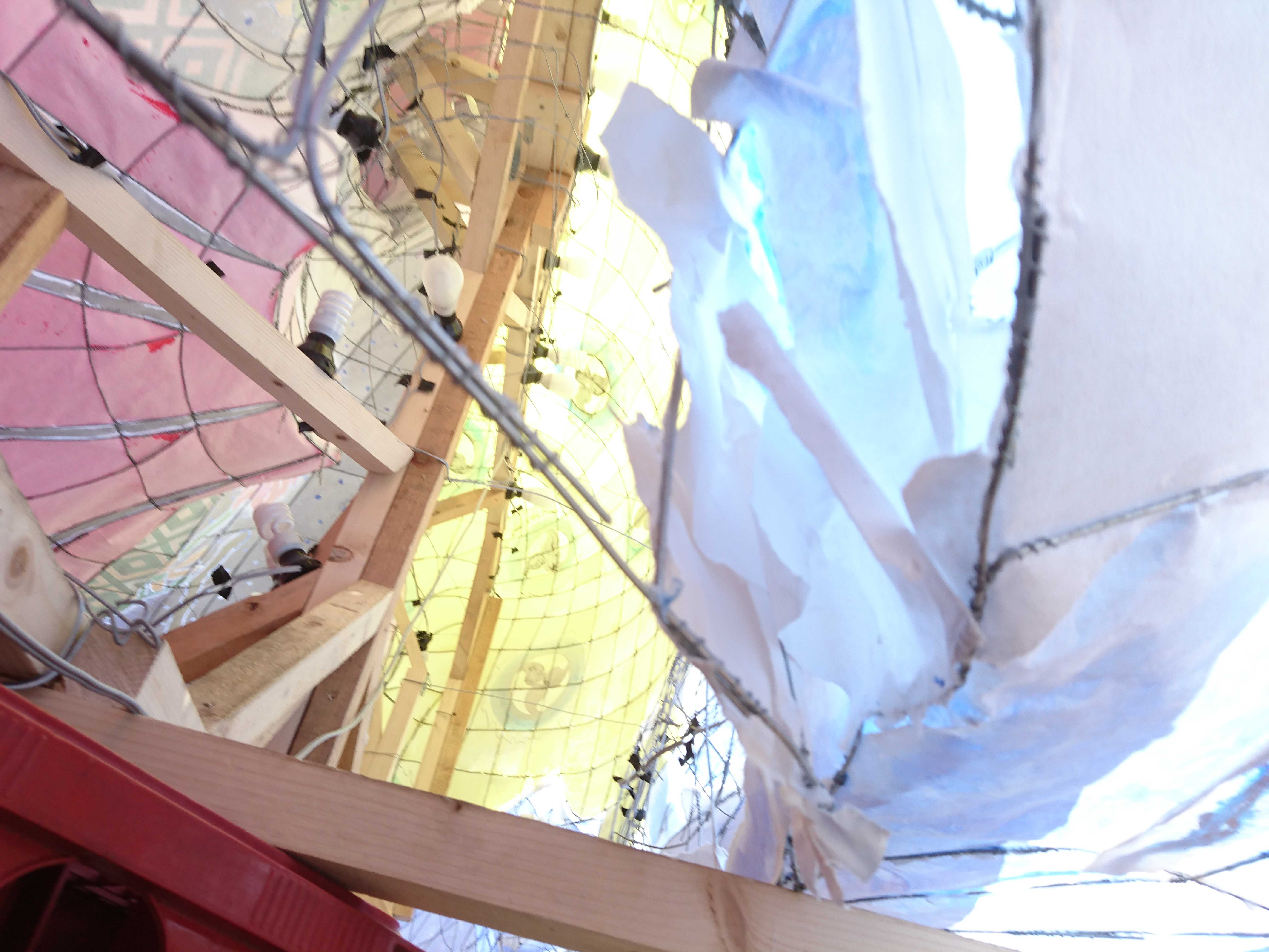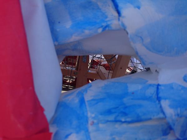 特に紙貼り!とても丁寧です。ここまで丁寧な紙貼りは久しぶりです。どのクラスも針金はこだわって作るのですが、こだわりすぎて紙貼りの時間を確保できなくなってしまうんですよね。そして紙貼りは適当になってしまうという。紙貼りは見た目の完成度 (おっここはちゃんと完成しとるな感) に直結するので、光漏れやシワなどがないように丁寧に貼ると完成度が高く見えます。丁寧に紙を貼る時間を確保できたのは後塗りだったからということもあるかもしれませんが、色も丁寧に塗られているのでどちらにせよ計画性が素晴らしいことには変わりはないです。また、紙貼りは大抵の場合人海戦術で貼るので、どうしても貼る技術に差が出てしまいます。この点3-4はあんまり差がないように見えます。クラス内で紙貼り講習会でもやったのでしょうか。なにか工夫した点があればぜひ教えてほしいです。
