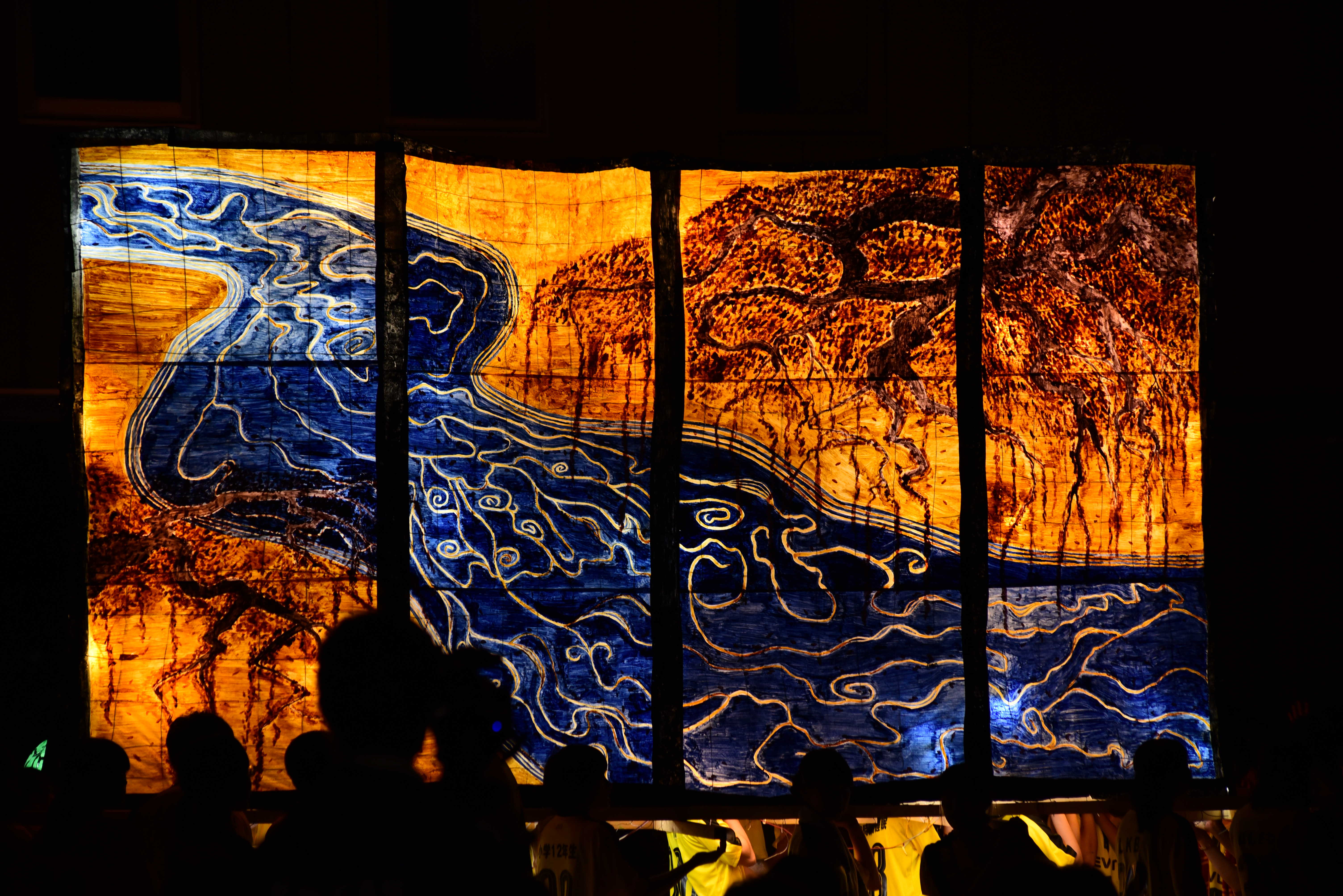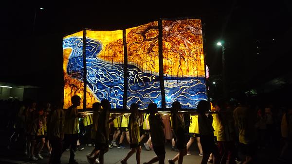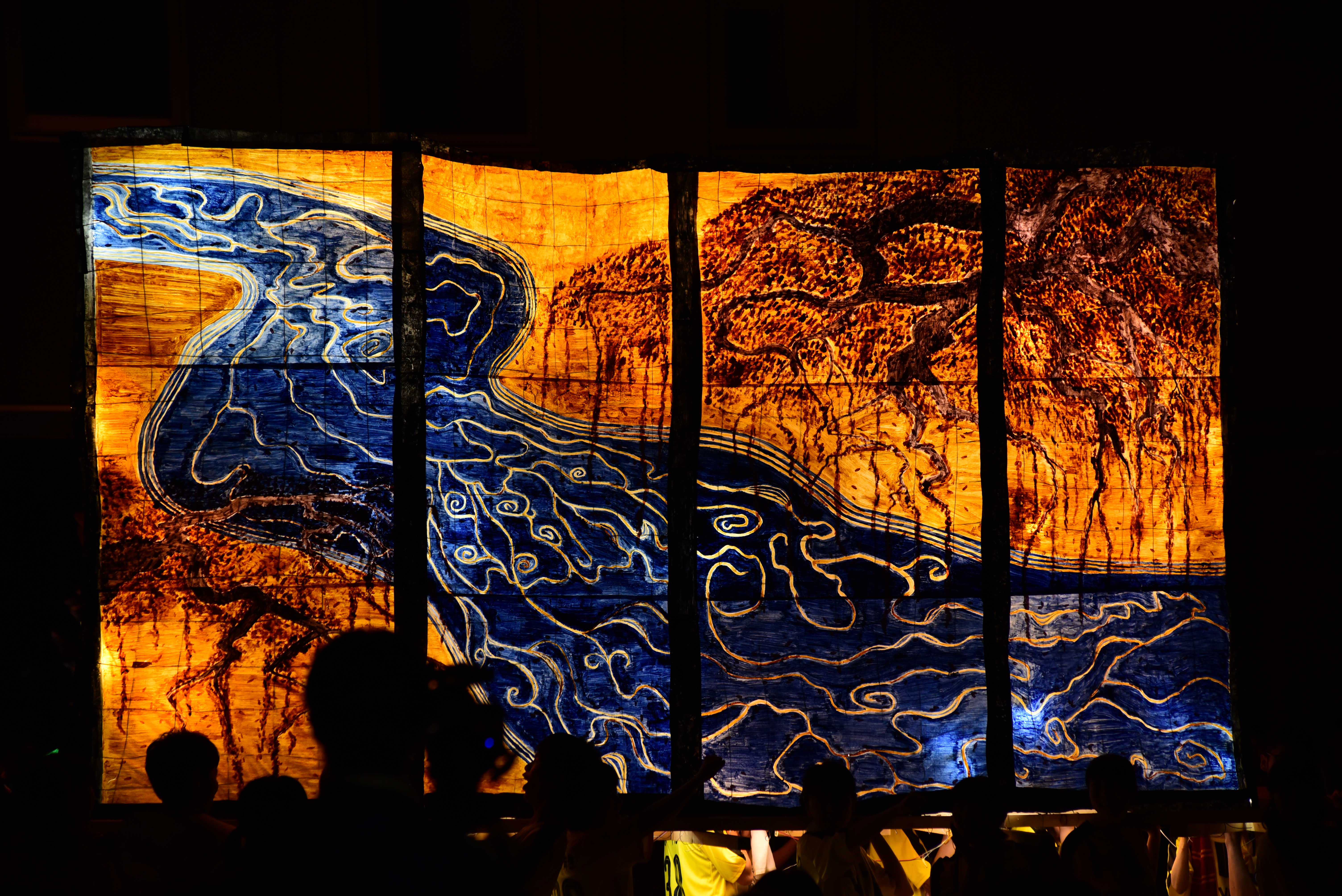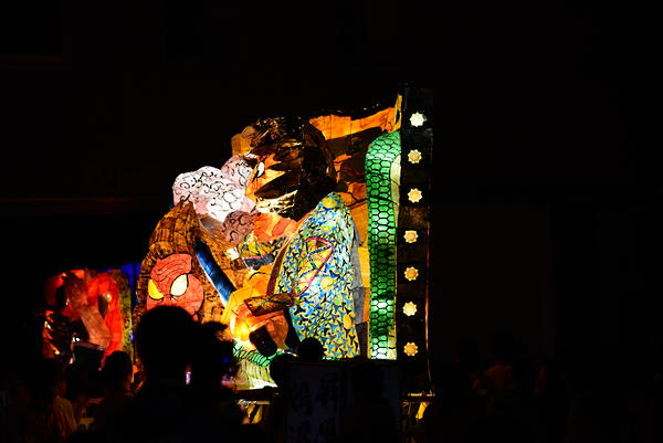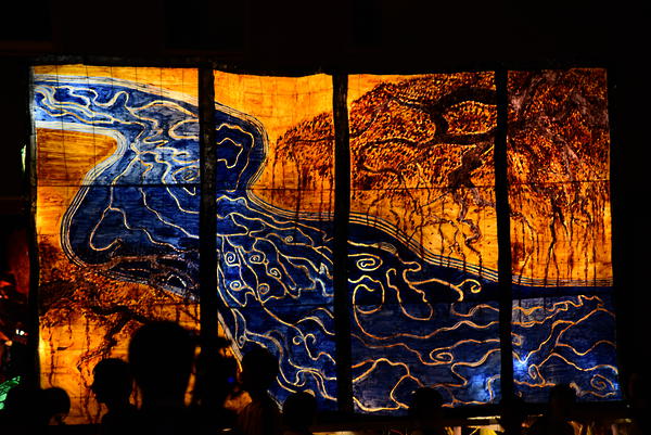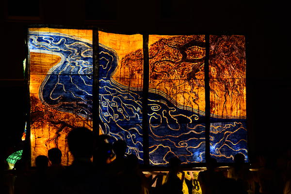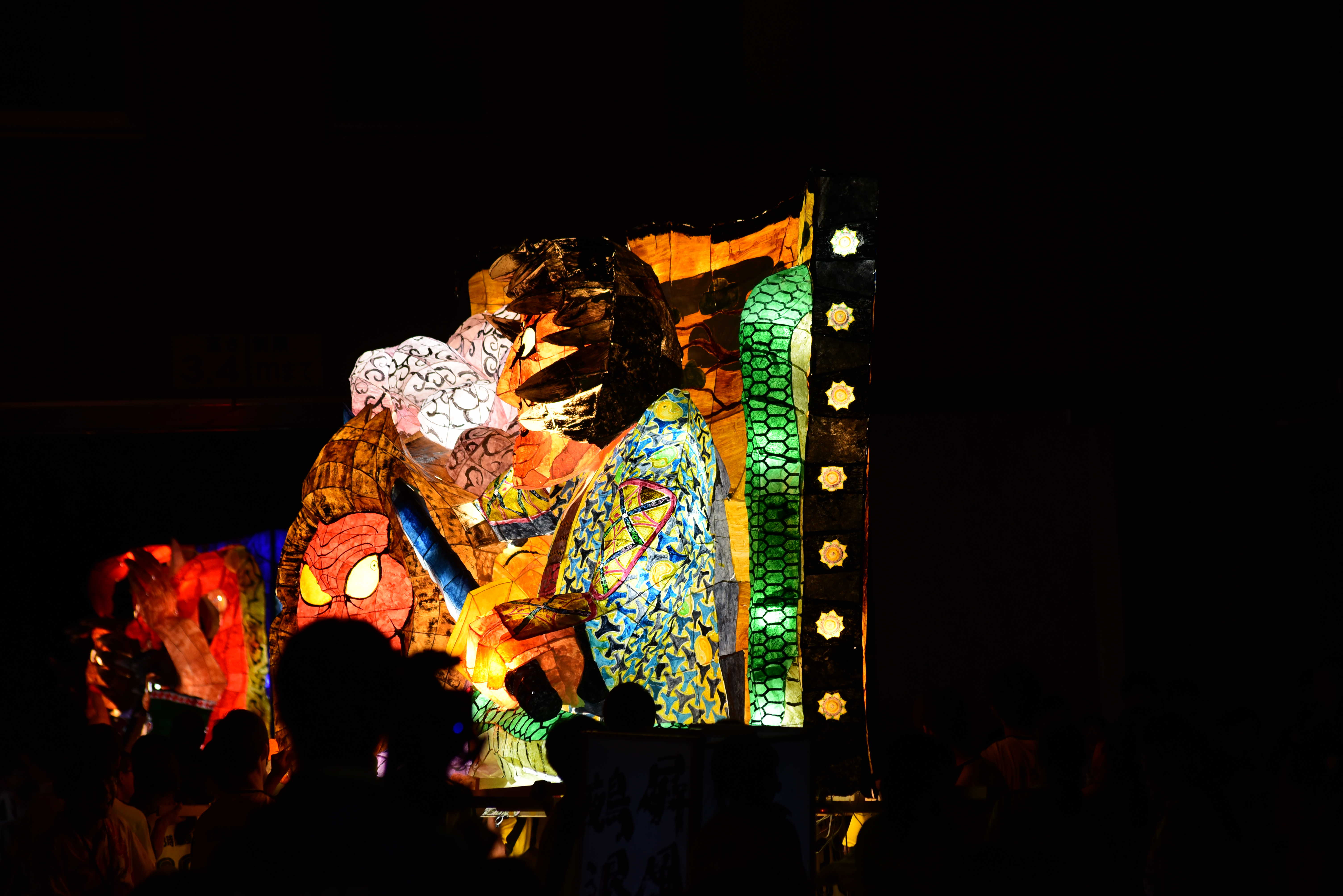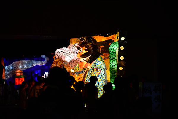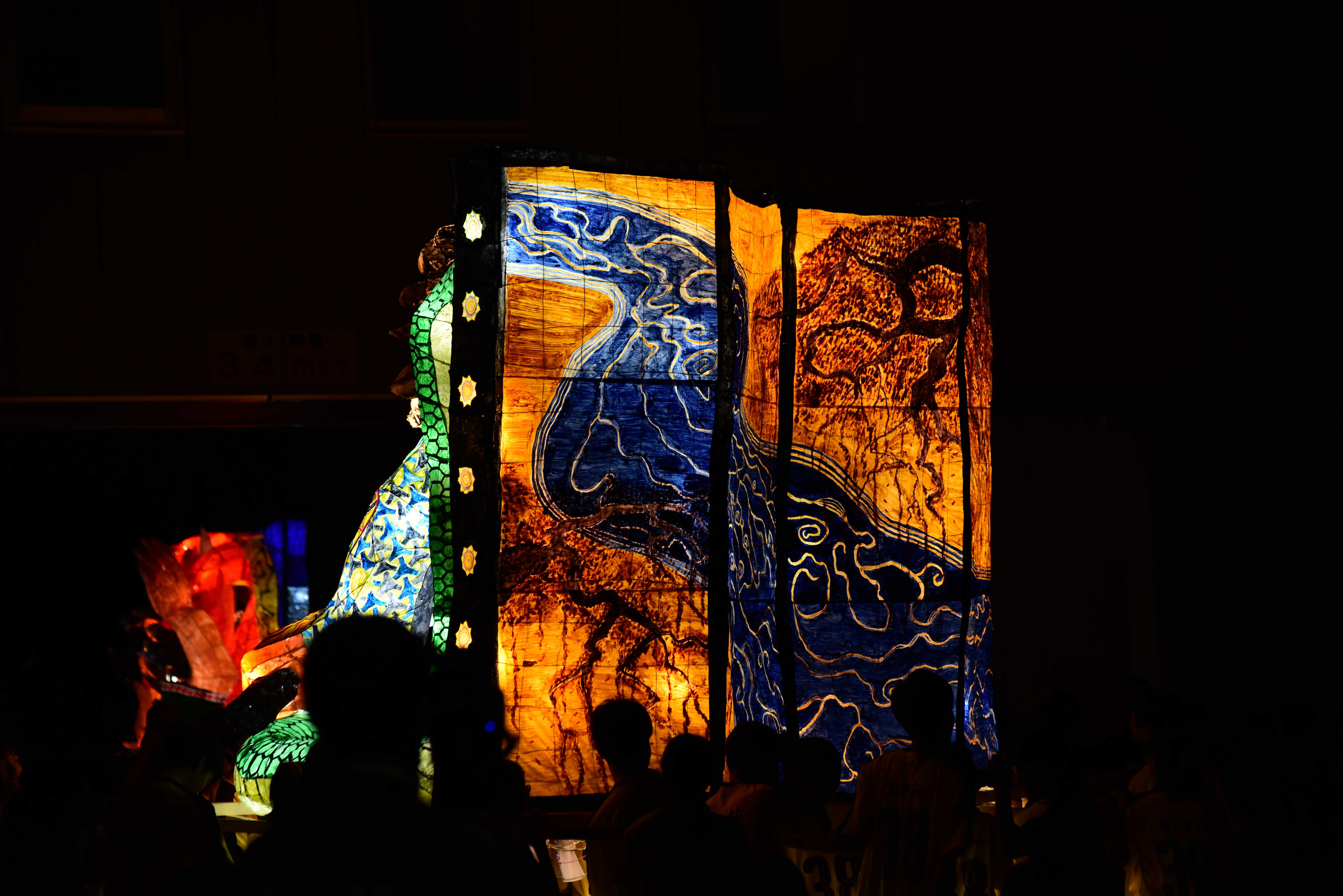 屏風が平面のようでなく、折って作られてあり、かなり再現度が高かったです。絵はとてもきれいでしたが、夜光ったときに桜が見えなくなってしまったのがもったいなかったです。おそらく重ね塗りだと思うのですが、はじめに濃い色を塗ると見にくくなってしまいます。 人の顔、鵺の顔・胴体など墨入れを太くするとさらによくなったと思います。 電飾についてですが、全体的に光っていてよかったです。