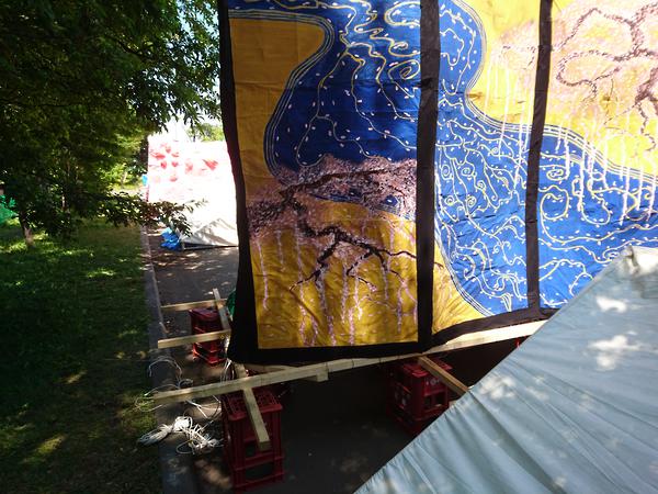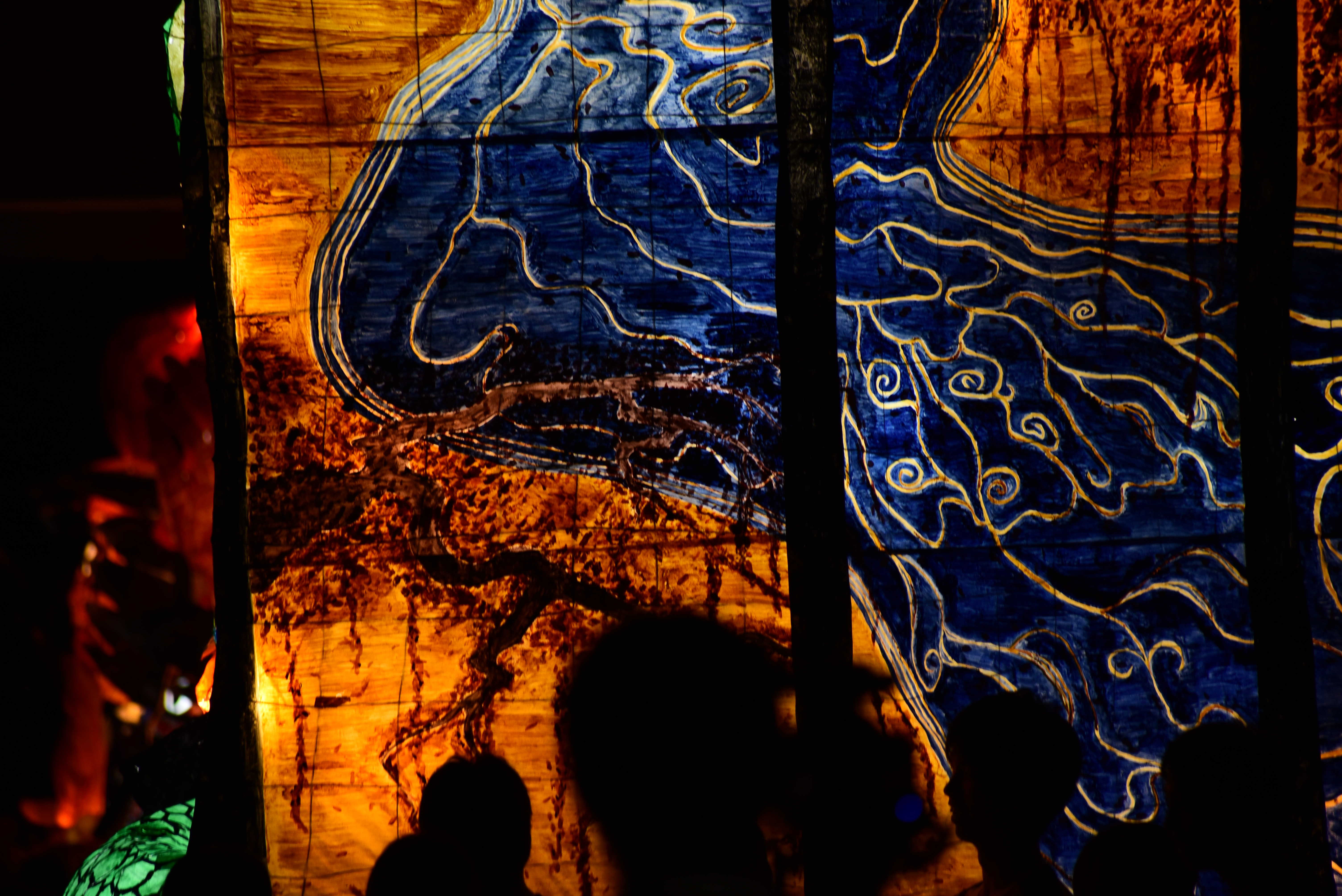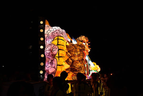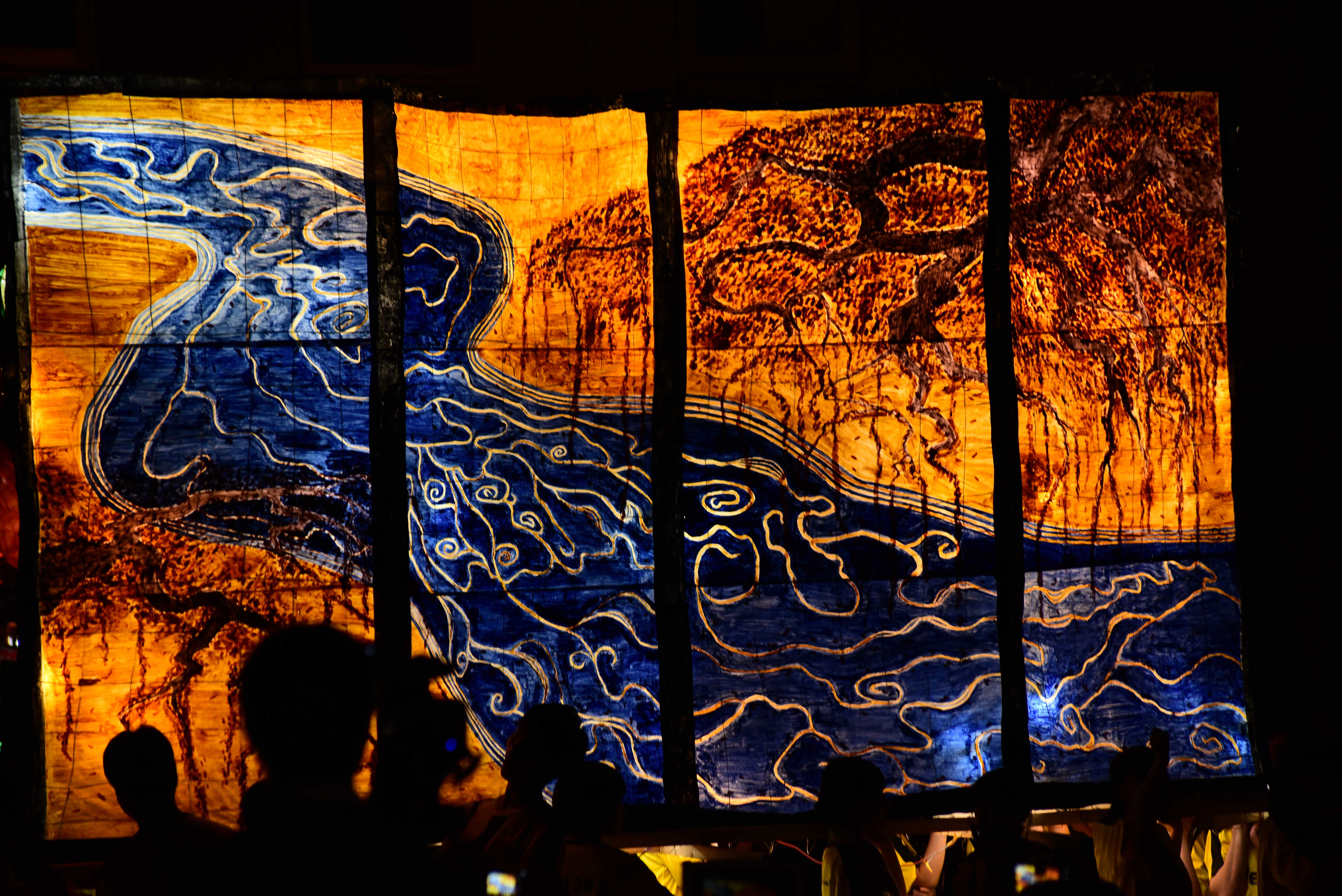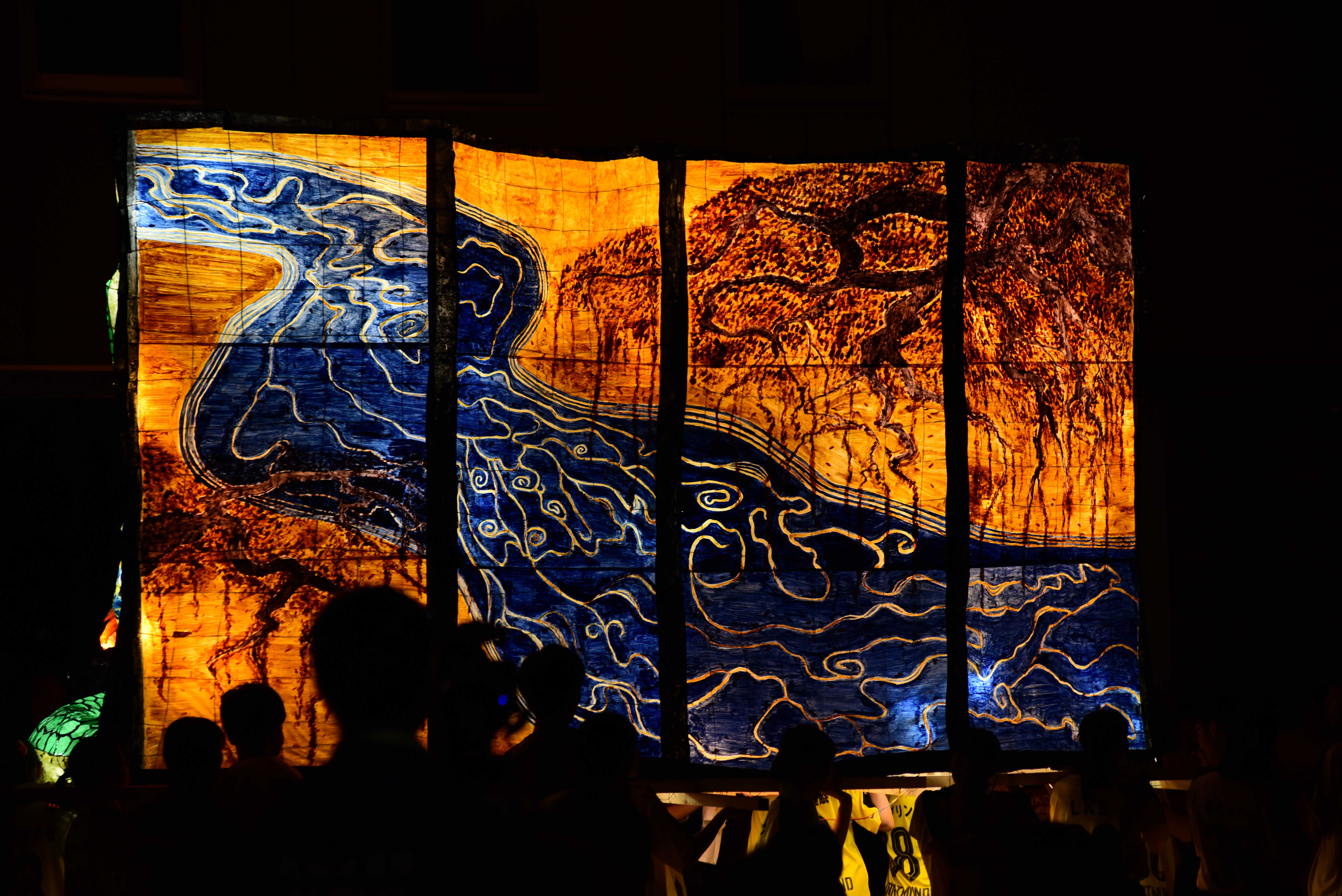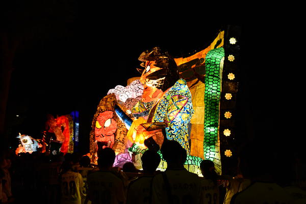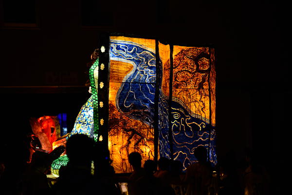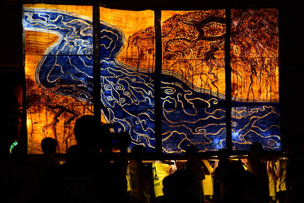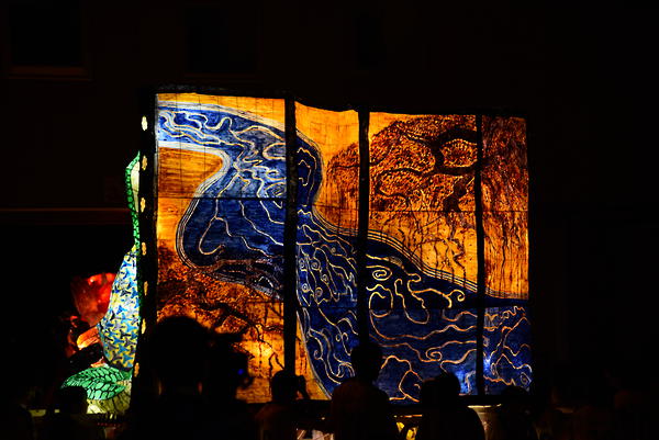 屏風が平面のようでなく、折って作られてあり、かなり再現度が高かったです。絵はとてもきれいでしたが、夜光ったときに桜が見えなくなってしまったのがもったいなかったです。おそらく重ね塗りだと思うのですが、はじめに濃い色を塗ると見にくくなってしまいます。 人の顔、鵺の顔・胴体など墨入れを太くするとさらによくなったと思います。 電飾についてですが、全体的に光っていてよかったです。