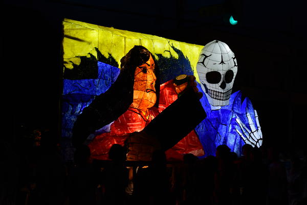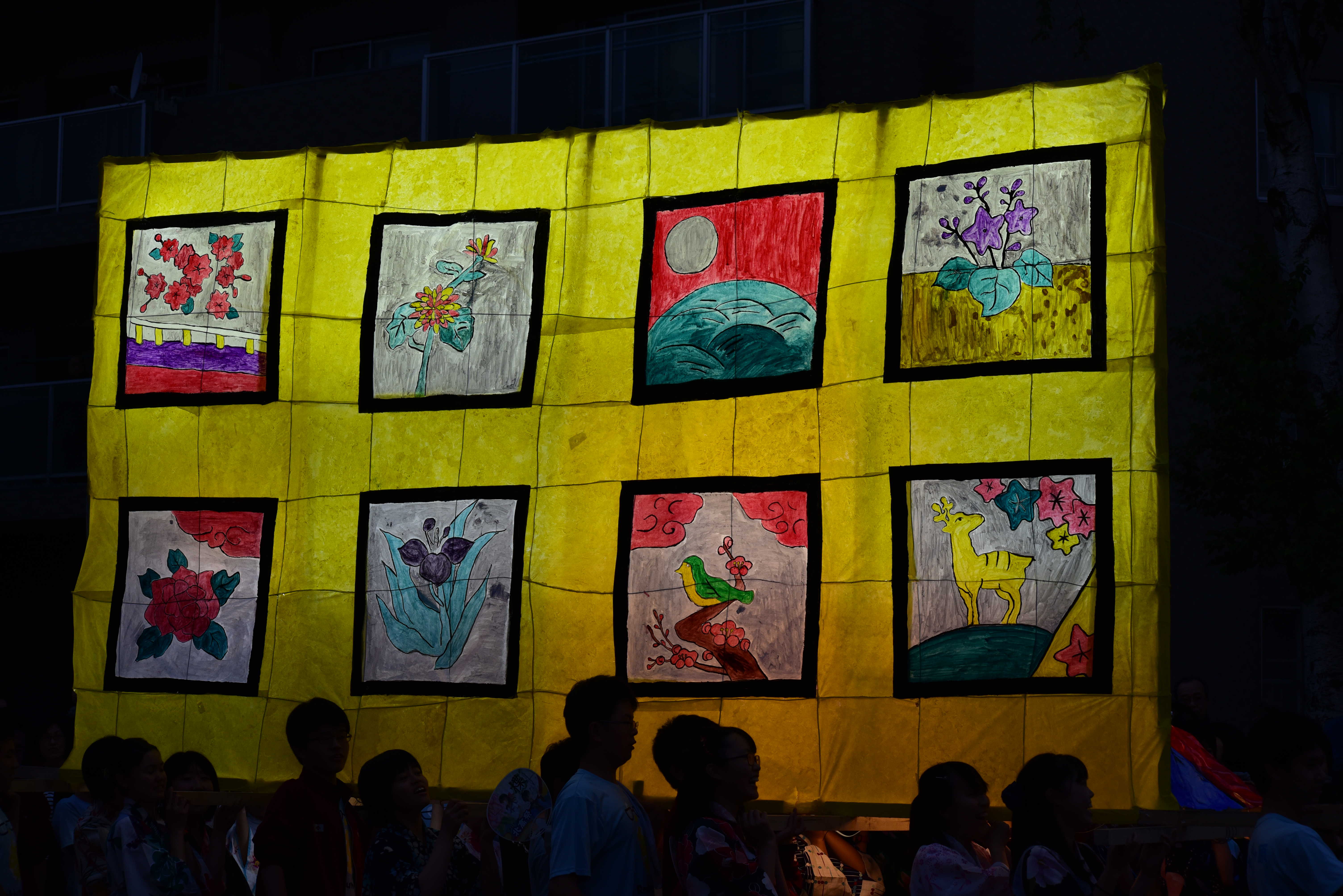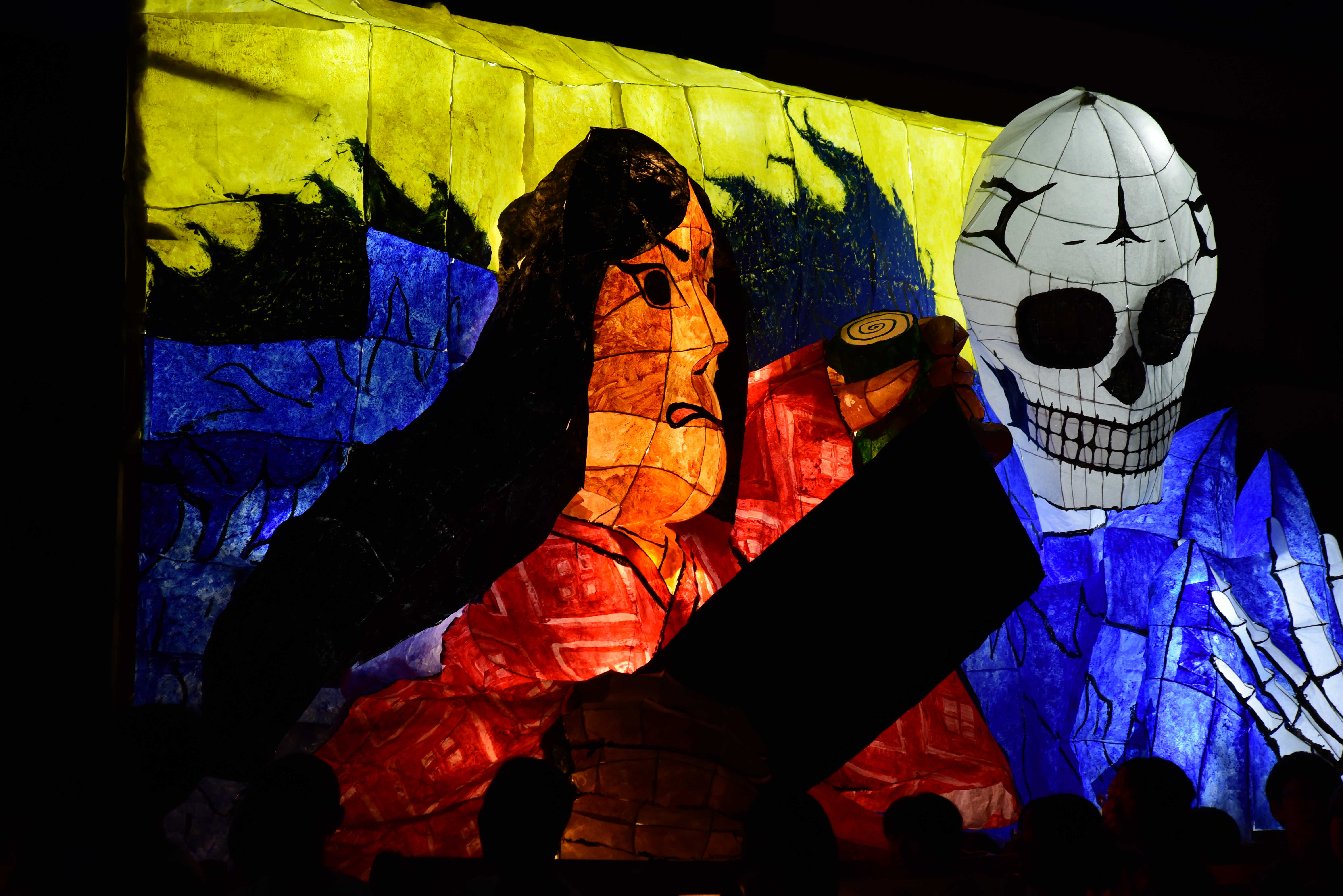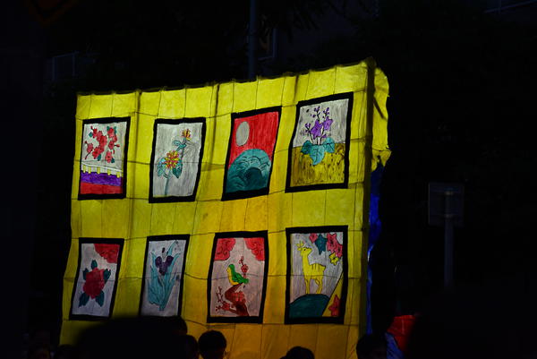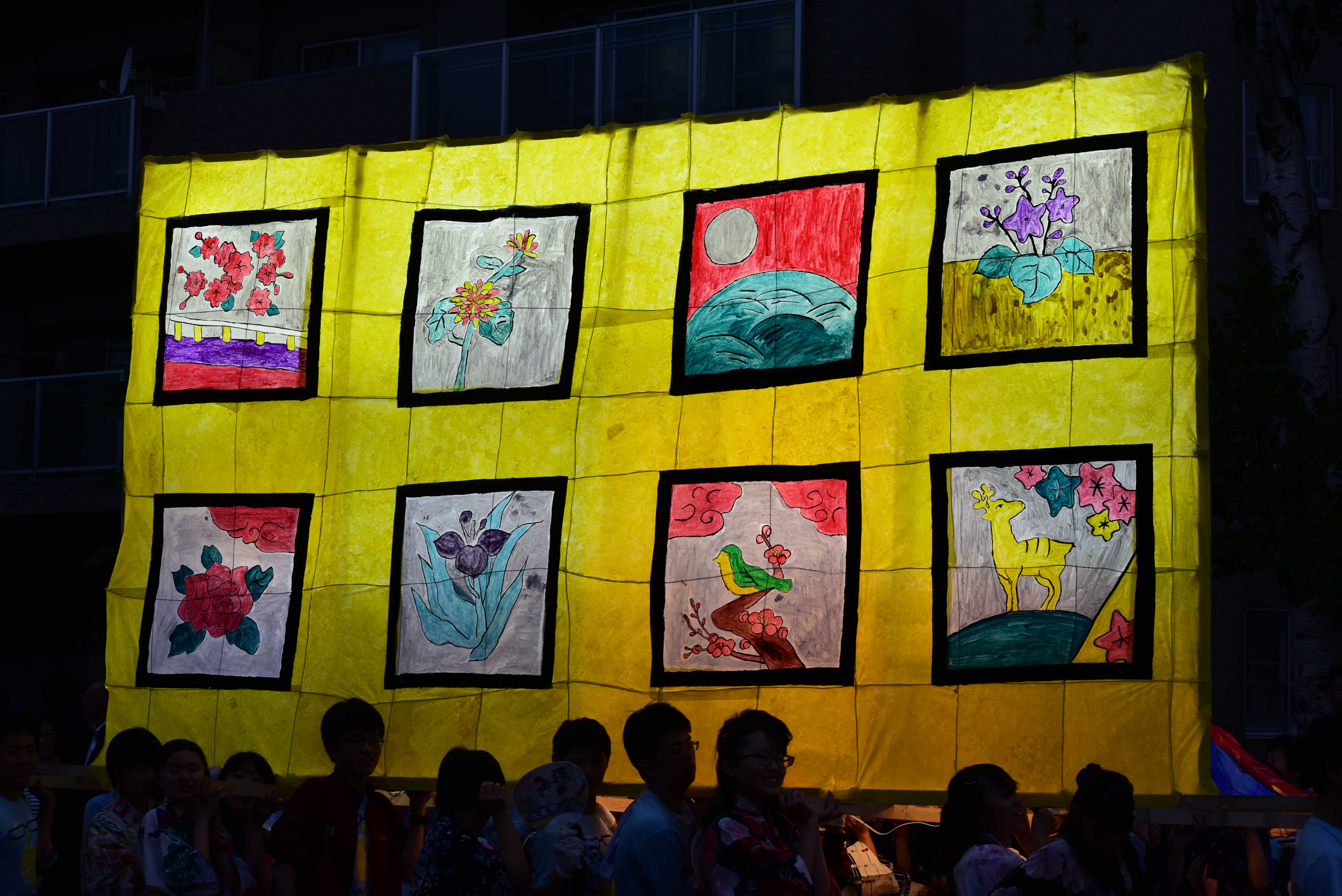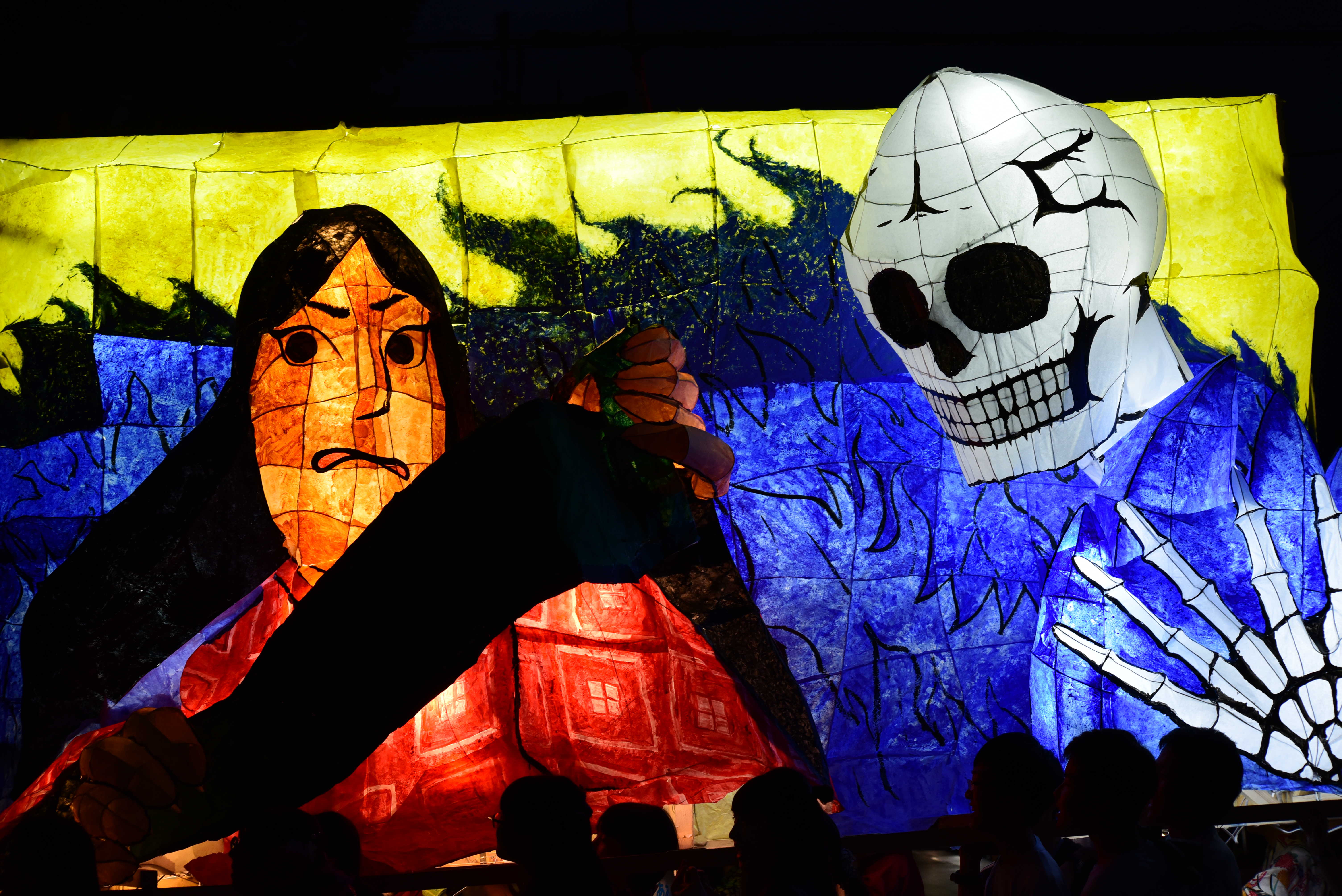 女性の面とドクロはともに墨入れのみずみずしさがとてもいいですね。墨入れは急いでやると掠れてしまいがちなのですが、この行灯は全然掠れていないので、丁寧に塗ったのだなと思いました。女性の眉は毛っぽくなっていて、使い分けられていて素晴らしいです。 裏側の花札もとても丁寧でよかったです。