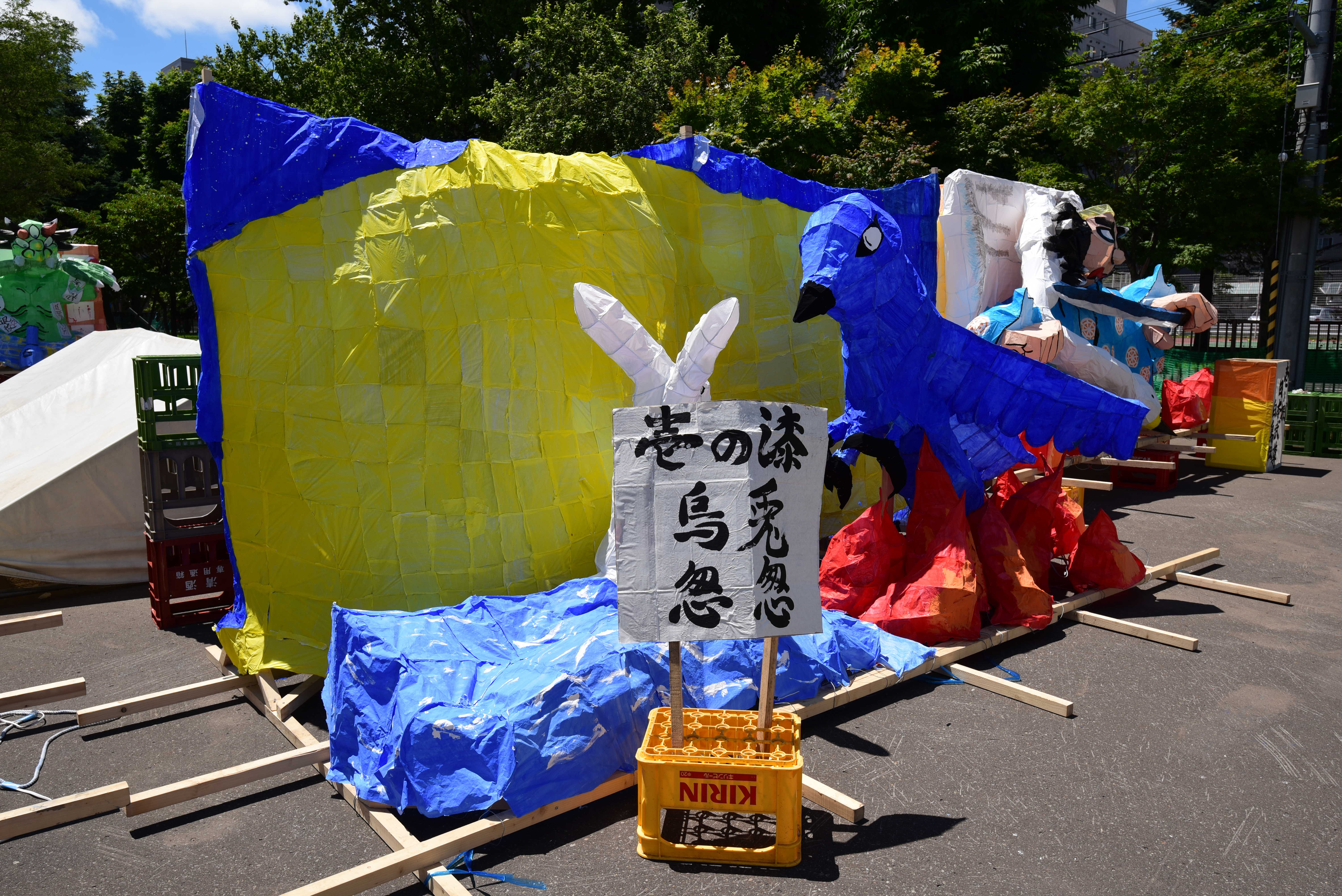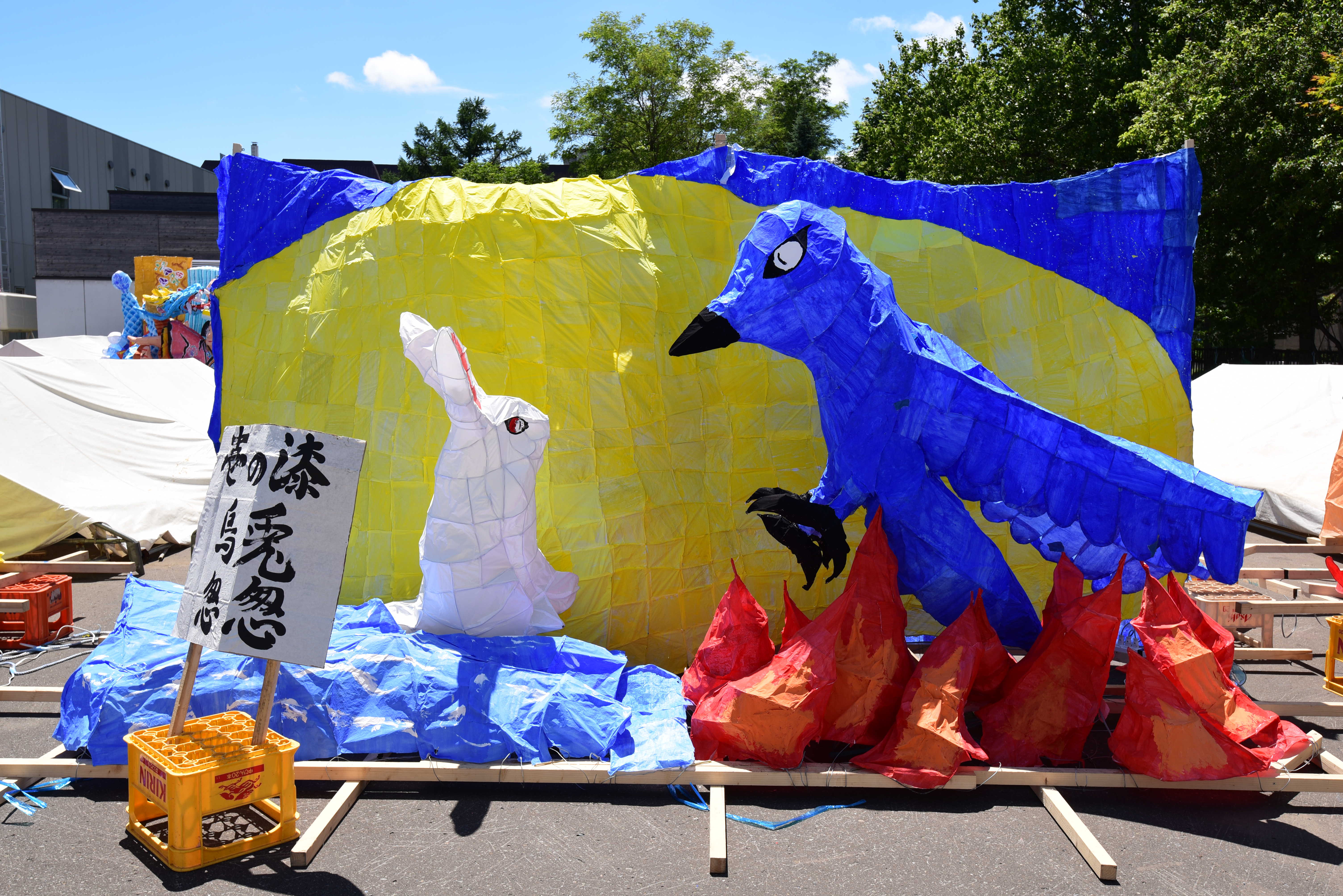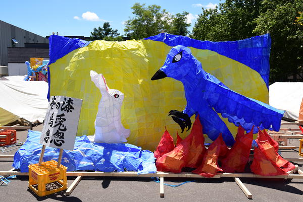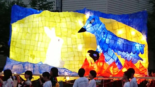 烏と兎という珍しい動物を題材にしていて、面白かったです。それぞれ上手く作れていたので、もっと光を通せていたり、紙貼りが丁寧に行なえているとよりいい行灯になったのではないでしょうか。
