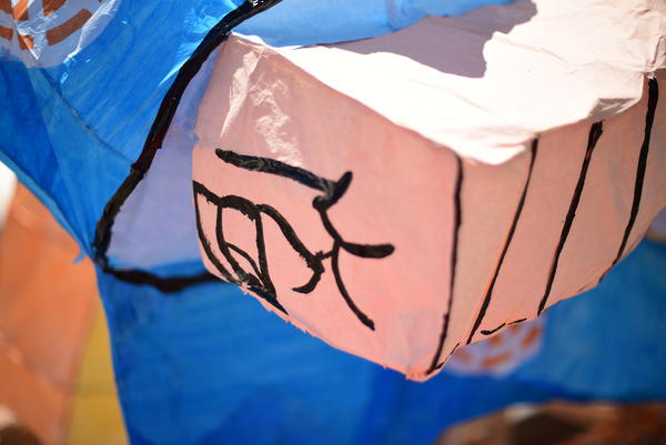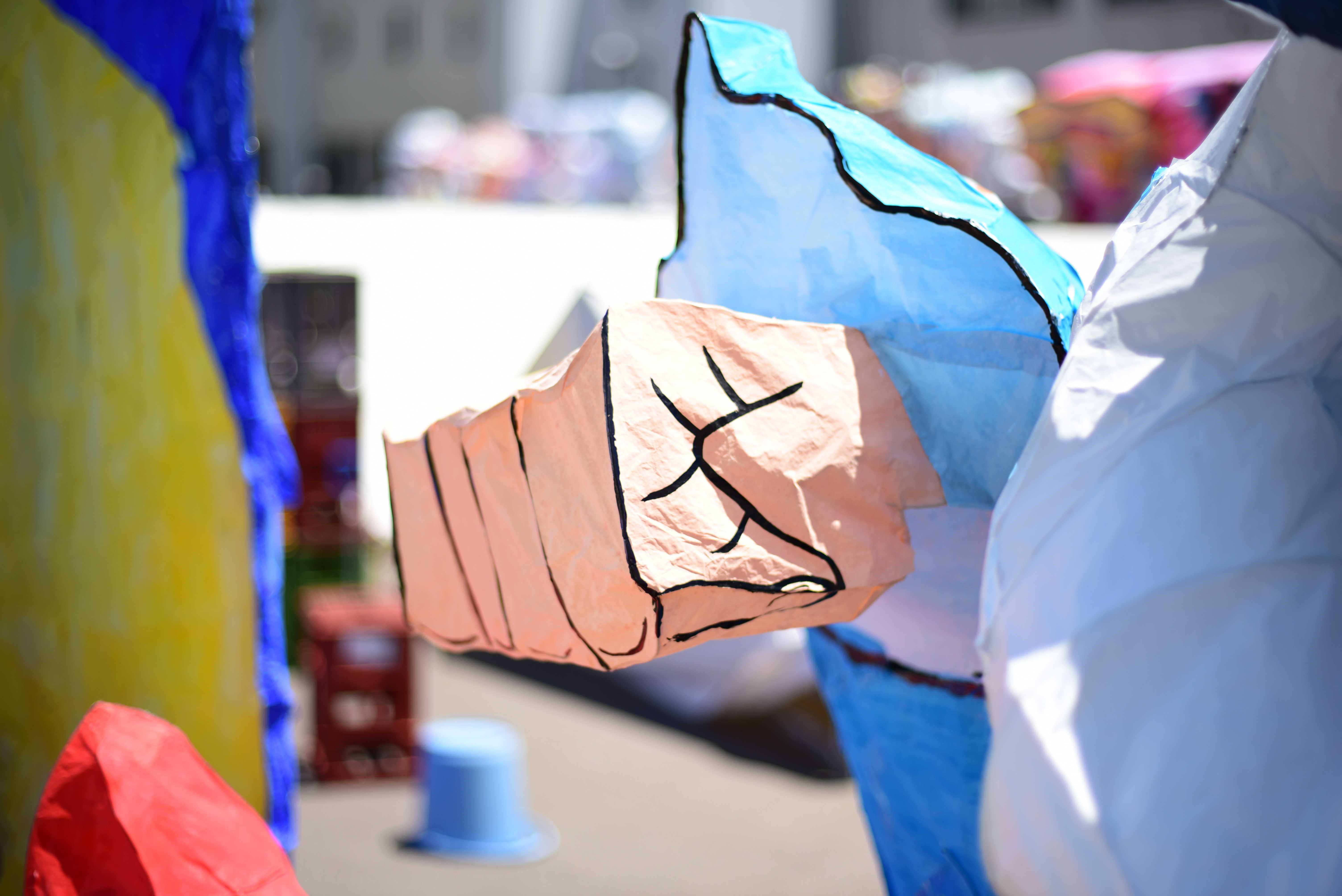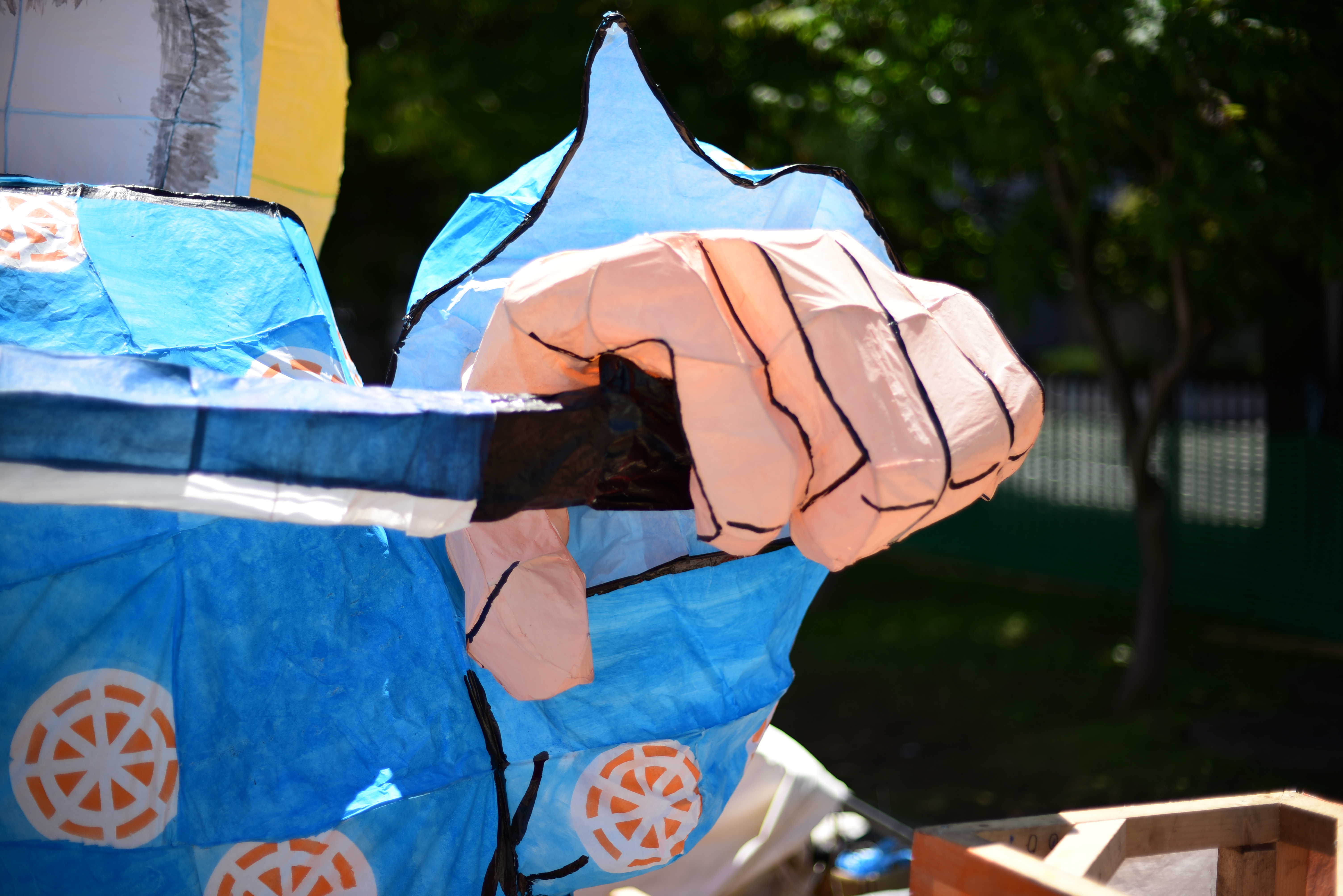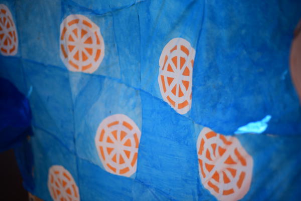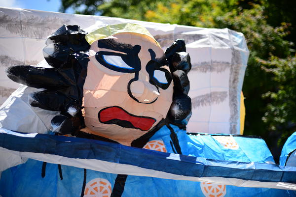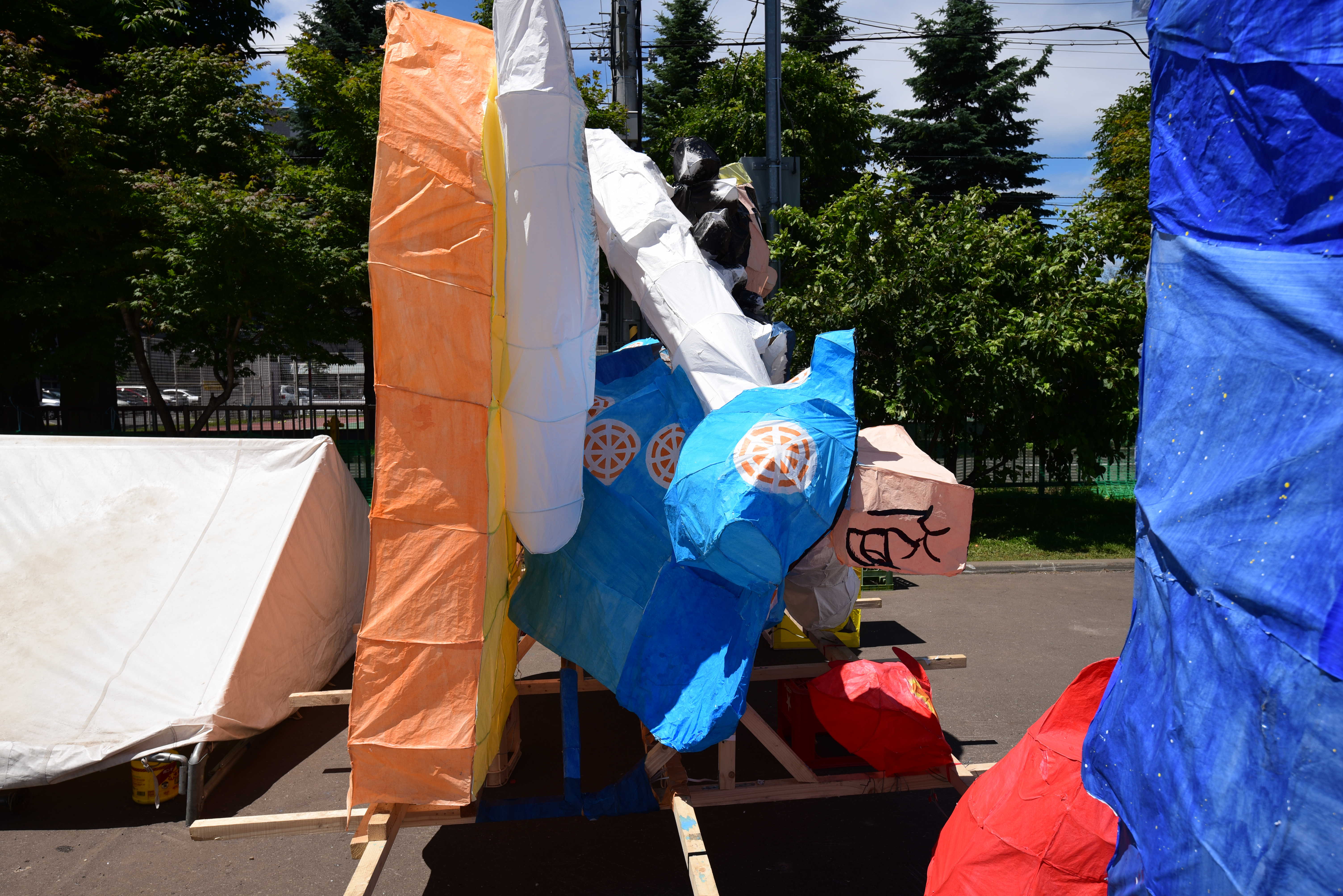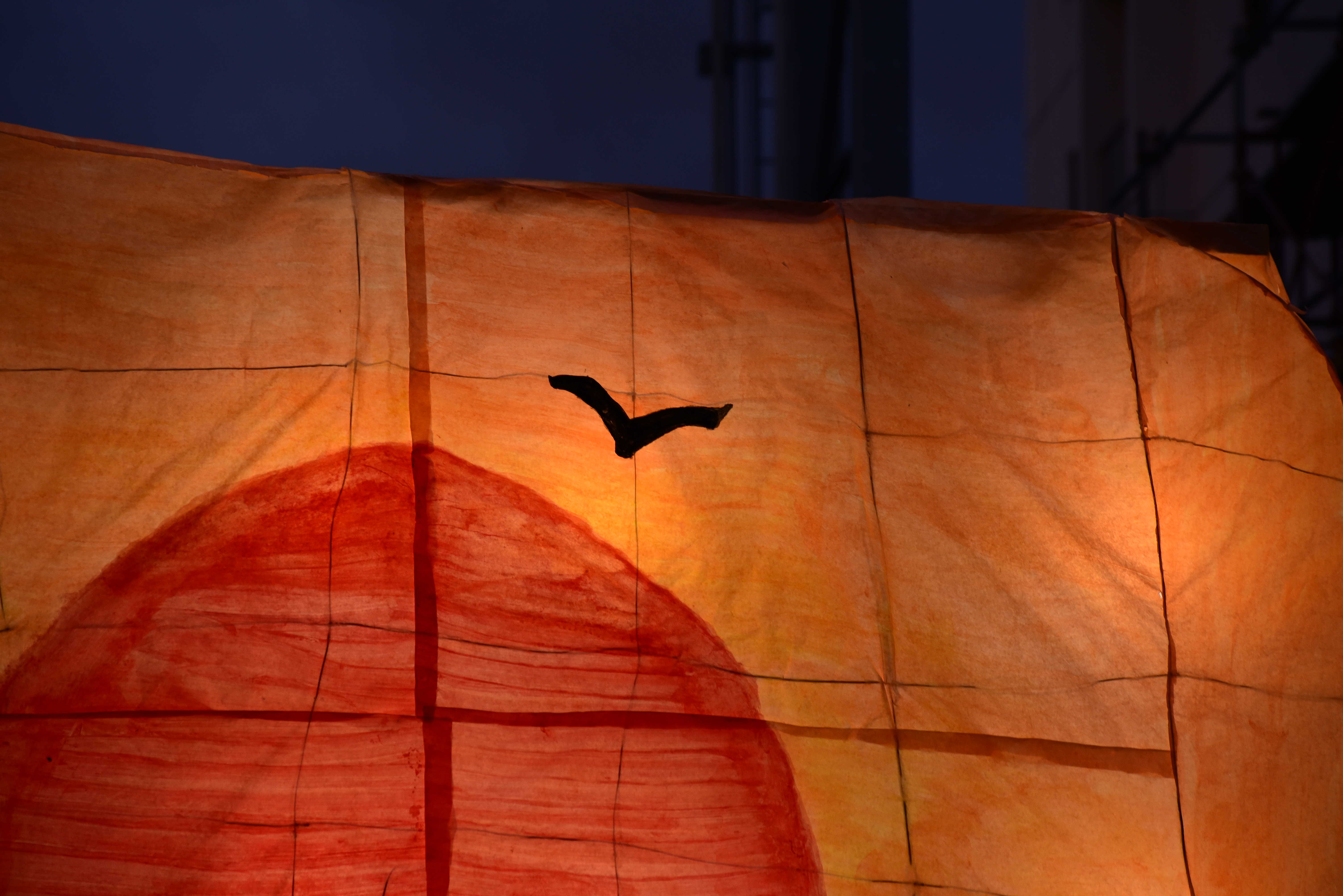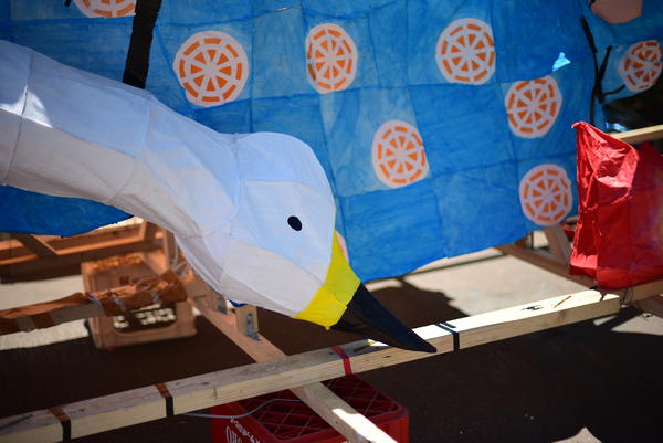白鳥が男性に後ろから巻き付くという斬新な構図をしていました。また、男性の衣服の水色と後ろの絵のオレンジの色の対比がよかったです。白鳥の胴体がわかりにくい感じになってしまったのが残念でした。