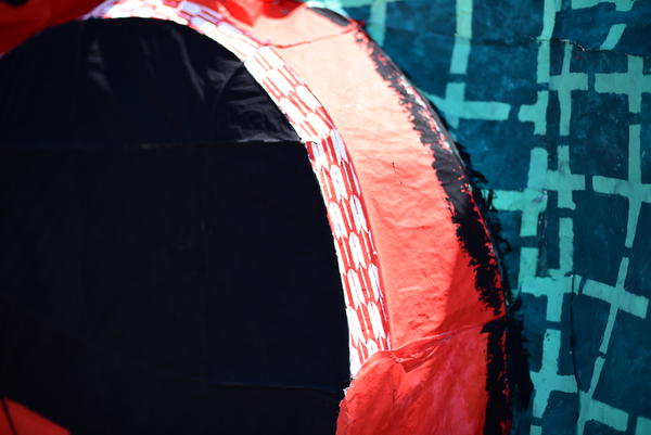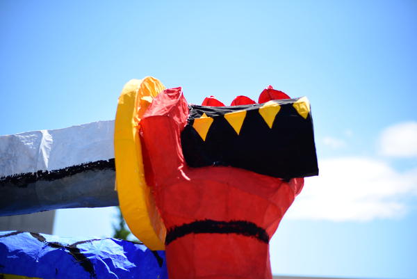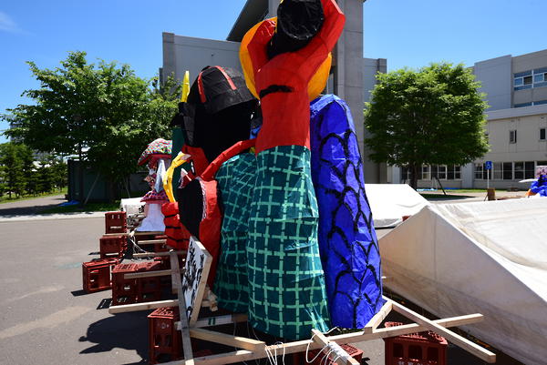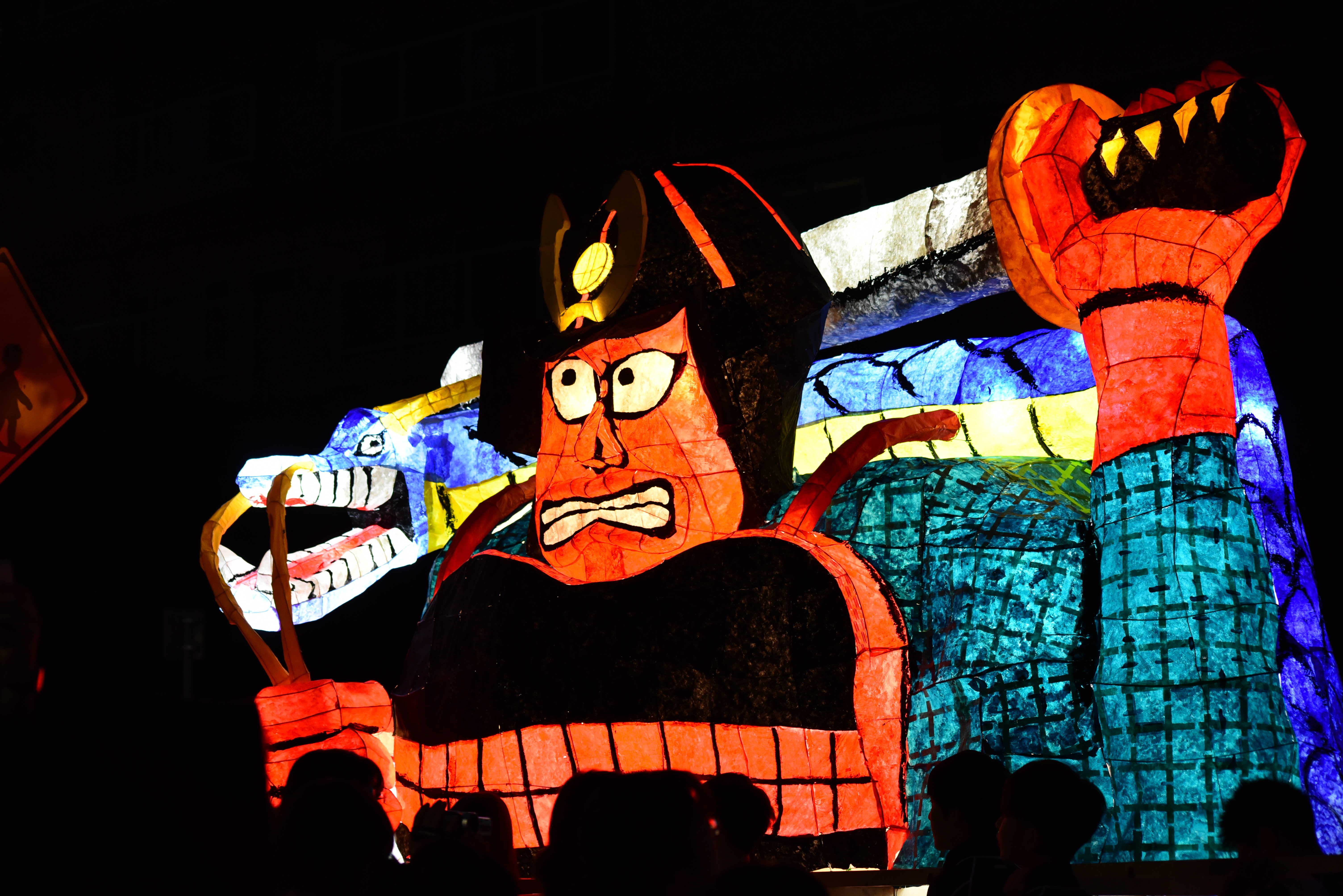 兜や鎧が上手く、全体的に光をよく通していたと思います。今年の2年生は電飾に苦戦しているクラスが多いように思えたので、素晴らしいです。また、剣もかなり長く、作るのが大変そうですが、成功していると思います。龍のひげを持つというアイデアも斬新でした。