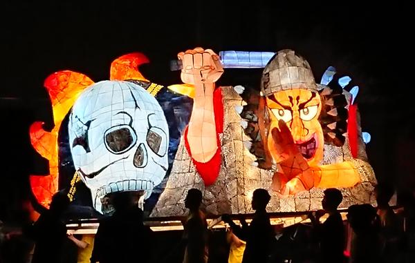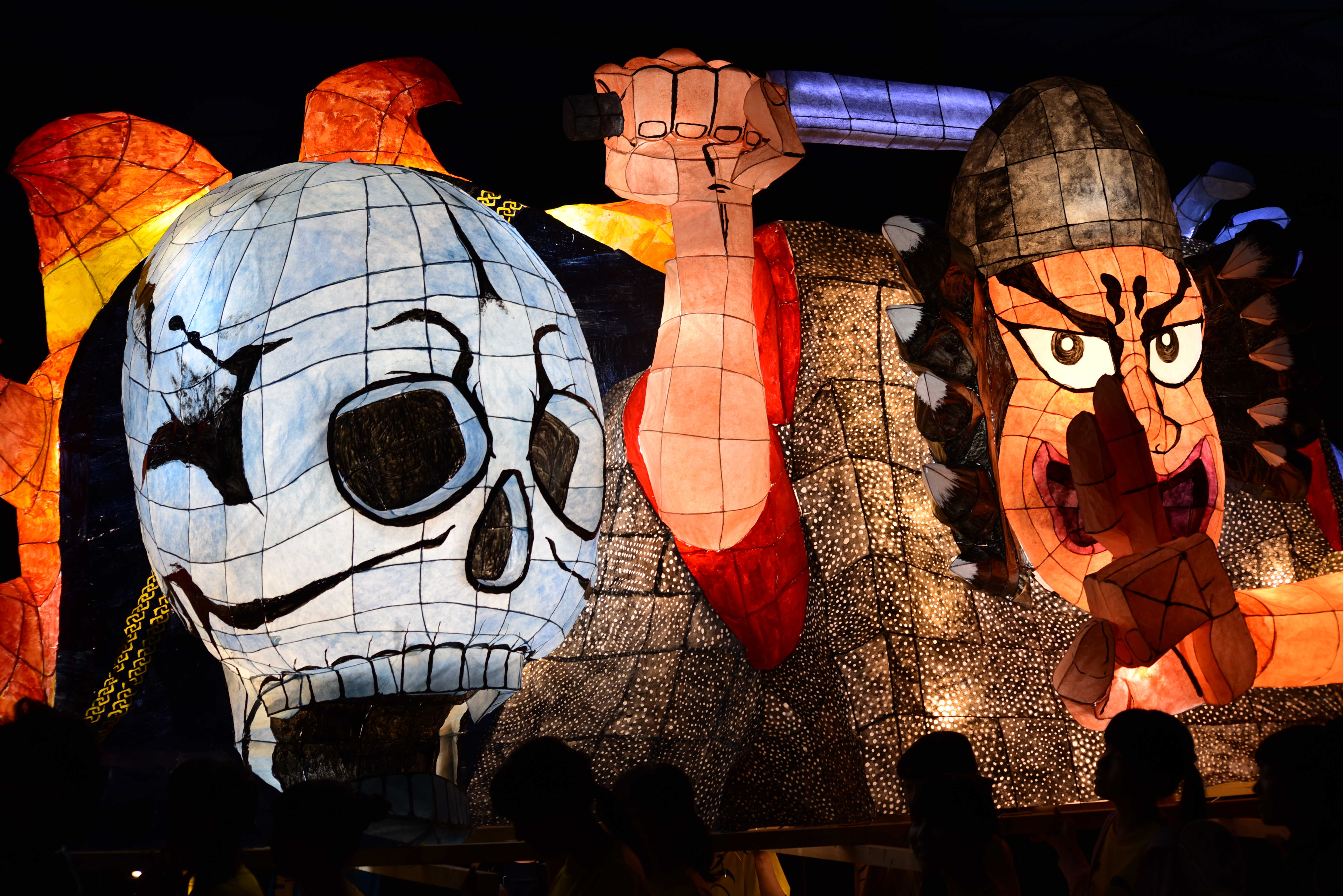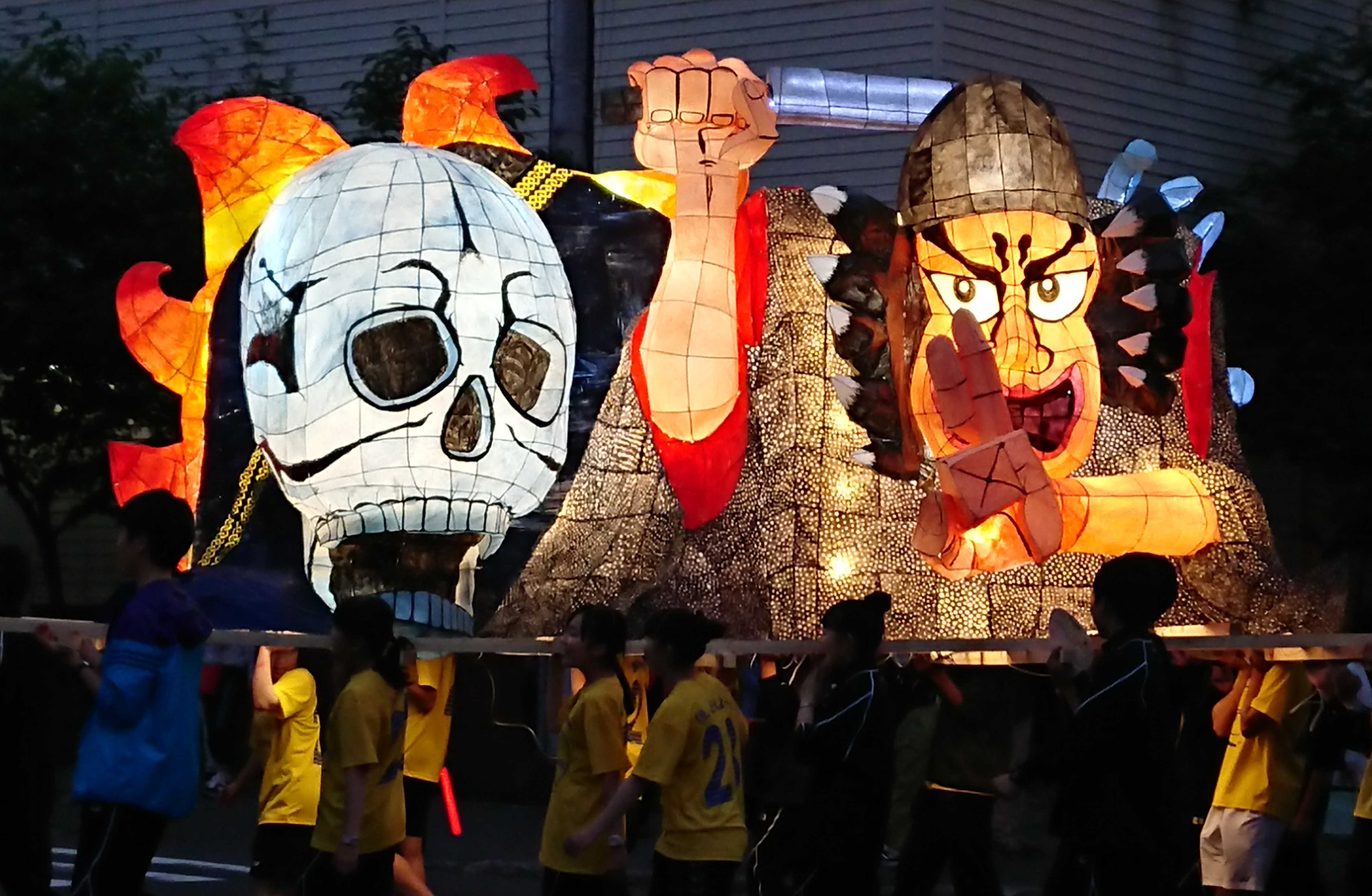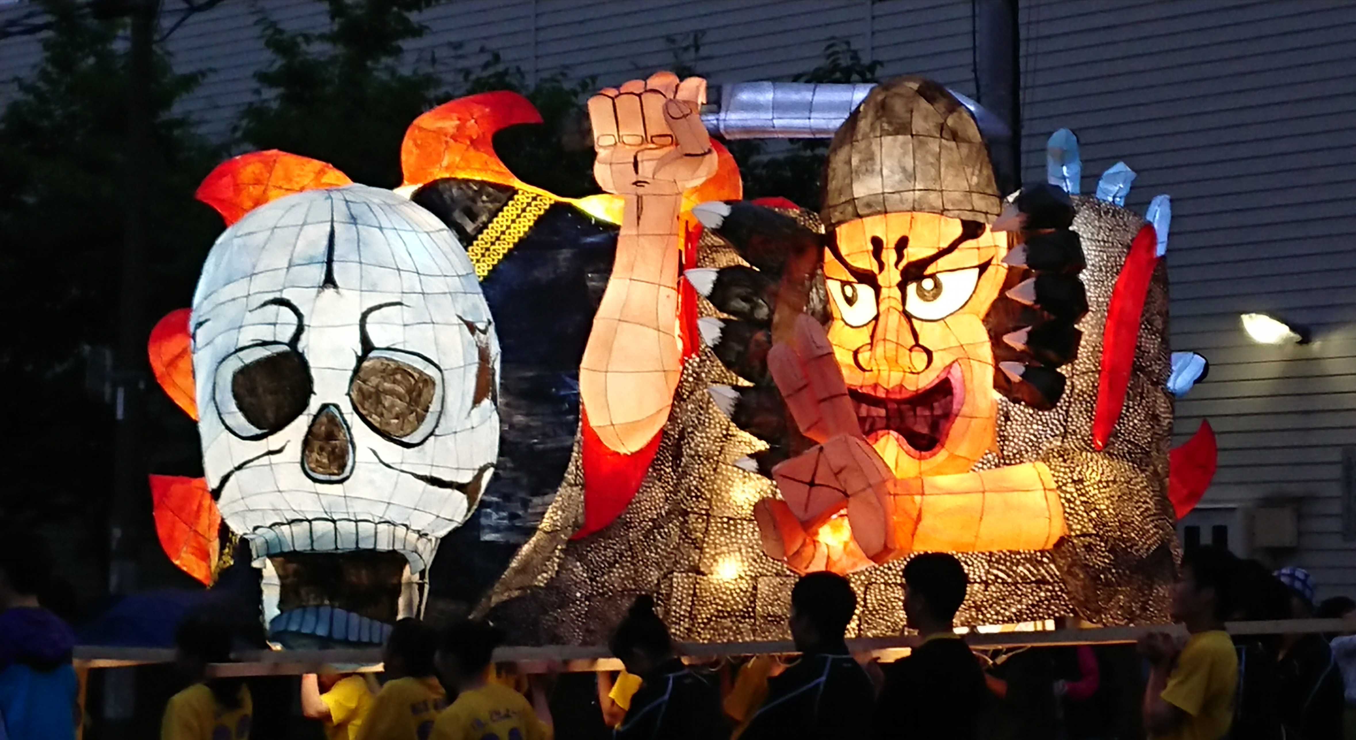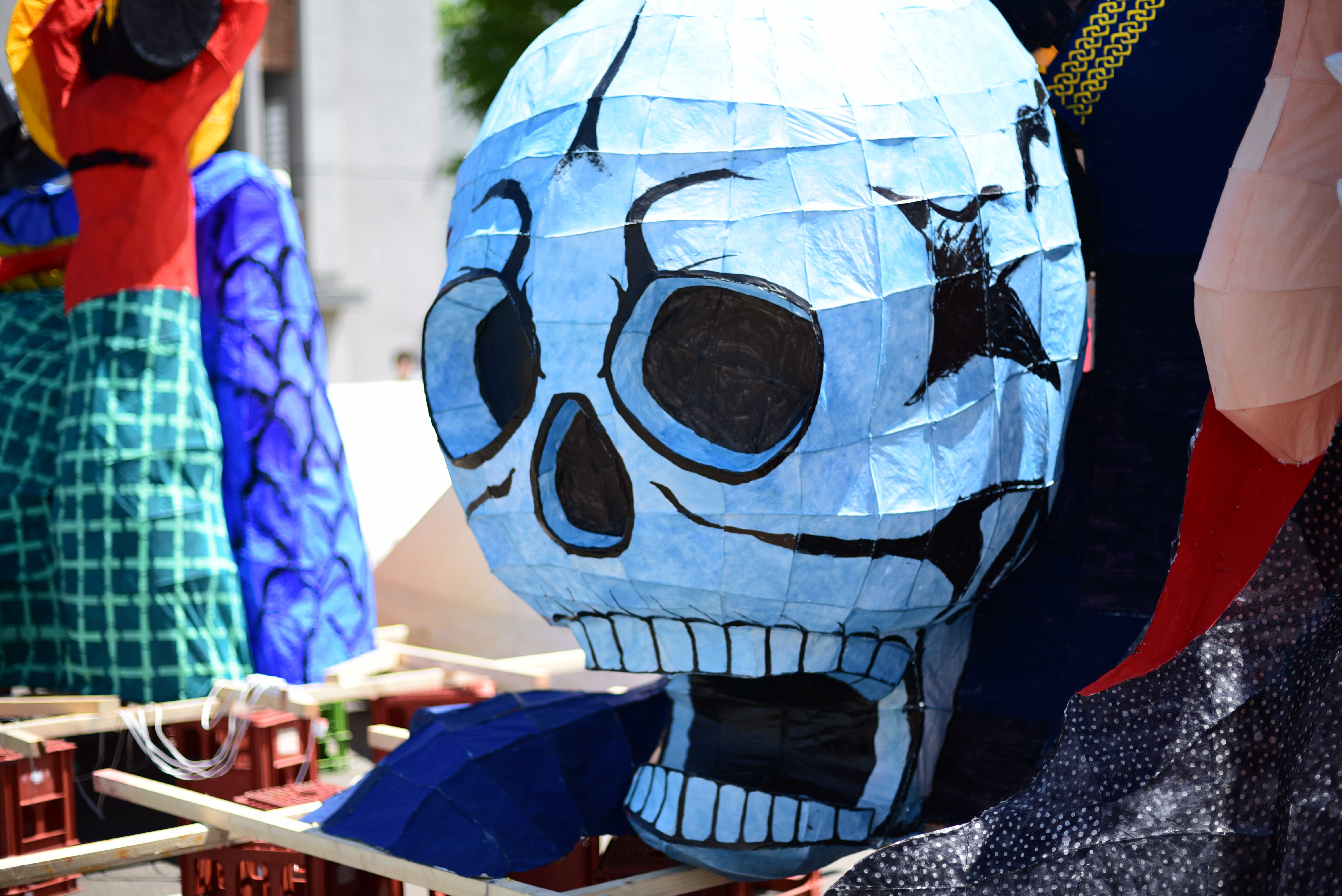 - 特筆すべきは骸骨です。針金・墨入れなどすべてにおいてレベルが高かったです。北高行灯の骸骨の中でもトップレベルだと思います。左手があまり見えなくなってしまっているので、正面から見えるくらいの位置に配置してもよかったと思います。