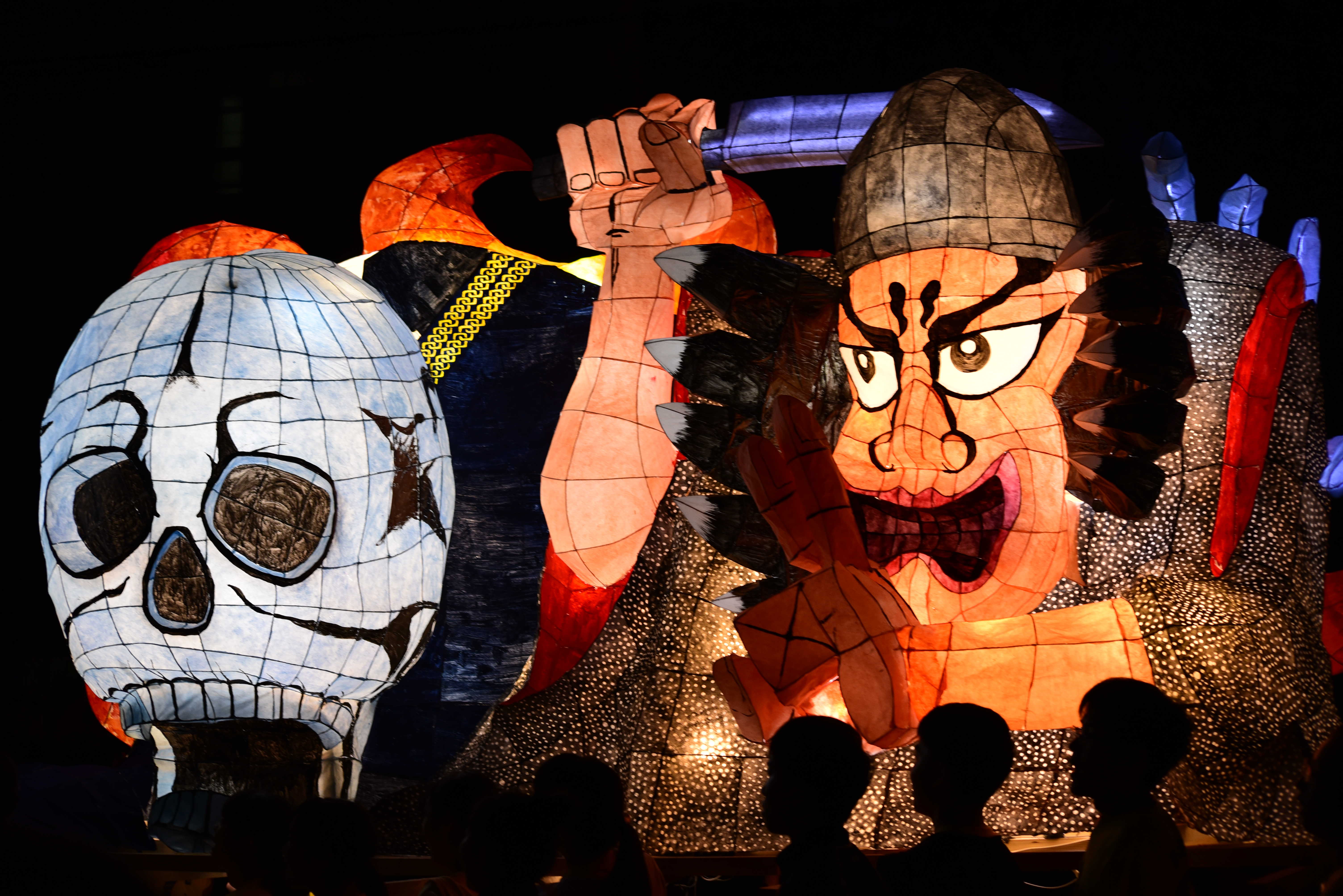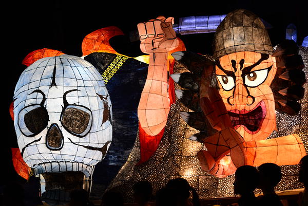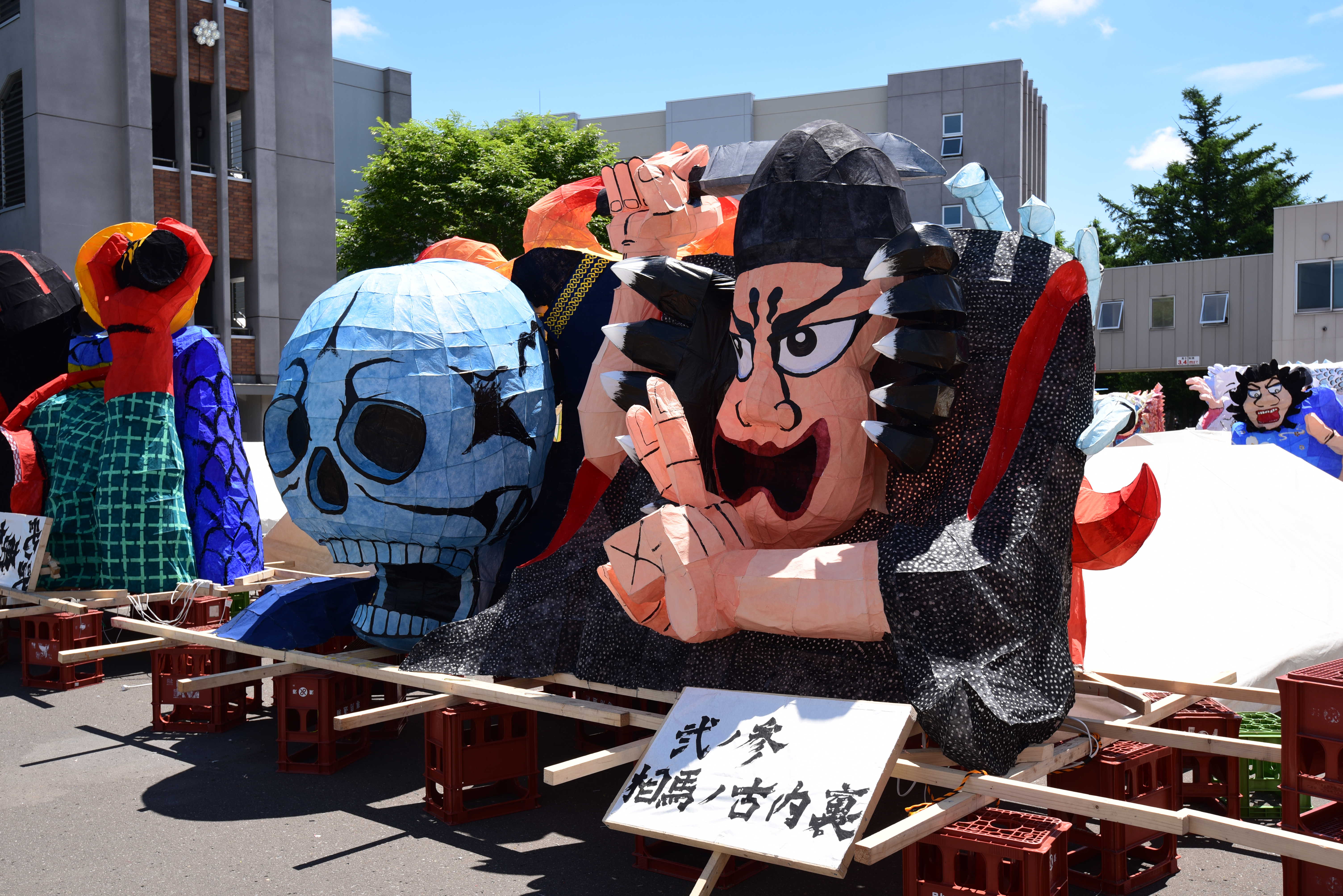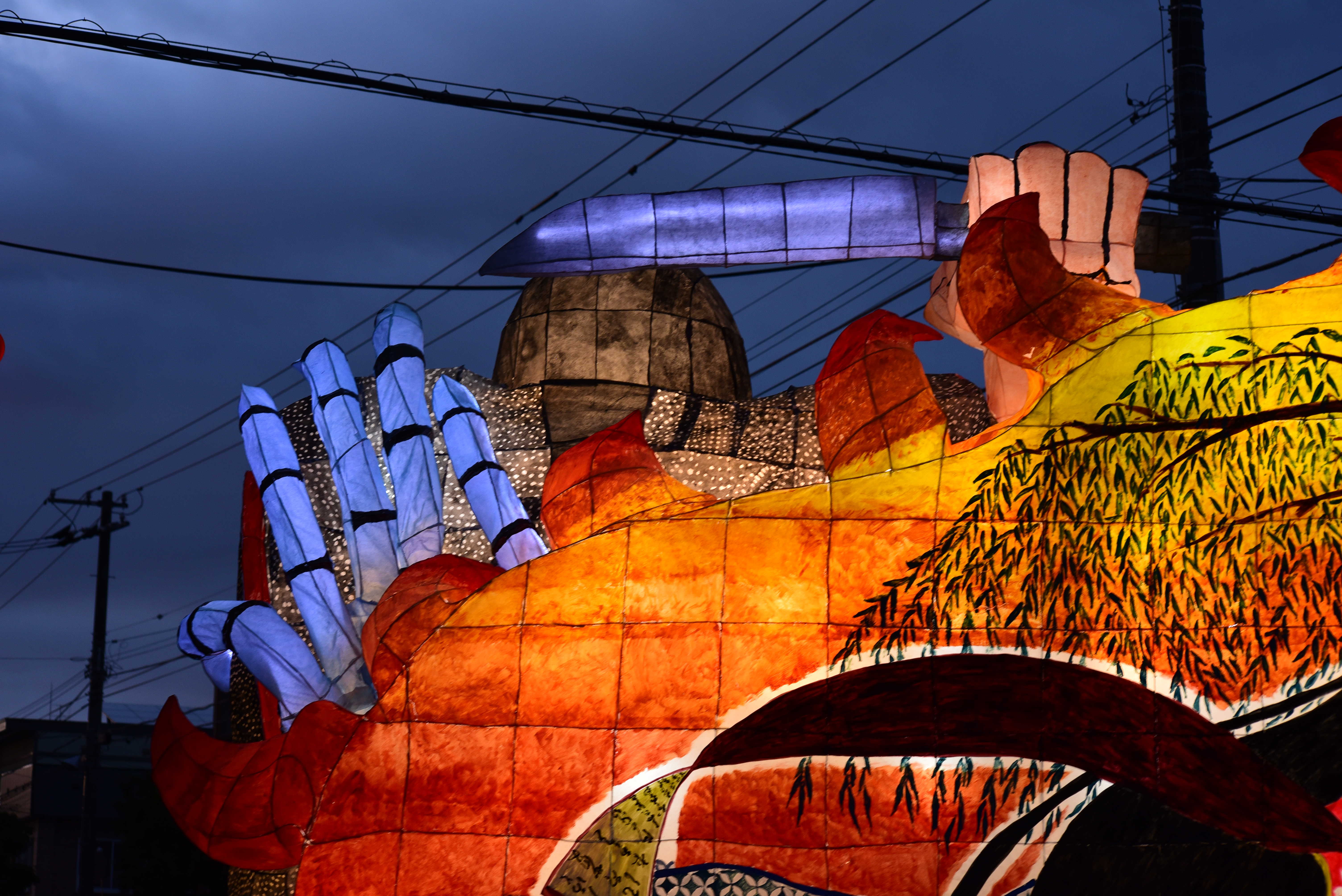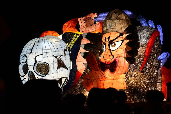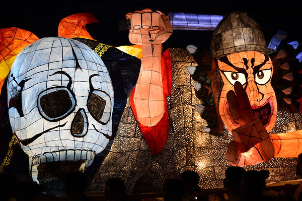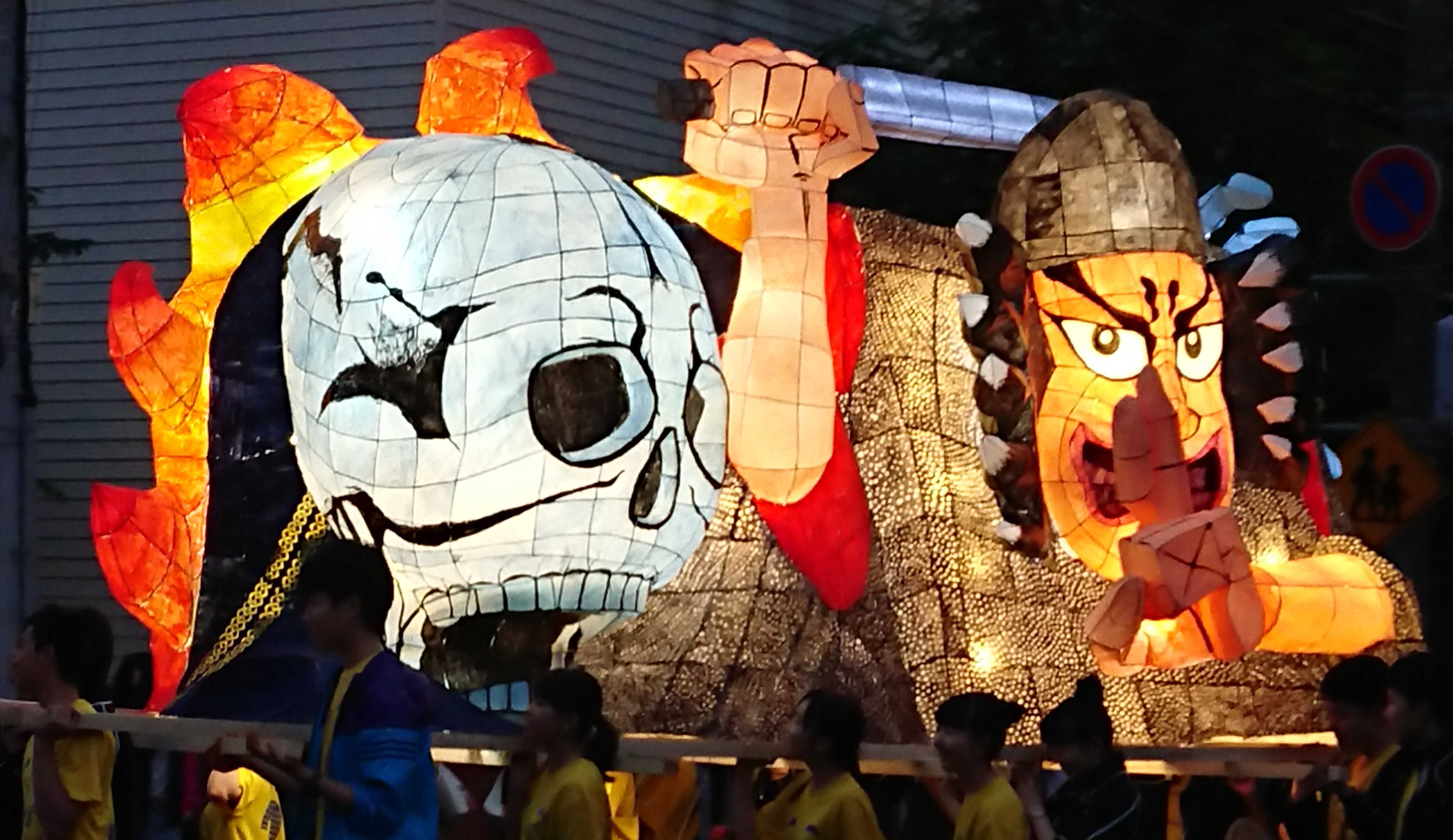 - 特筆すべきは骸骨です。針金・墨入れなどすべてにおいてレベルが高かったです。北高行灯の骸骨の中でもトップレベルだと思います。左手があまり見えなくなってしまっているので、正面から見えるくらいの位置に配置してもよかったと思います。