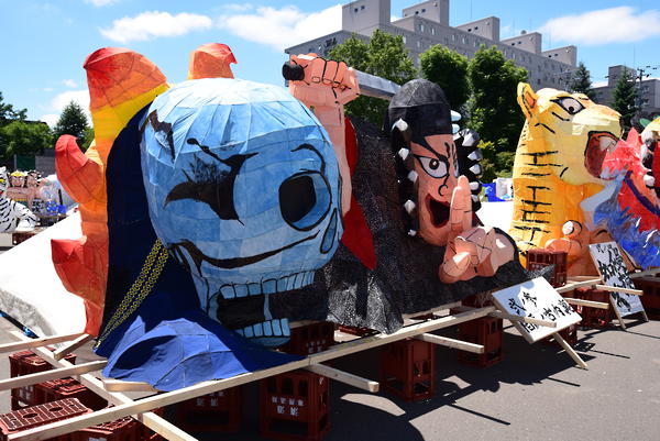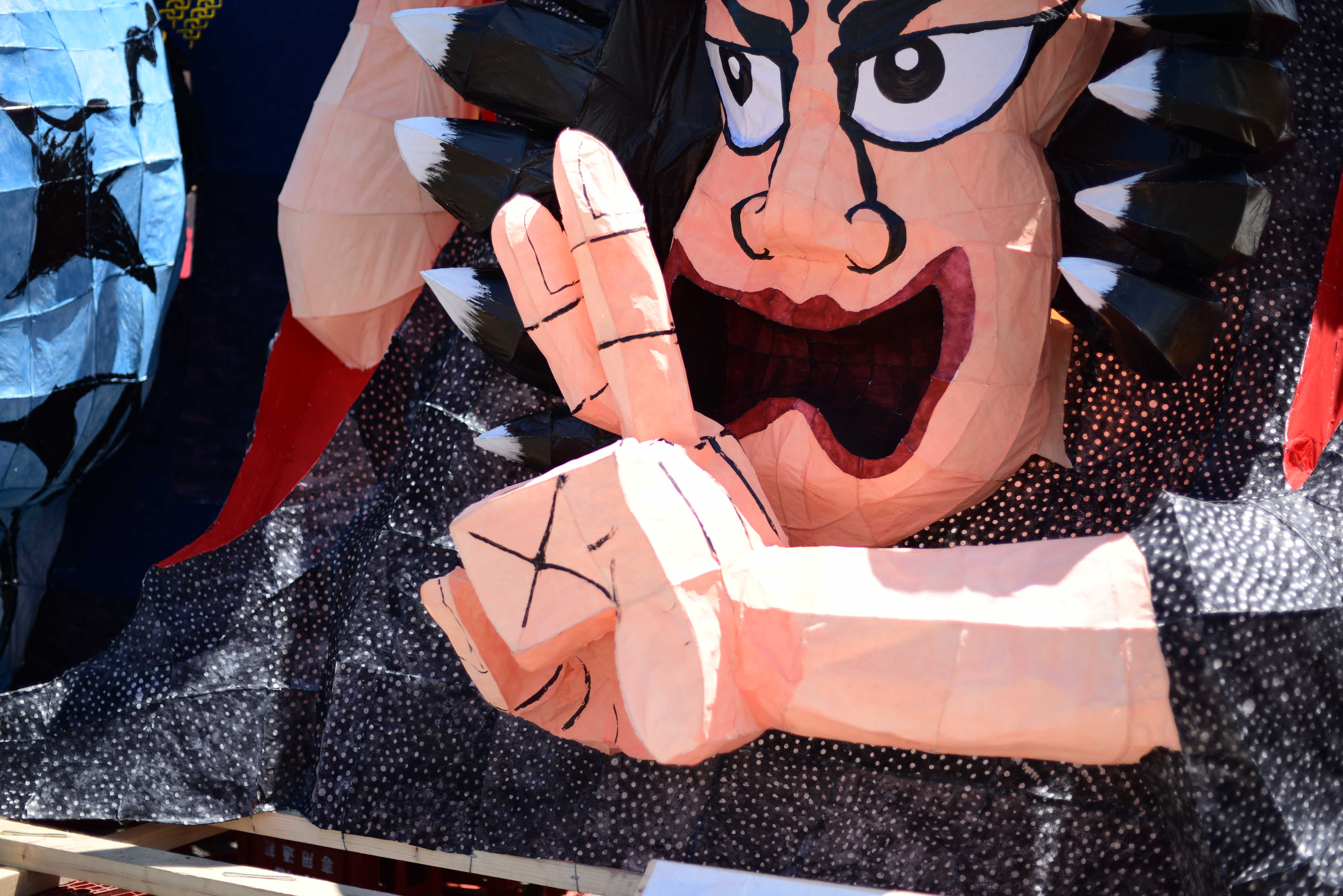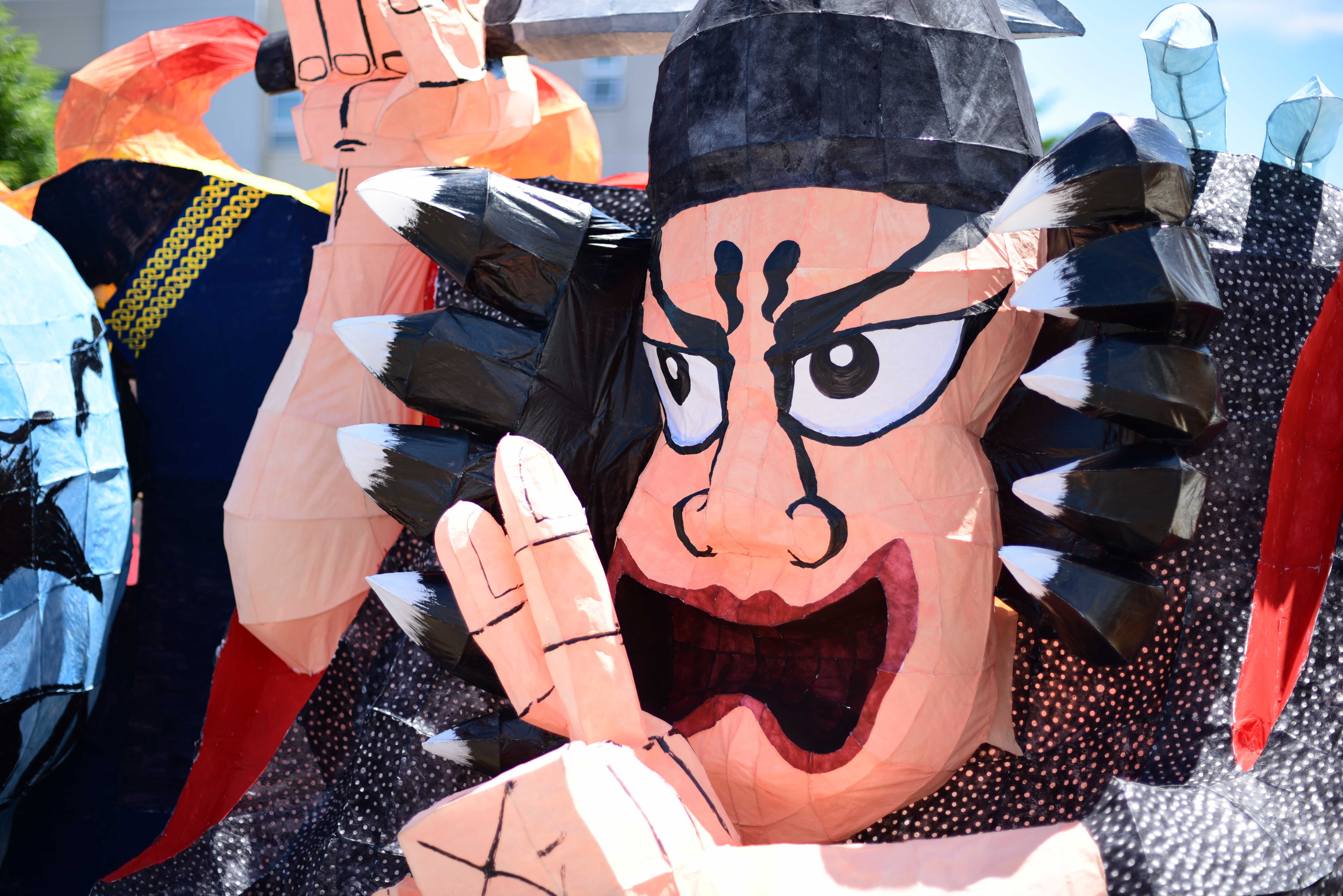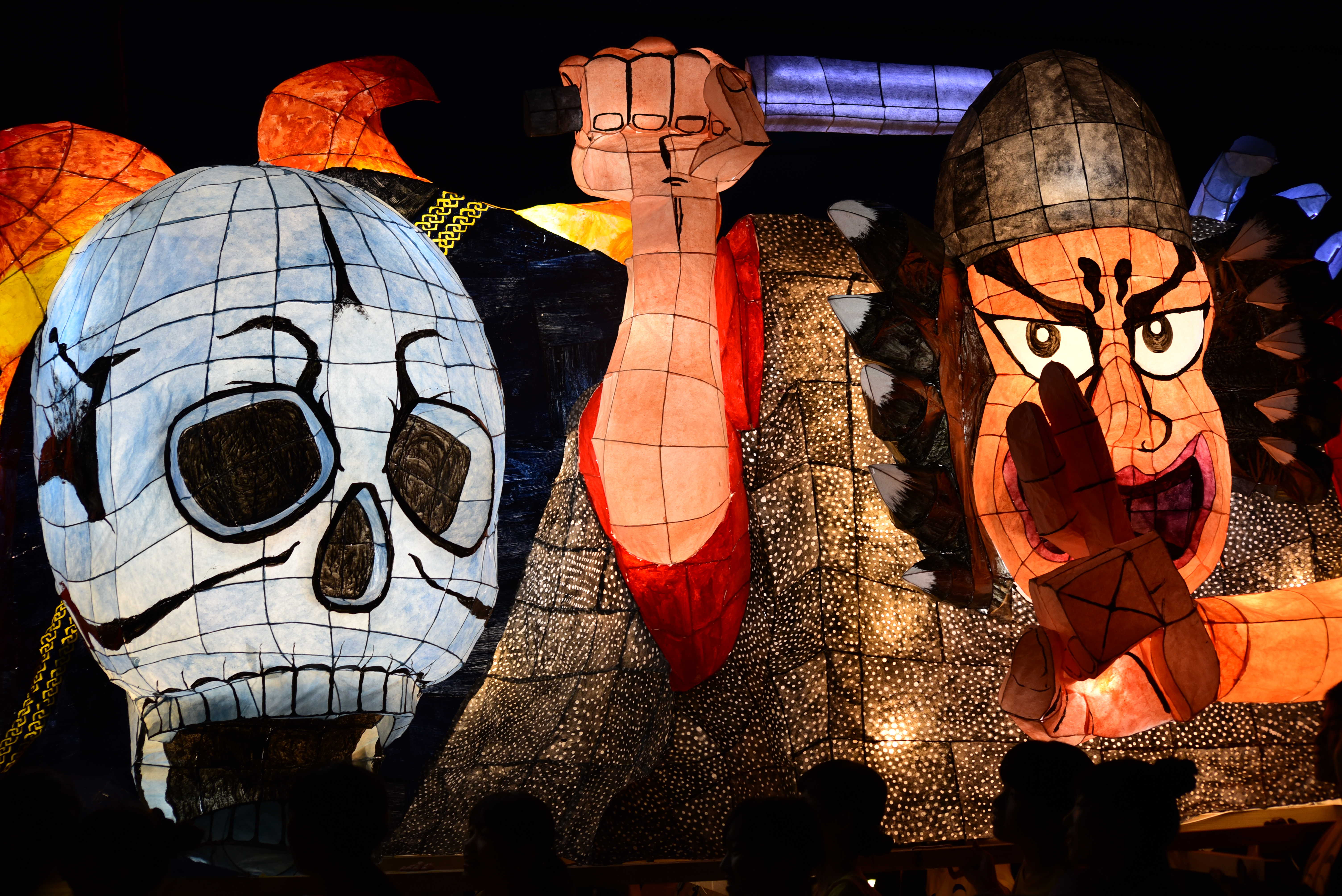 - 特筆すべきは骸骨です。針金・墨入れなどすべてにおいてレベルが高かったです。北高行灯の骸骨の中でもトップレベルだと思います。左手があまり見えなくなってしまっているので、正面から見えるくらいの位置に配置してもよかったと思います。