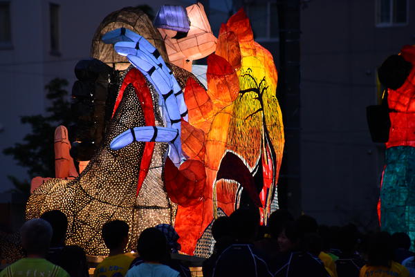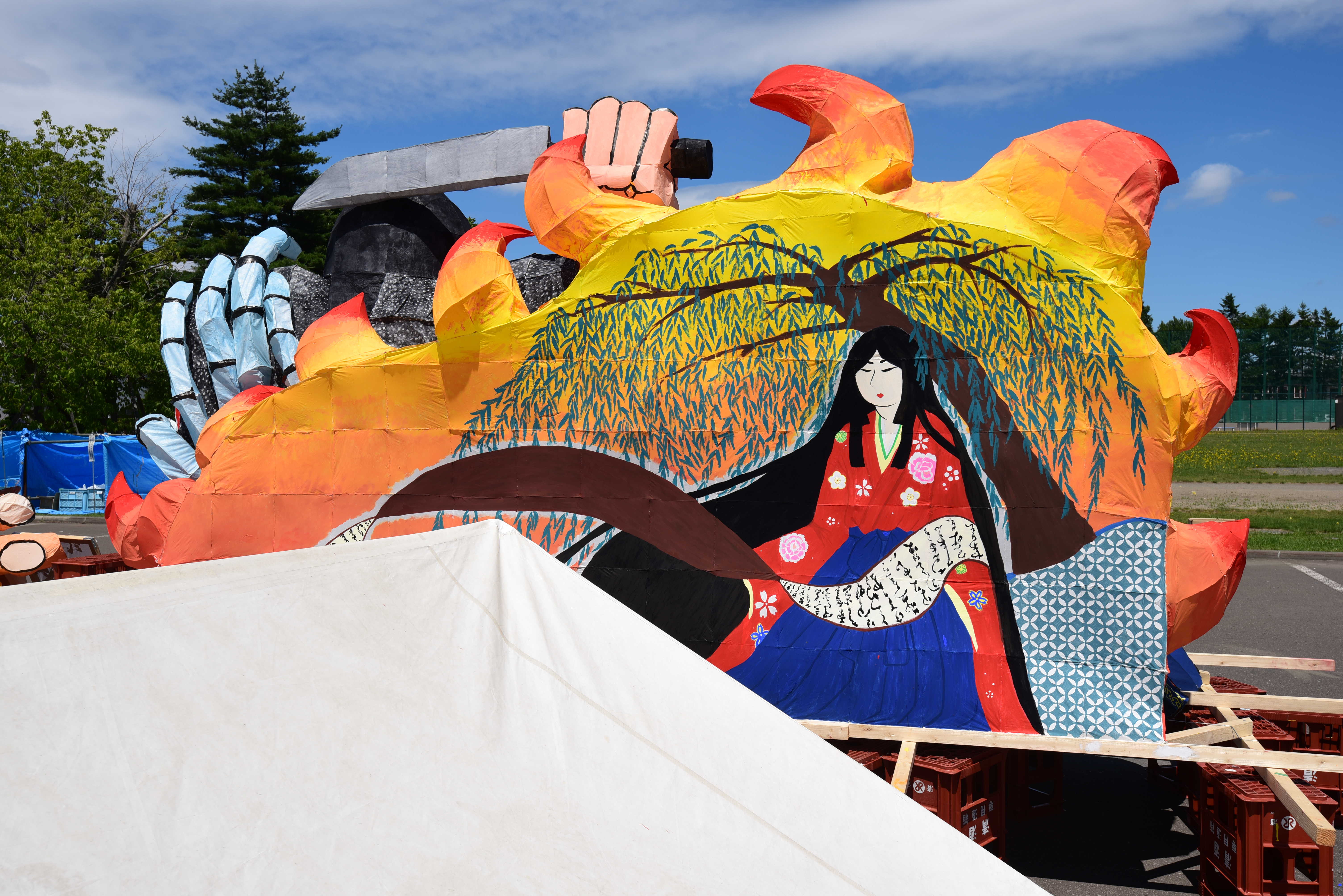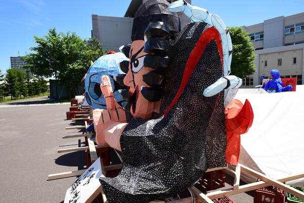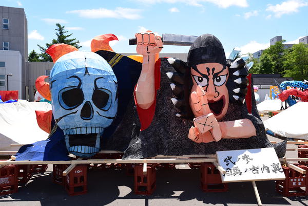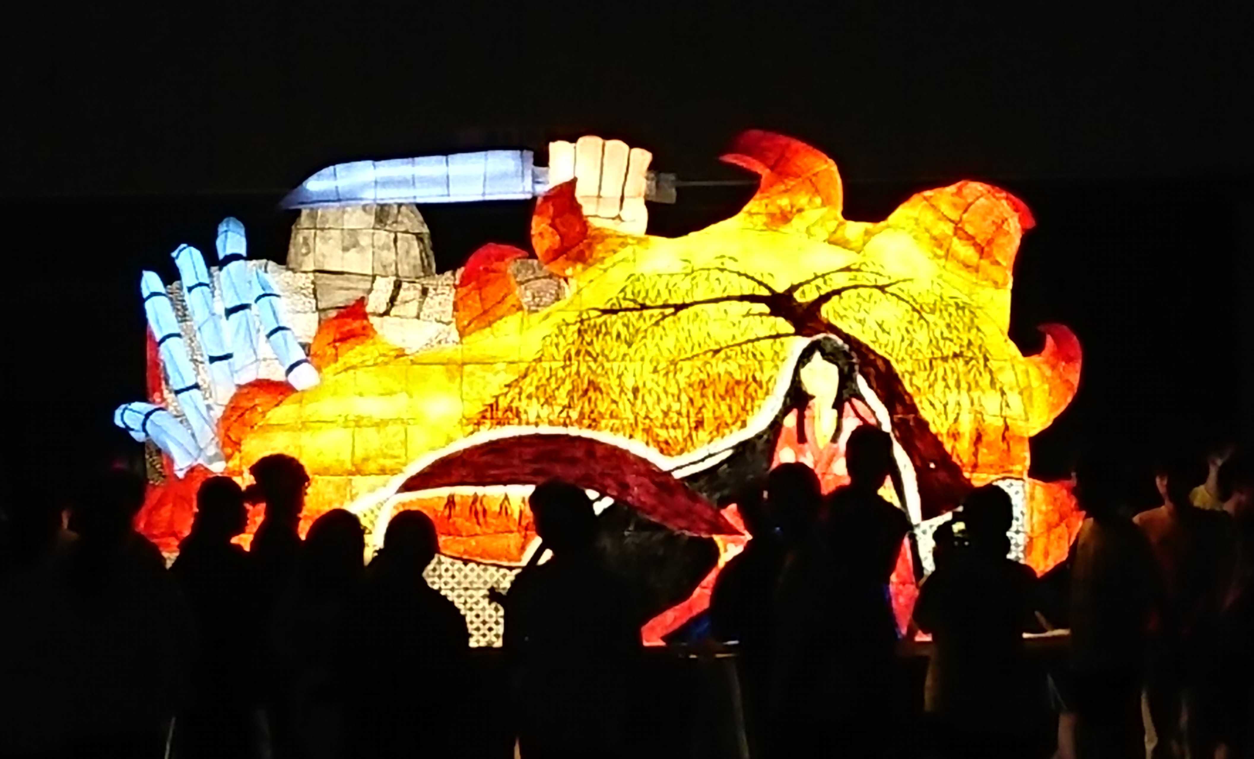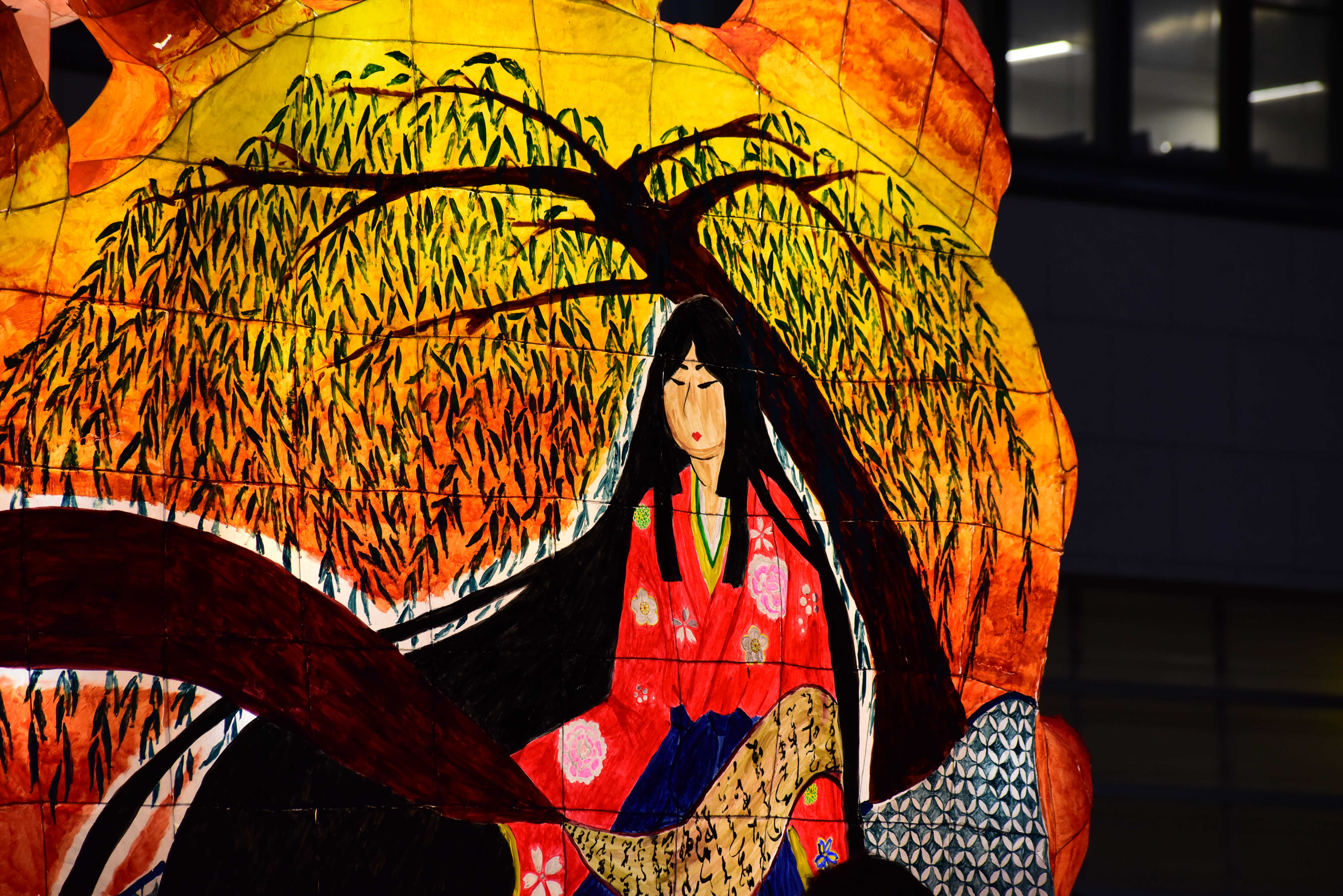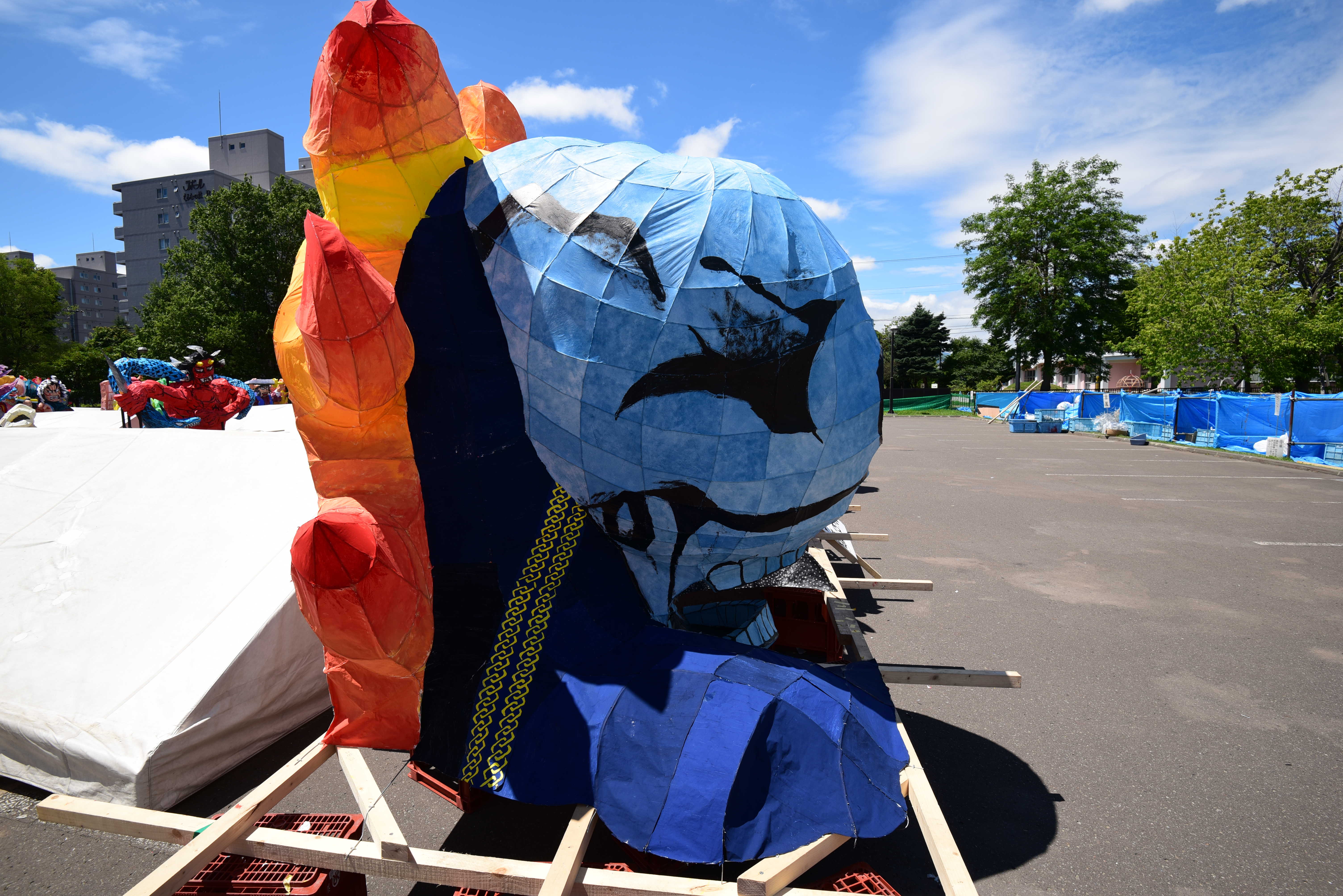 - 特筆すべきは骸骨です。針金・墨入れなどすべてにおいてレベルが高かったです。北高行灯の骸骨の中でもトップレベルだと思います。左手があまり見えなくなってしまっているので、正面から見えるくらいの位置に配置してもよかったと思います。