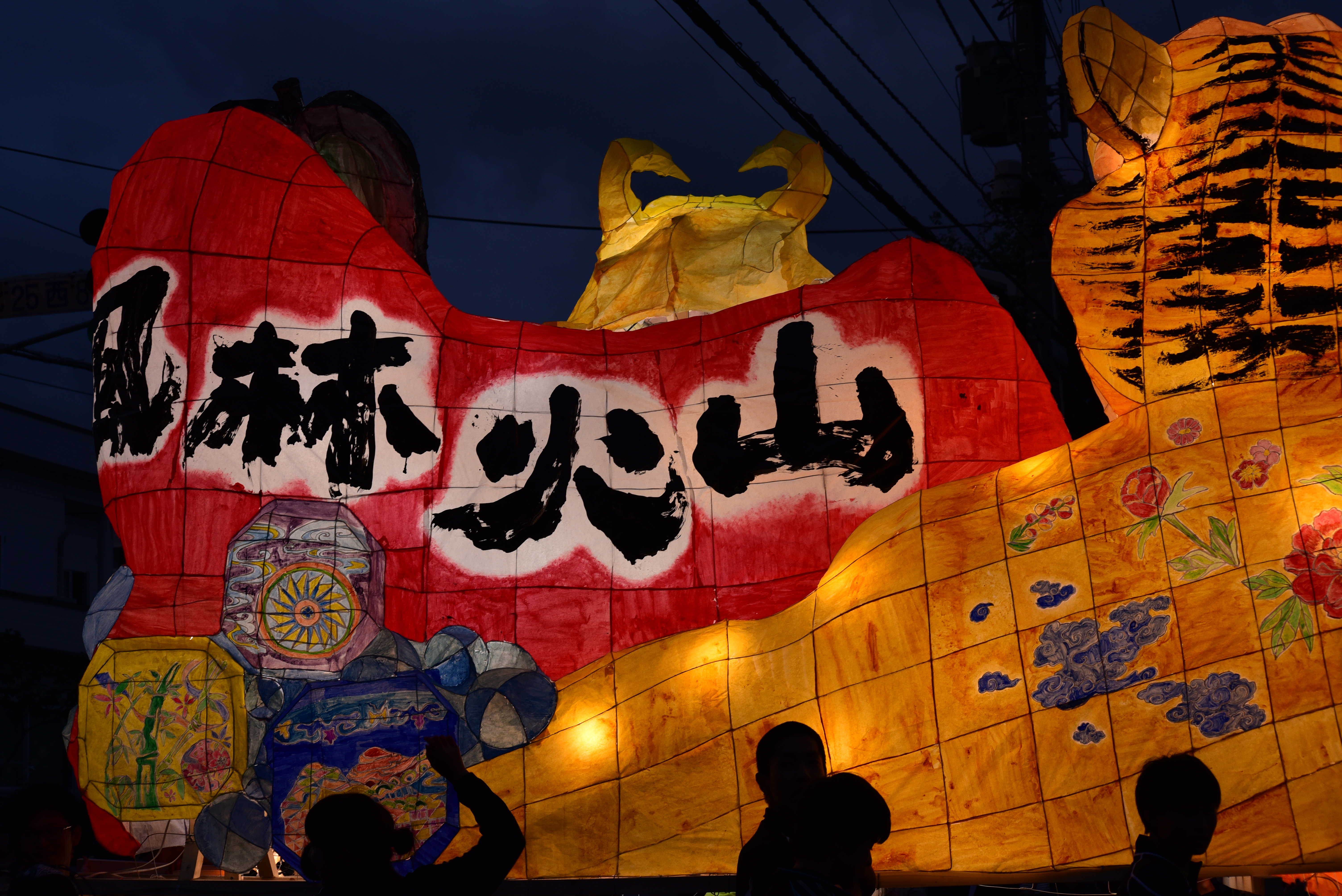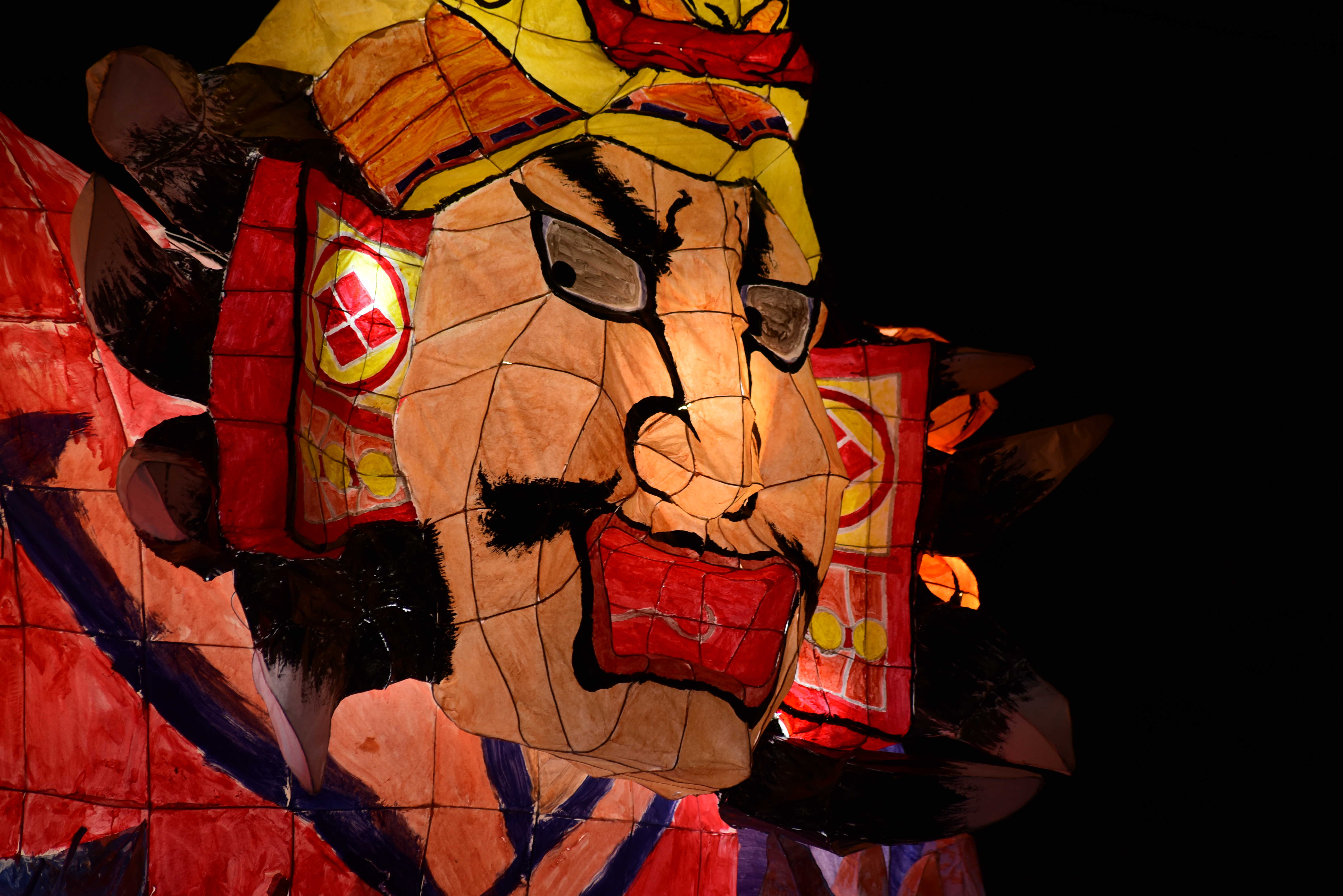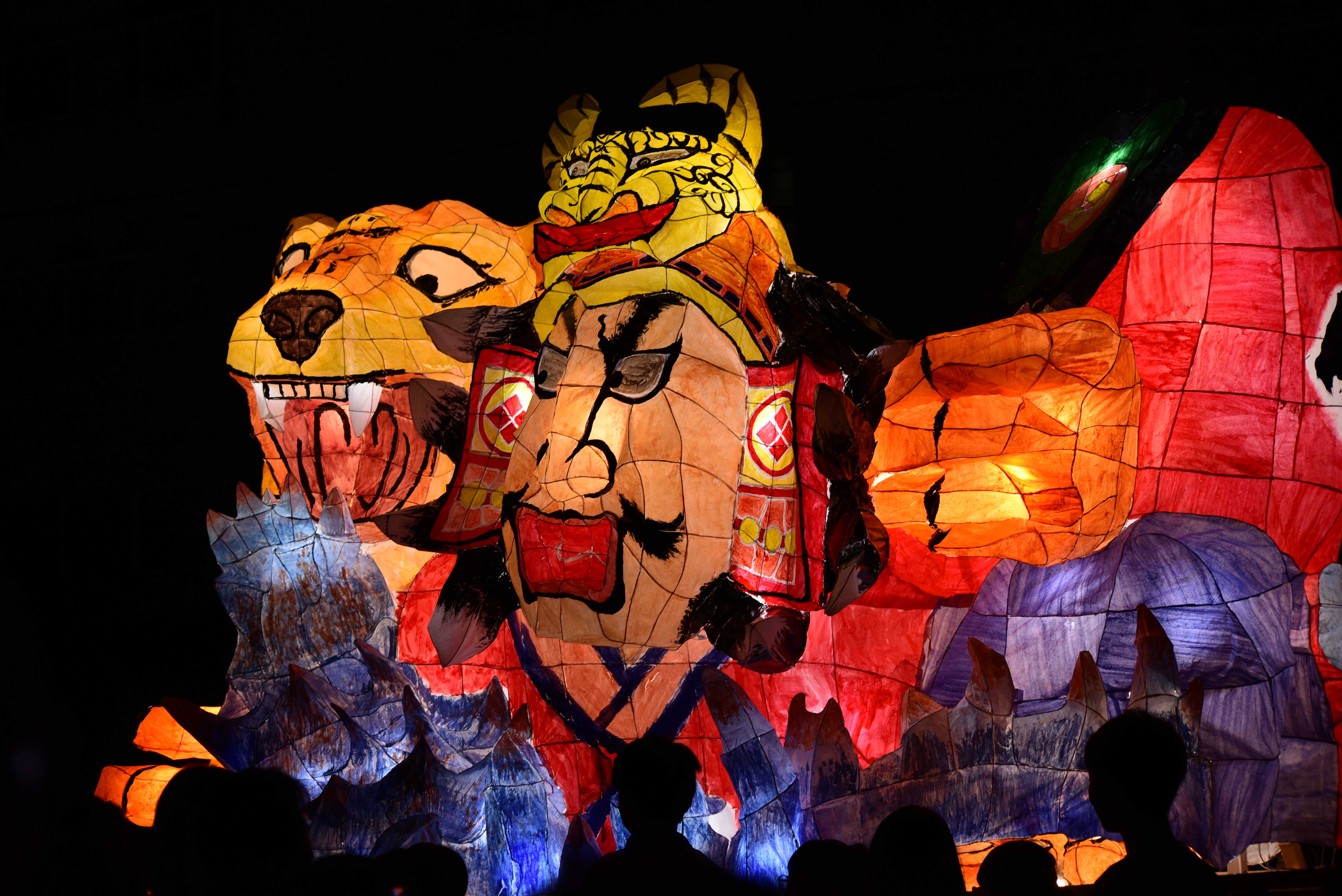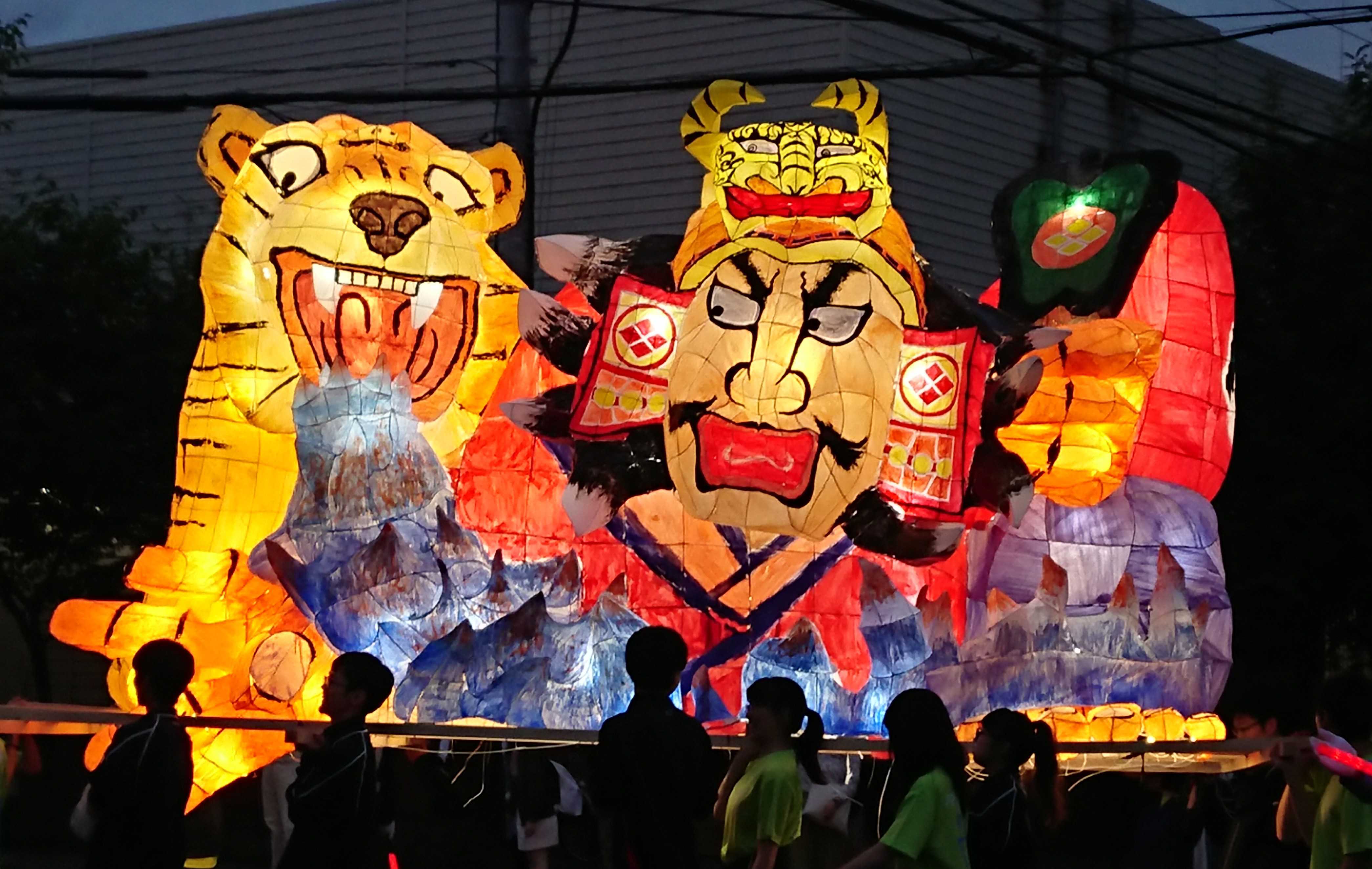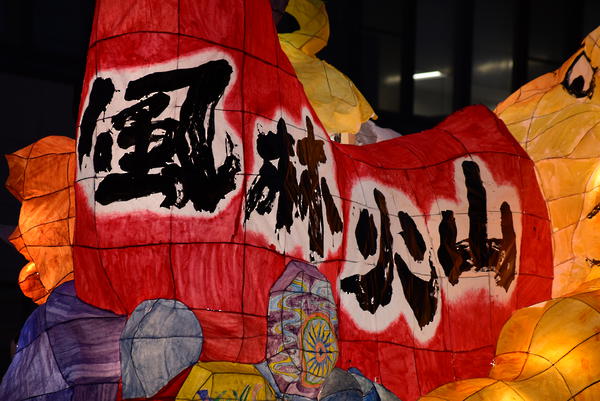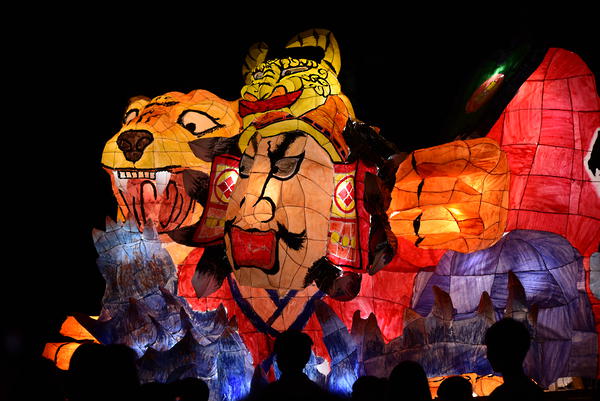 - 虎・人ともに大きくはっきりと作られていて、鮮やかな色が多かったので、何を表している行灯なのかがとても分かりやすかったです。また、針金、電飾、紙貼りなどすべての技術が安定していたため、金賞になったのだと思います。あとは、兜のデザインが凝っていてよかったです。