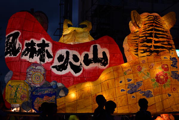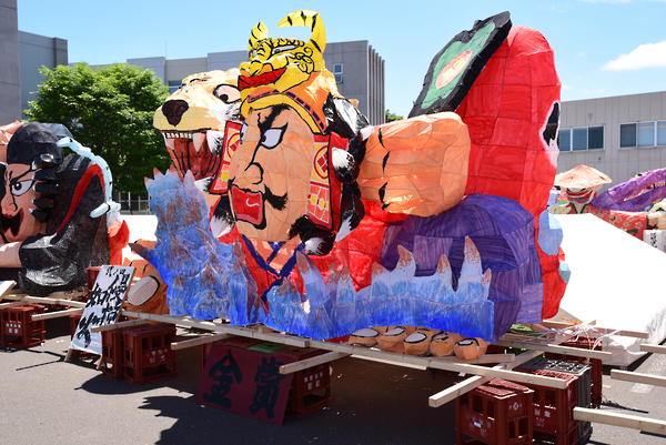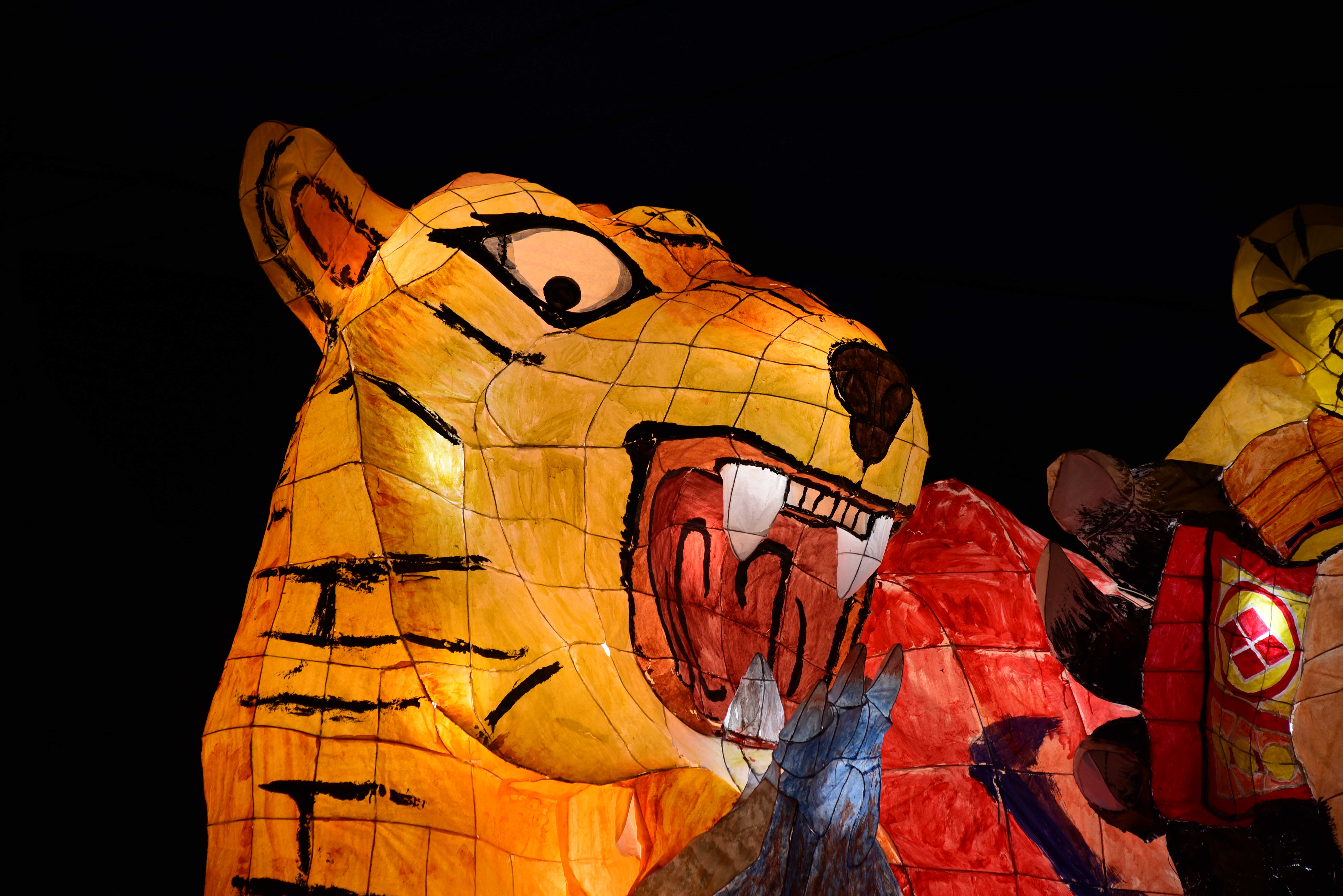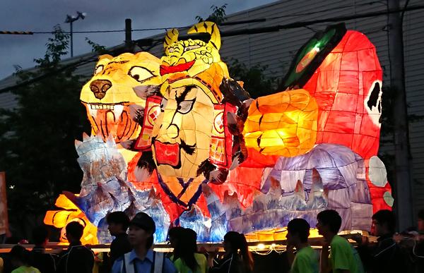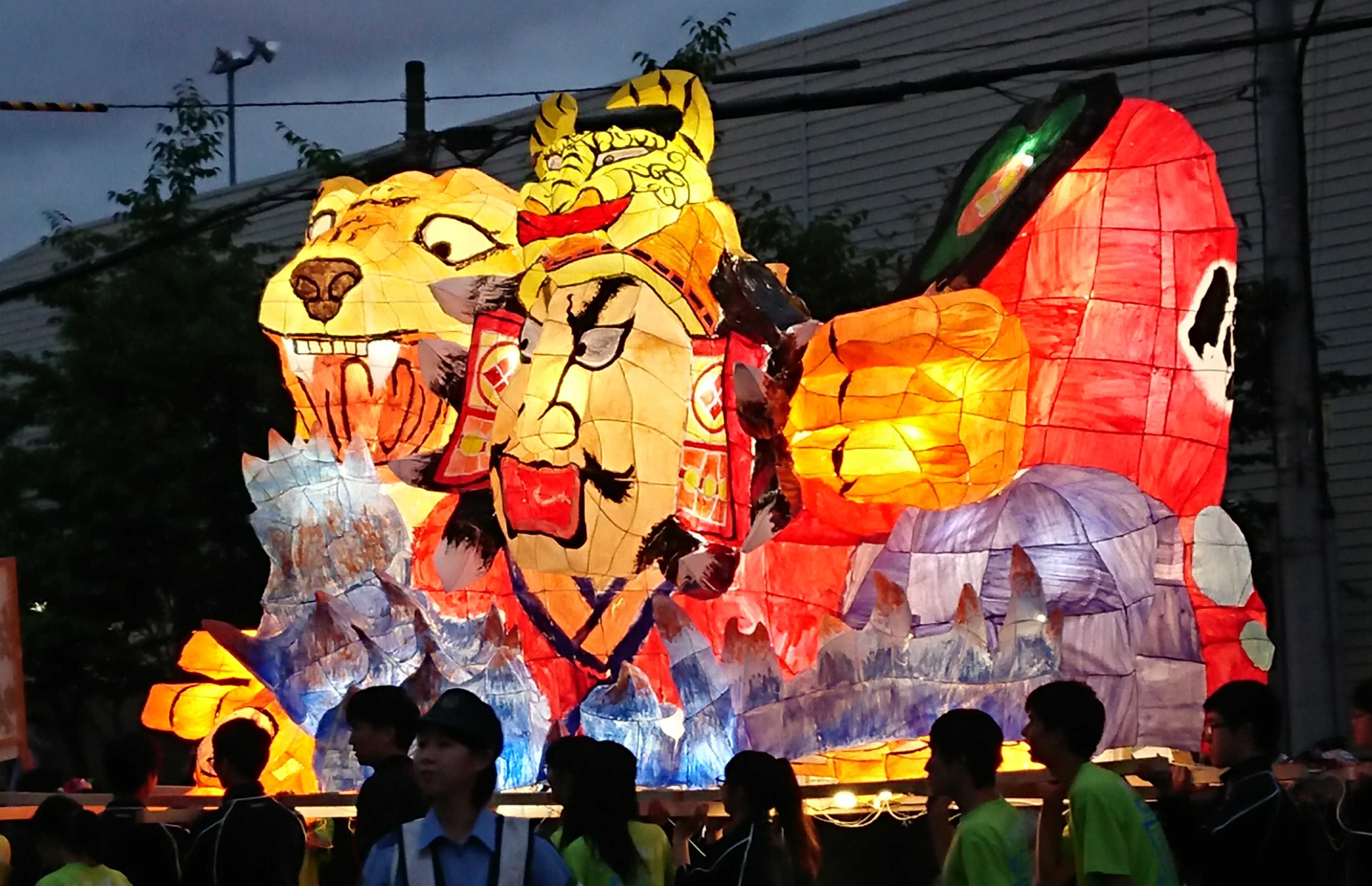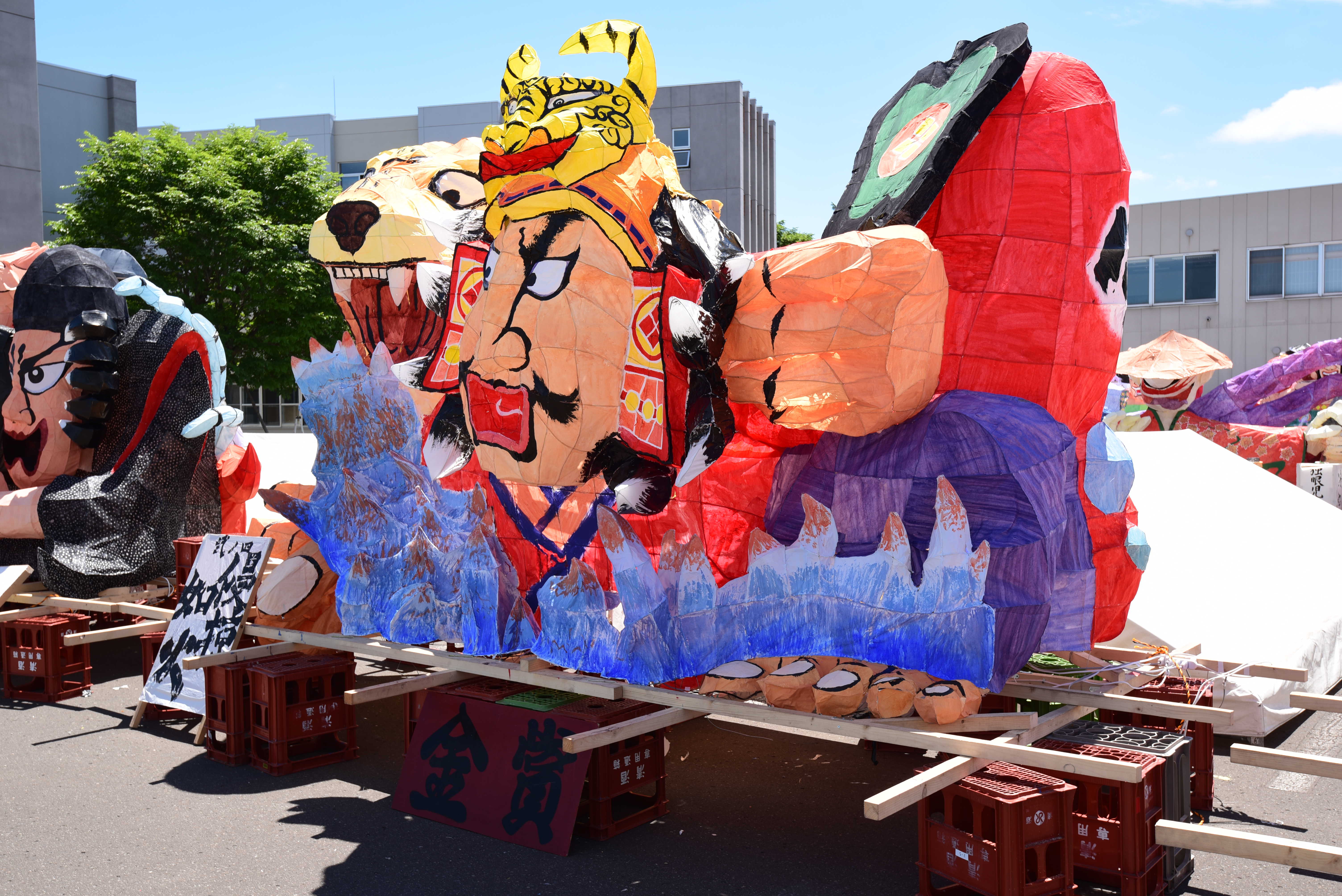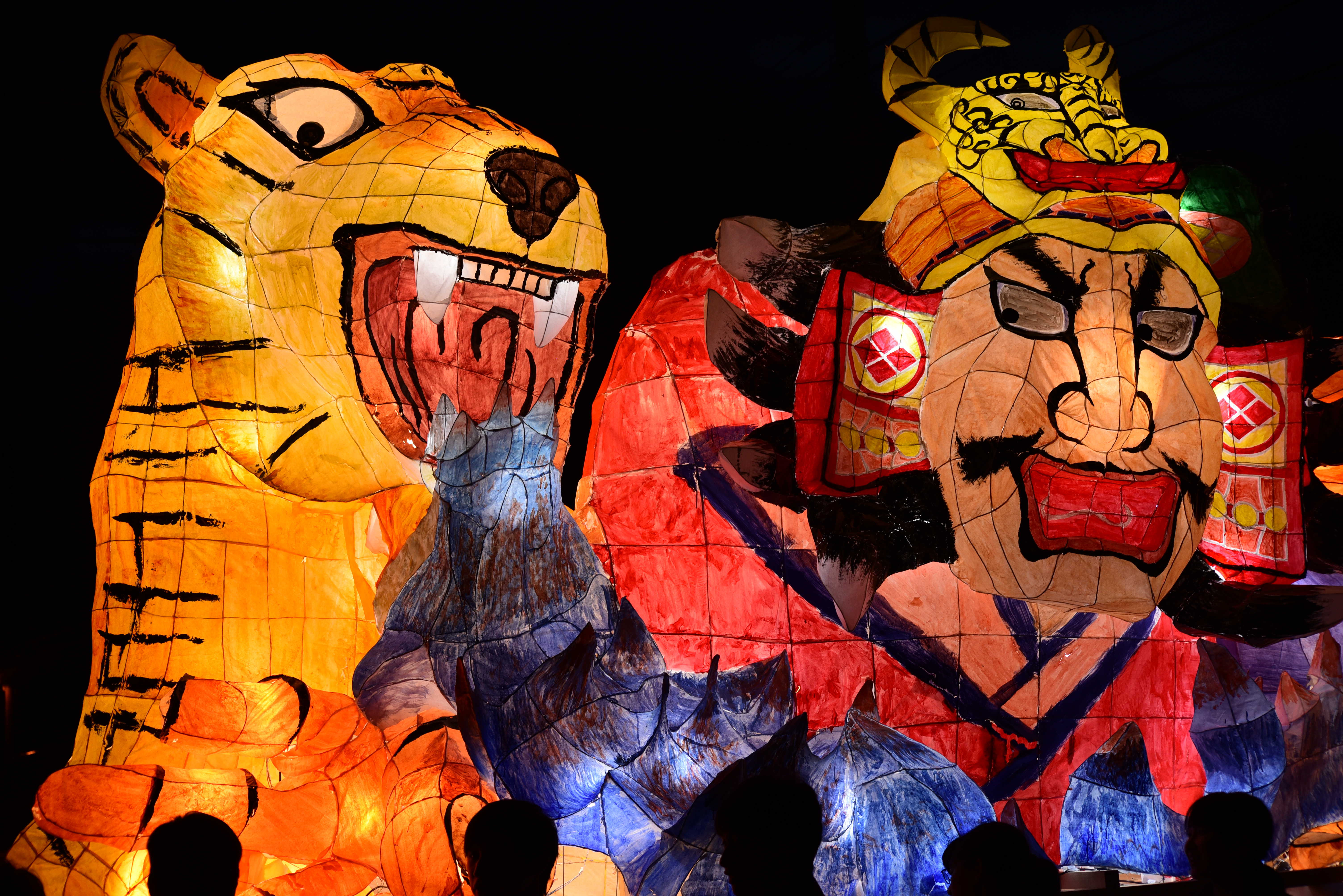 - 虎・人ともに大きくはっきりと作られていて、鮮やかな色が多かったので、何を表している行灯なのかがとても分かりやすかったです。また、針金、電飾、紙貼りなどすべての技術が安定していたため、金賞になったのだと思います。あとは、兜のデザインが凝っていてよかったです。