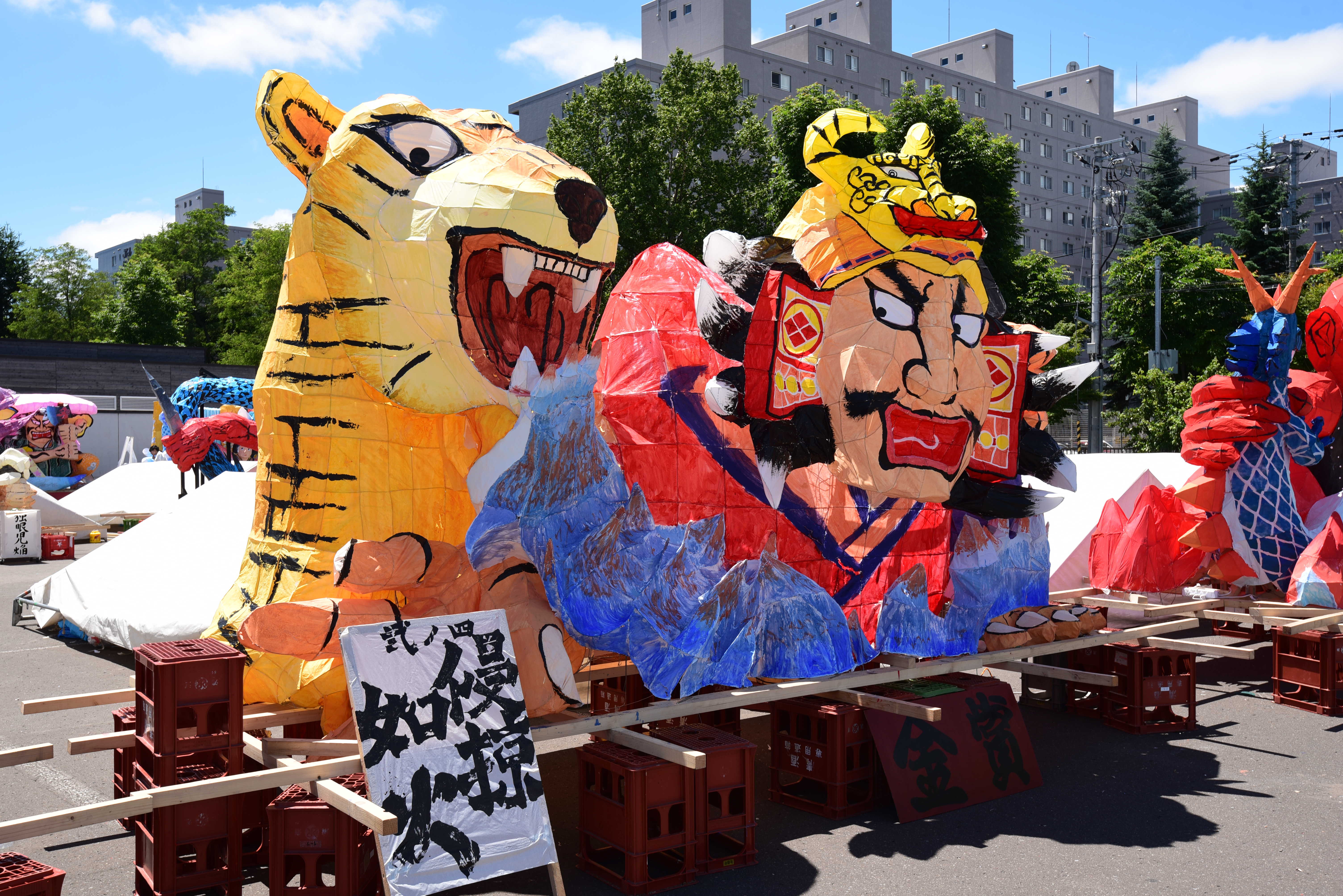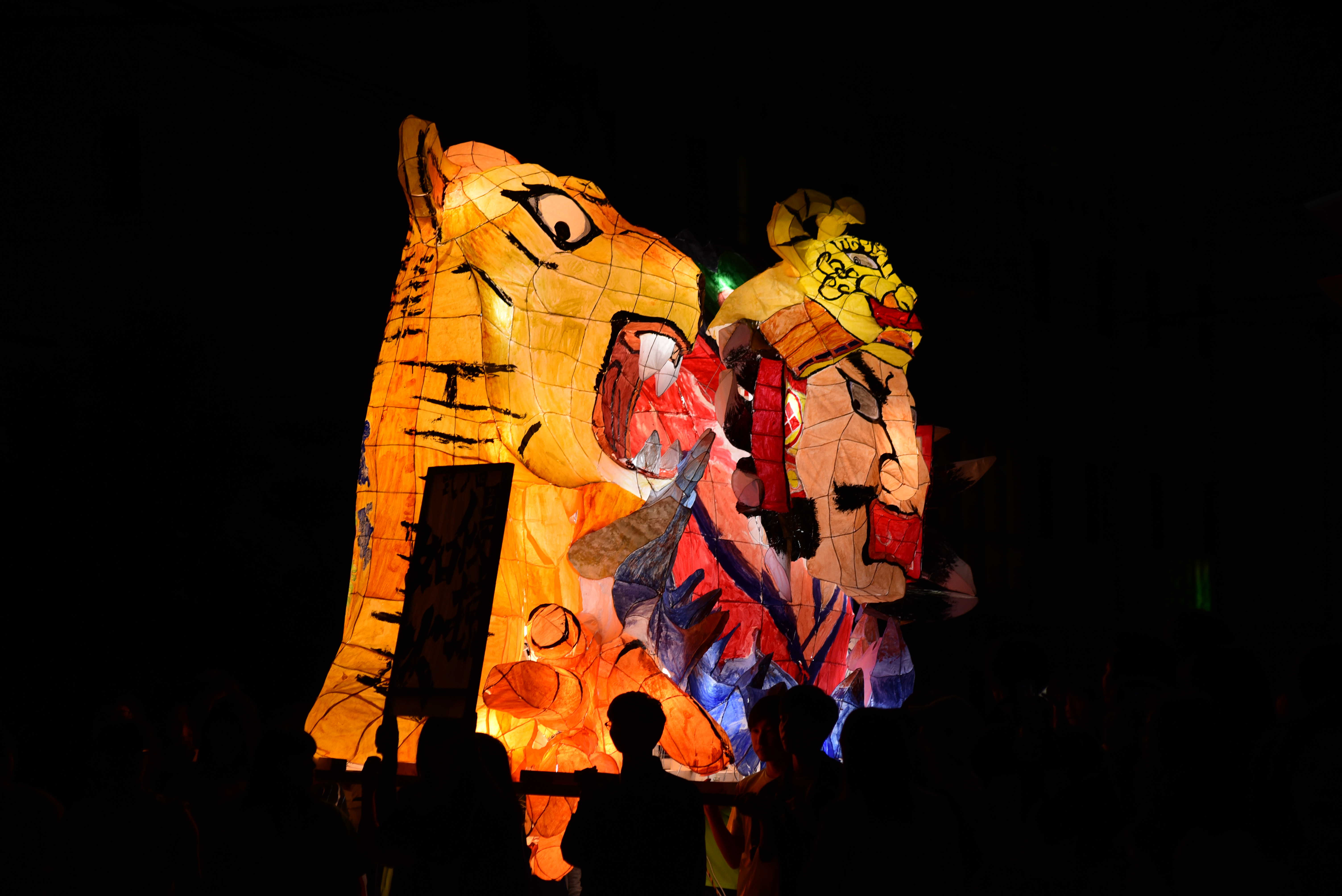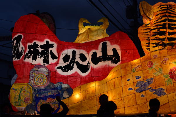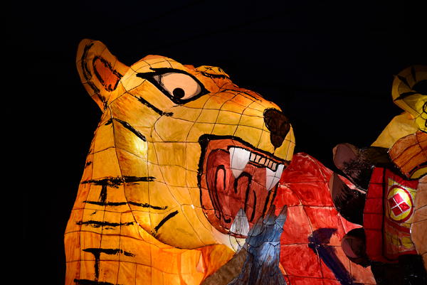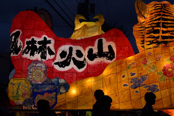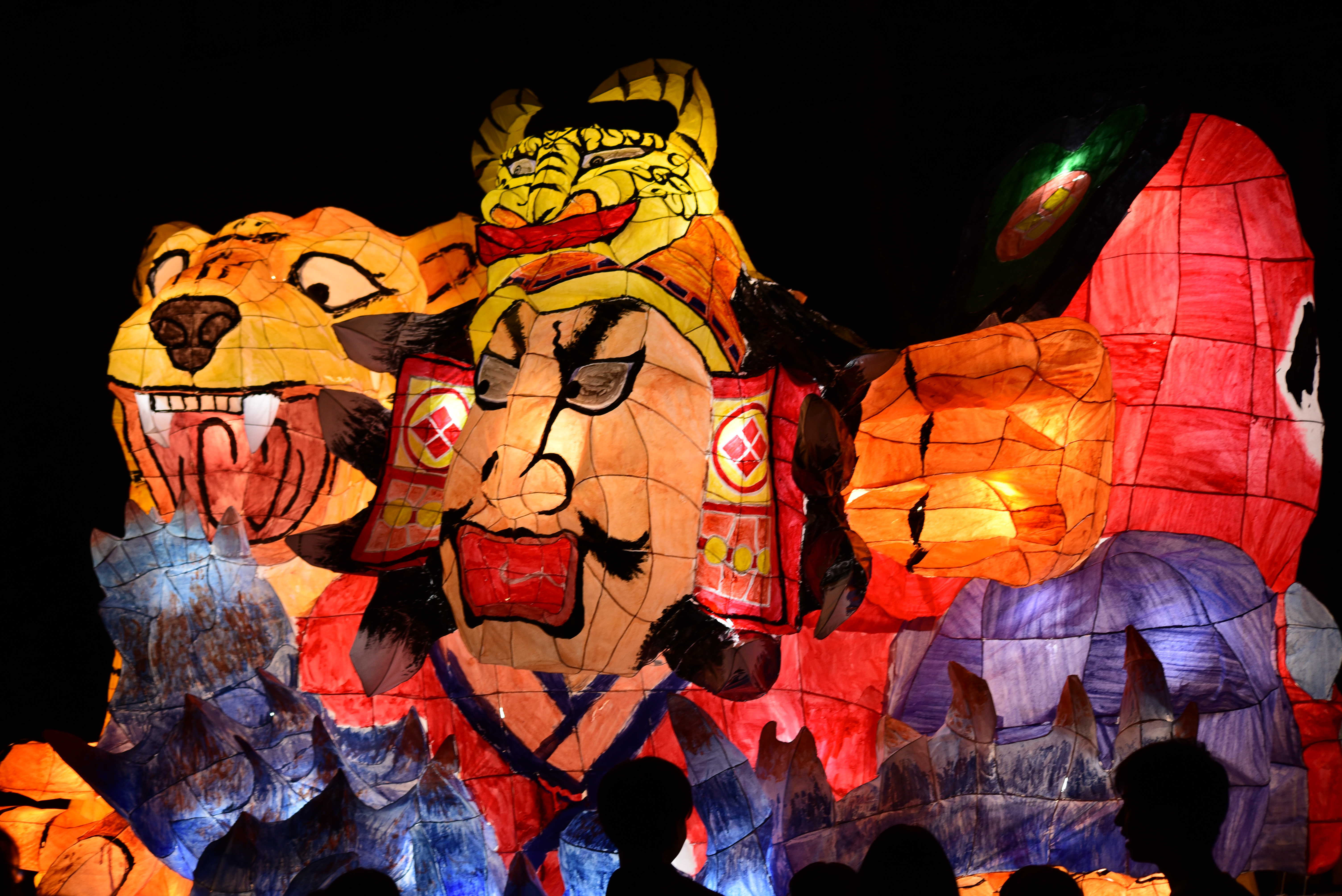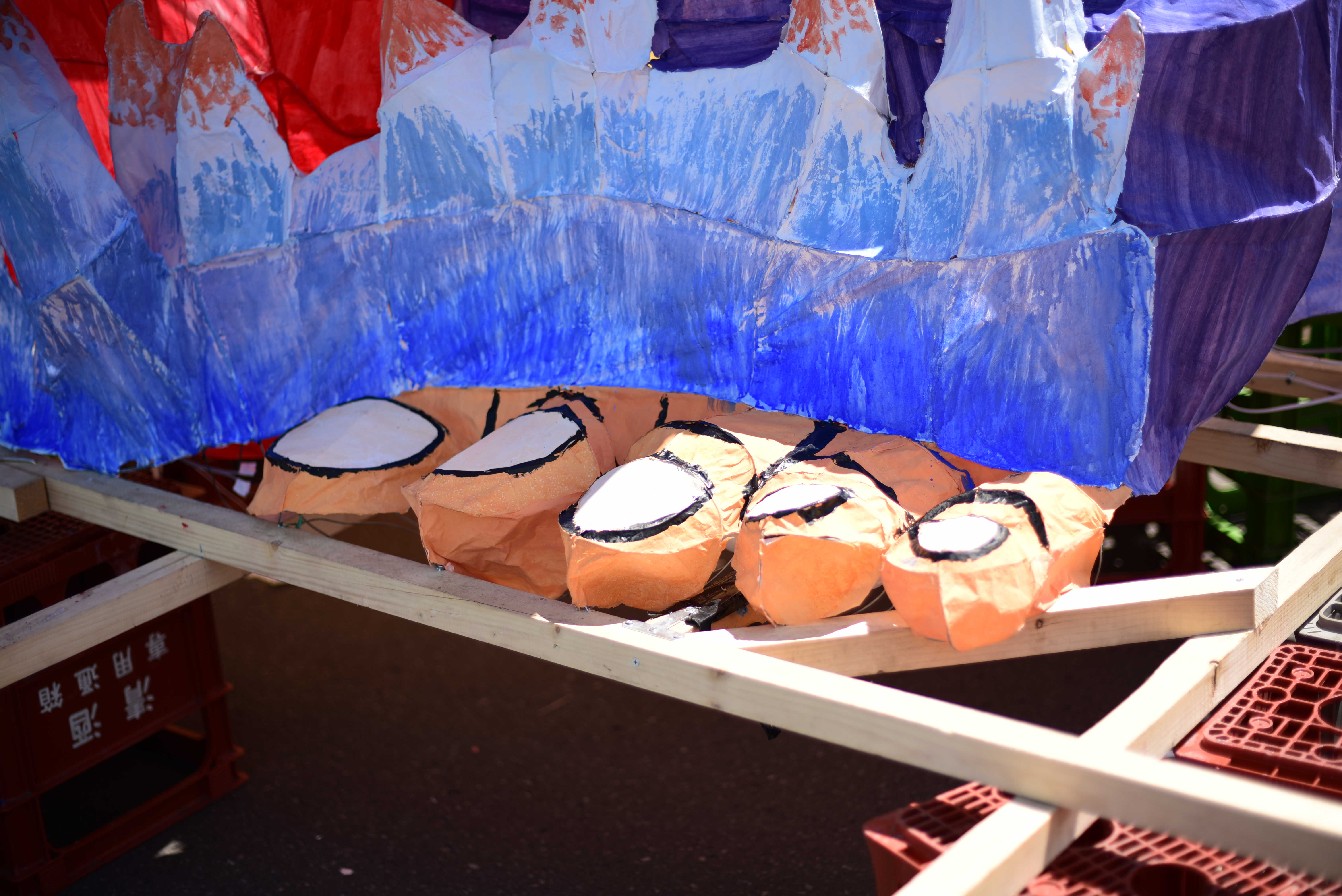 - 虎・人ともに大きくはっきりと作られていて、鮮やかな色が多かったので、何を表している行灯なのかがとても分かりやすかったです。また、針金、電飾、紙貼りなどすべての技術が安定していたため、金賞になったのだと思います。あとは、兜のデザインが凝っていてよかったです。