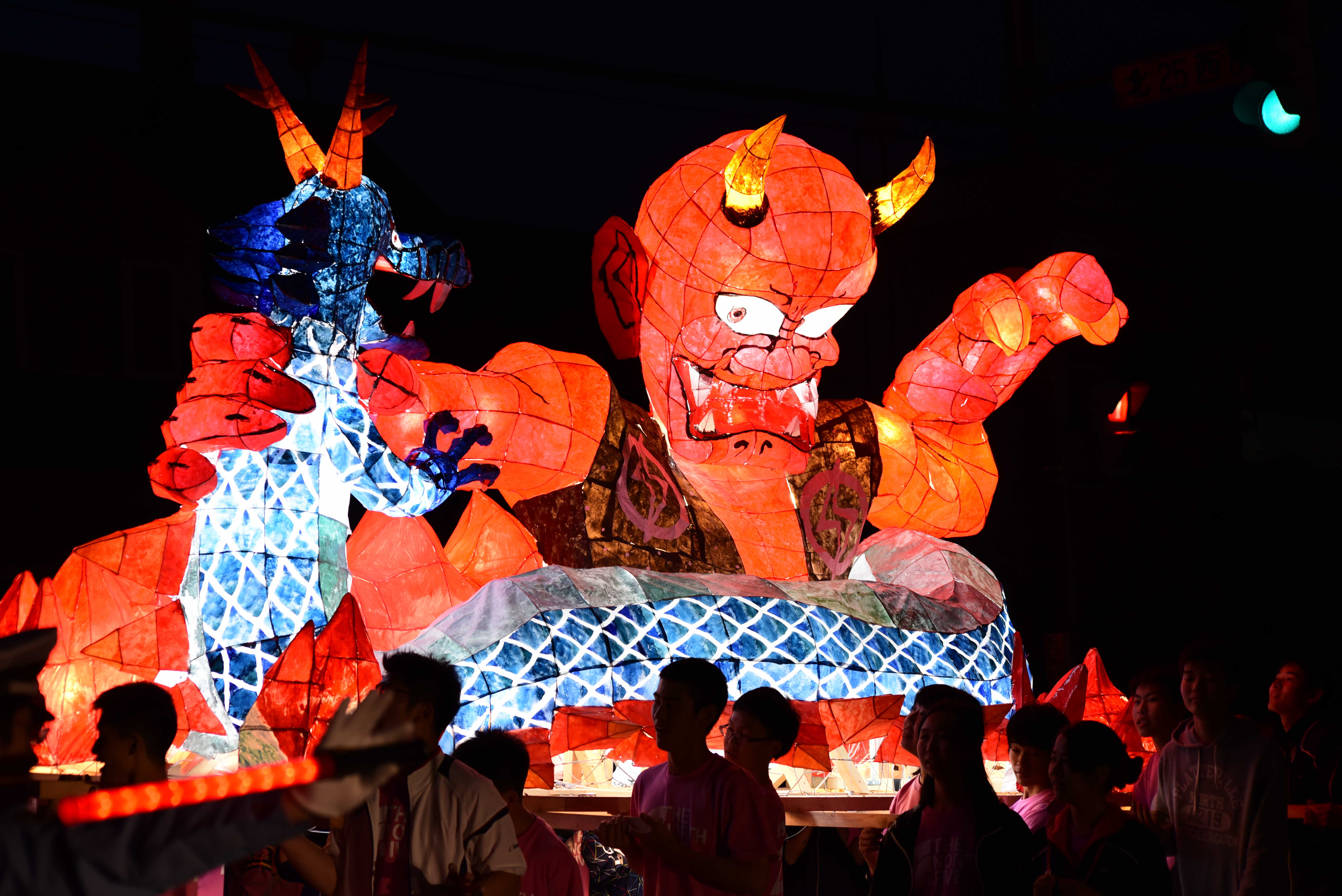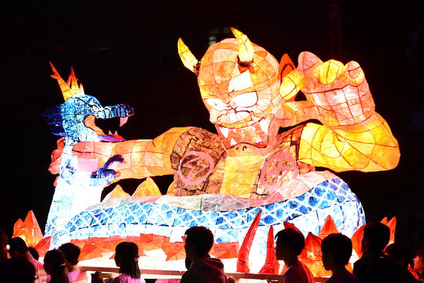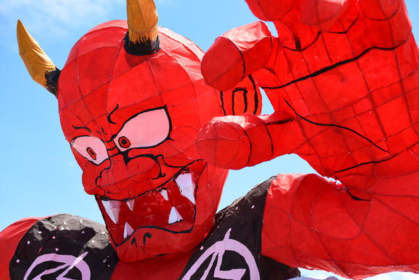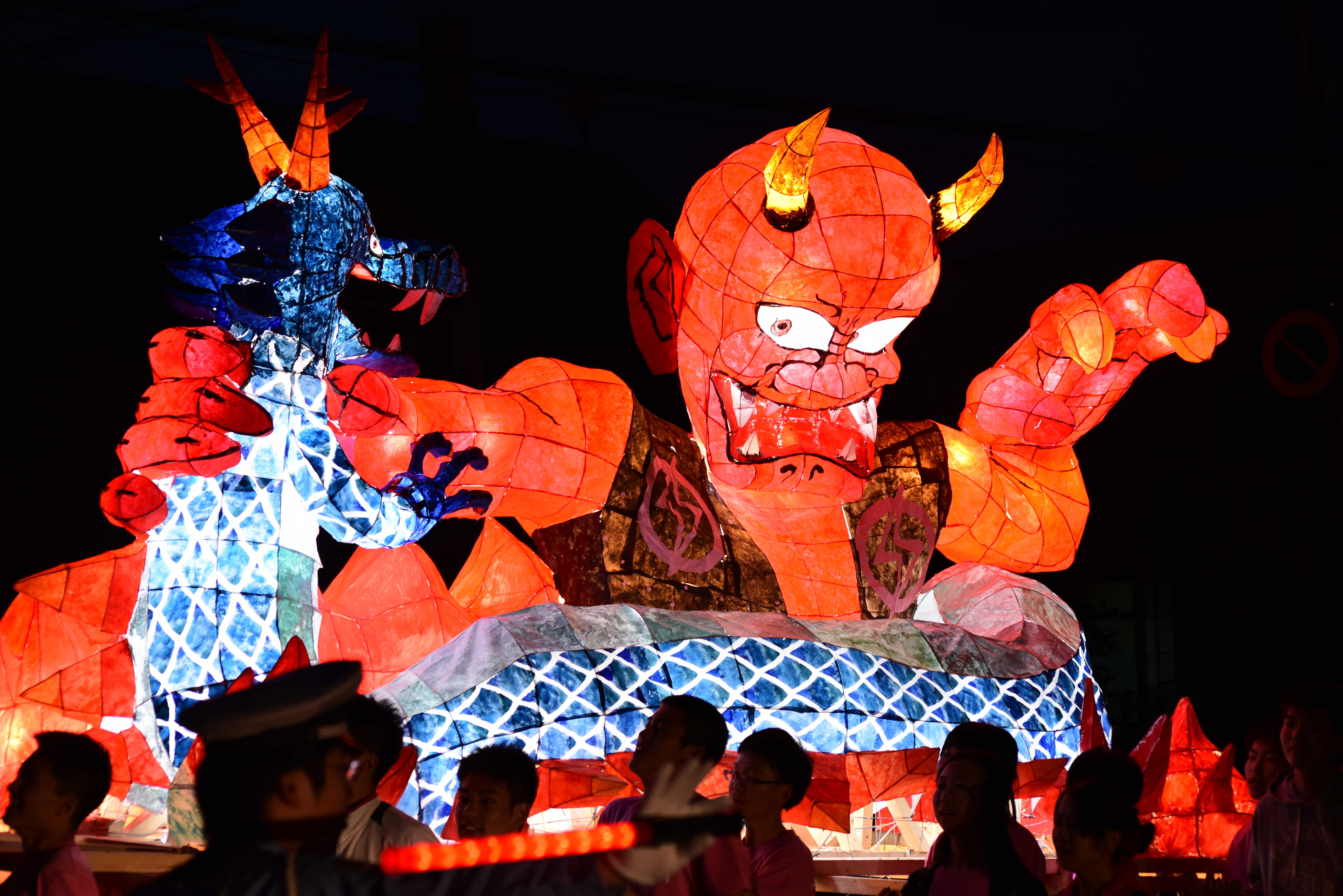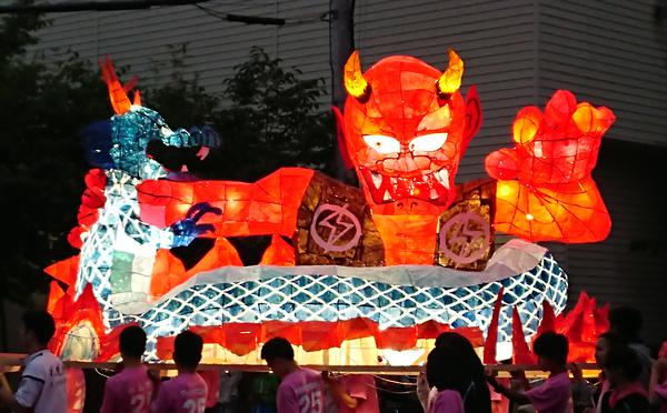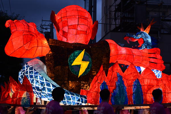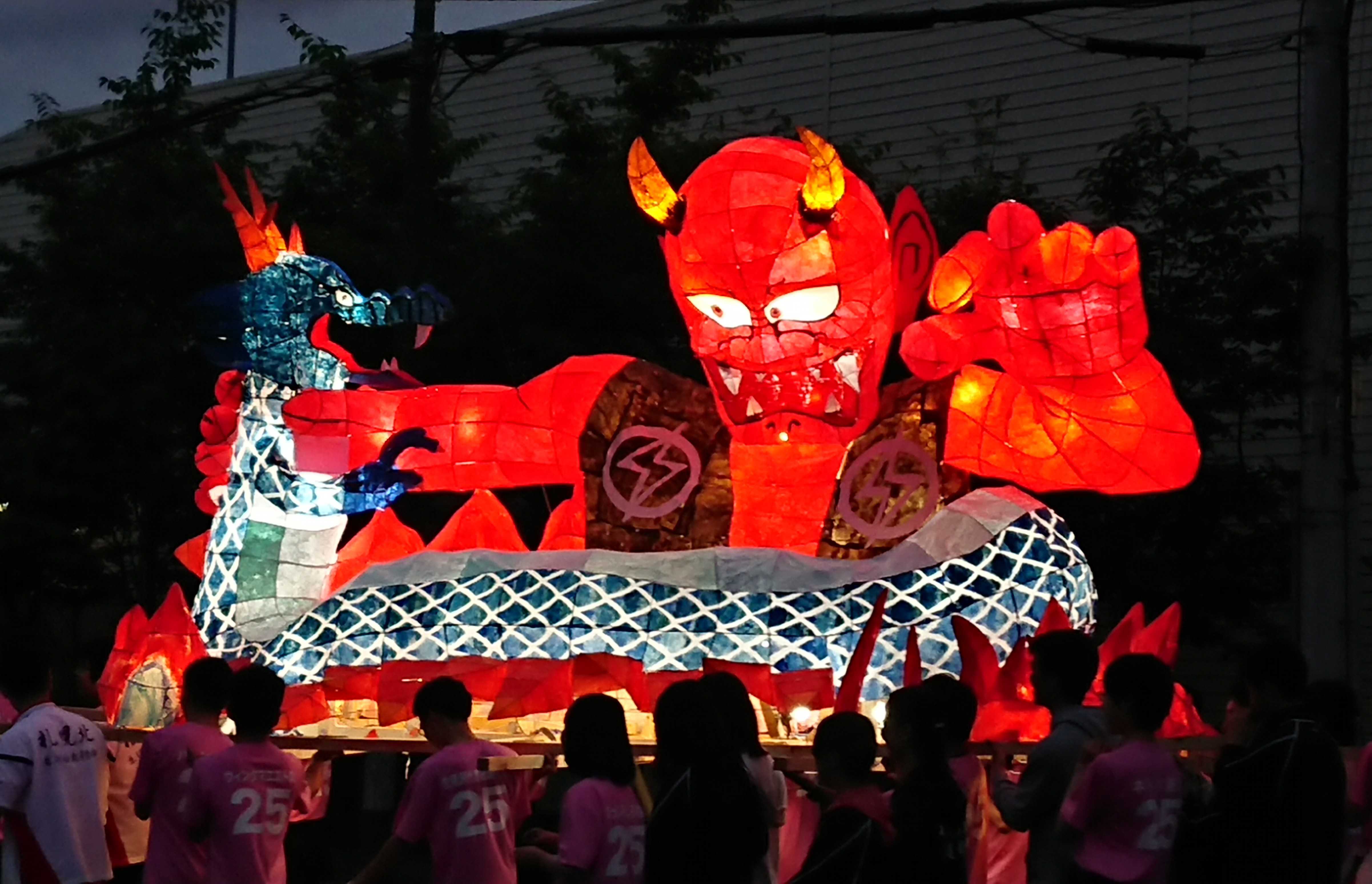 ほぼ赤と青しか使われておらず、その2色で勝負している力強い行灯だと感じました。龍の背中のトゲや炎も赤で、鬼の色と被ってしまっていたので、そこは別の色にしたほうがよかったのではないでしょうか。