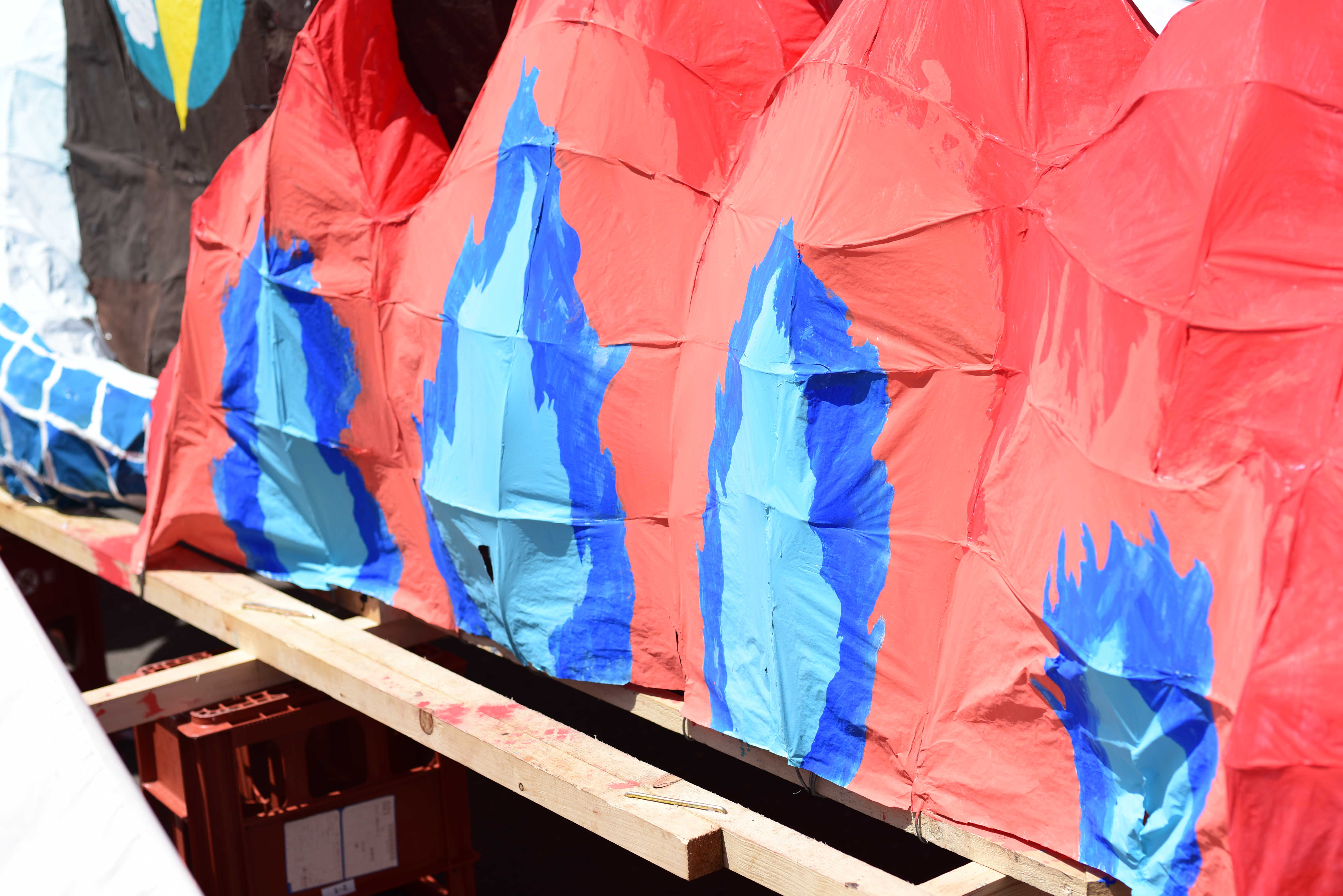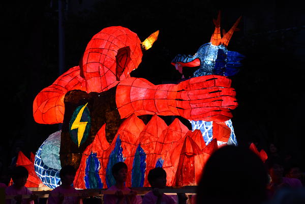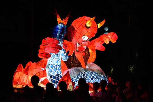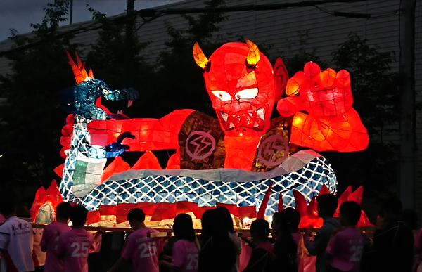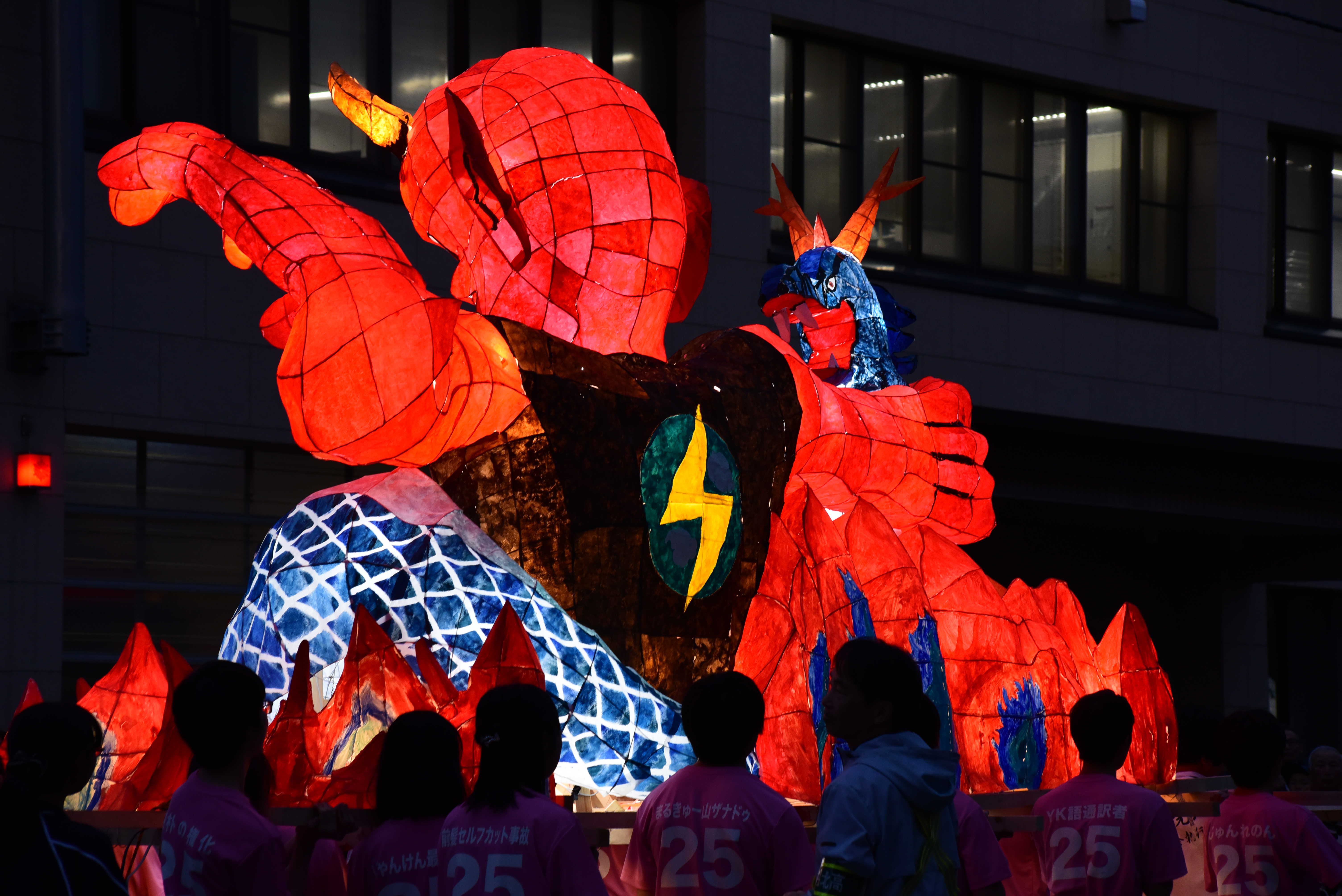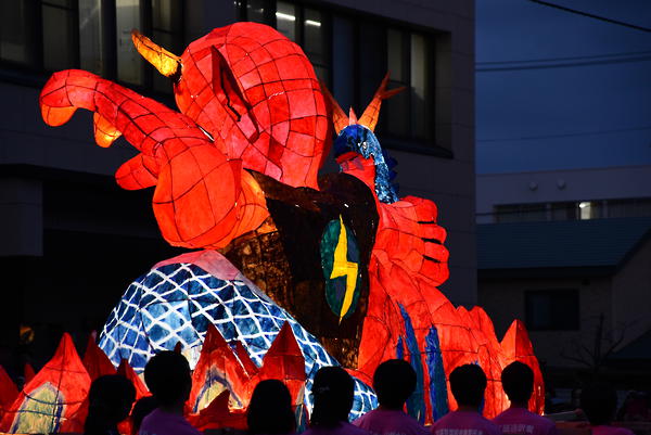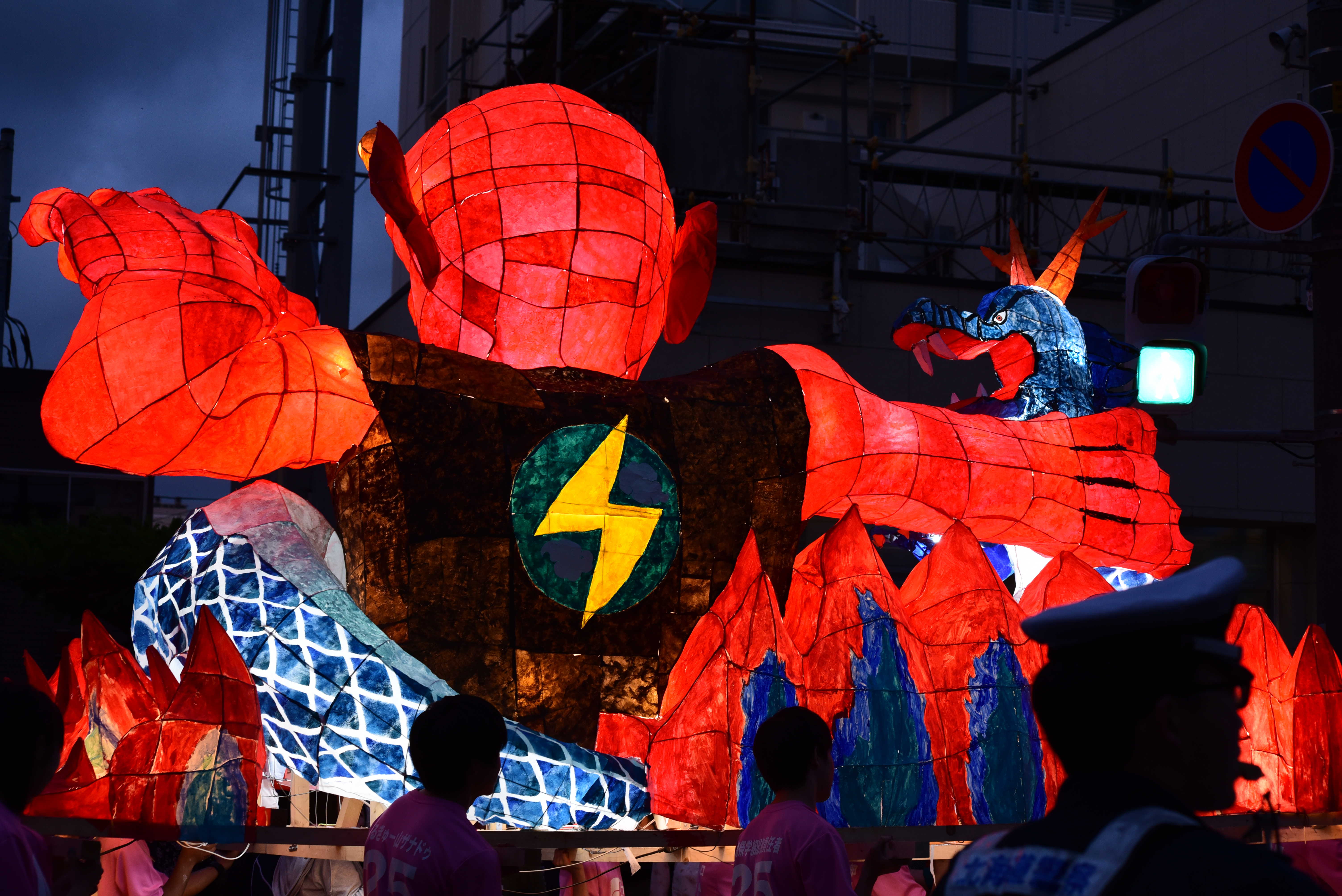 ほぼ赤と青しか使われておらず、その2色で勝負している力強い行灯だと感じました。龍の背中のトゲや炎も赤で、鬼の色と被ってしまっていたので、そこは別の色にしたほうがよかったのではないでしょうか。