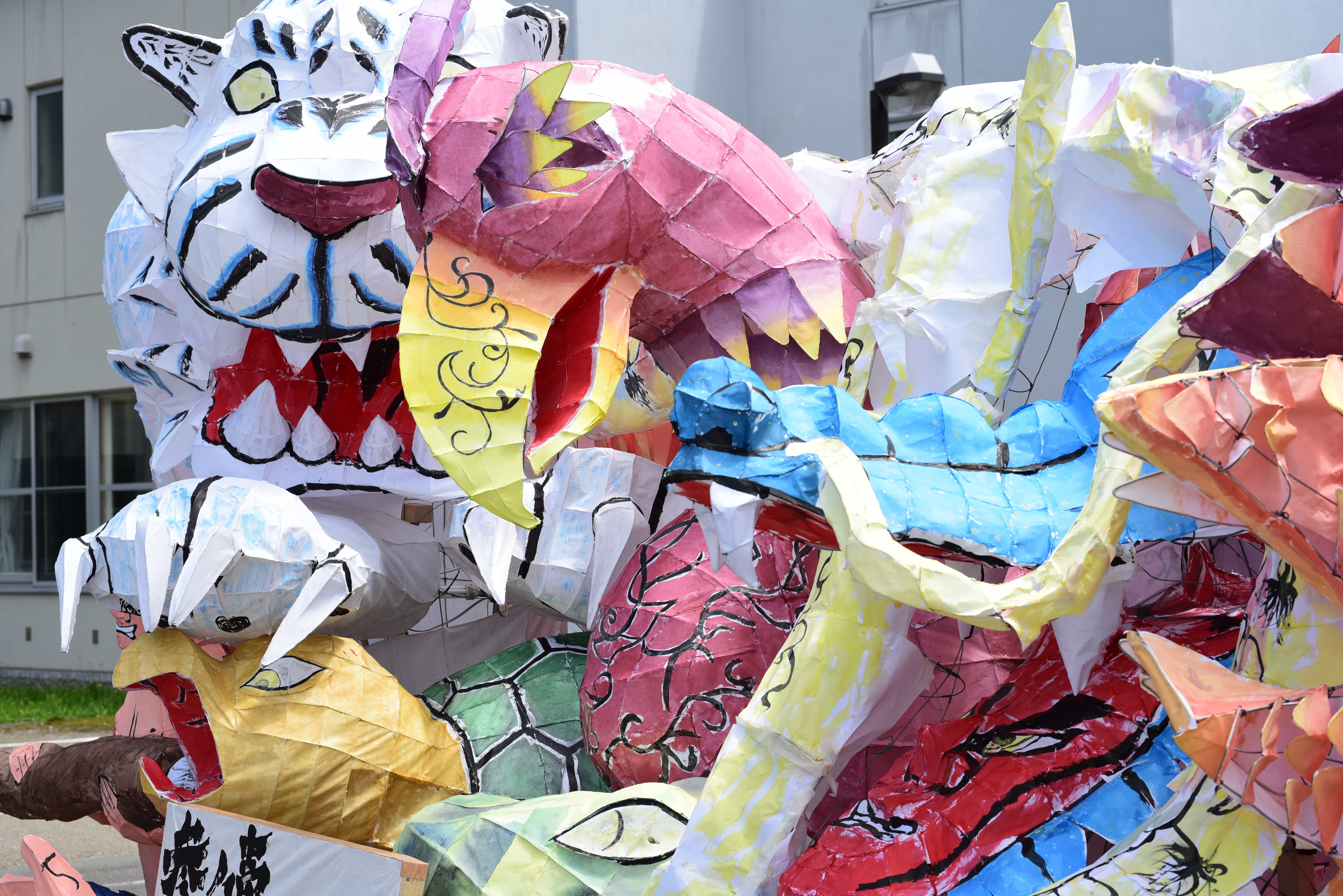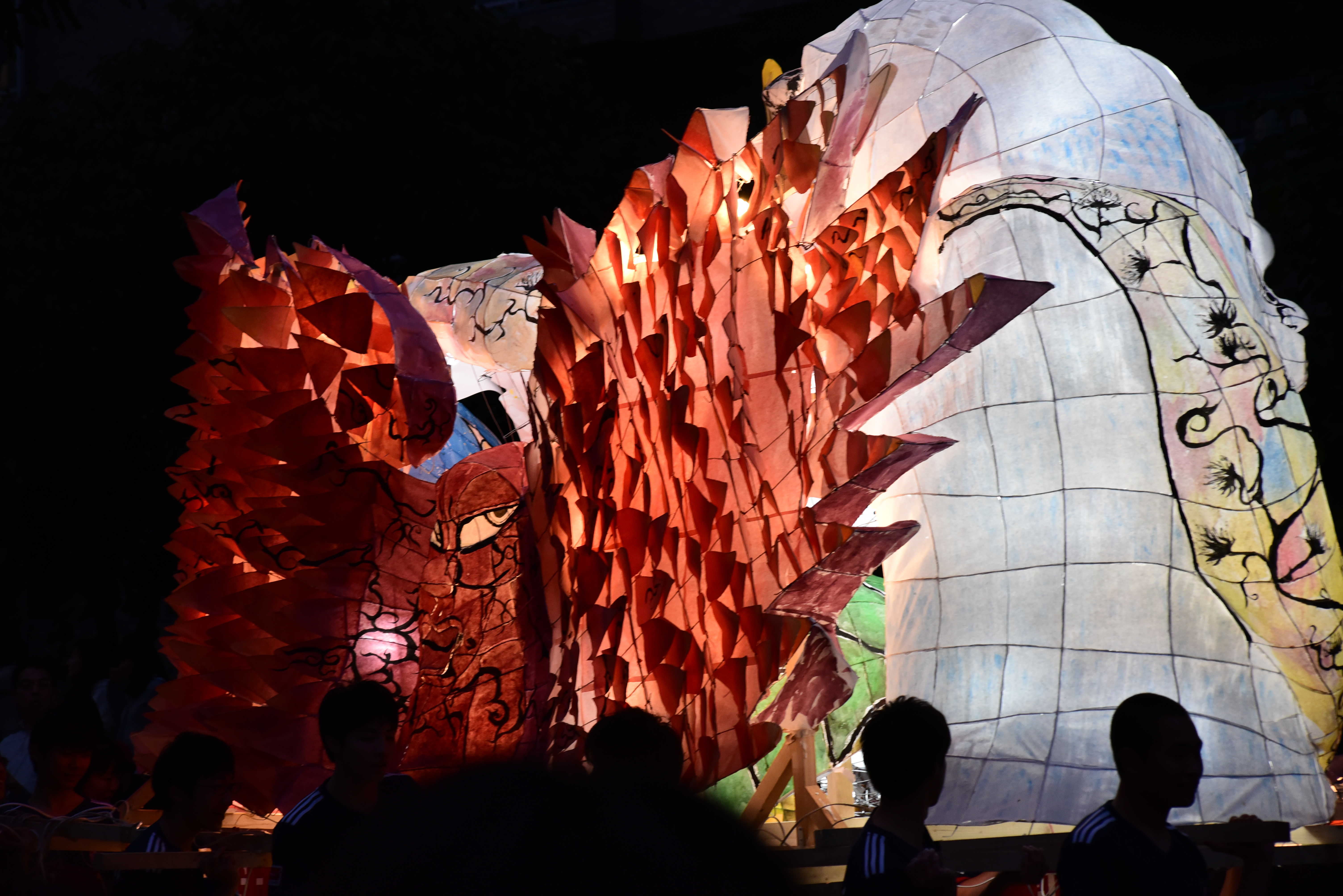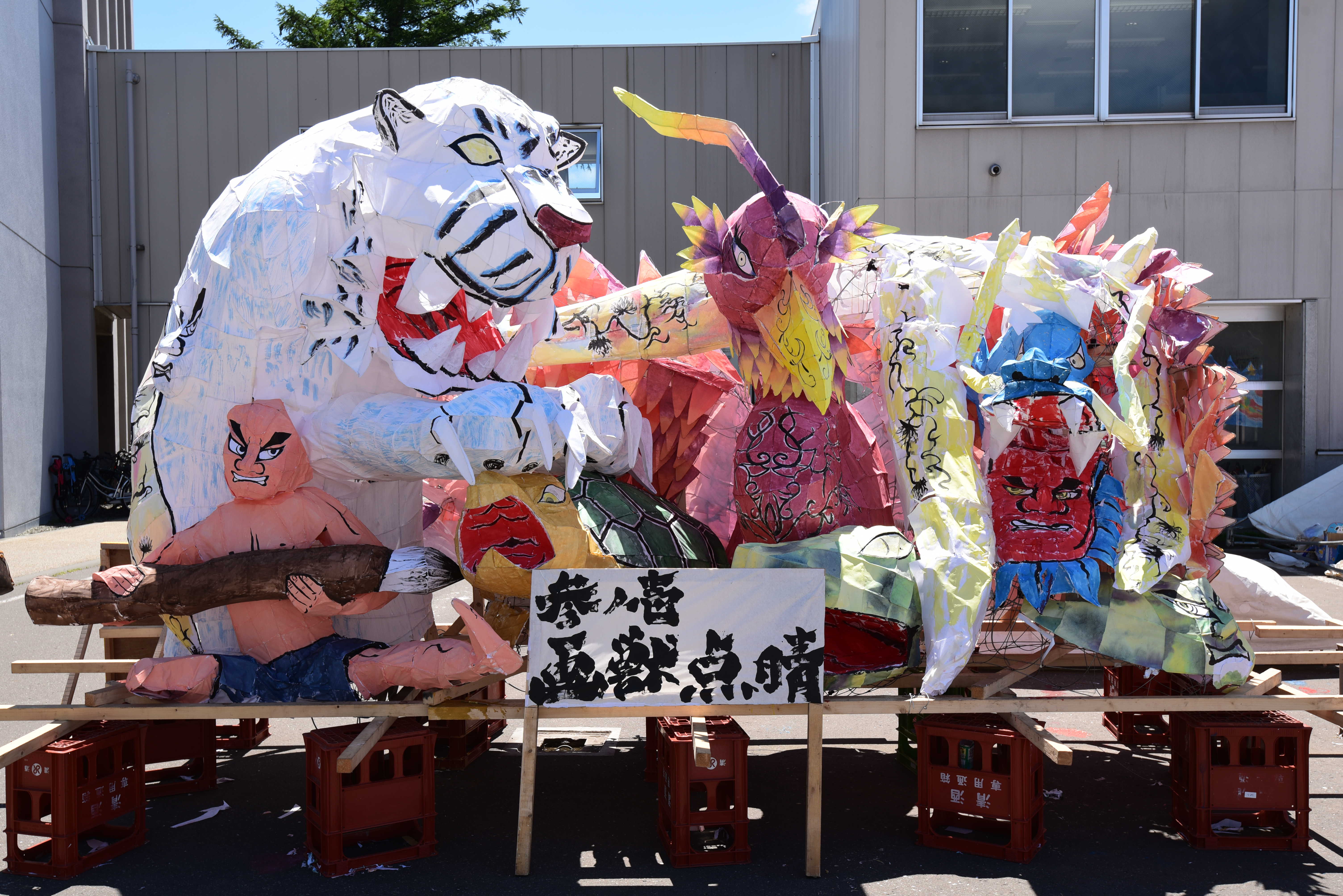 - 四神がそれぞれ異なる表情で作られていて、色々な要素が詰め込まれた密度の高い行灯でした。最近はあまり四神すべてを作るクラスがなかった気がするので、王道をいく感じでいいですね。
