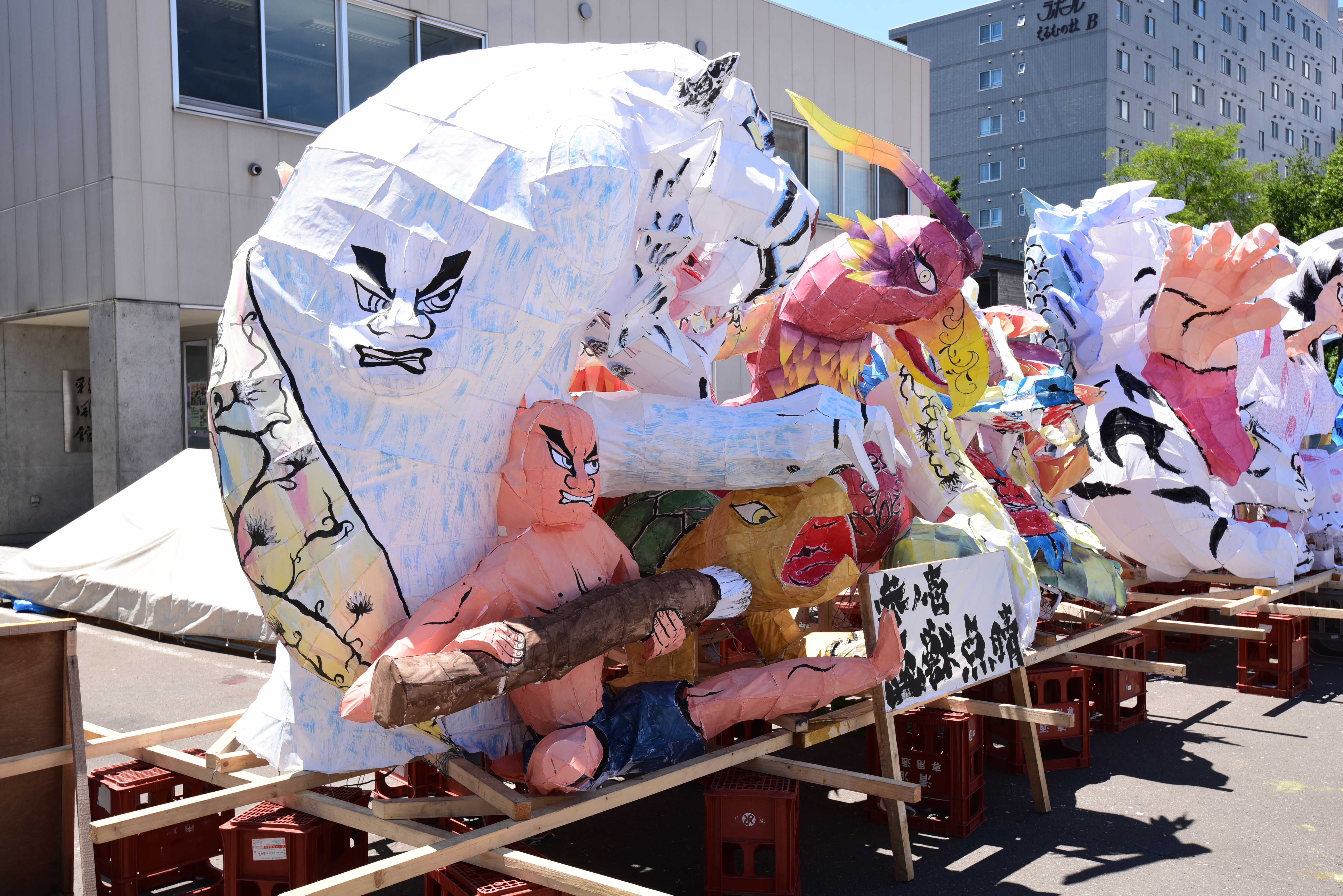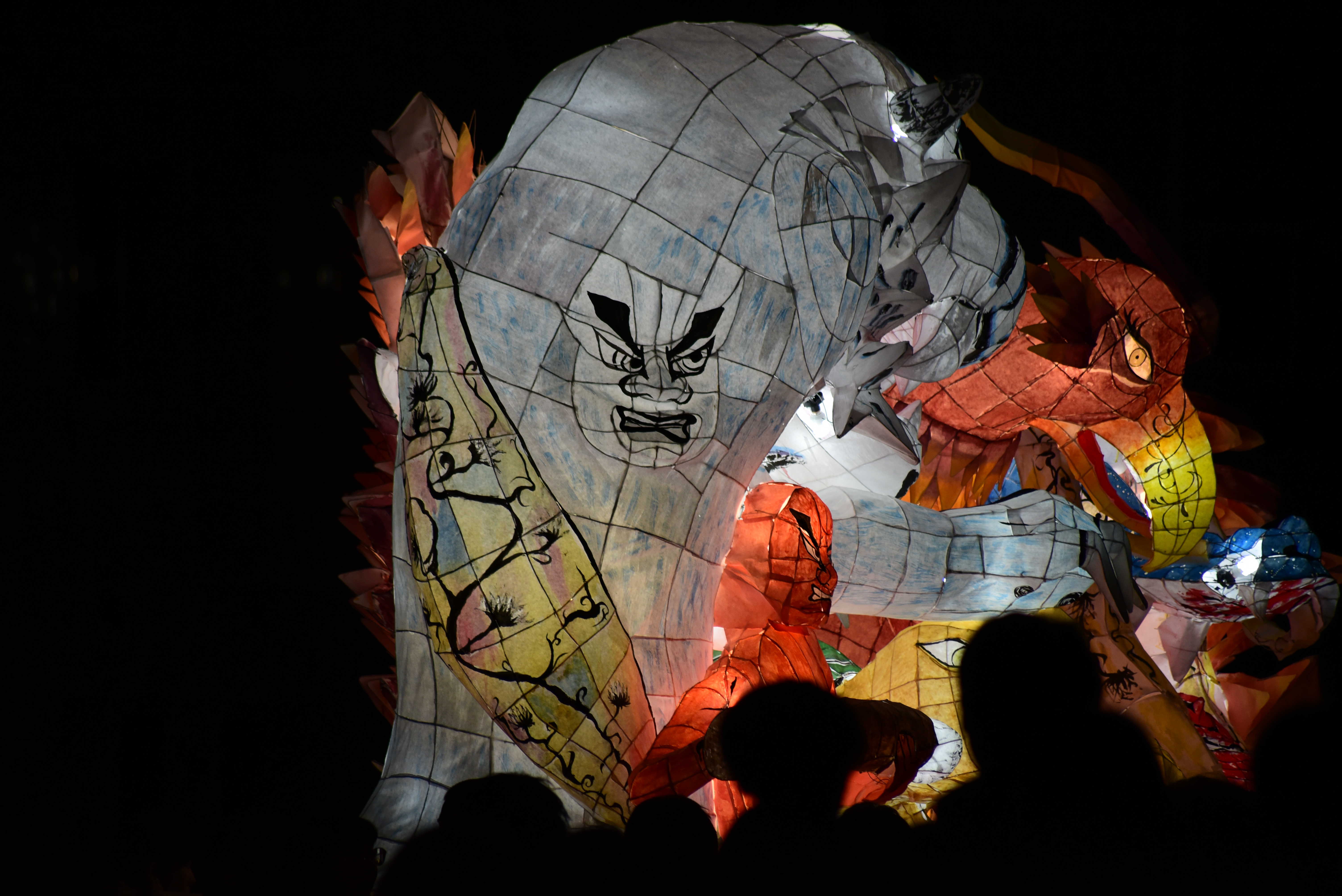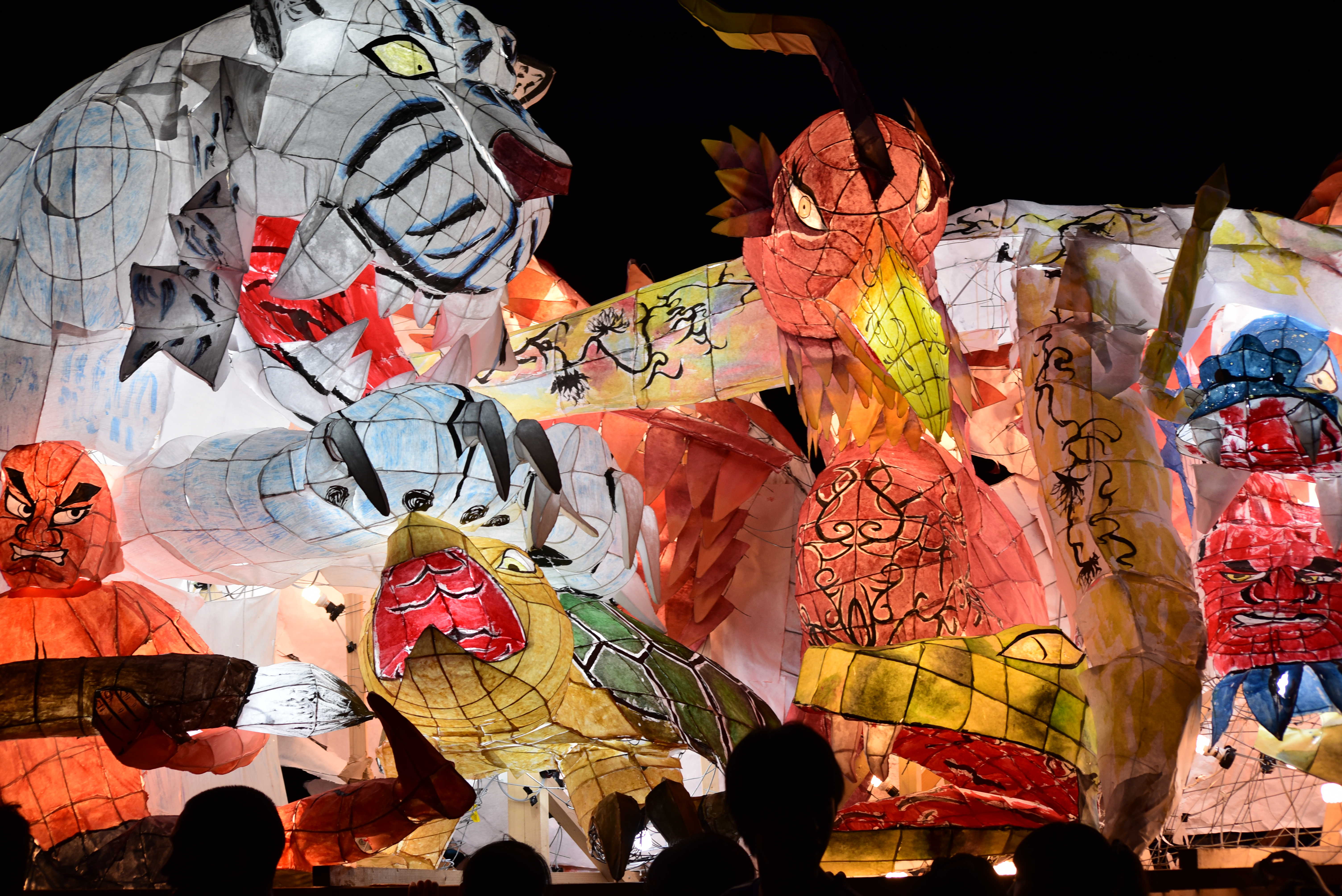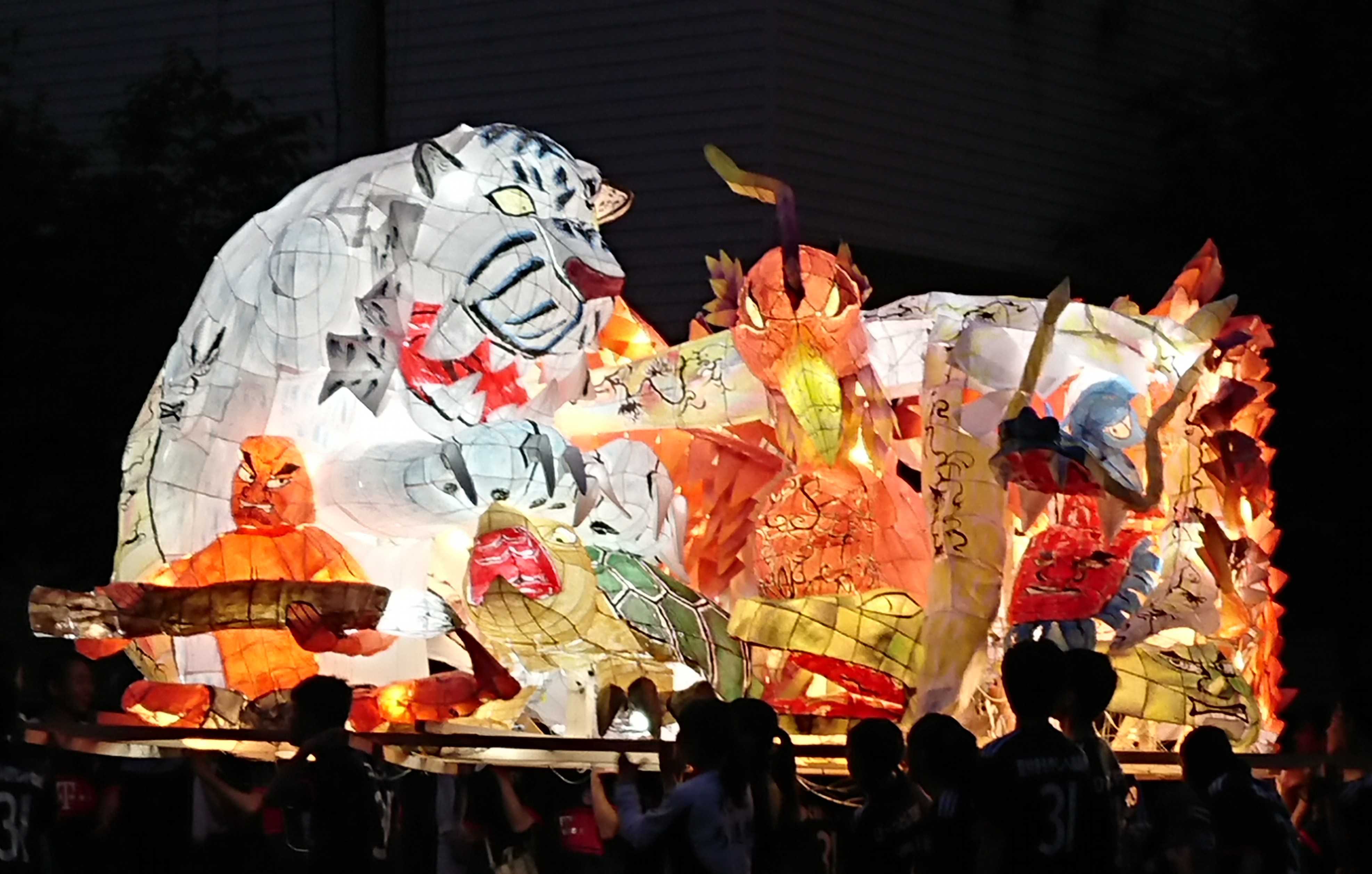 - 四神がそれぞれ異なる表情で作られていて、色々な要素が詰め込まれた密度の高い行灯でした。最近はあまり四神すべてを作るクラスがなかった気がするので、王道をいく感じでいいですね。