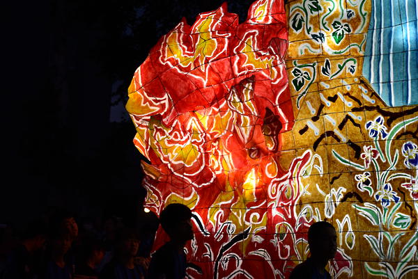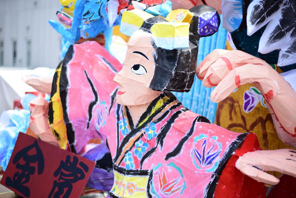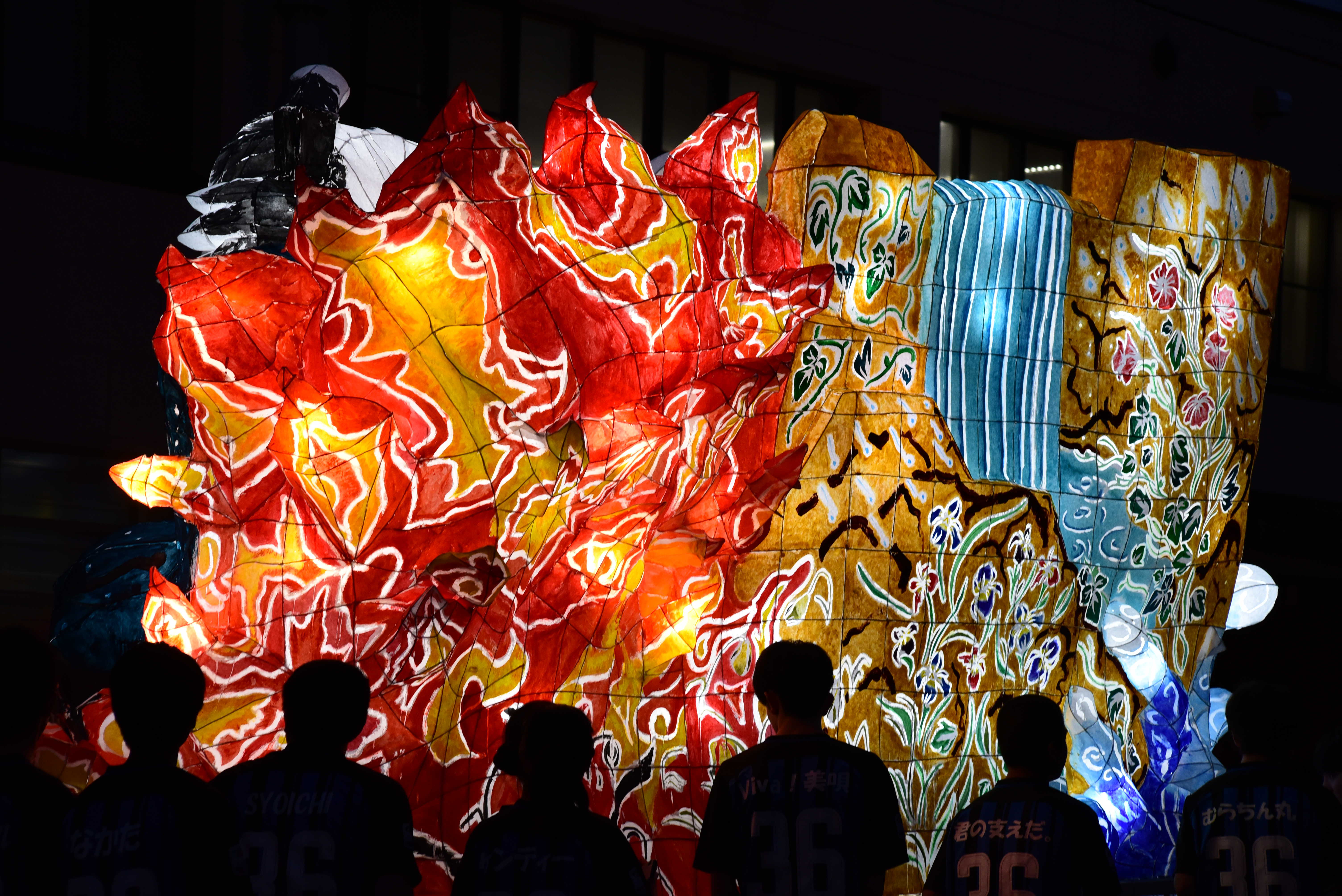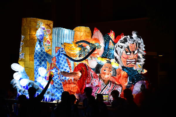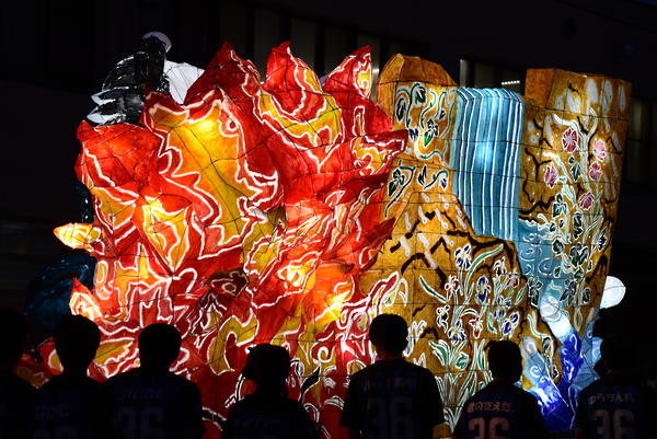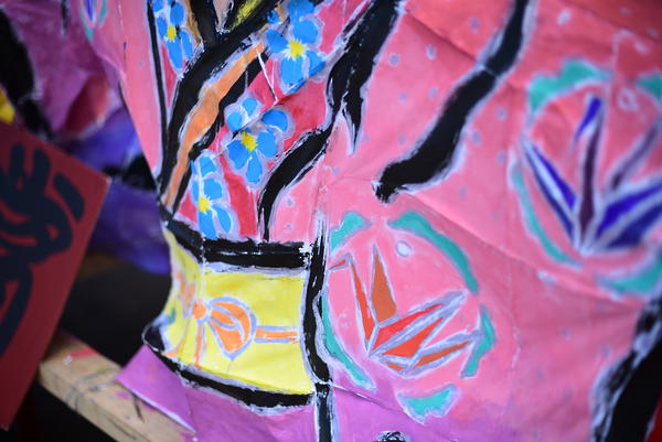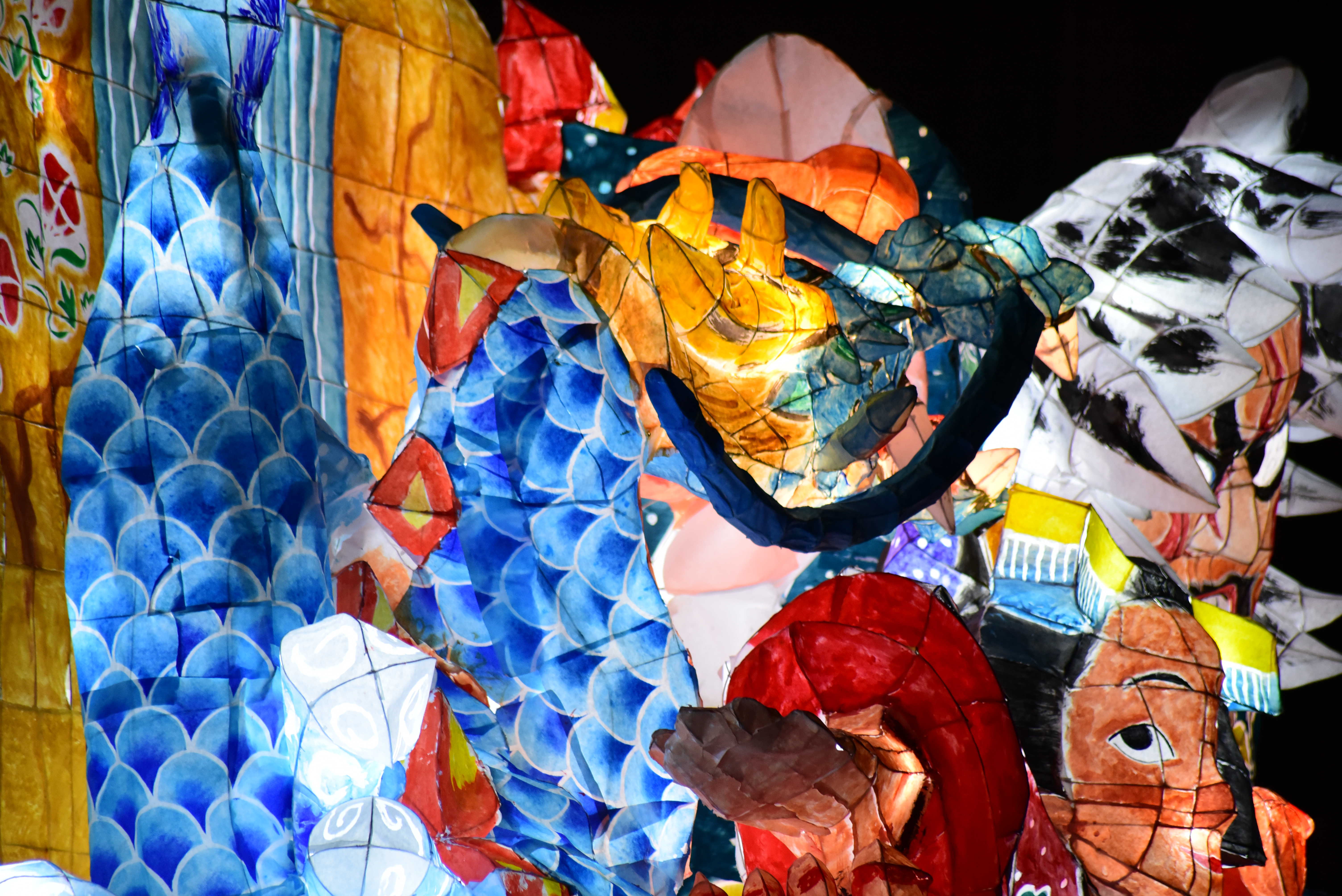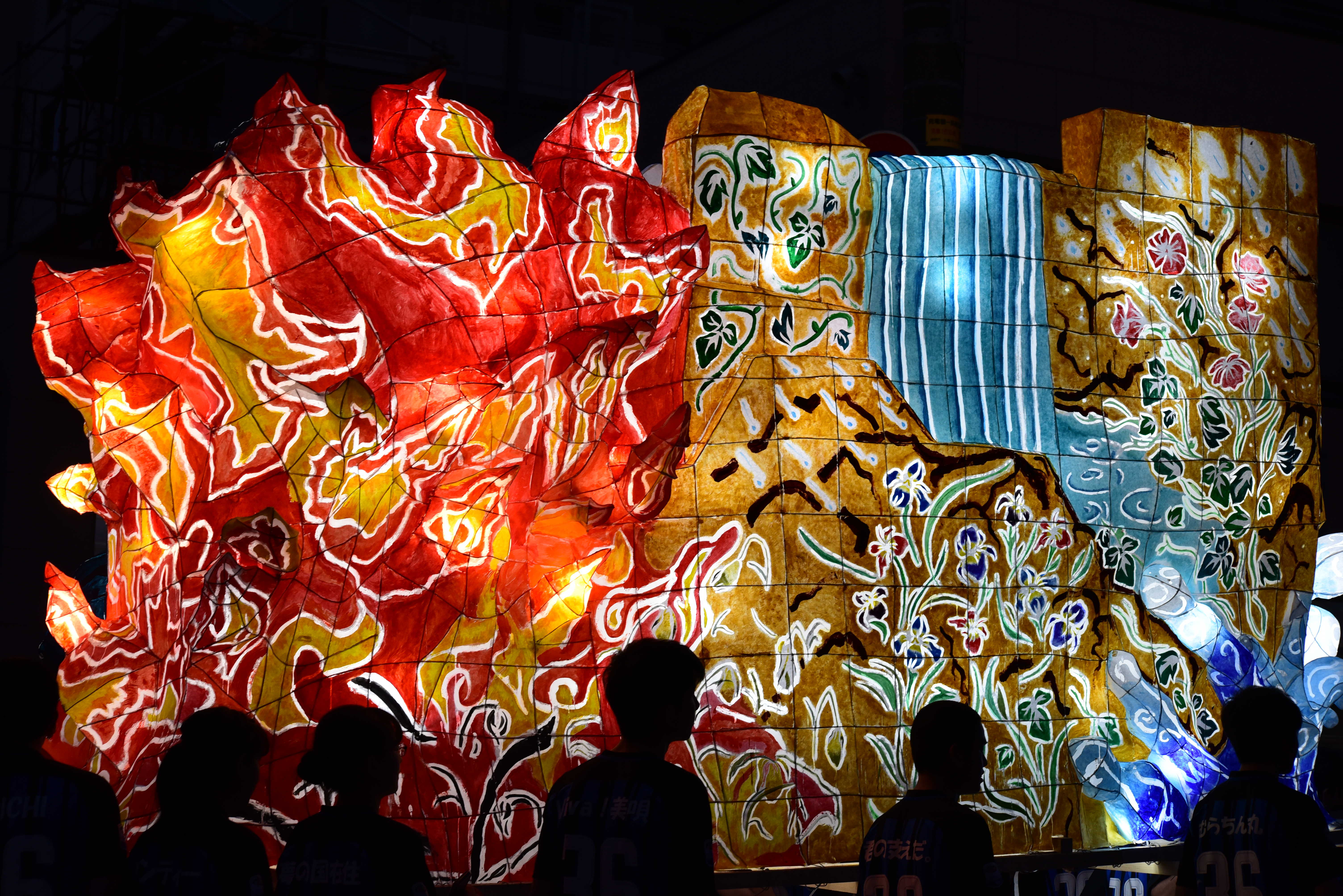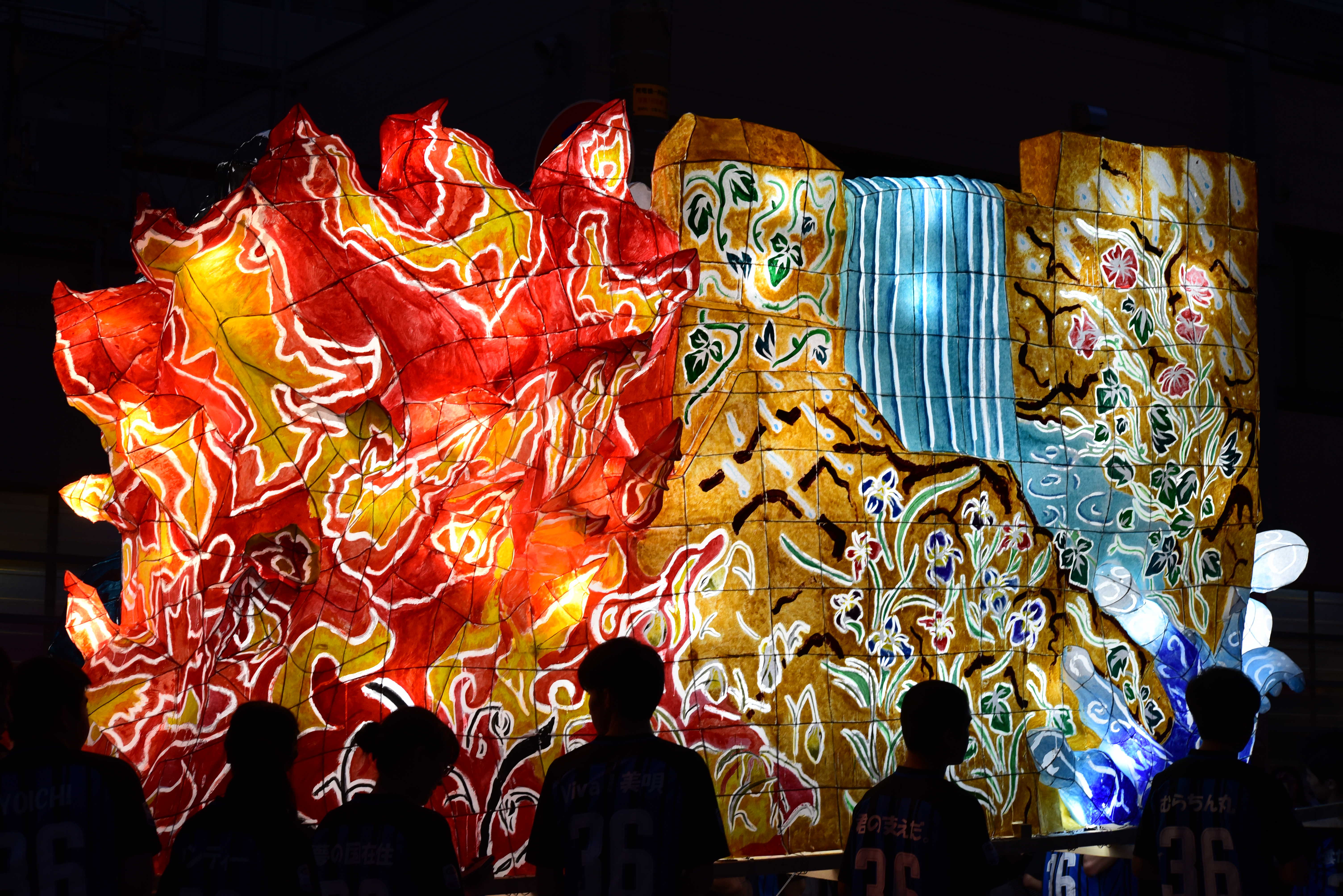 - 全体的にたくさんの色が使われているため、鮮やかで、力強さの中にも綺麗さがある行灯という印象を受けました。