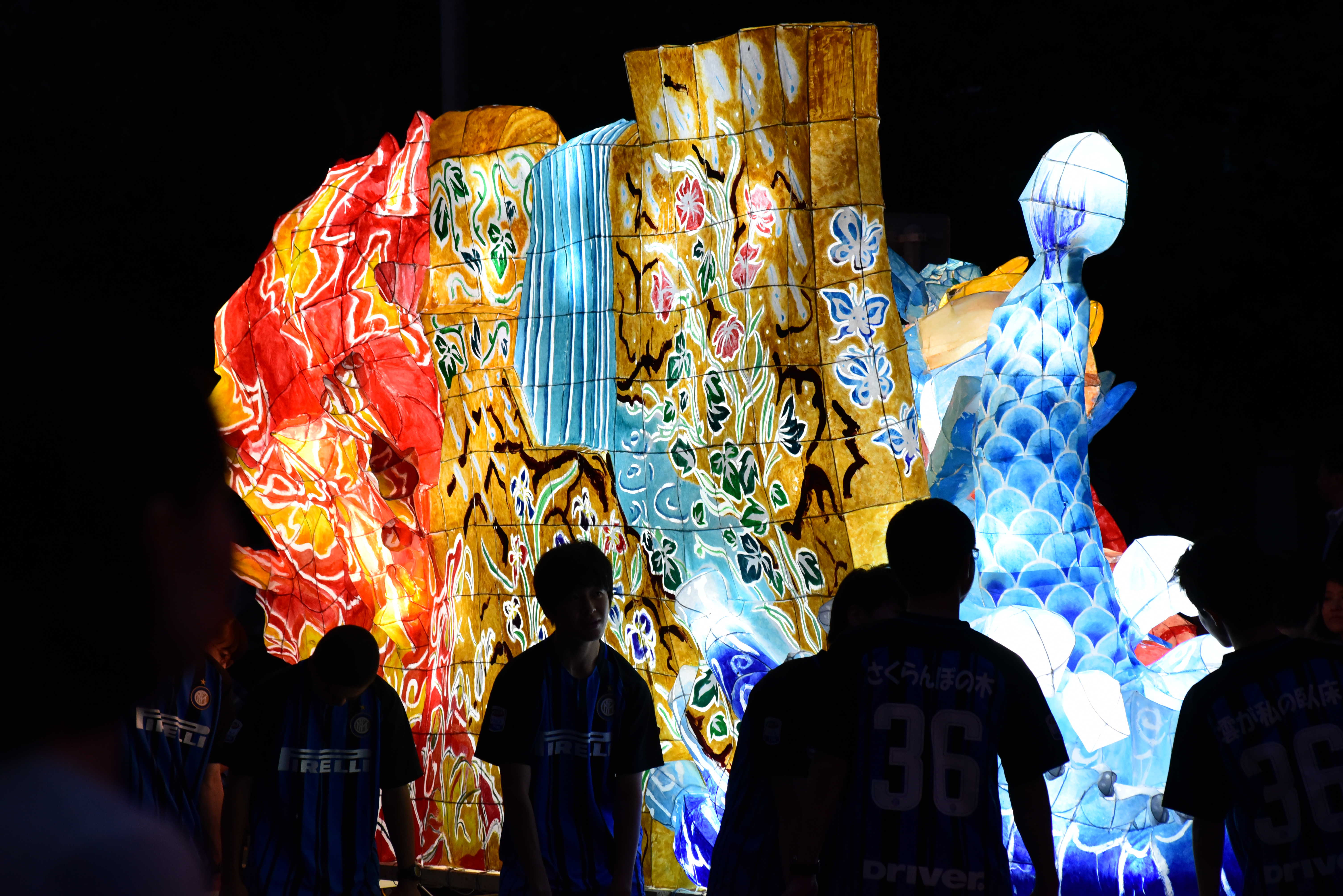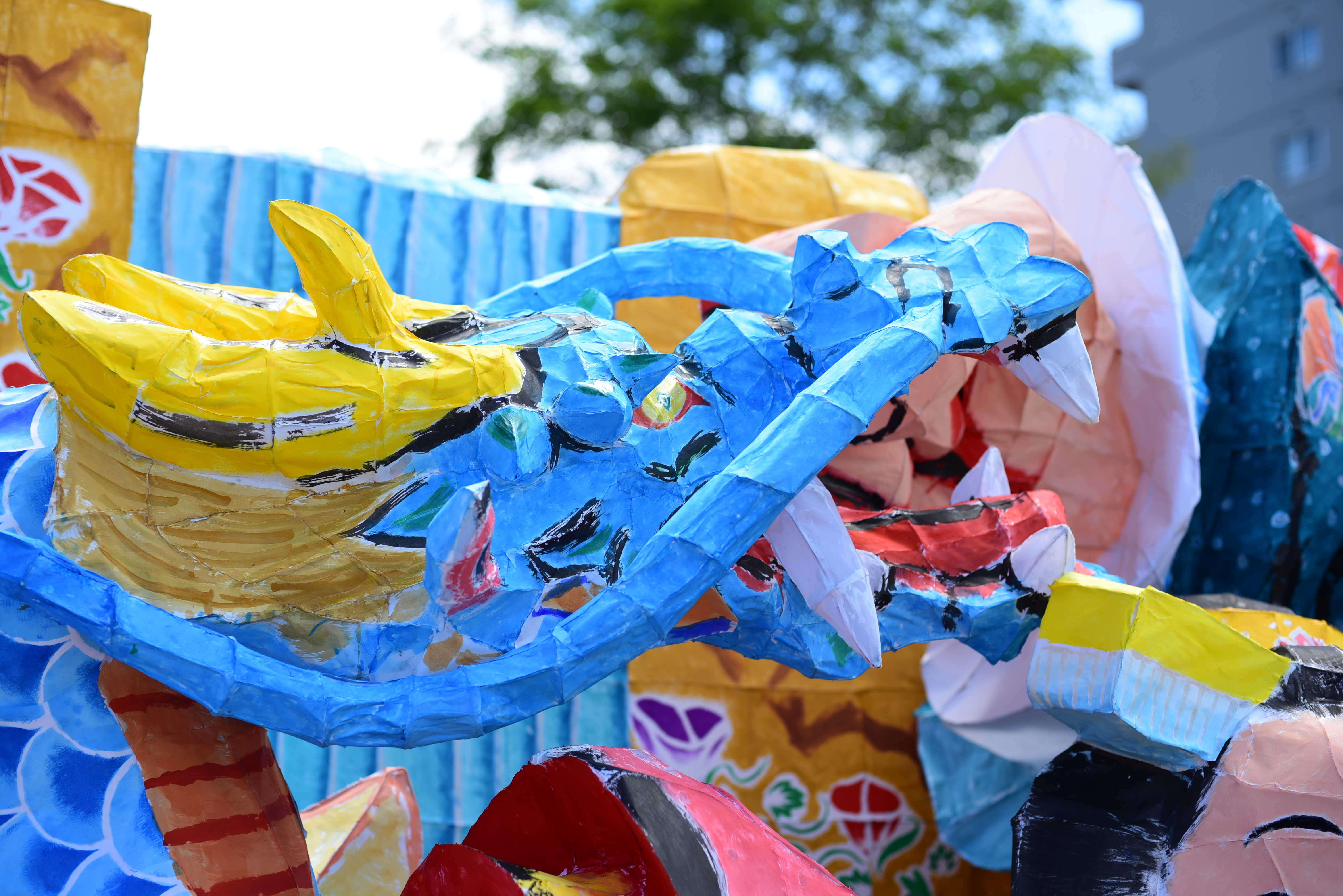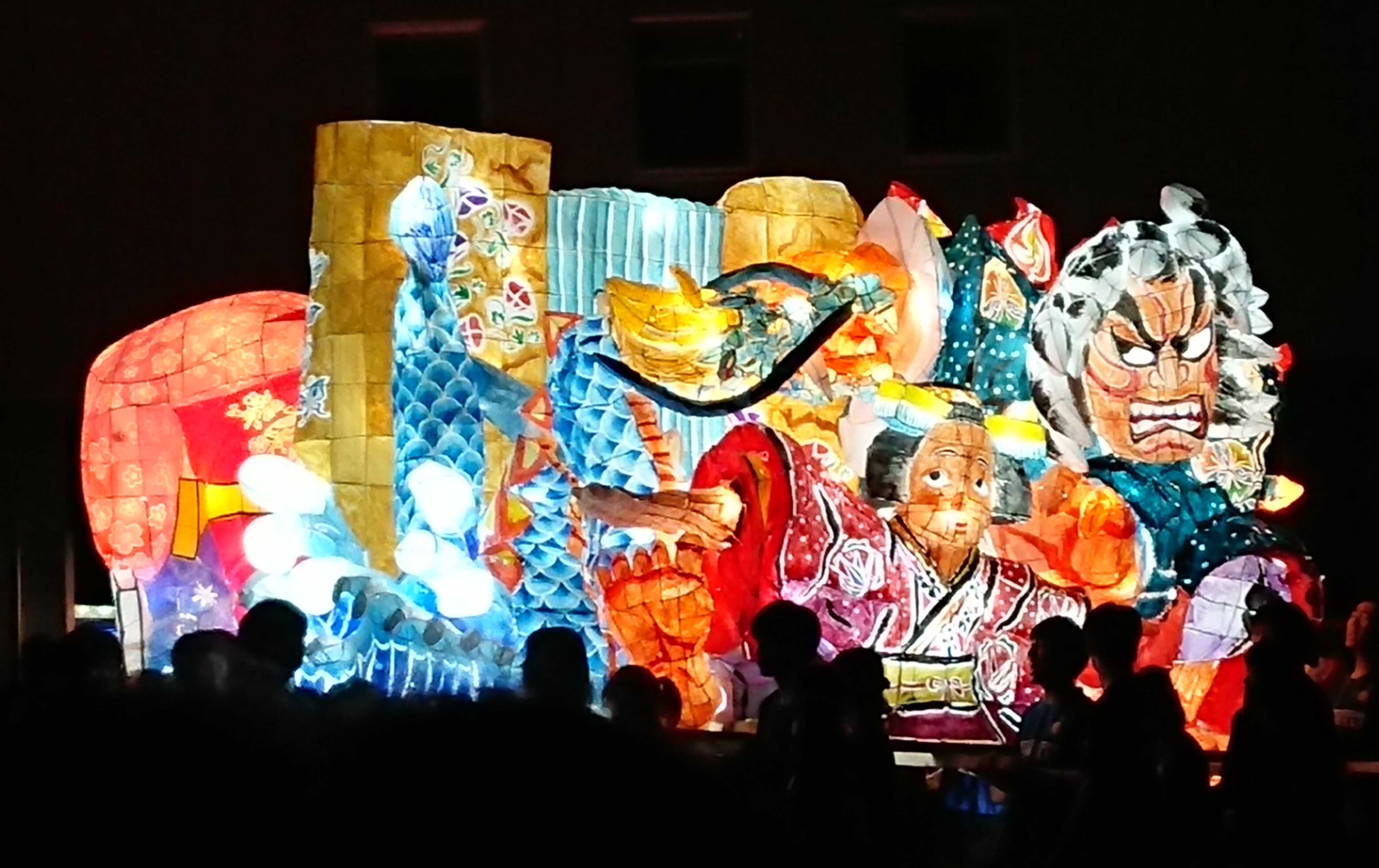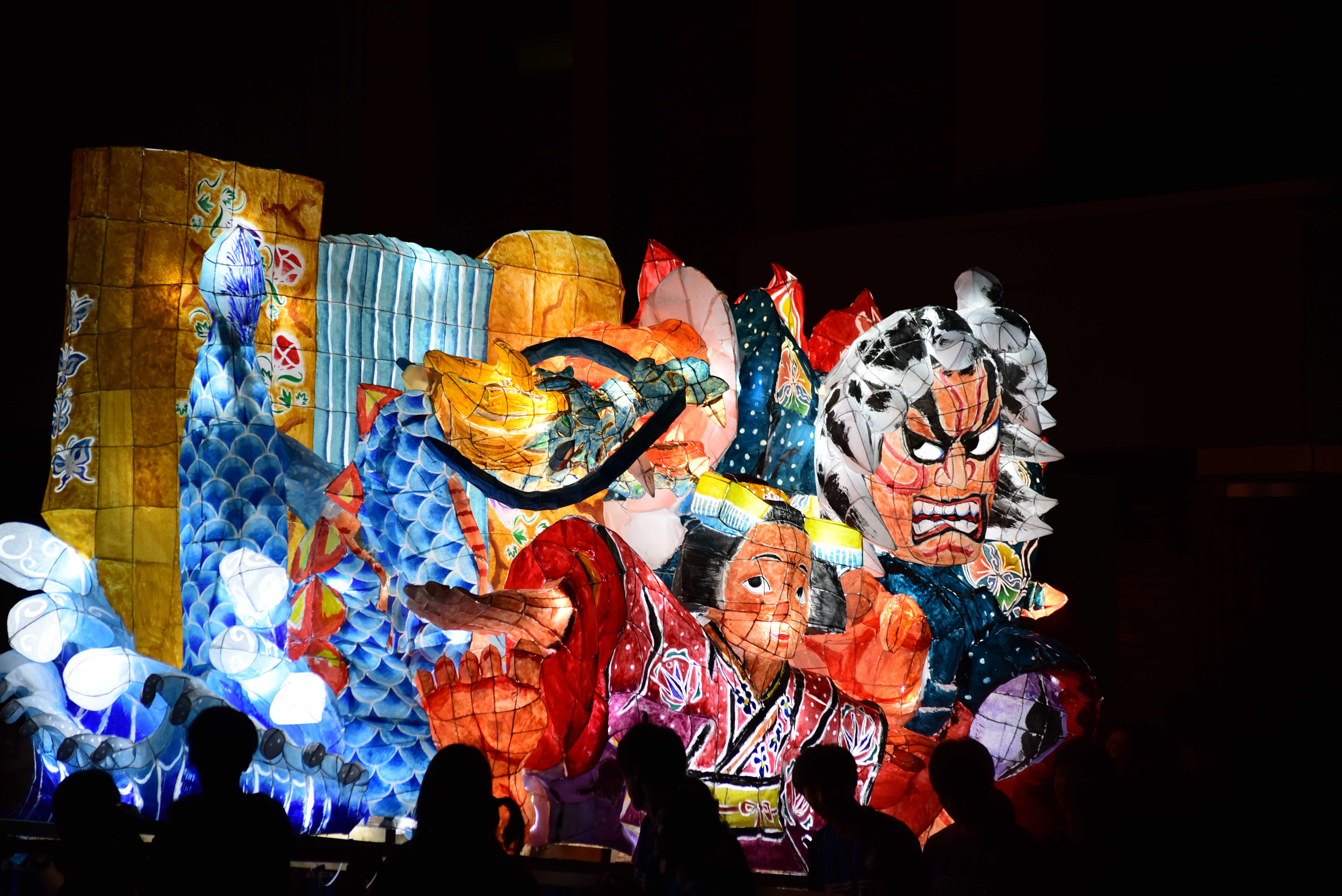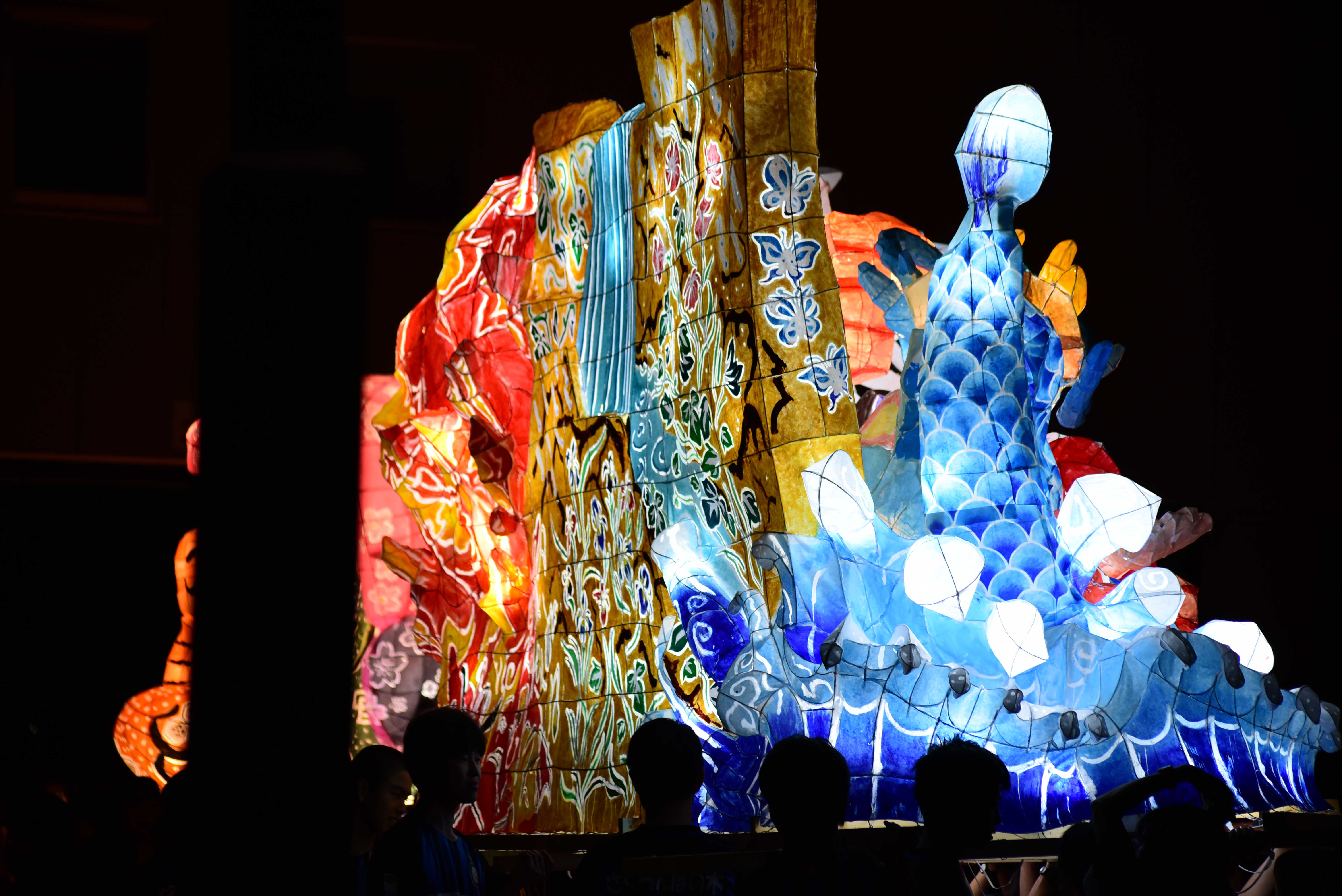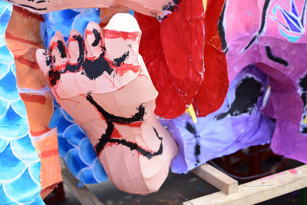 - 全体的にたくさんの色が使われているため、鮮やかで、力強さの中にも綺麗さがある行灯という印象を受けました。