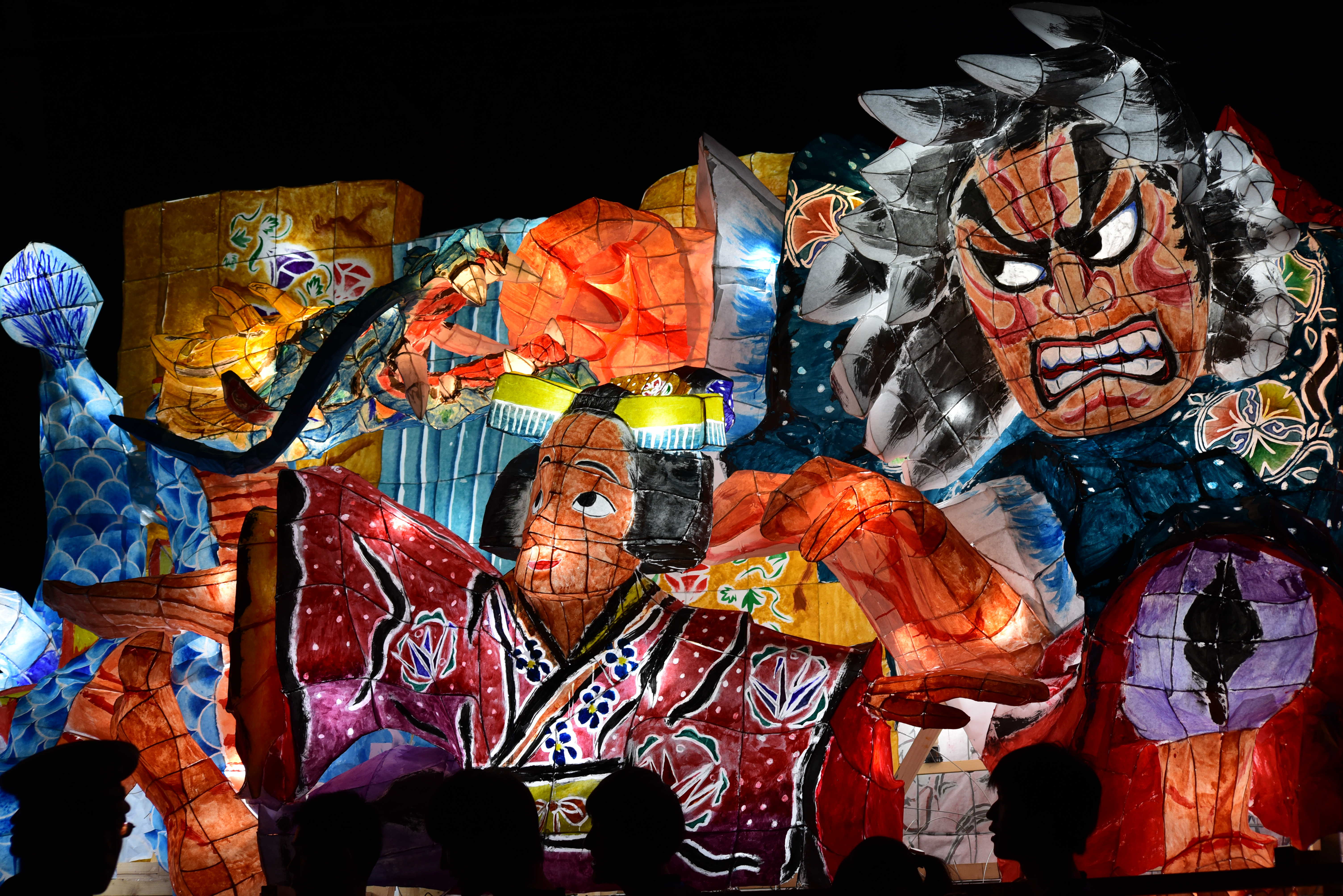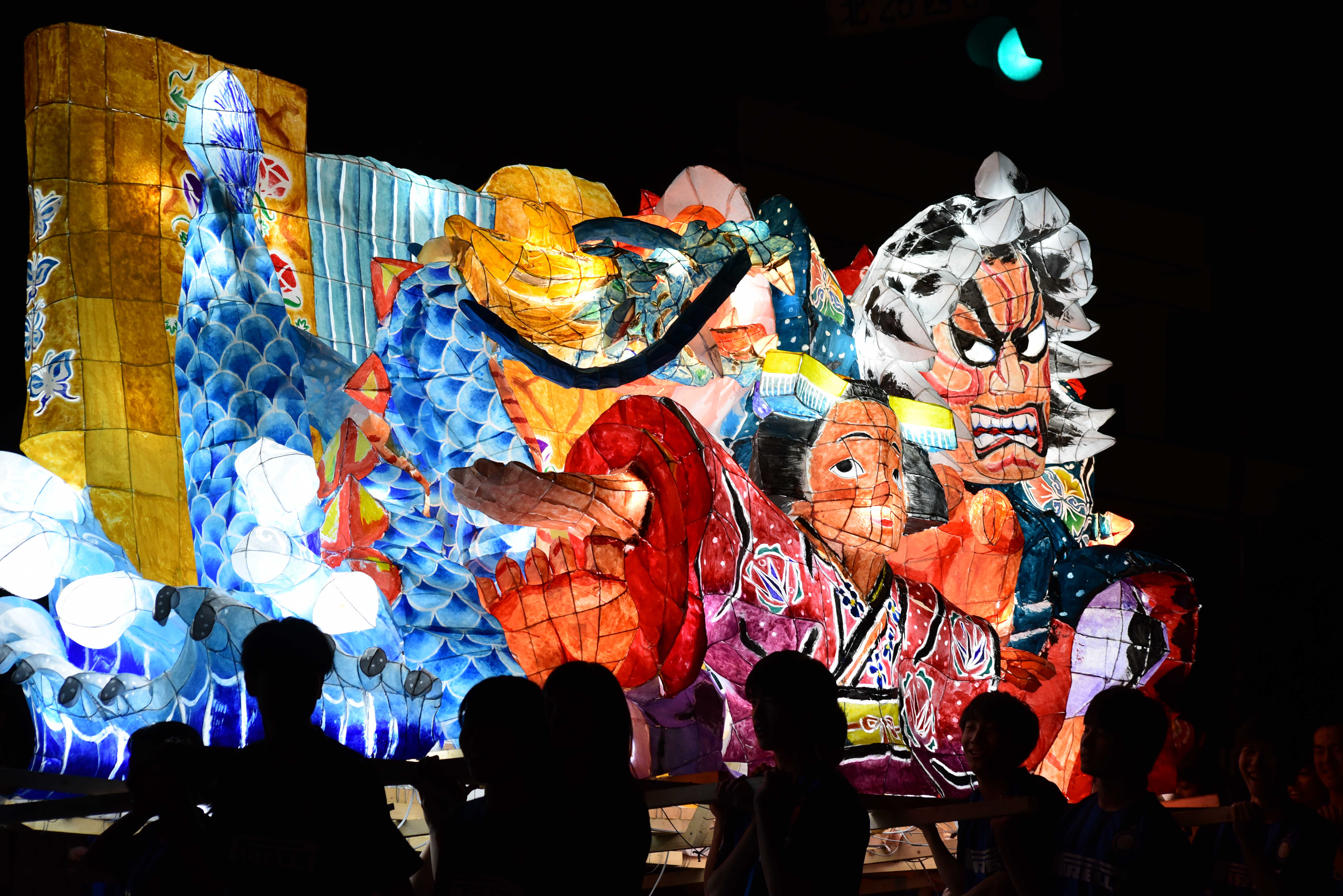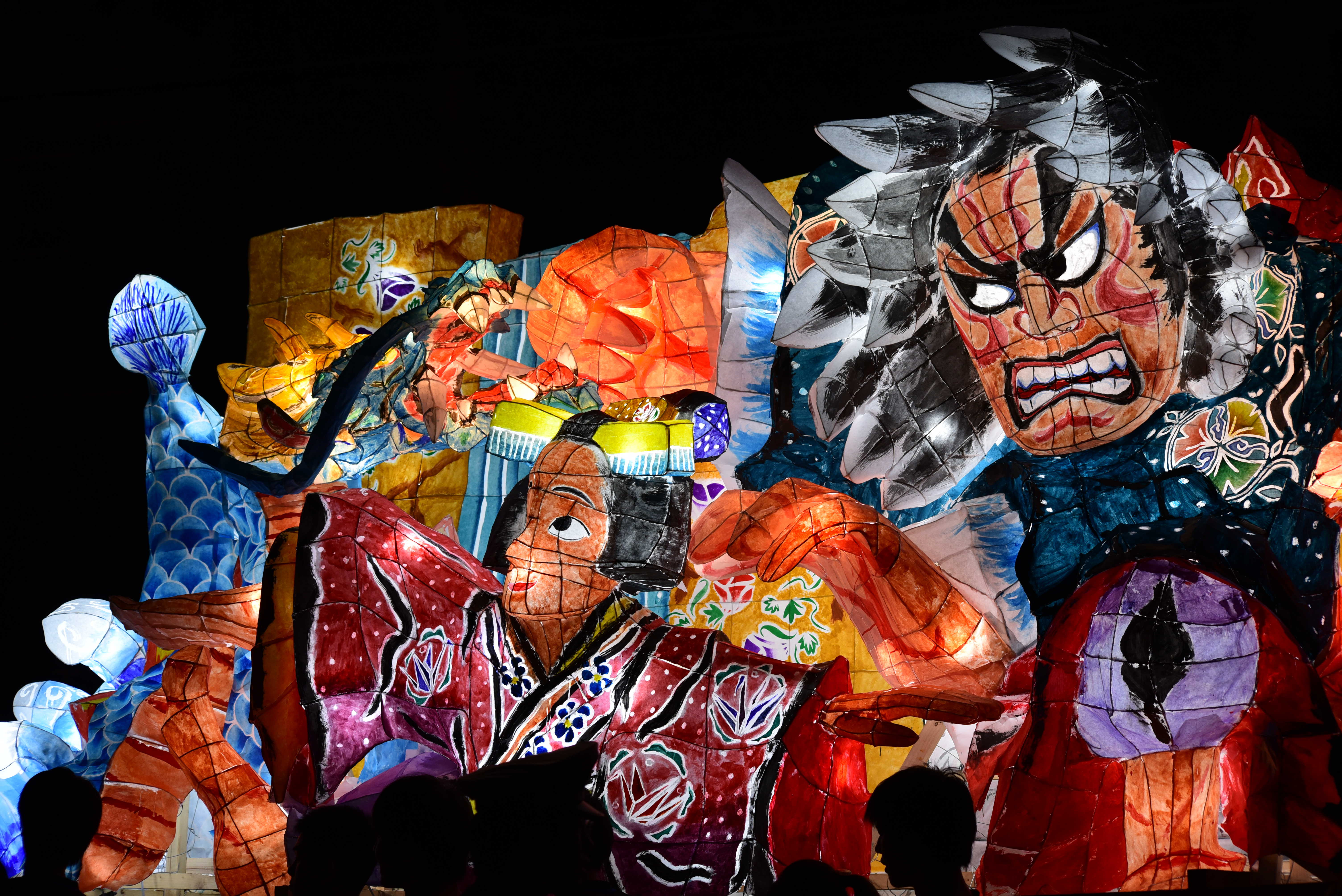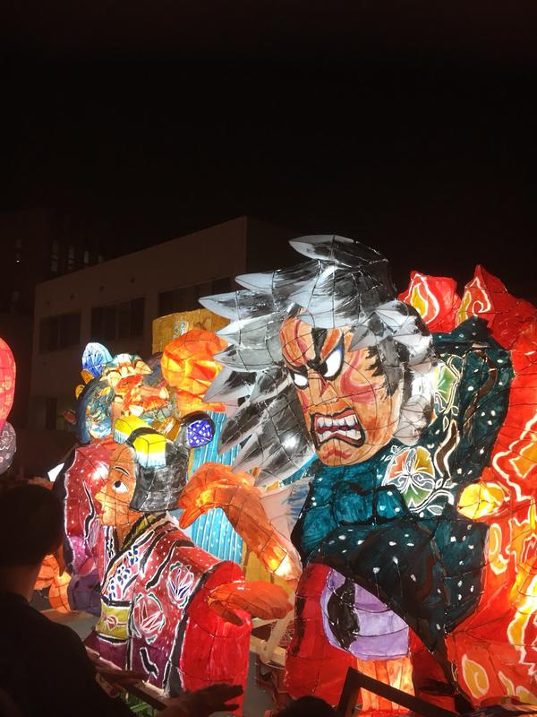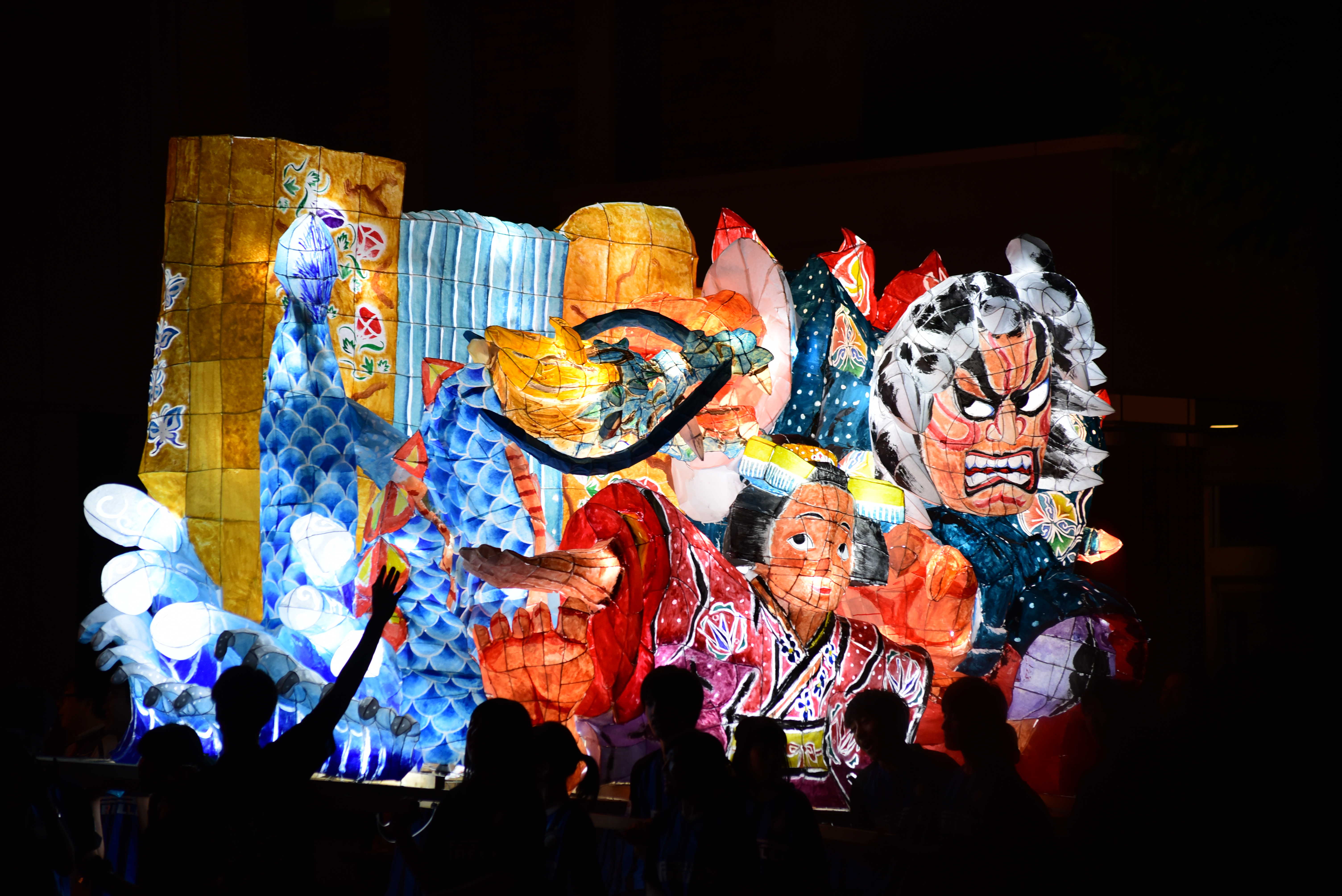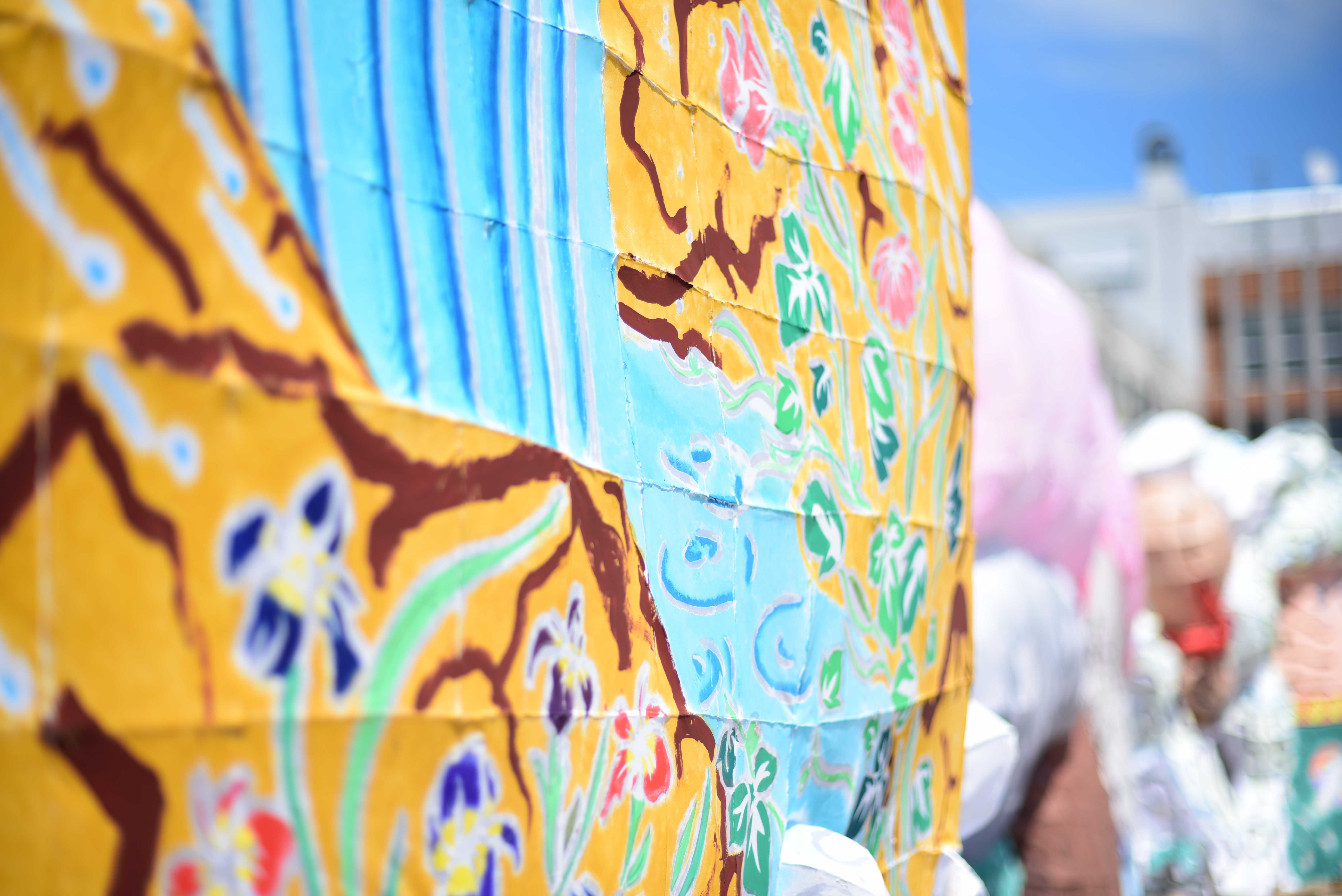 - 全体的にたくさんの色が使われているため、鮮やかで、力強さの中にも綺麗さがある行灯という印象を受けました。