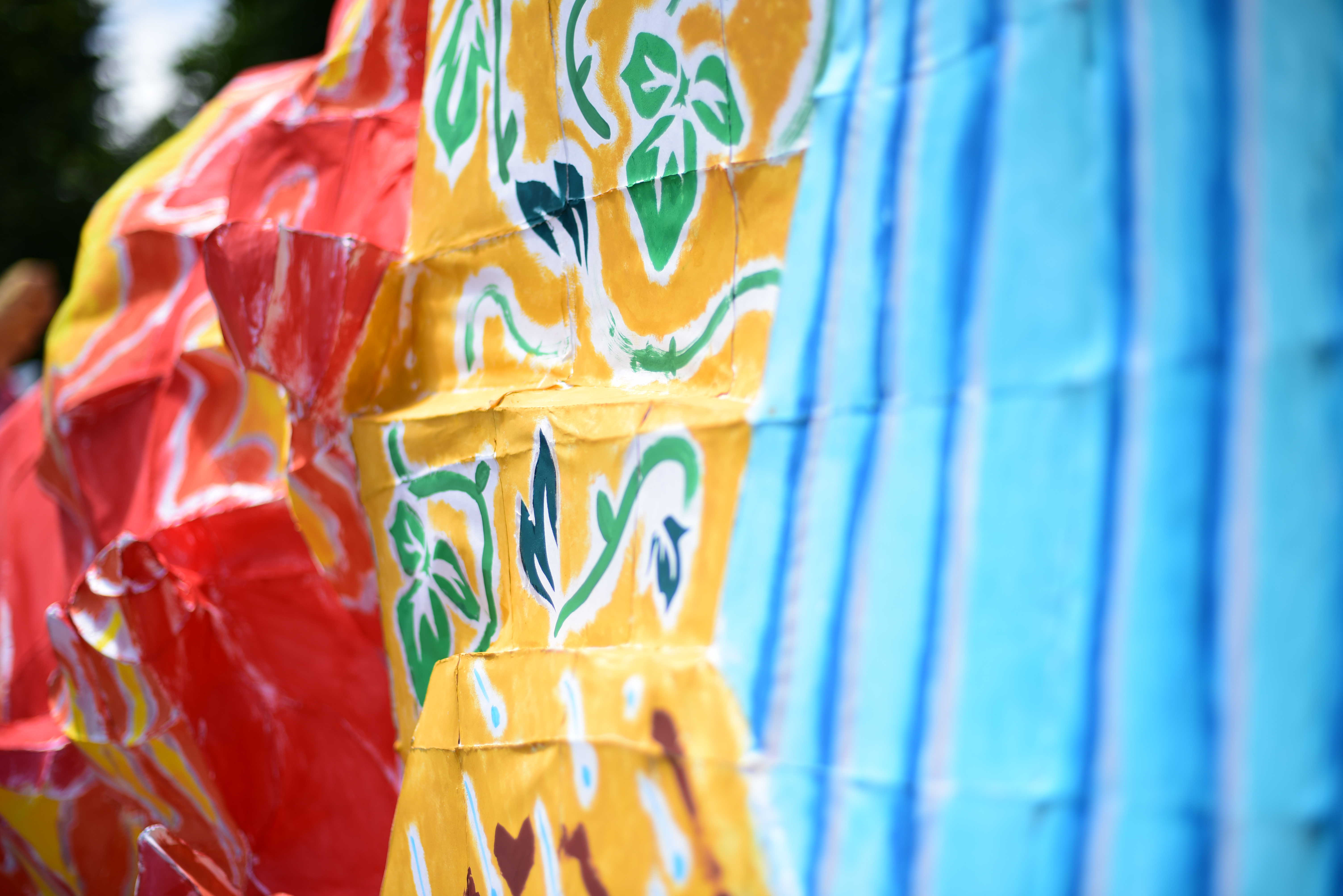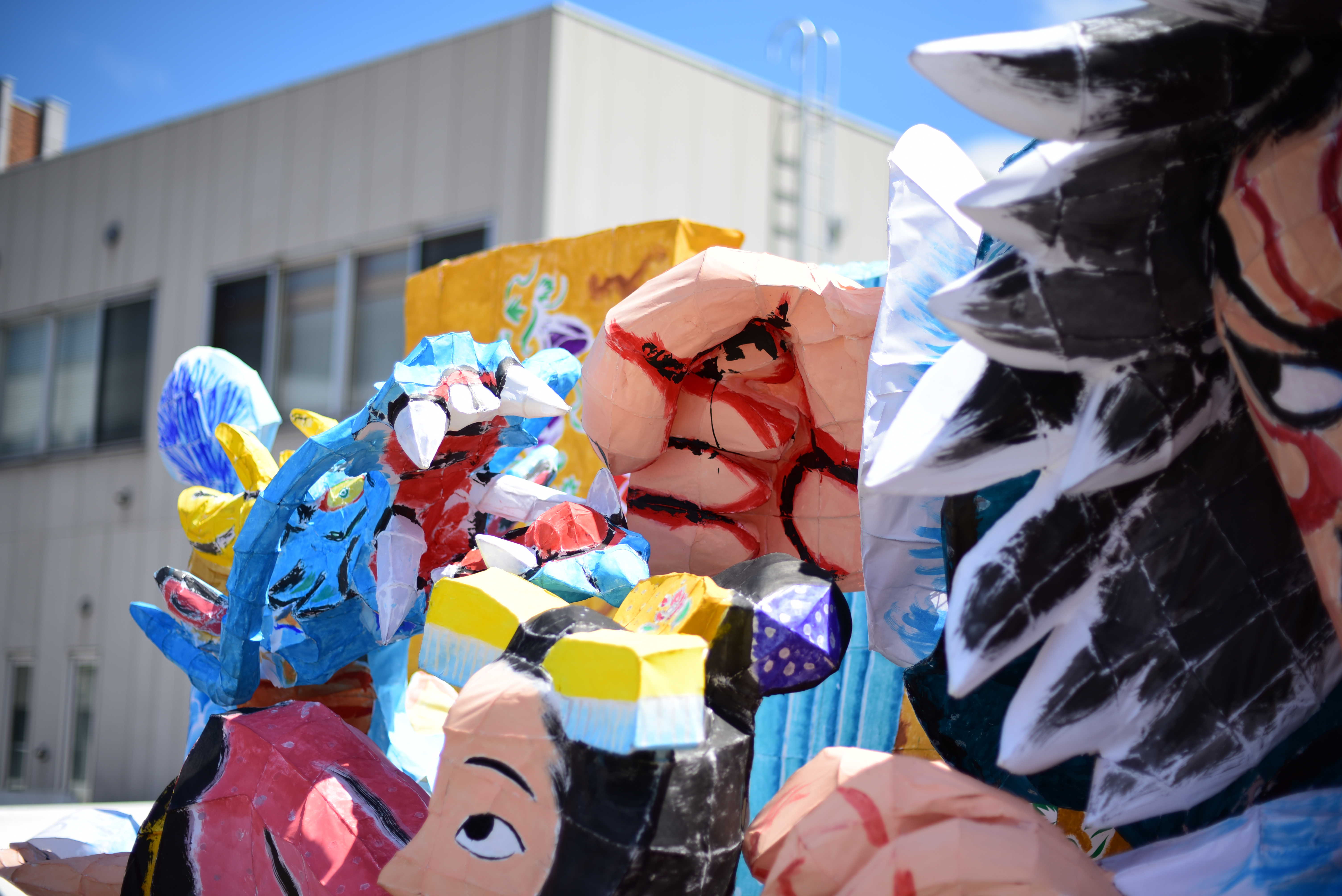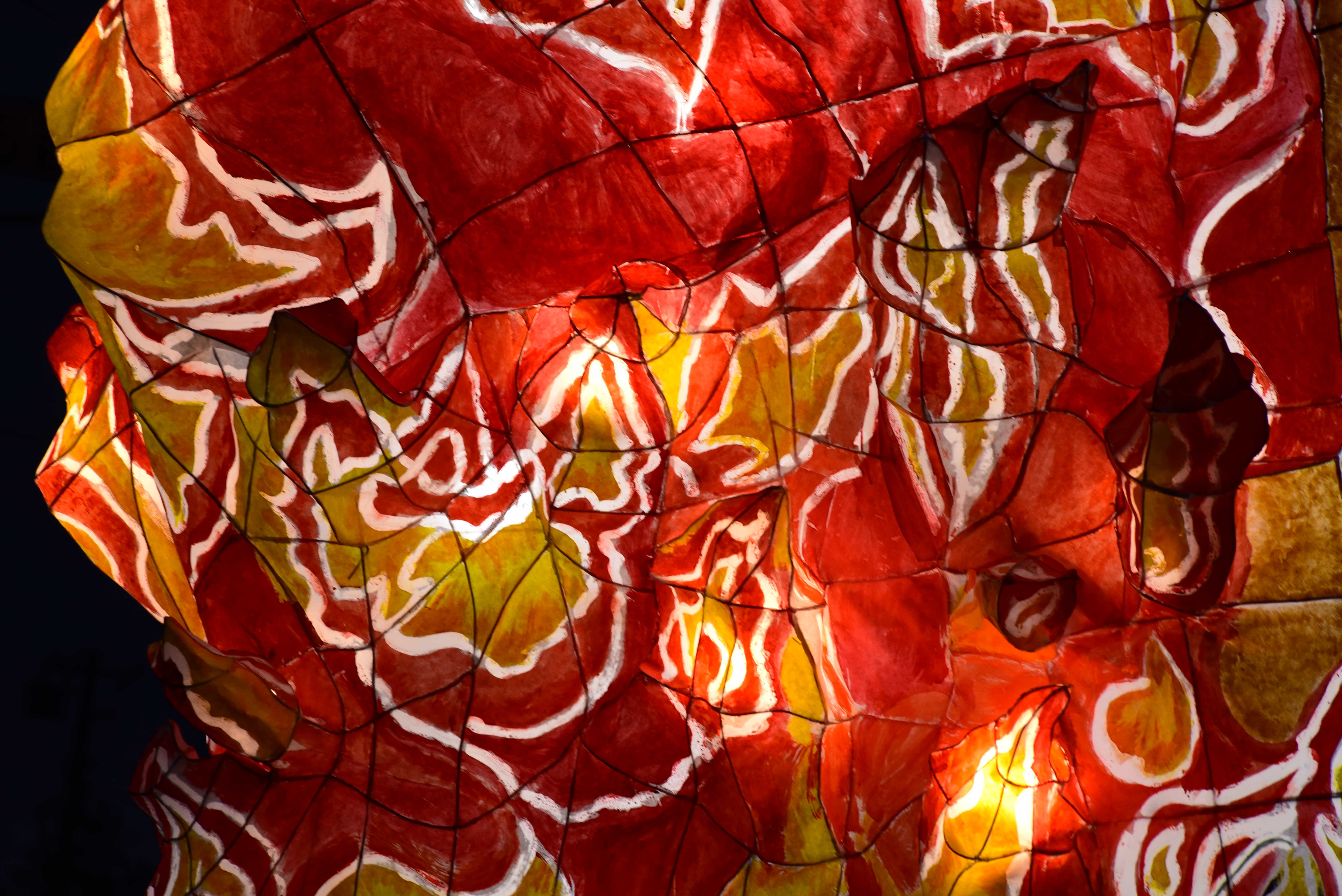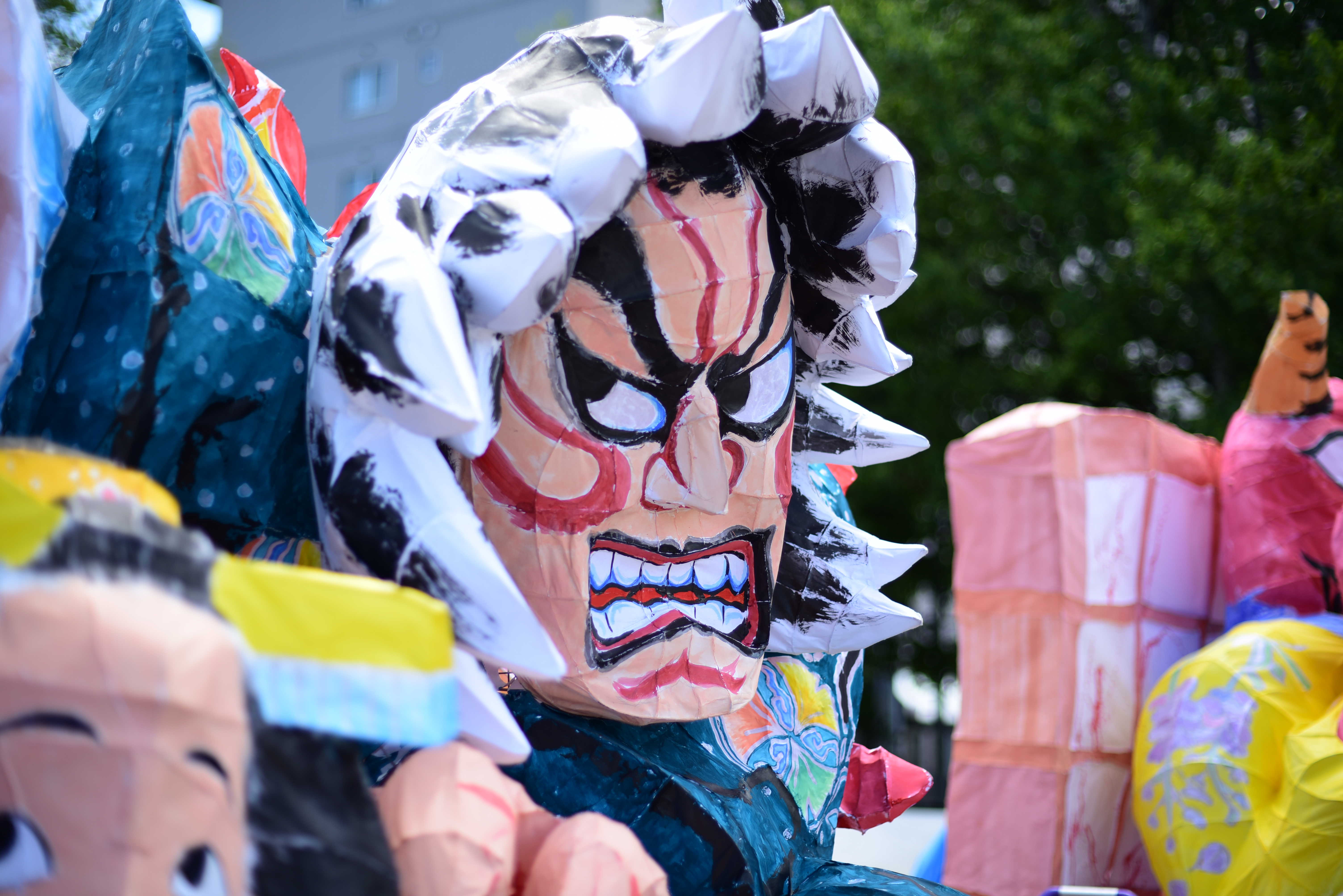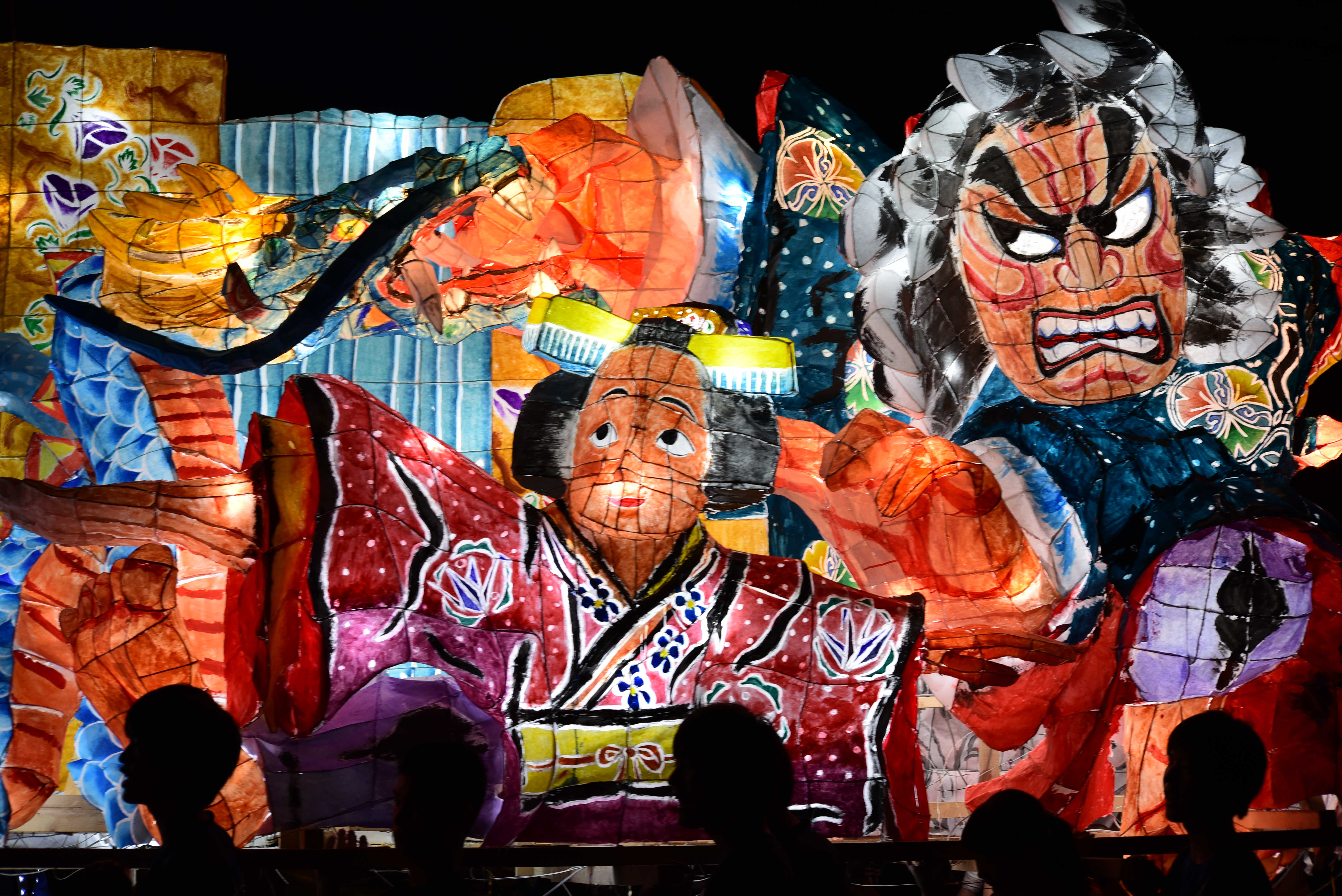 - 全体的にたくさんの色が使われているため、鮮やかで、力強さの中にも綺麗さがある行灯という印象を受けました。