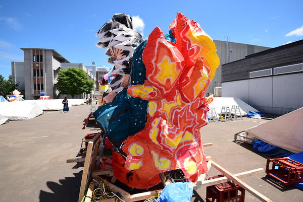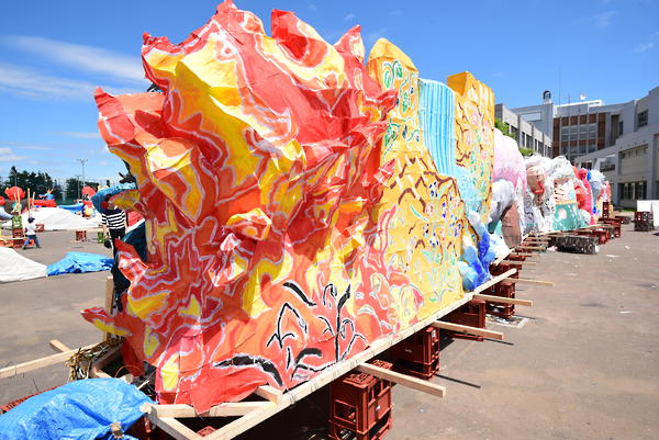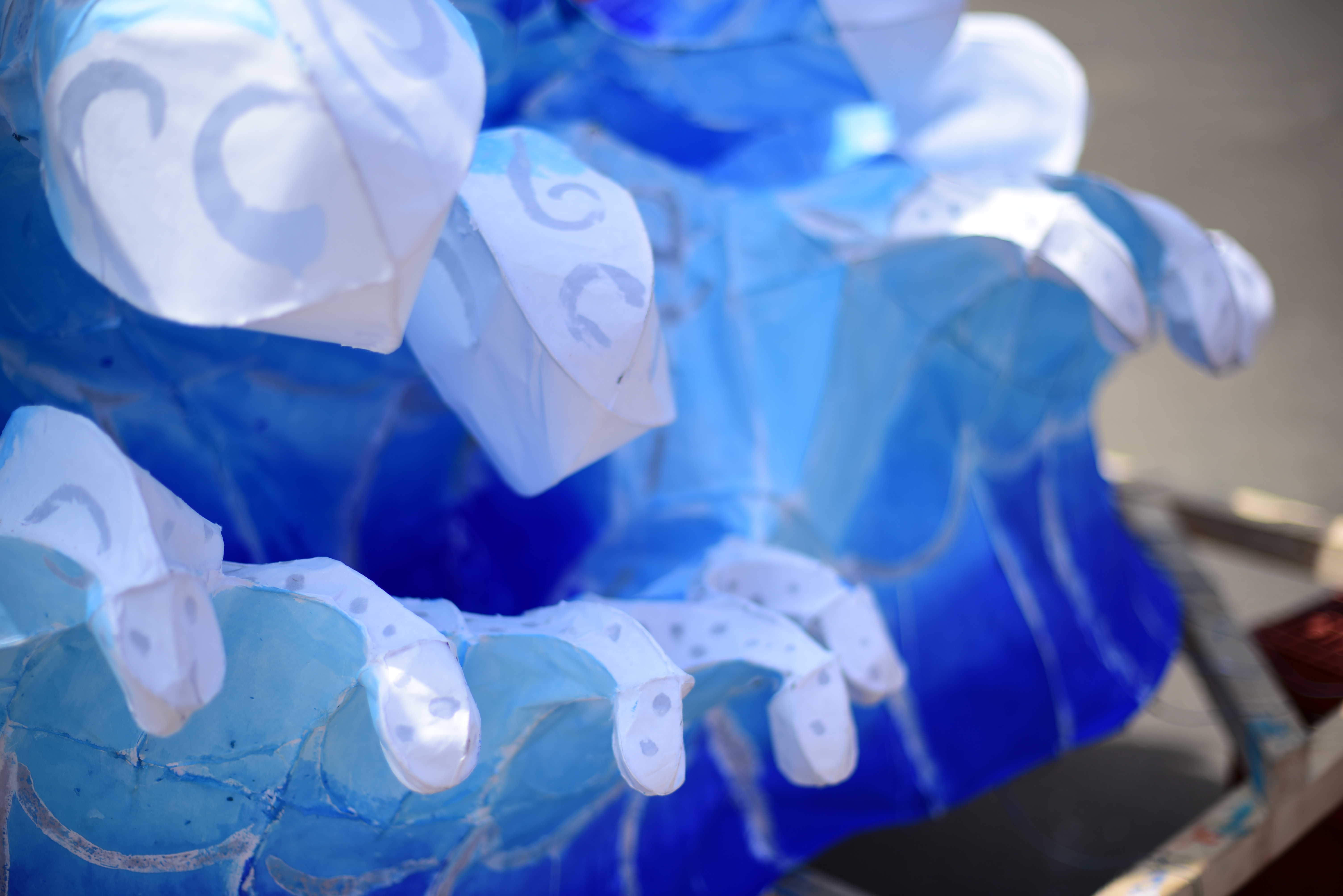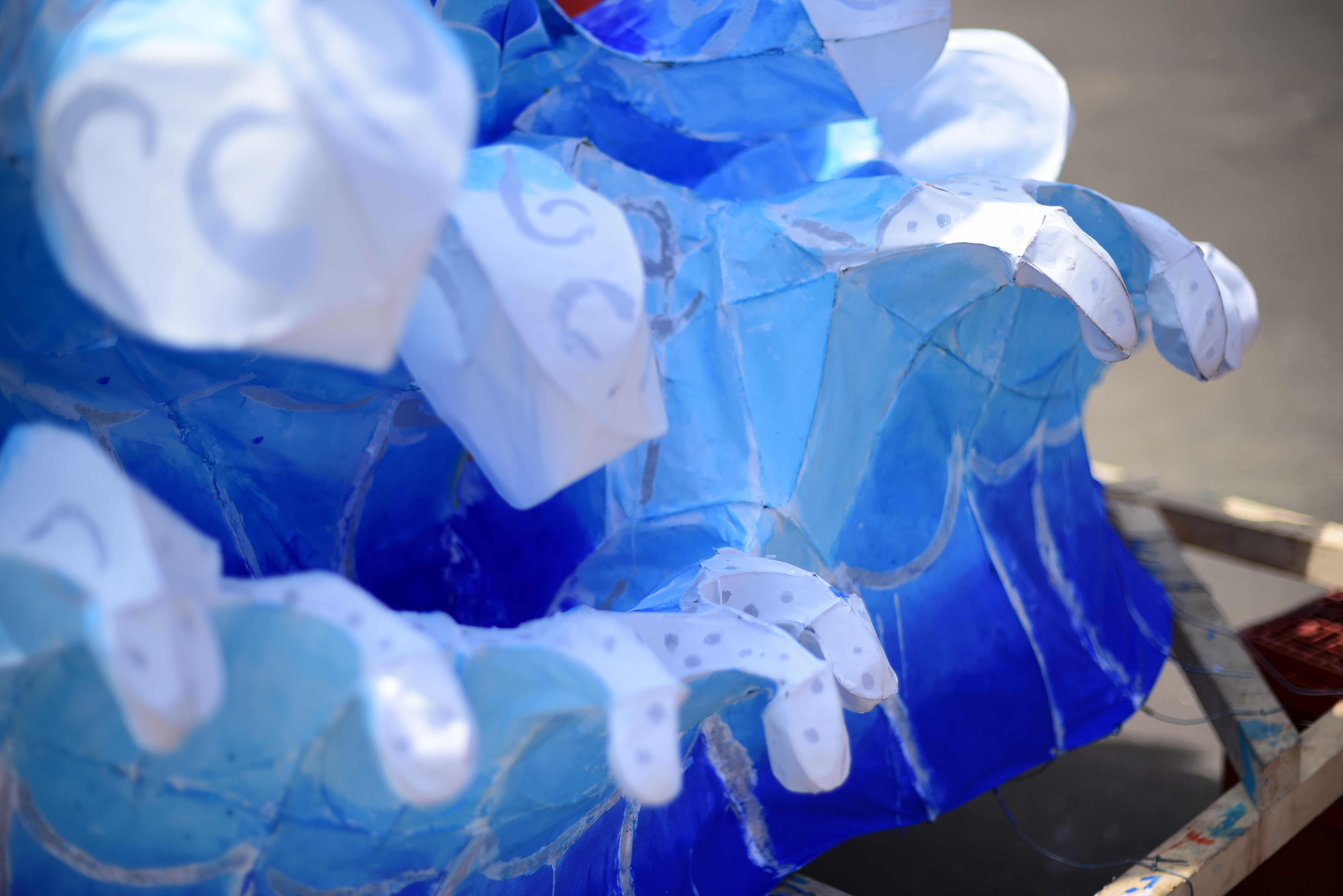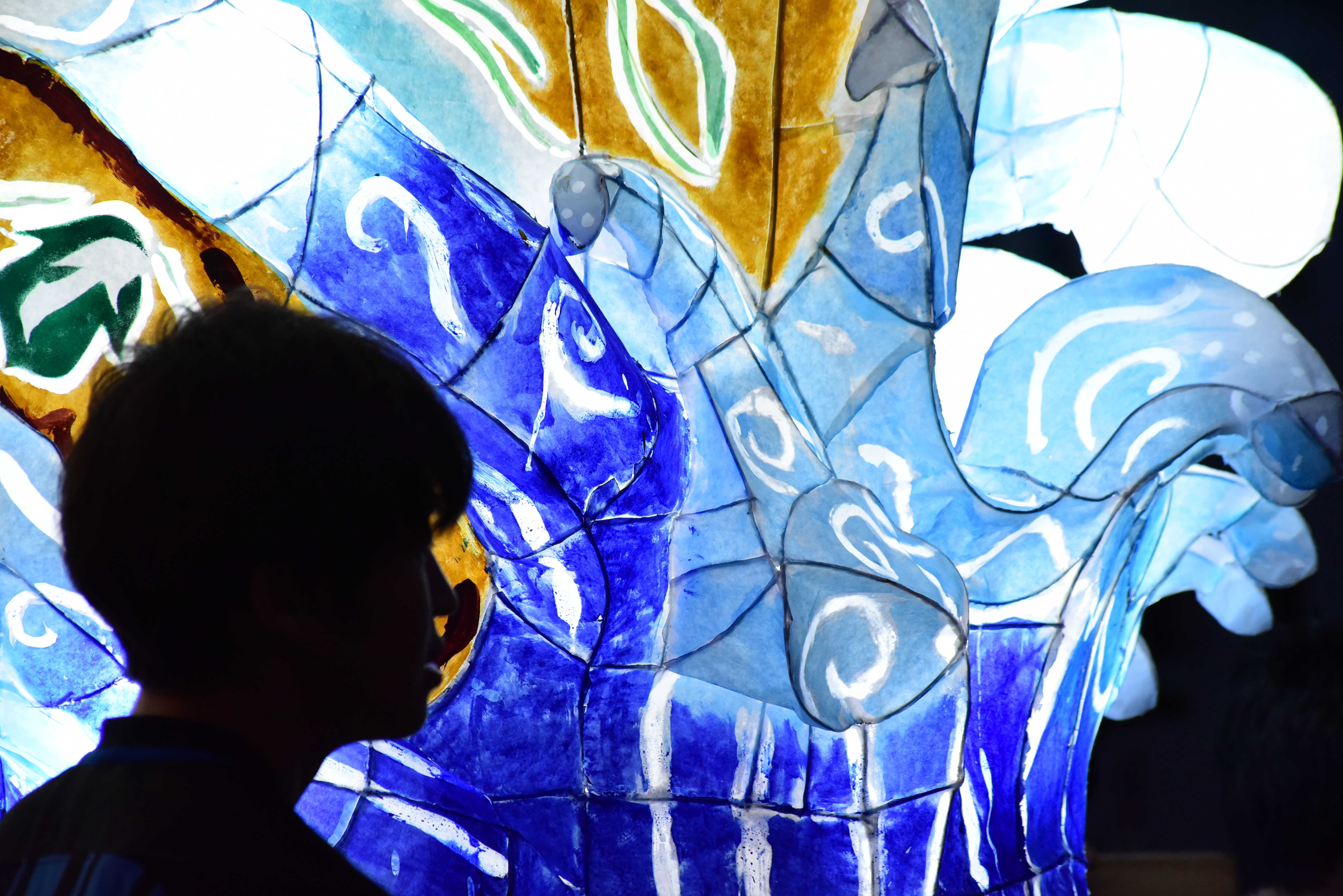 あとは、滝や炎のところでのロウの使われ方がとても効果的でした。特に裏面のクオリティがとても高く、今年1番だと思います。めちゃくちゃ綺麗でした。個人的な話になるんですが、僕が3年生で滝を作ることになったときに、このように青、水色、ロウ…と繰り返すような滝を作りたかったので、こういった作品がでてきて嬉しいです。