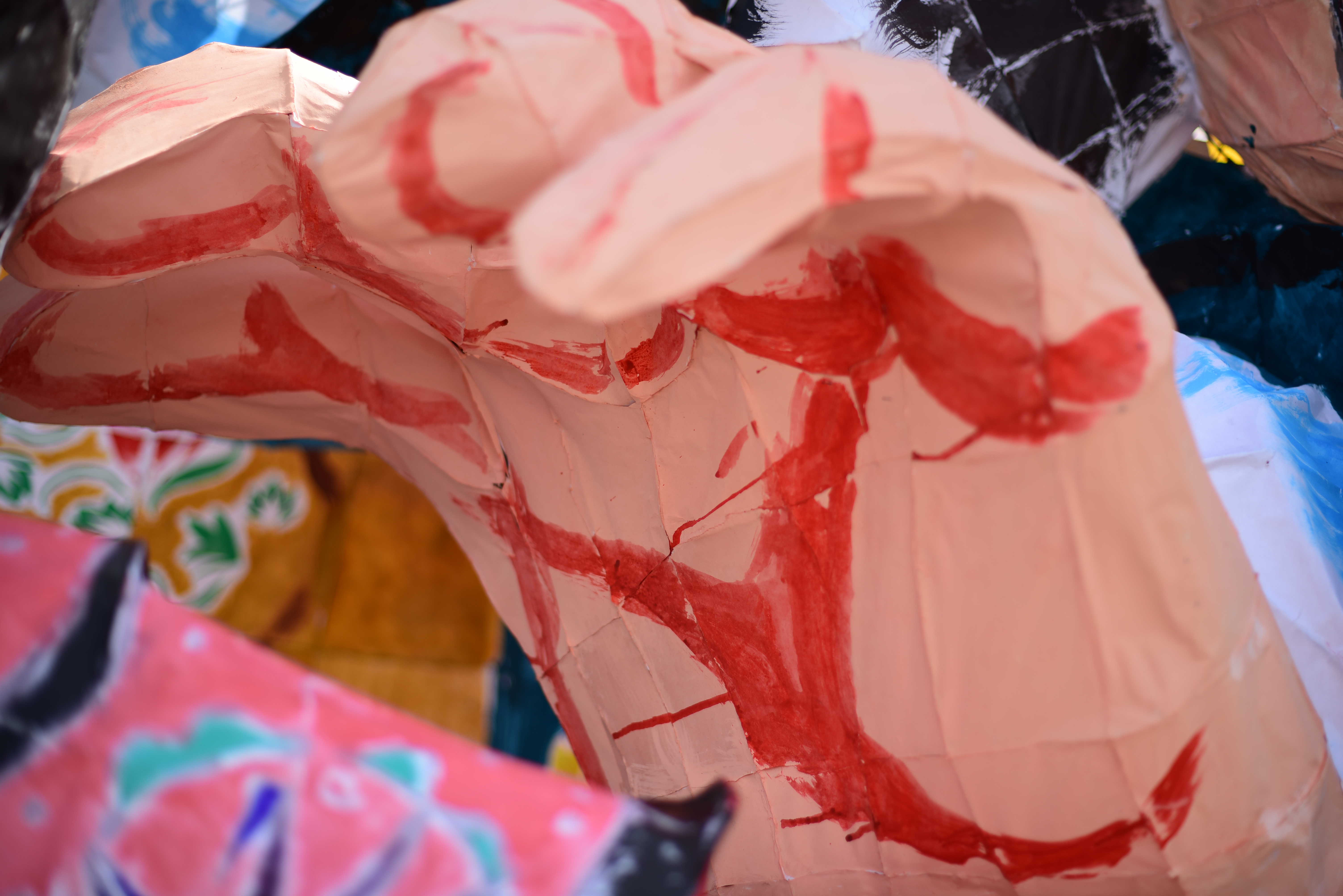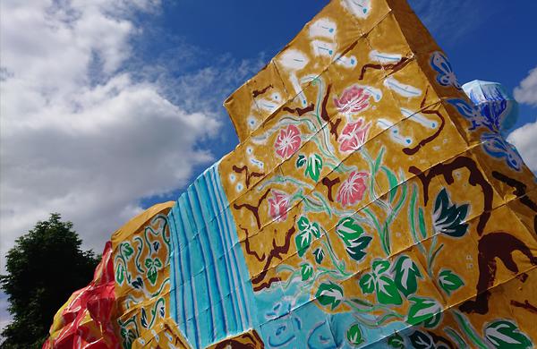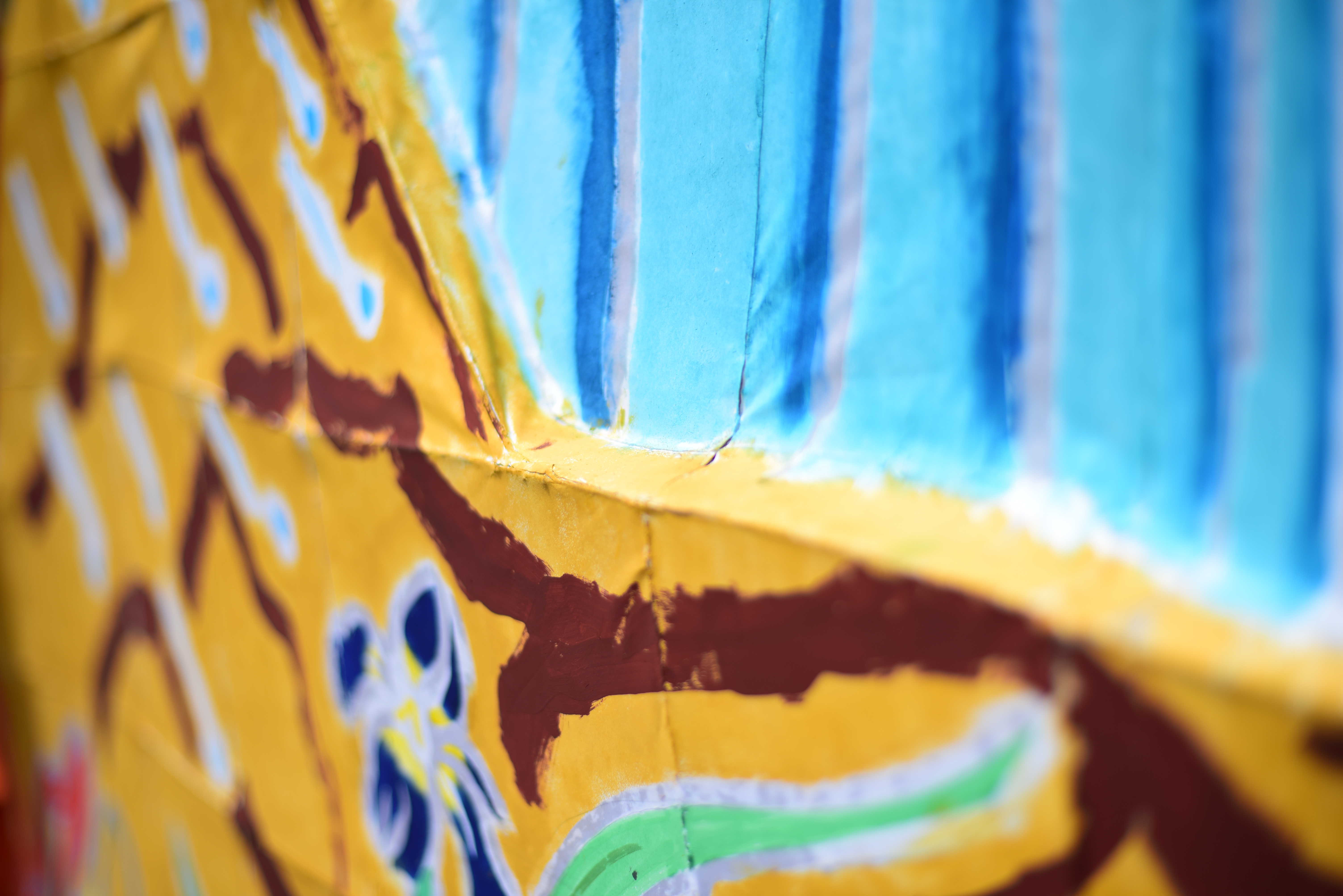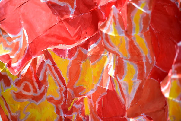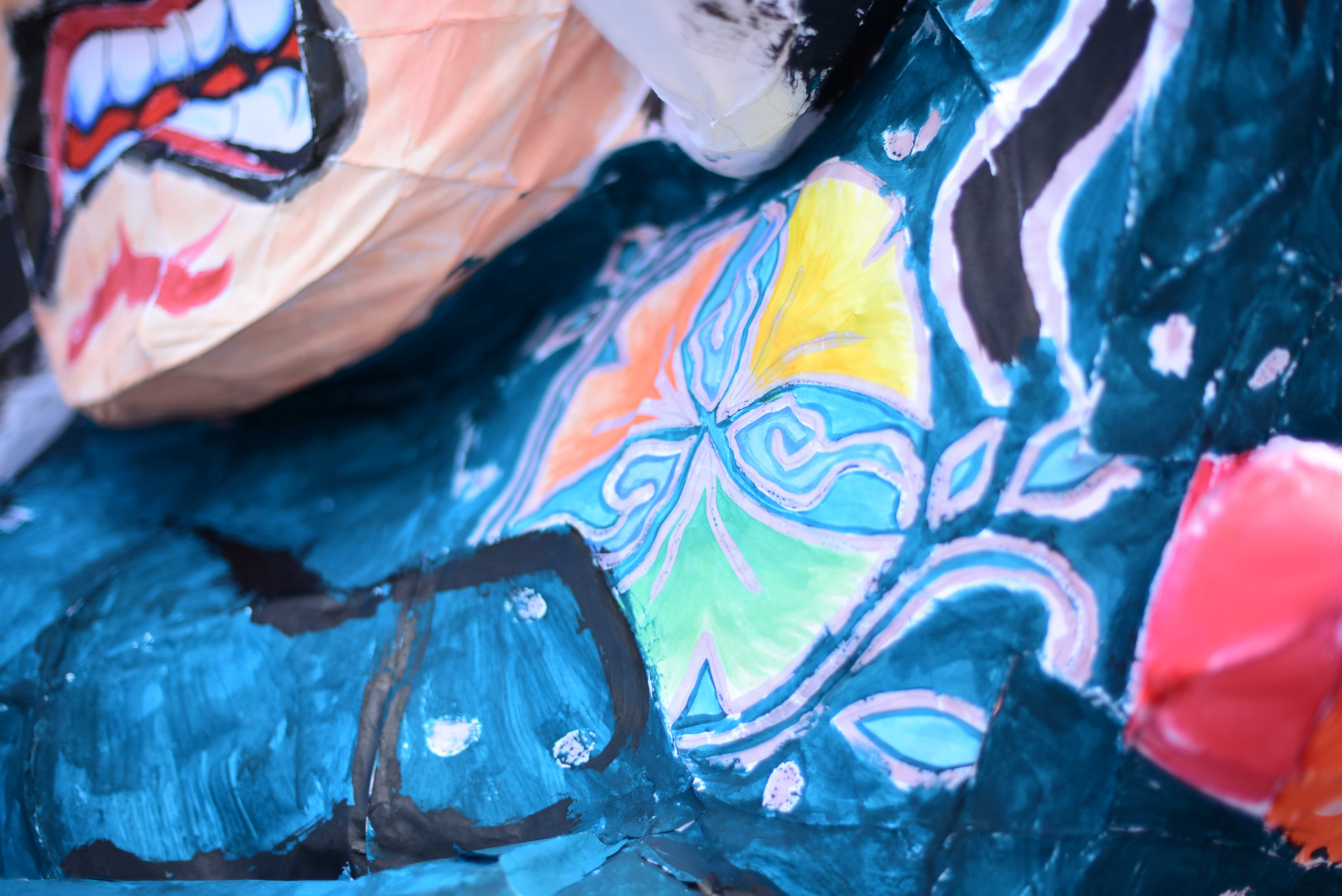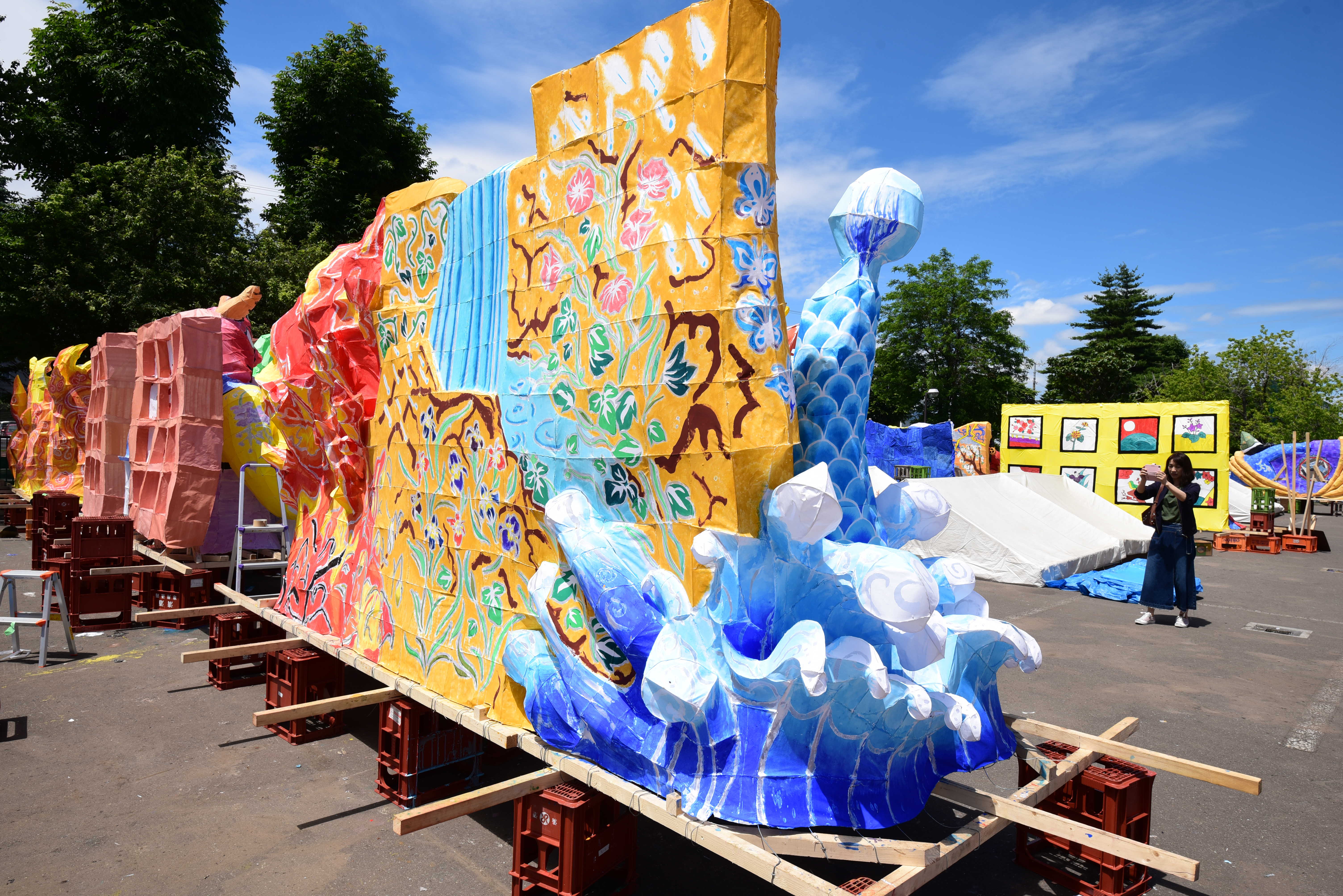 あとは、滝や炎のところでのロウの使われ方がとても効果的でした。特に裏面のクオリティがとても高く、今年1番だと思います。めちゃくちゃ綺麗でした。個人的な話になるんですが、僕が3年生で滝を作ることになったときに、このように青、水色、ロウ…と繰り返すような滝を作りたかったので、こういった作品がでてきて嬉しいです。