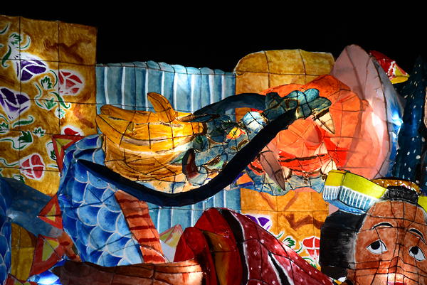 龍は、胴体が細いかつ顔が上にあるので、支柱や電飾が大変そうですが、成功していたと思います。3-6は事前に3DCGで支柱を制作していたとのことなので、それが大きな要因なのかもしれせん。顔が凝っていて迫力があるのですが、後ろの滝の青と色が被ってしまい、少し見にくくなってしまっていたのが勿体なかったです。