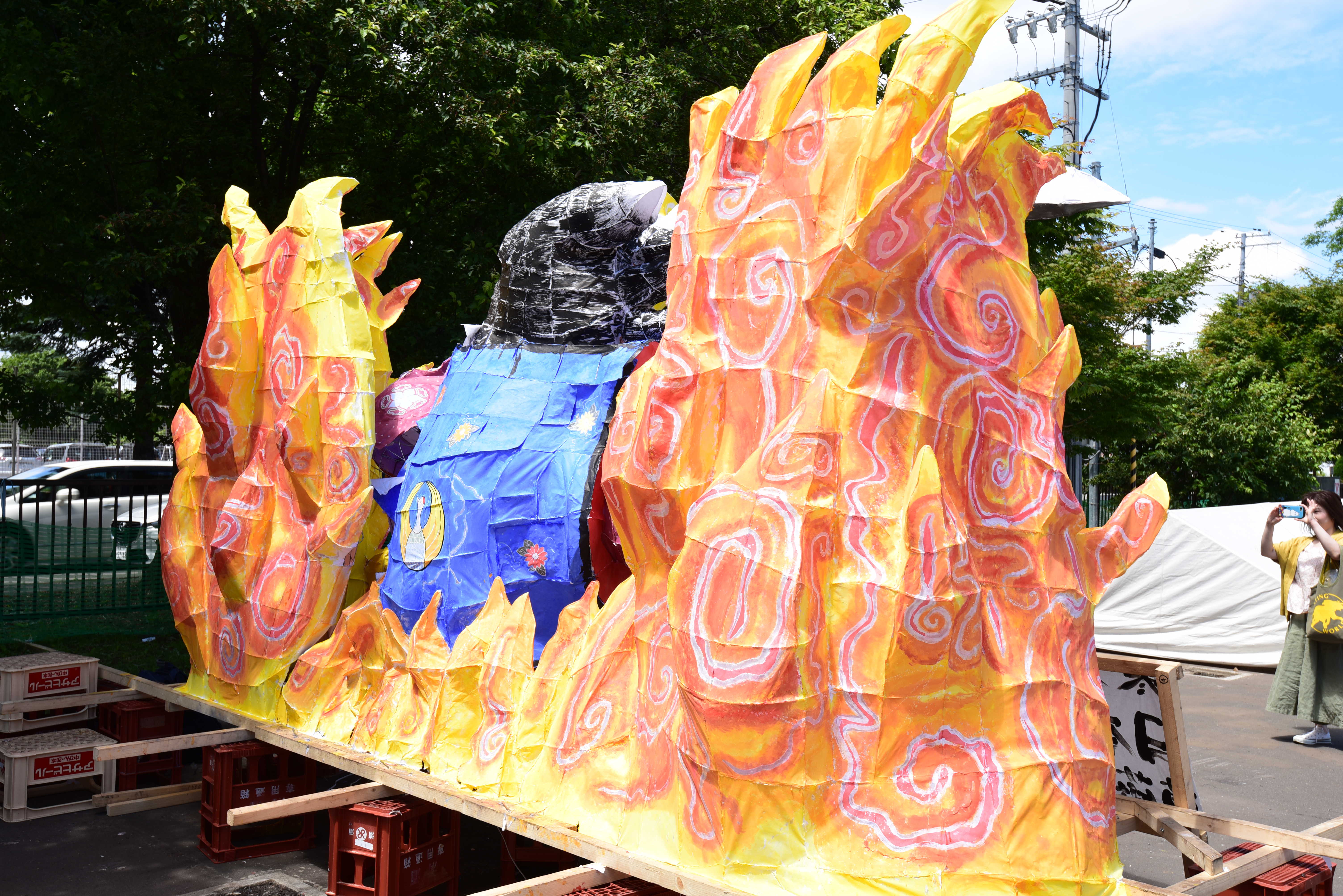 一方で、やはり3年生で人1人という行灯でより上位の賞を狙うには、さらに工夫が必要だと感じました。具体的には、人を全身作ることでより動きを出したり、炎以外にも何か別の要素(雲とか岩とかそういうの)を作るといったことですかね…。