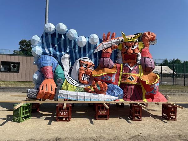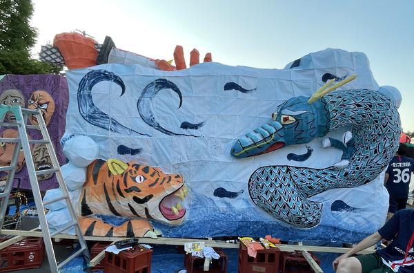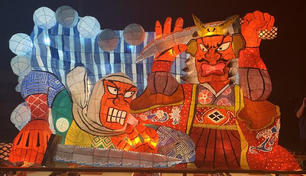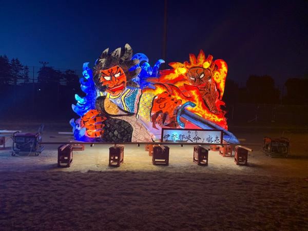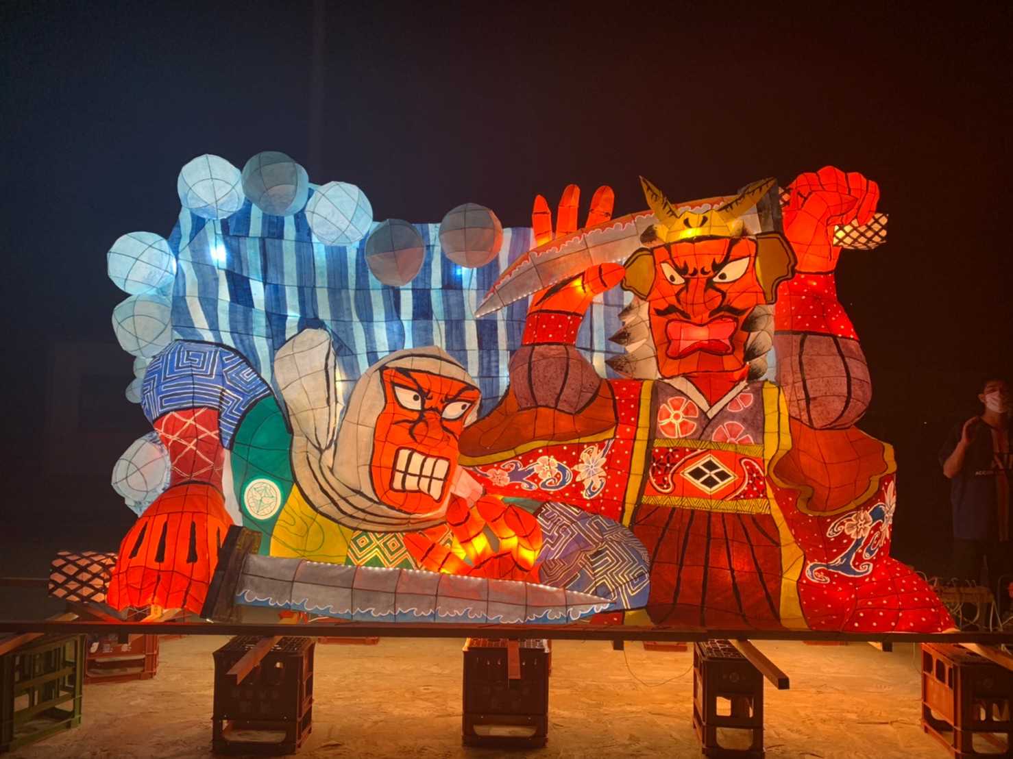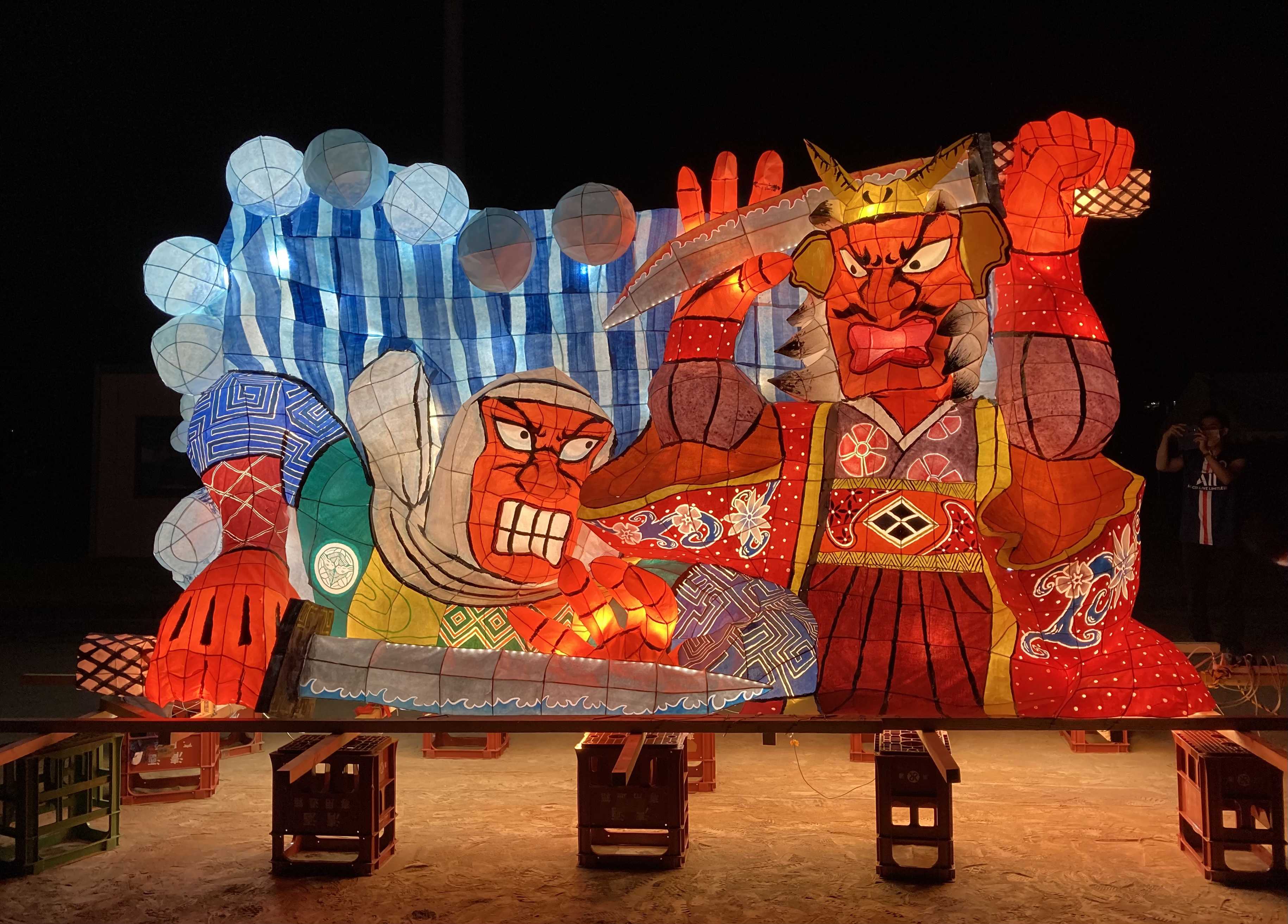 そしてその塗りを支える紙貼りの丁寧さも感じました。電飾もミスがなく、普通は刀を持つ手や柄の部分で光ムラが出てしまうものなのですがそういうものが一切ありません。 配色がいいおかげか構図もわかりやすくいい行灯だなと思いました。 大賞おめでとうございます!