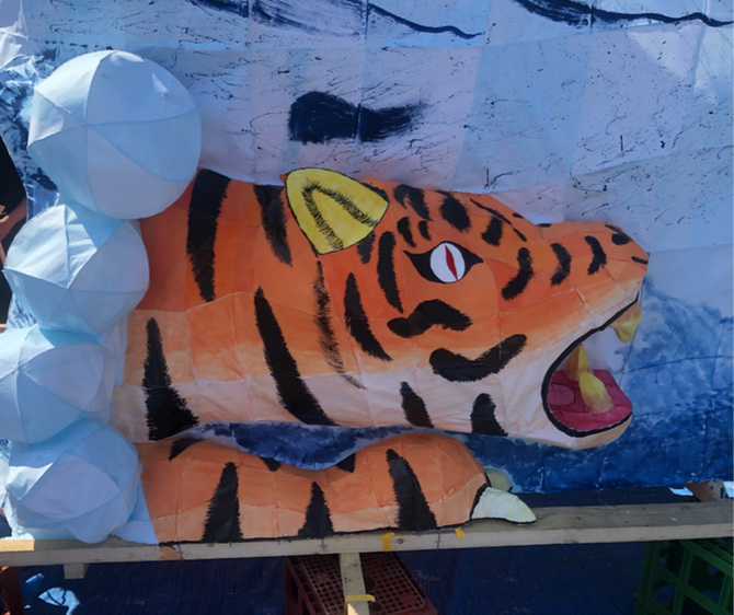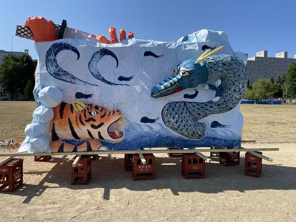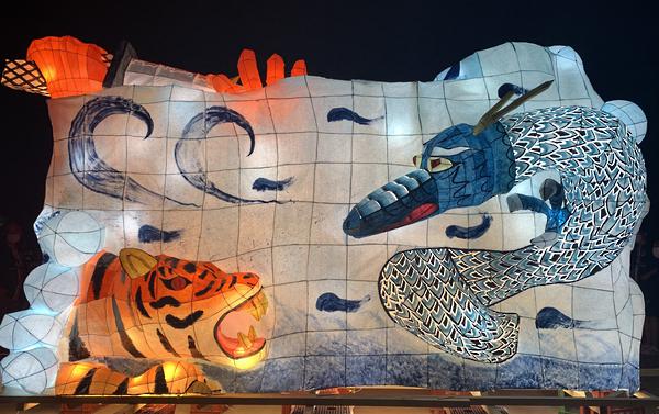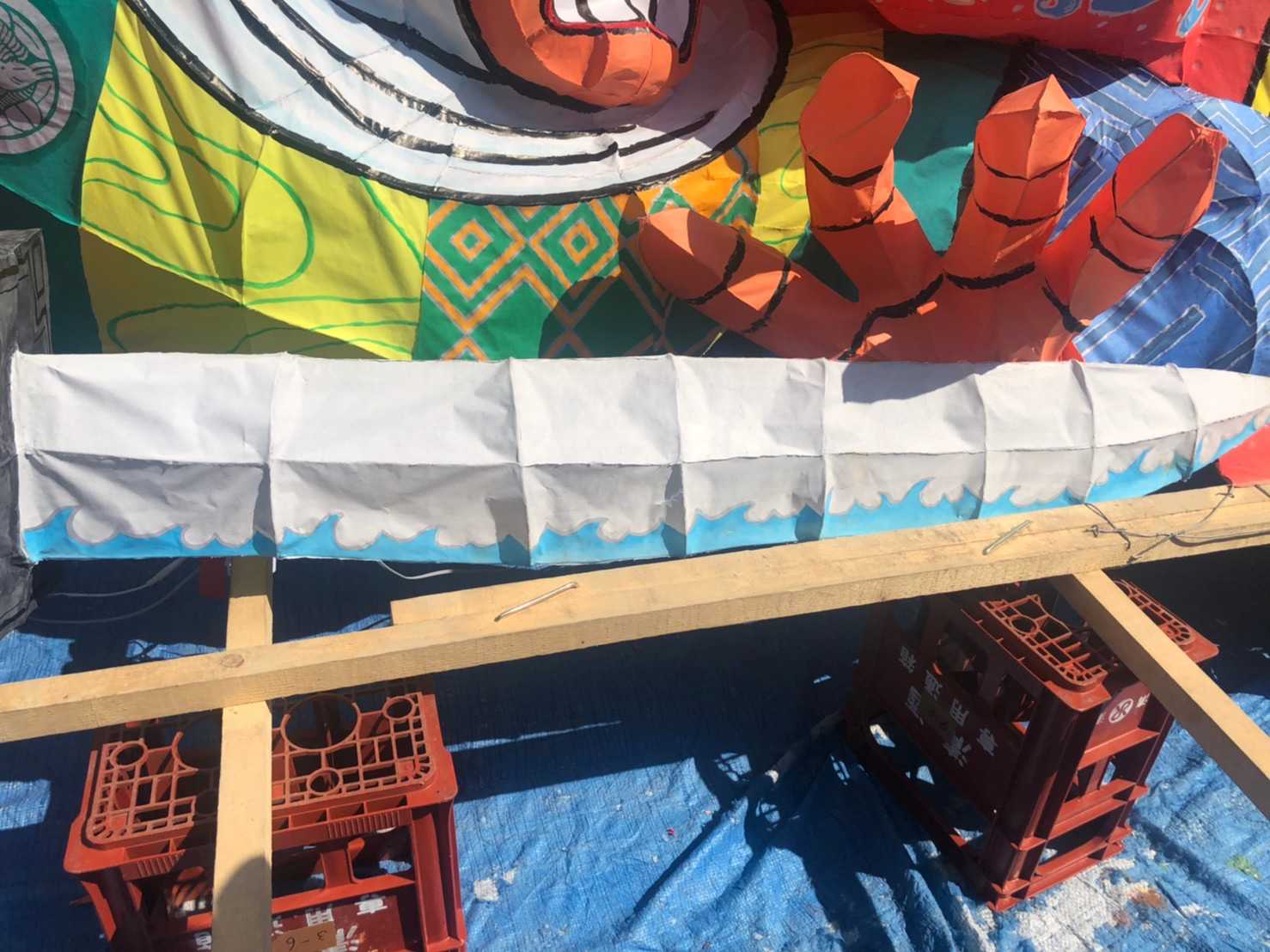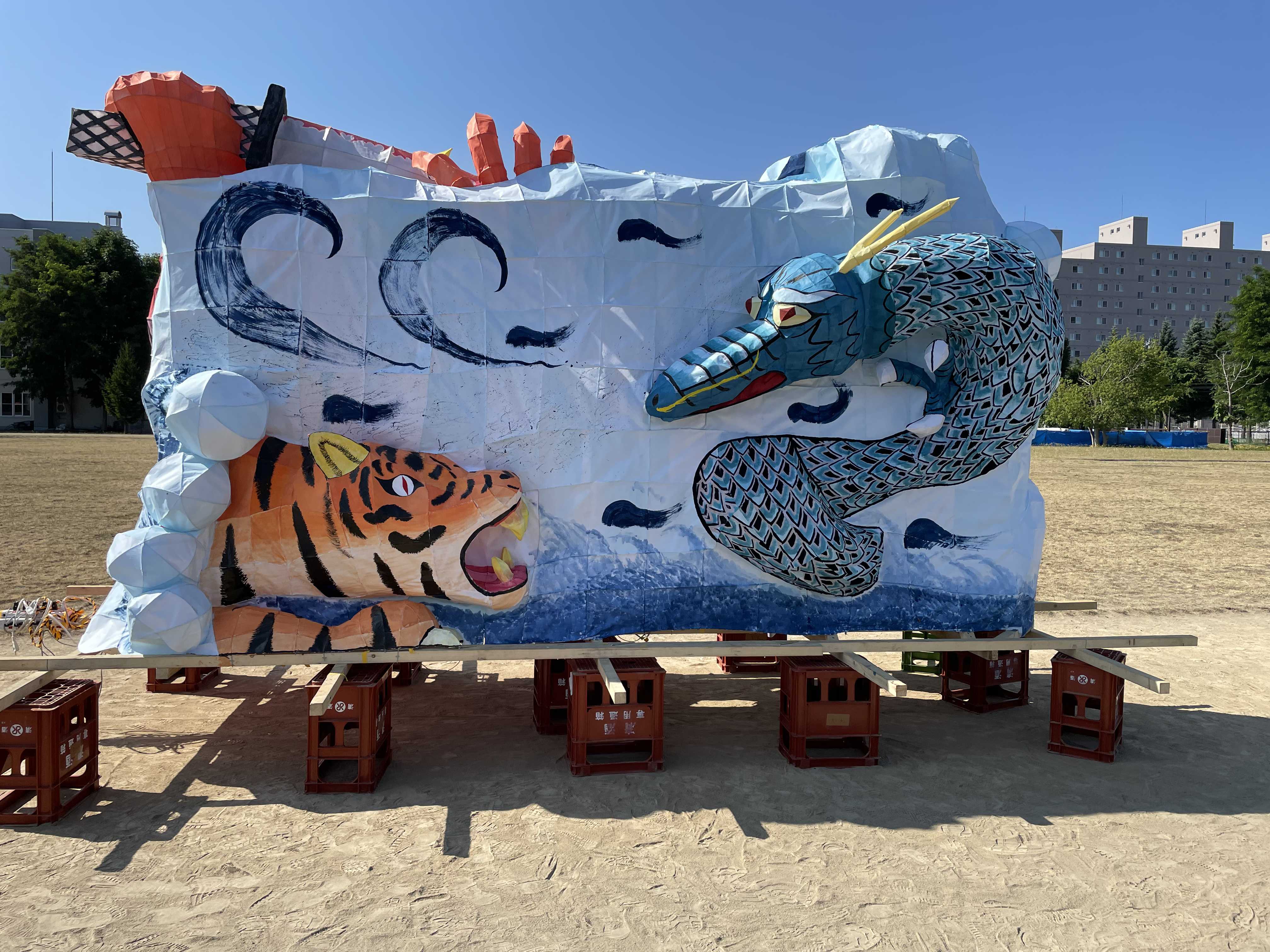そしてその塗りを支える紙貼りの丁寧さも感じました。電飾もミスがなく、普通は刀を持つ手や柄の部分で光ムラが出てしまうものなのですがそういうものが一切ありません。 配色がいいおかげか構図もわかりやすくいい行灯だなと思いました。 大賞おめでとうございます!