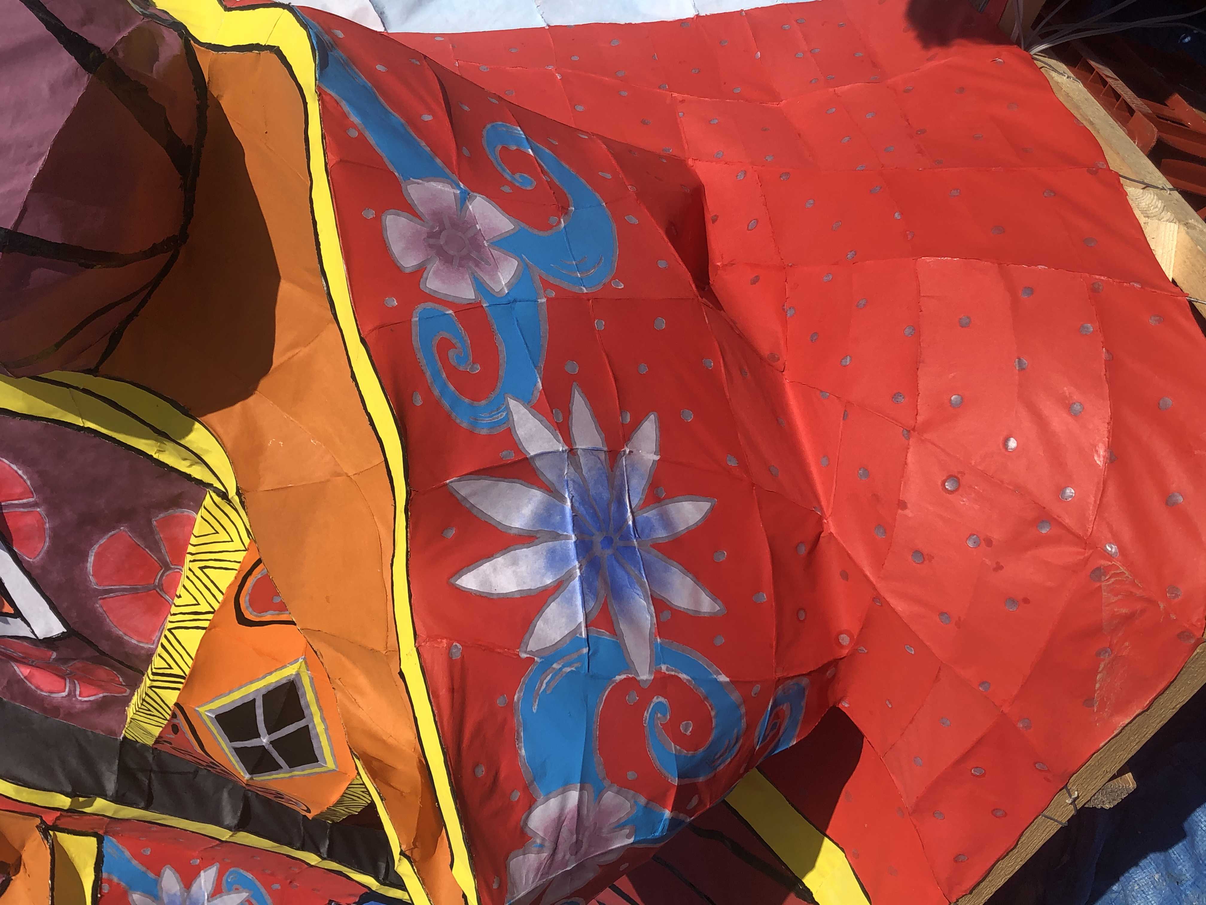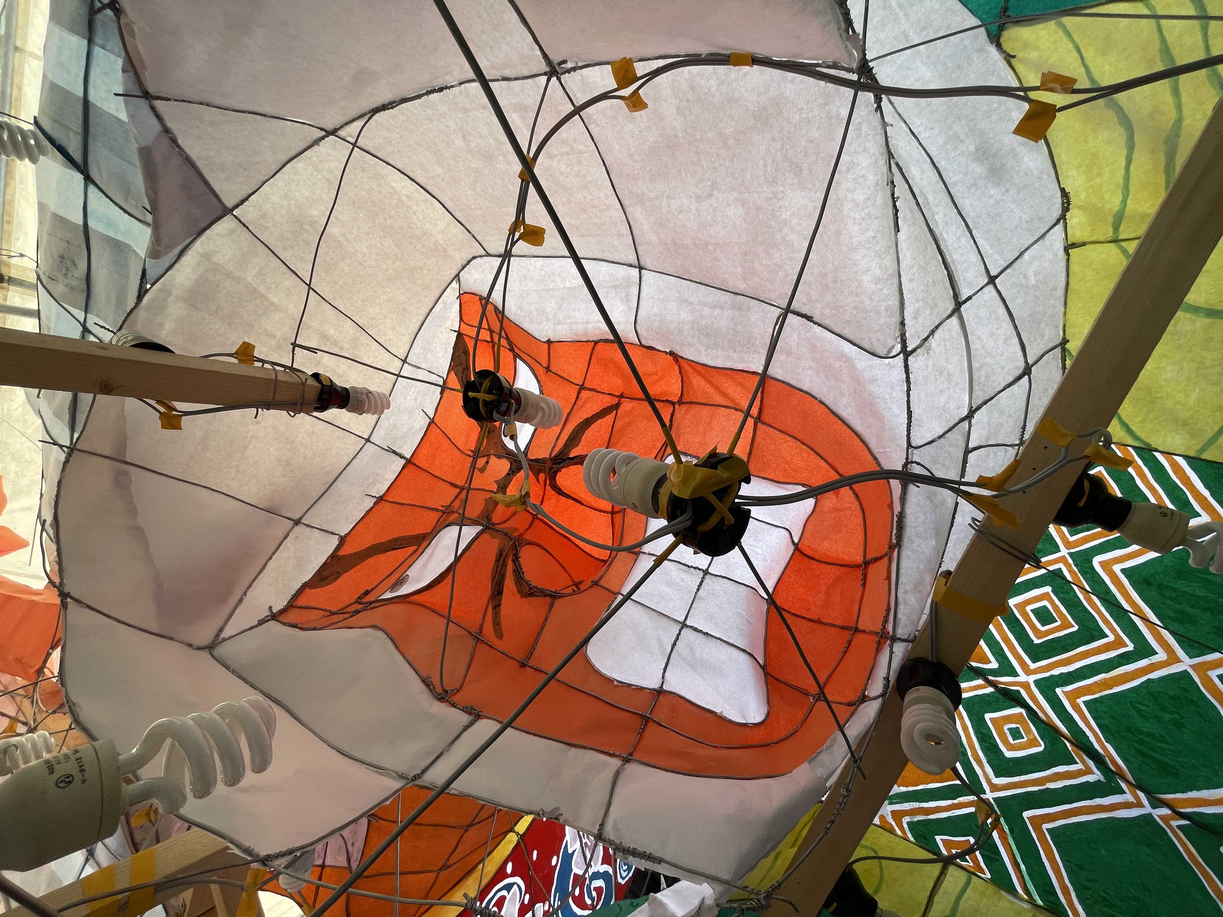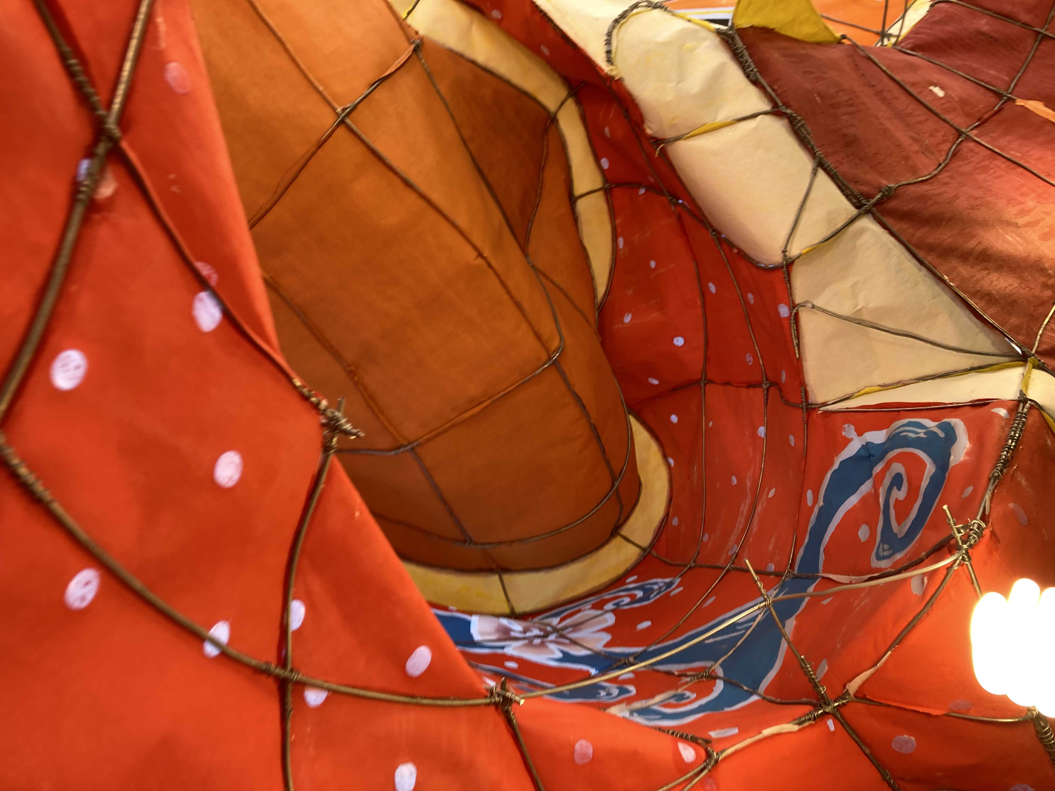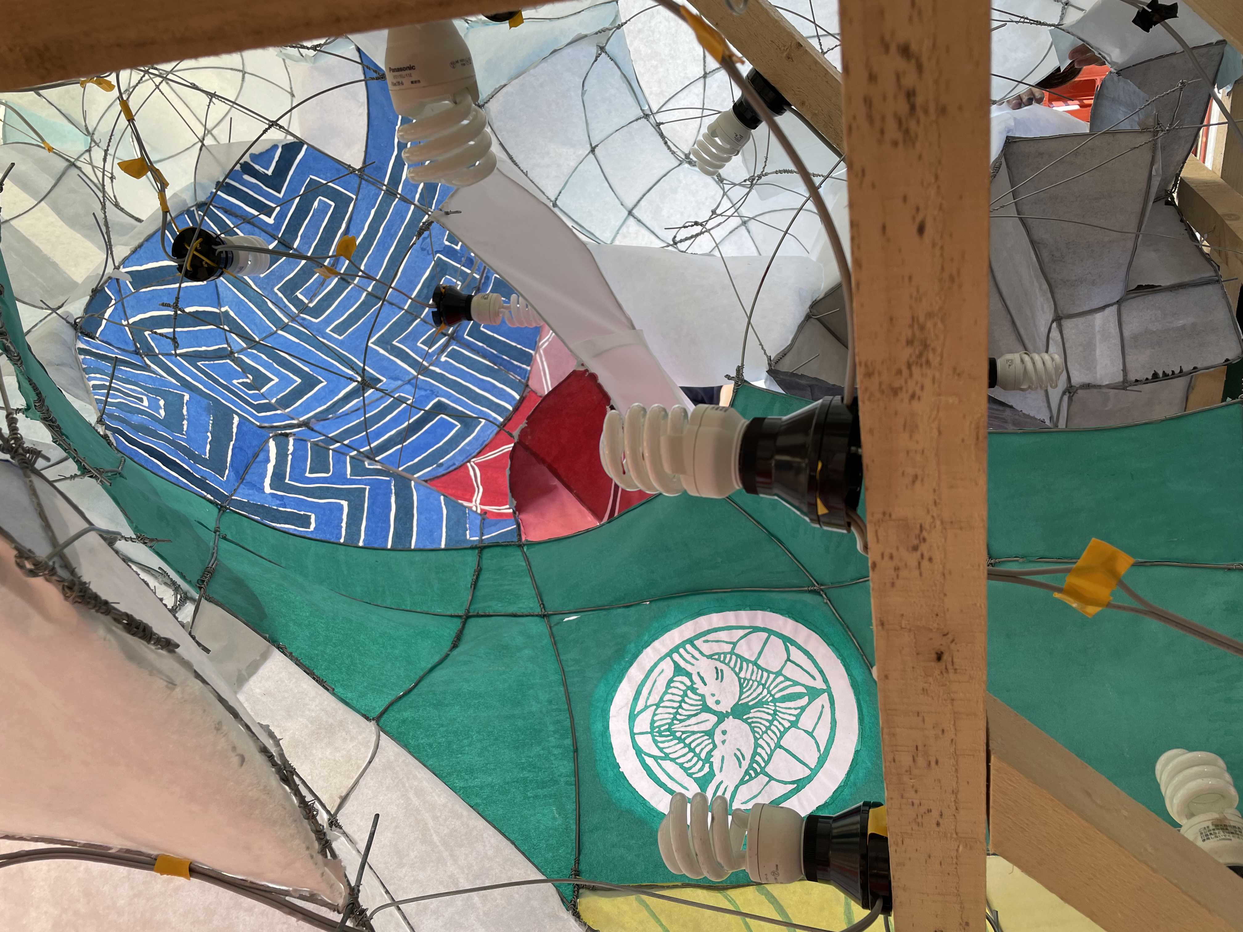 - 雑なところが一切ない行灯です。塗りの精度がとにかく高い!単色塗りもムラなく、ロウ引きも丁寧にされていることが感じられました。ロンテックスなんですかね?(こういう色を見ると全てロンテックスに見えてくる) 特に赤がすごくきれいに入っています。染料でしょうか?