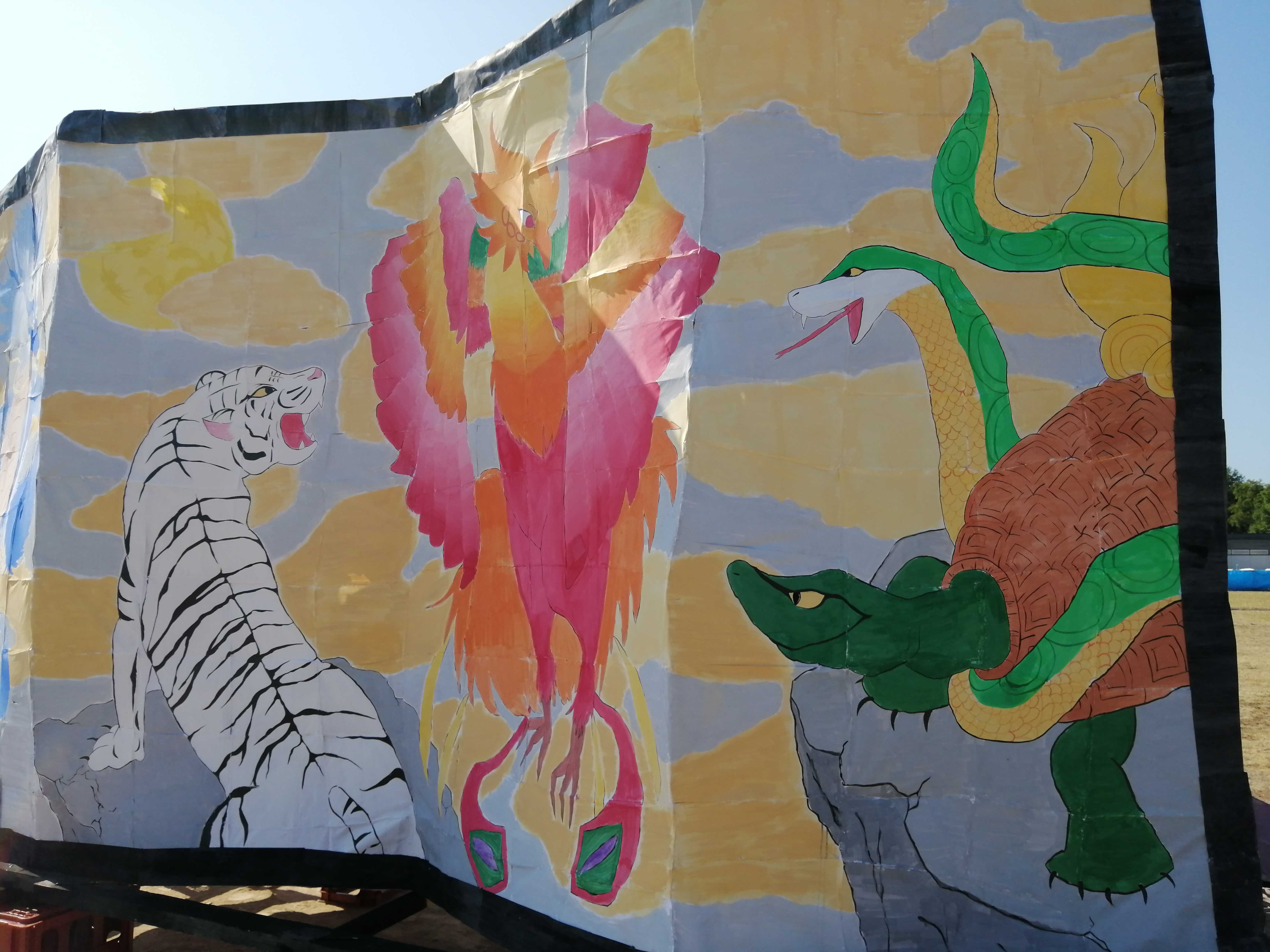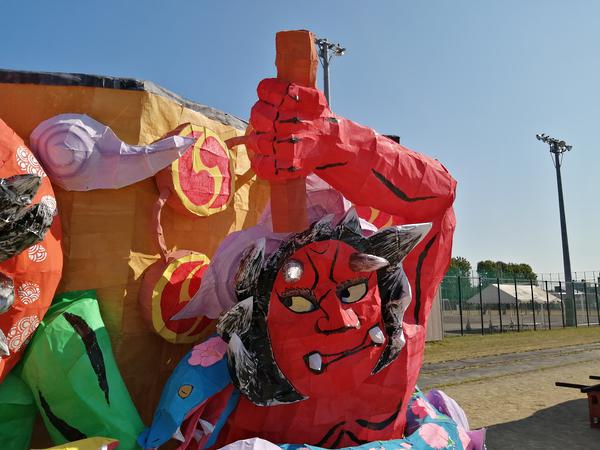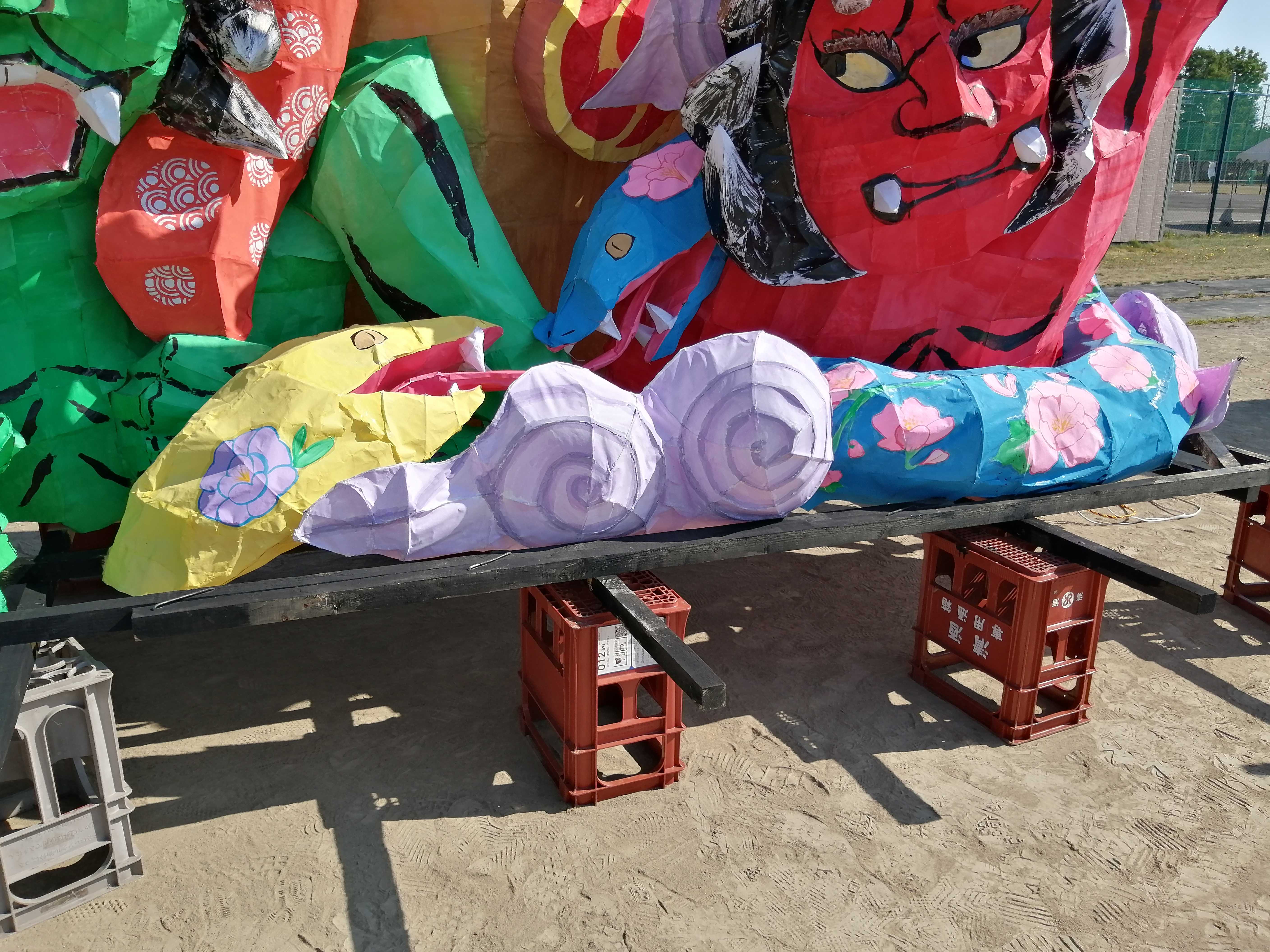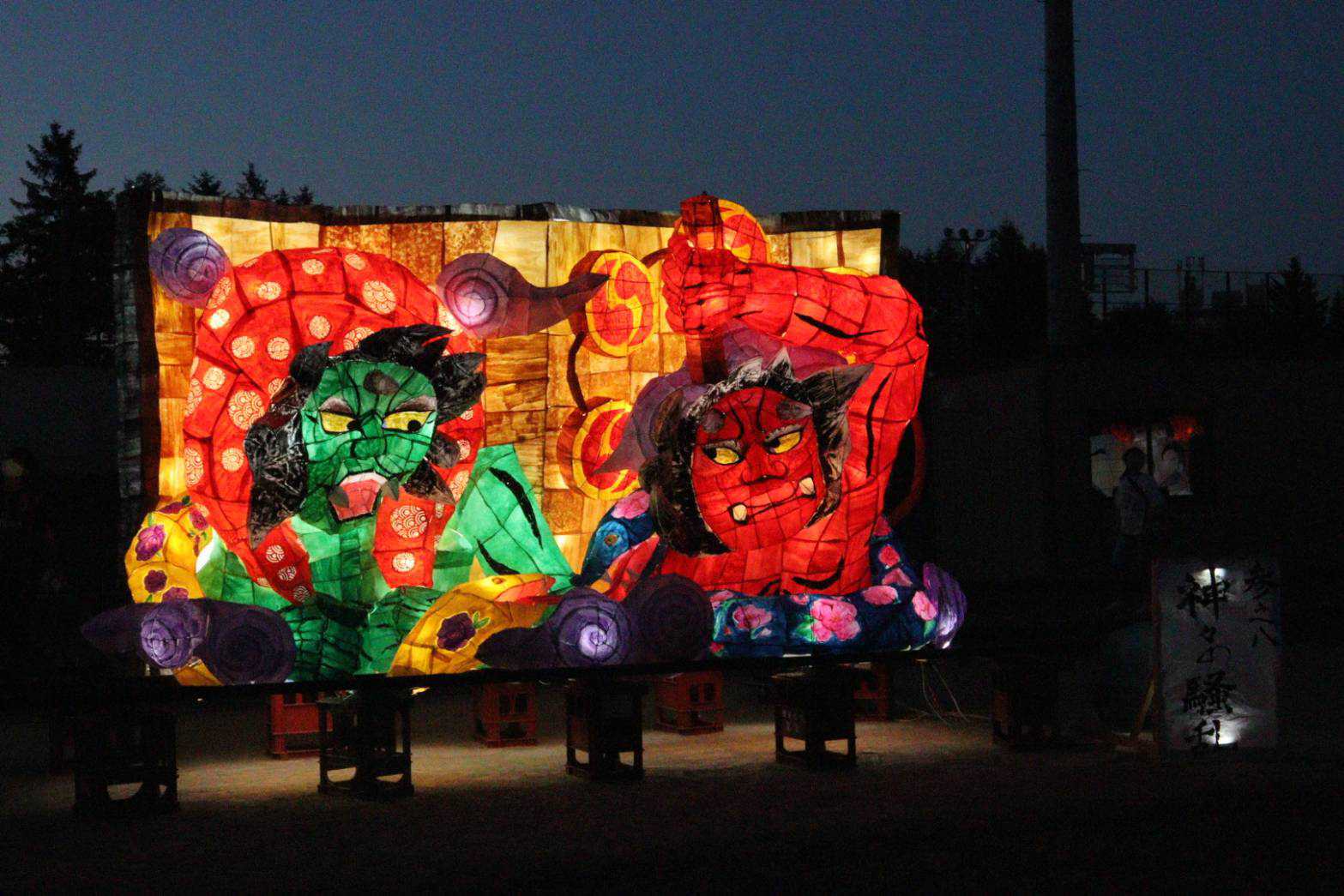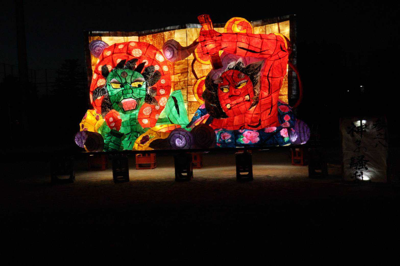 雷神の周りにいる蛇の柄がいいですね!ベースの色や花の柄など他の行灯にはなく特徴的でした。